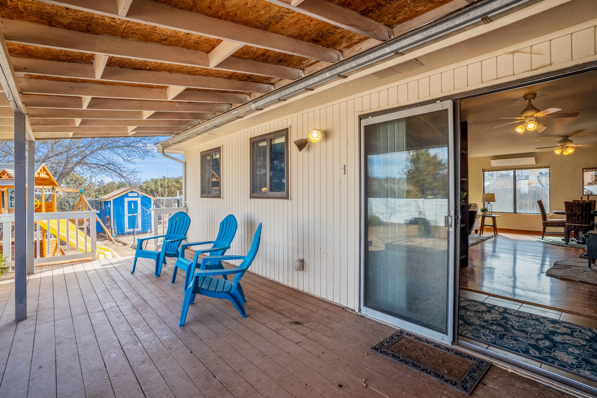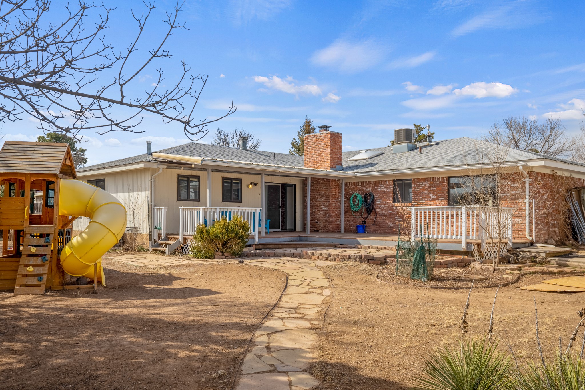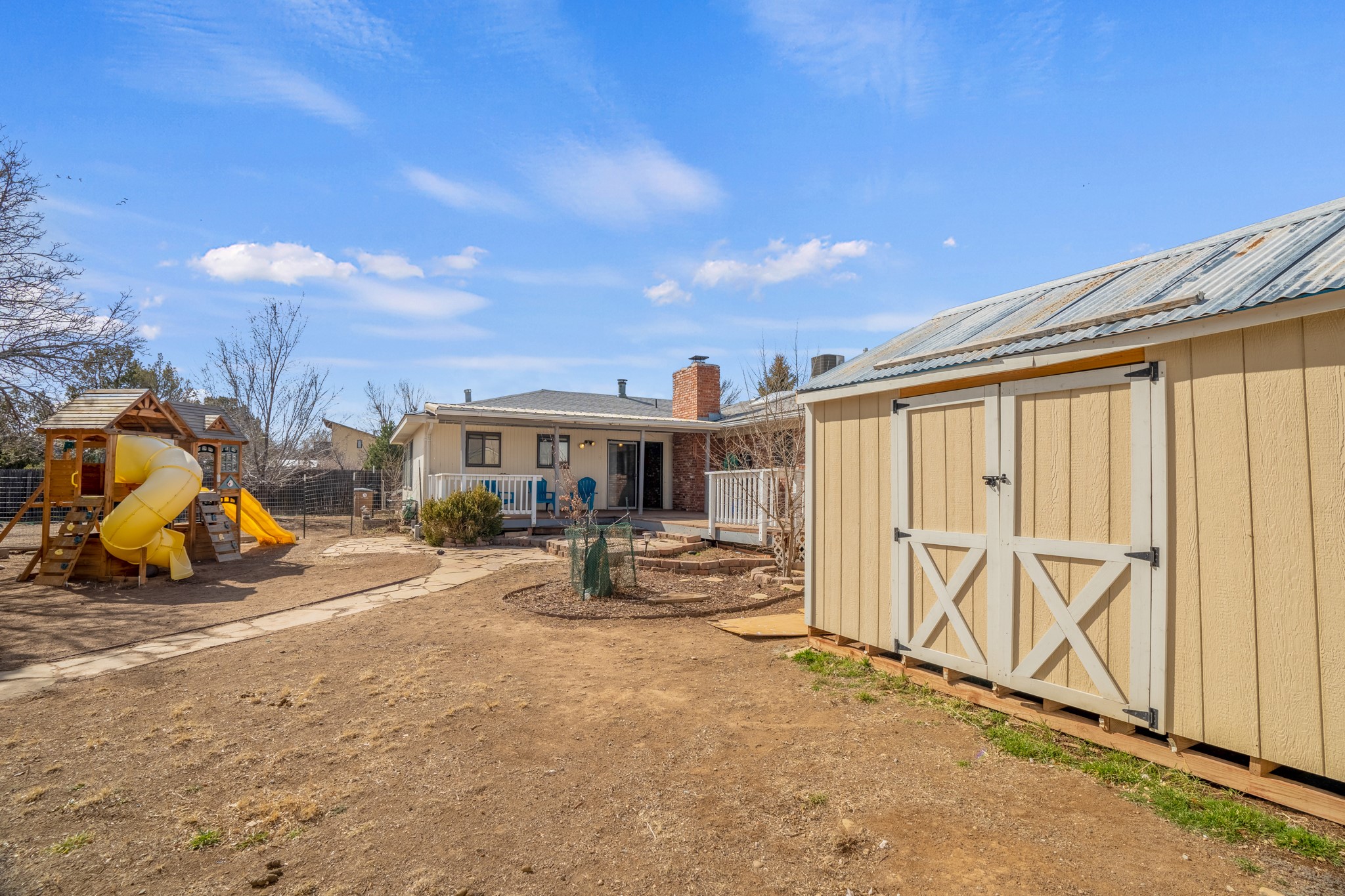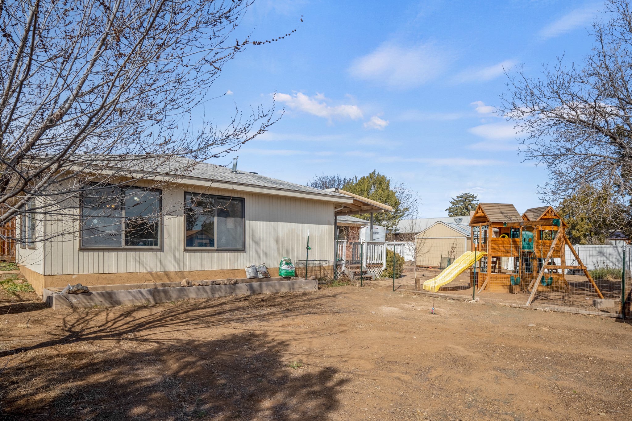 Move-in Ready, Backs to County Land and Overlook, Updated Flooring and Baths, Air Conditioning, Fenced Yard, Chicken Coop, RV Parking, and More! This four-bedroom White Rock house backs to County land at Overlook Park and provides a number of updates and comfort features. The entrance opens into a peaceful sitting room featuring updated flooring that flows into the formal dining room, where a feature fireplace is sure to impress your dinner guests. The kitchen - featuring a stainless-steel range, fridge, and dishwasher - also opens to the living room through a brick archway. In the living room, you'll find an informal dining area and east- and south-facing windows that flood the room with an abundance of natural light. An office off the living room can also serve as a fourth bedroom, if needed. The bedroom wing includes the primary suite, featuring an updated bathroom, as well as two guest bedrooms and an updated guest bathroom. Outside, you'll find a fully-fenced yard suitable for your four-legged companions, as well as a chicken coop. The large deck will provide you with a great vantage point to enjoy 4th of July fireworks from the comfort of your own home. Extras include central refrigerated air conditioning, RV parking, and repaired ducts. The sellers plan to review offers on Tuesday, March 28, so schedule your showing today!