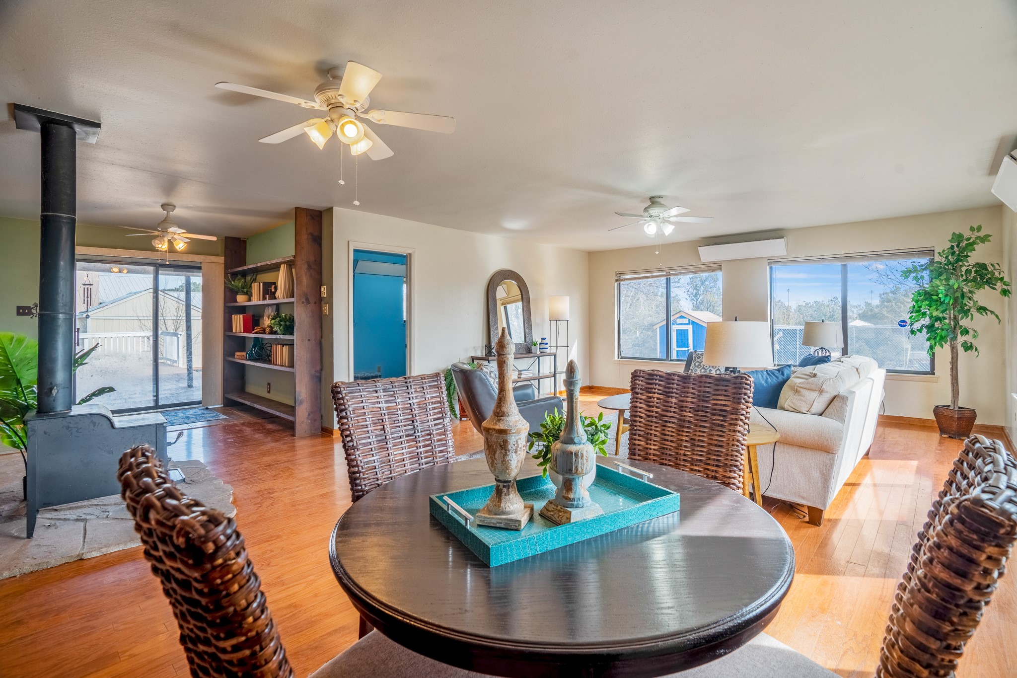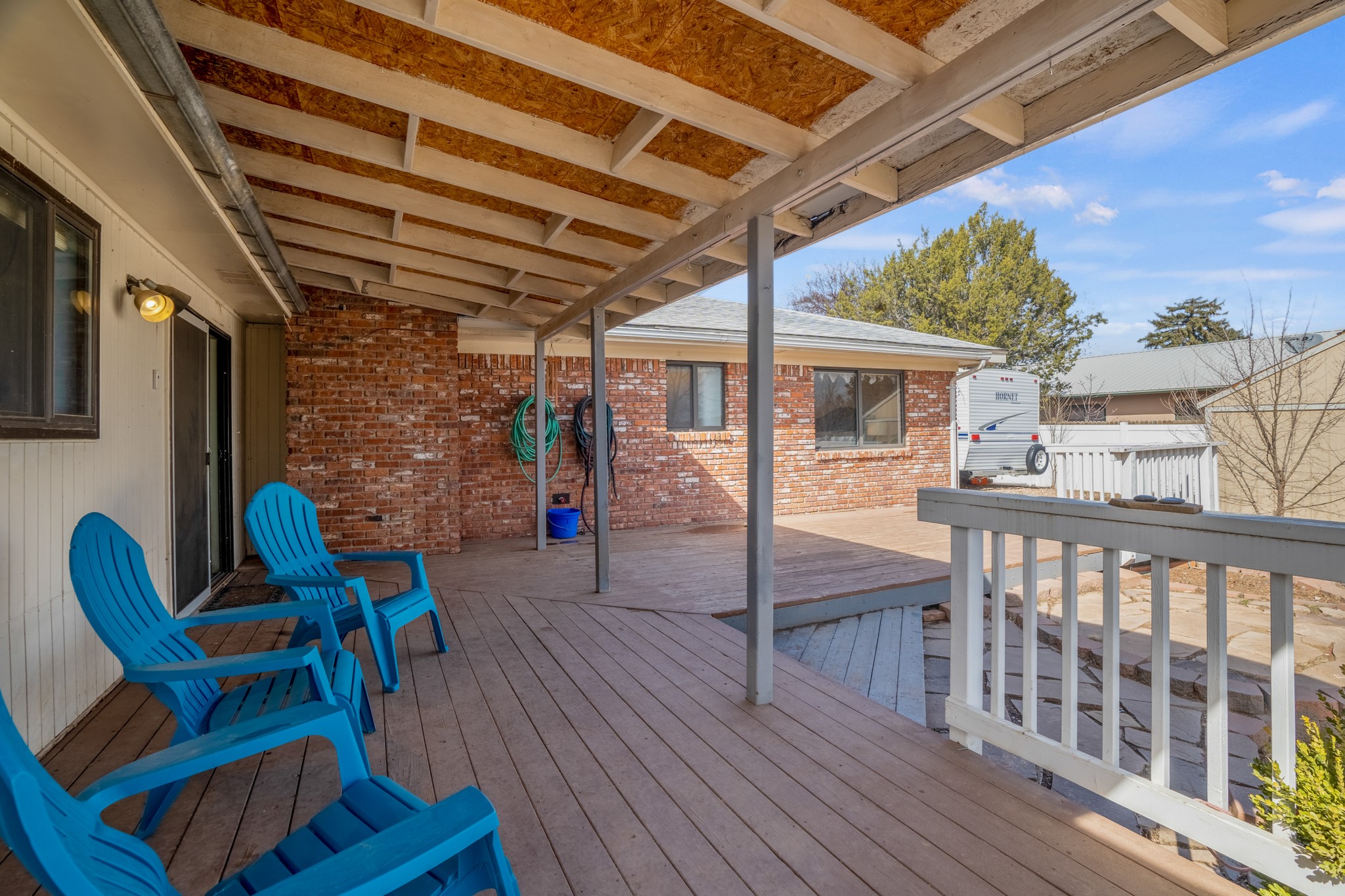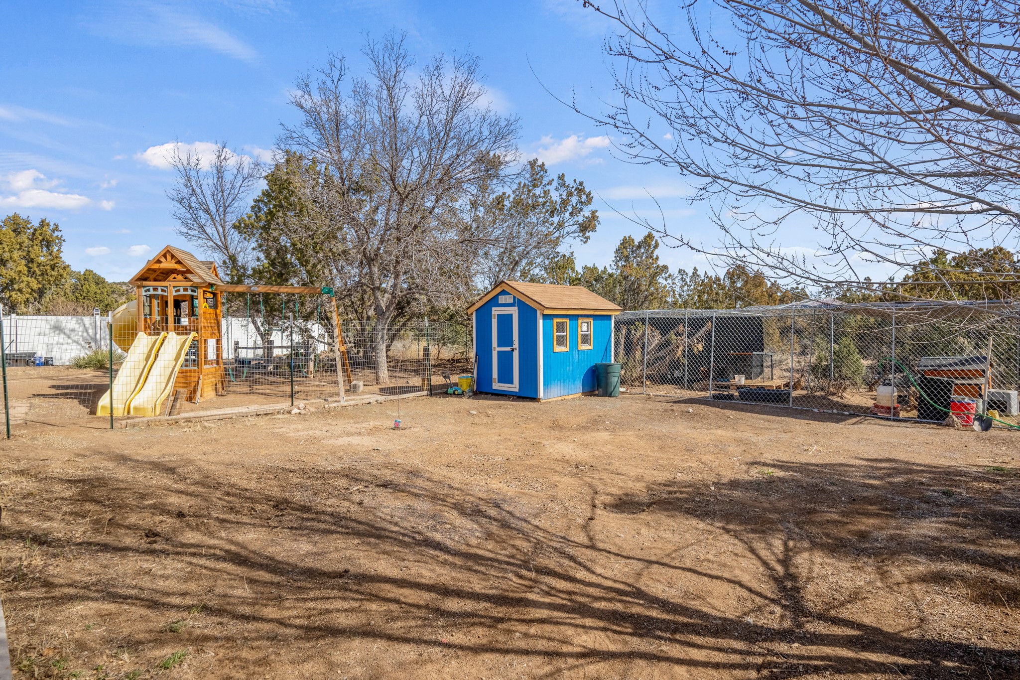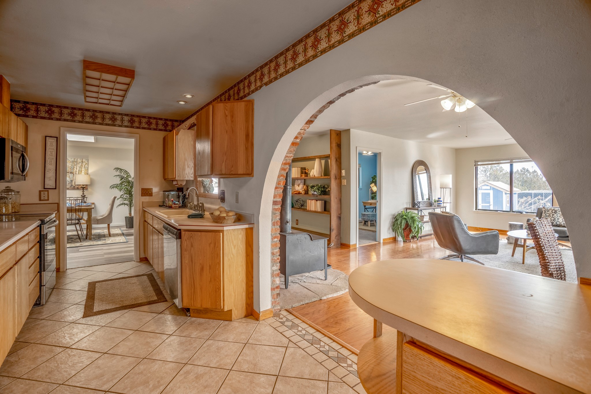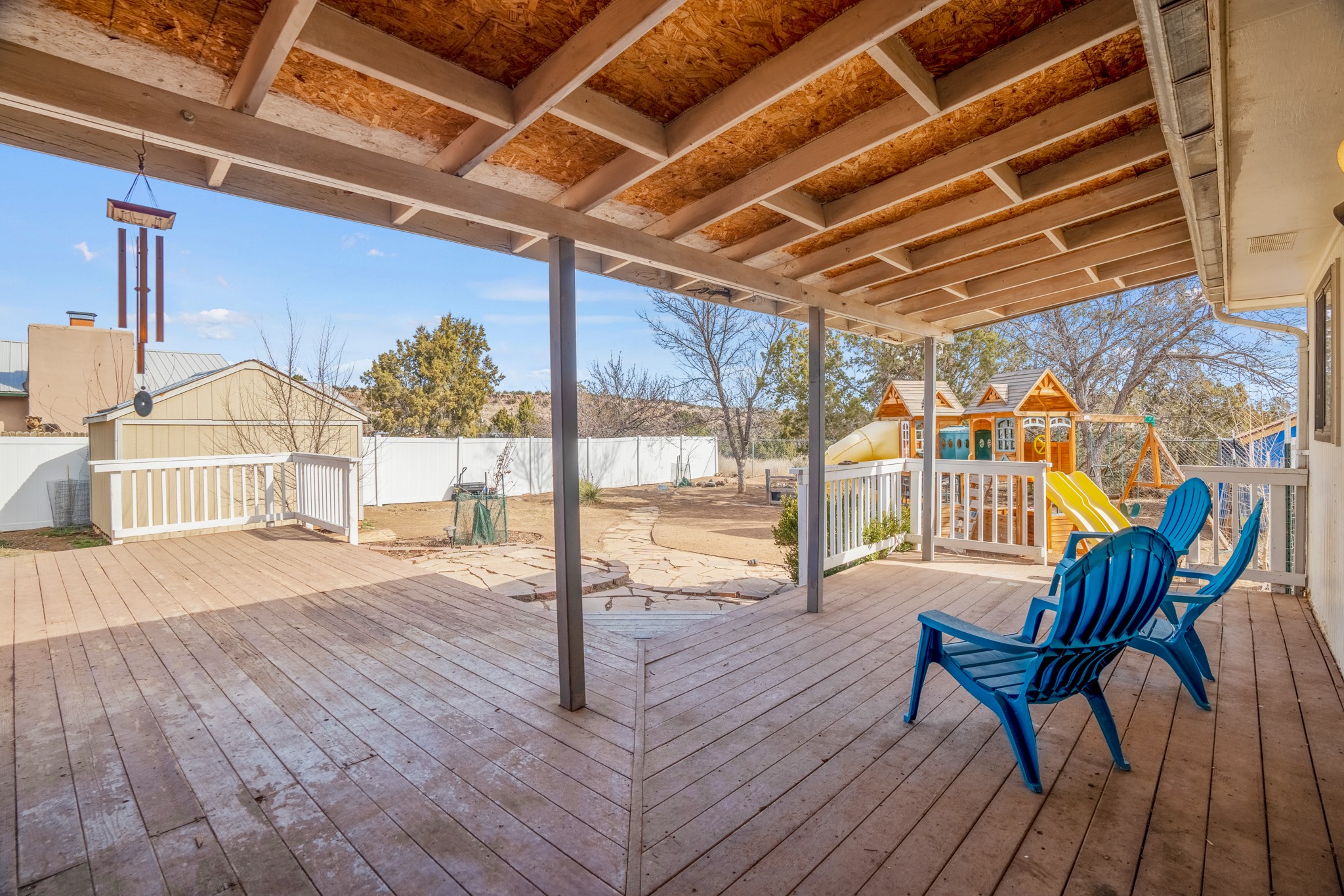 Move-in Ready, Backs to County Land and Overlook, Updated Flooring and Baths, Air Conditioning, Fenced Yard, Chicken Coop, RV Parking, and More! This four-bedroom White Rock house backs to County land at Overlook Park and provides a number of updates and comfort features. The entrance opens into a peaceful sitting room featuring updated flooring that flows into the formal dining room, where a feature fireplace is sure to impress your dinner guests. The kitchen - featuring a stainless-steel range, fridge, and dishwasher - also opens to the living room through a brick archway. In the living room, you'll find an informal dining area and east- and south-facing windows that flood the room with an abundance of natural light. An office off the living room can also serve as a fourth bedroom, if needed. The bedroom wing includes the primary suite, featuring an updated bathroom, as well as two guest bedrooms and an updated guest bathroom. Outside, you'll find a fully-fenced yard suitable for your four-legged companions, as well as a chicken coop. The large deck will provide you with a great vantage point to enjoy 4th of July fireworks from the comfort of your own home. Extras include central refrigerated air conditioning, RV parking, and repaired ducts. The sellers plan to review offers on Tuesday, March 28, so schedule your showing today!
