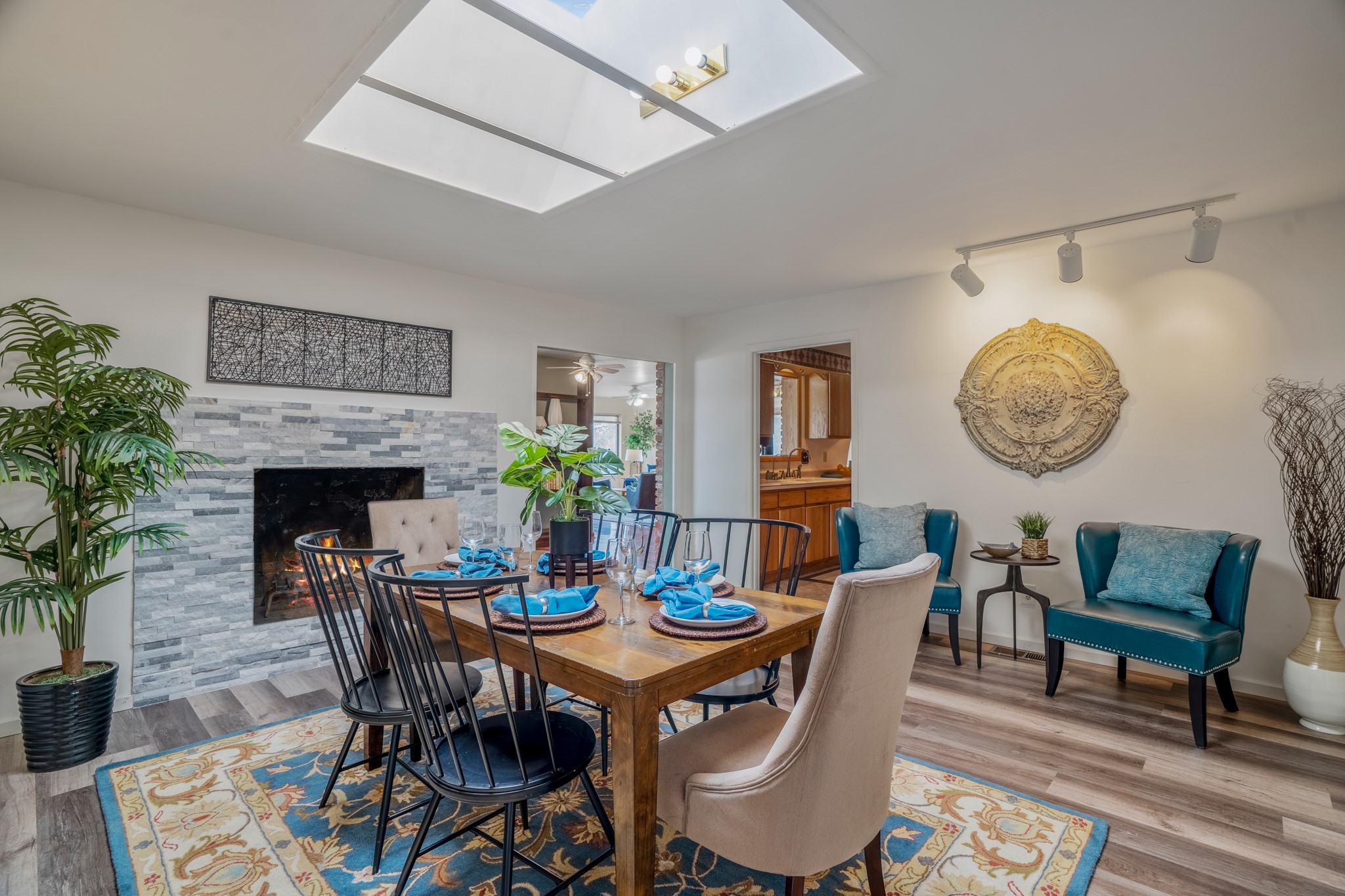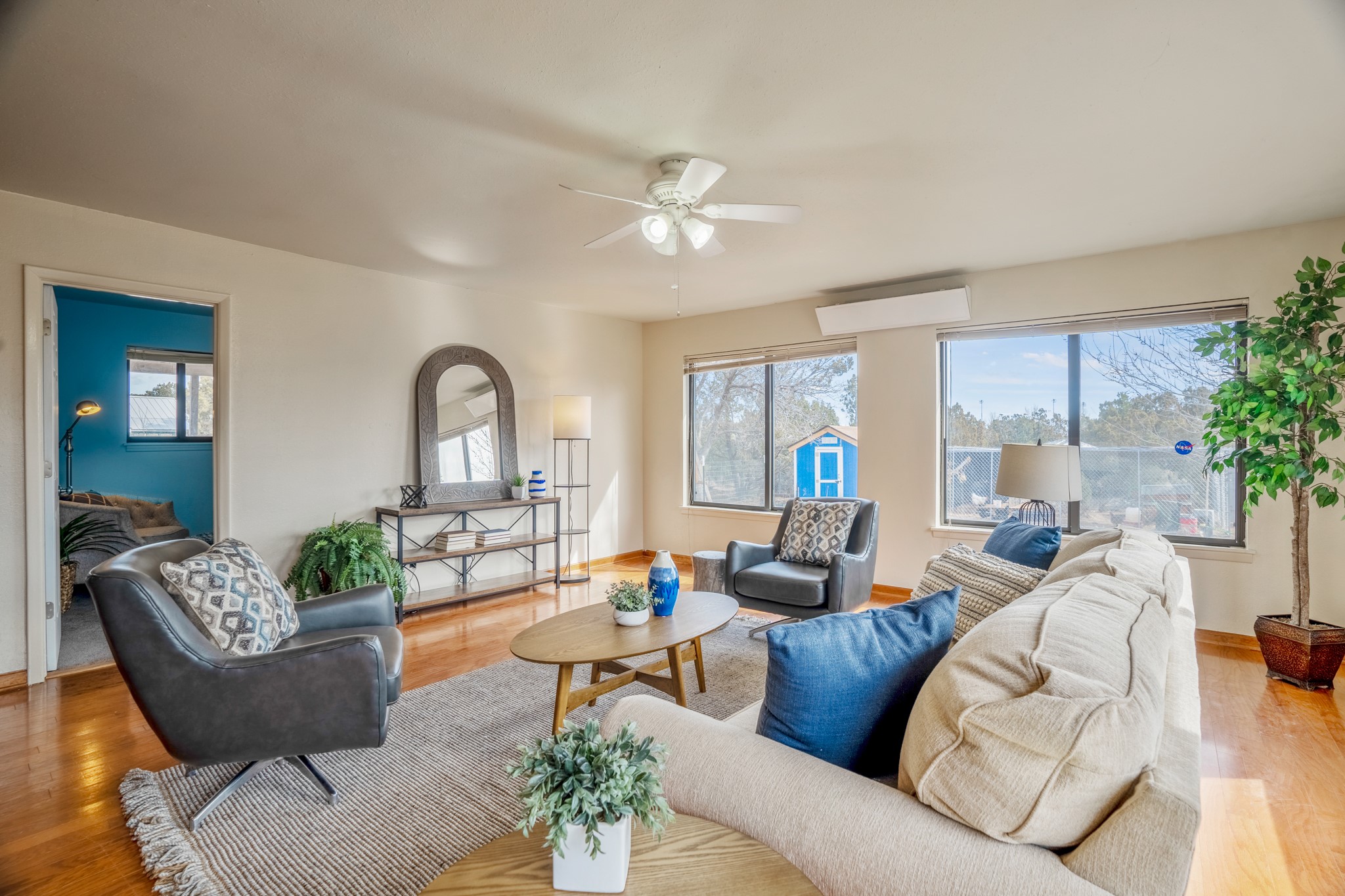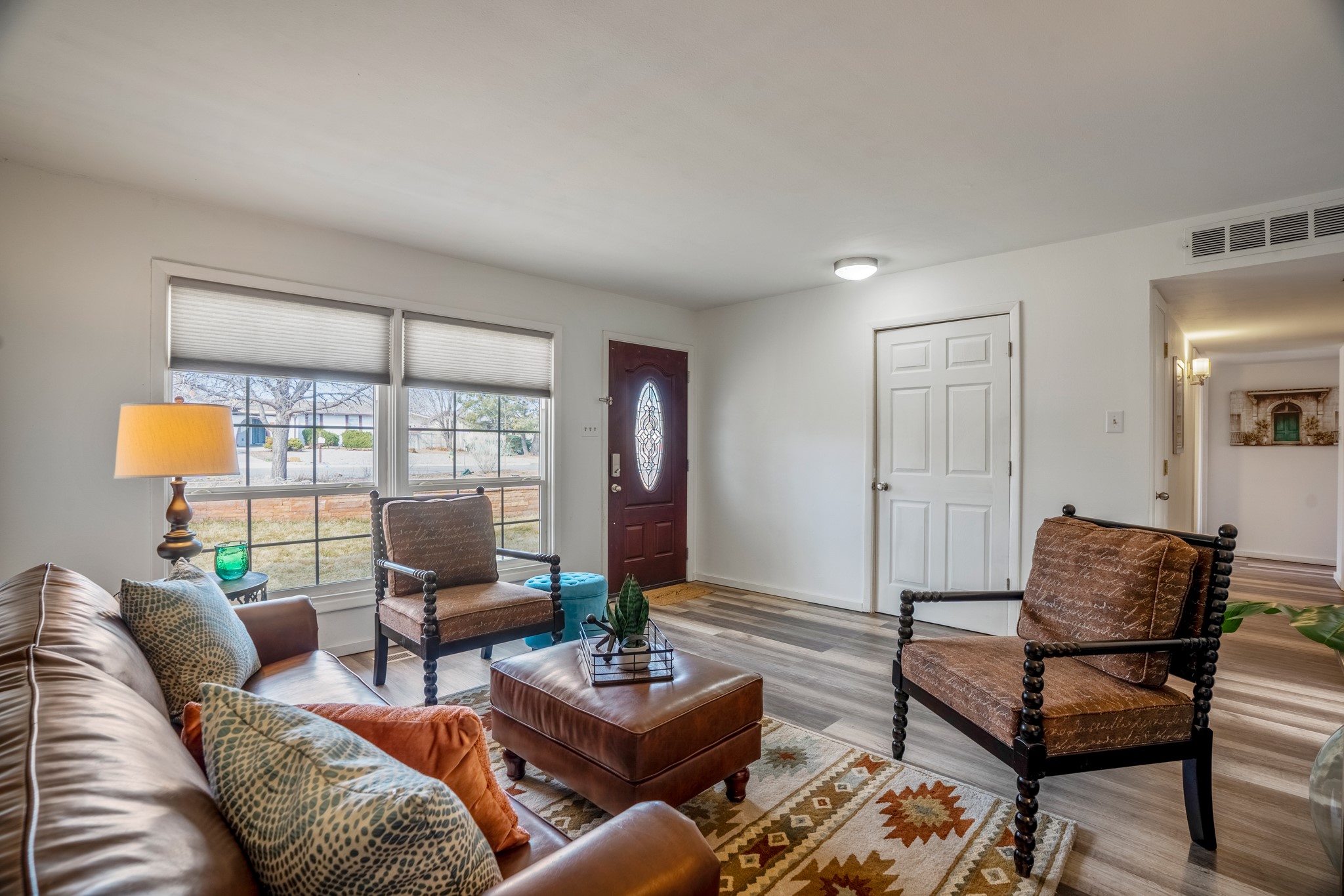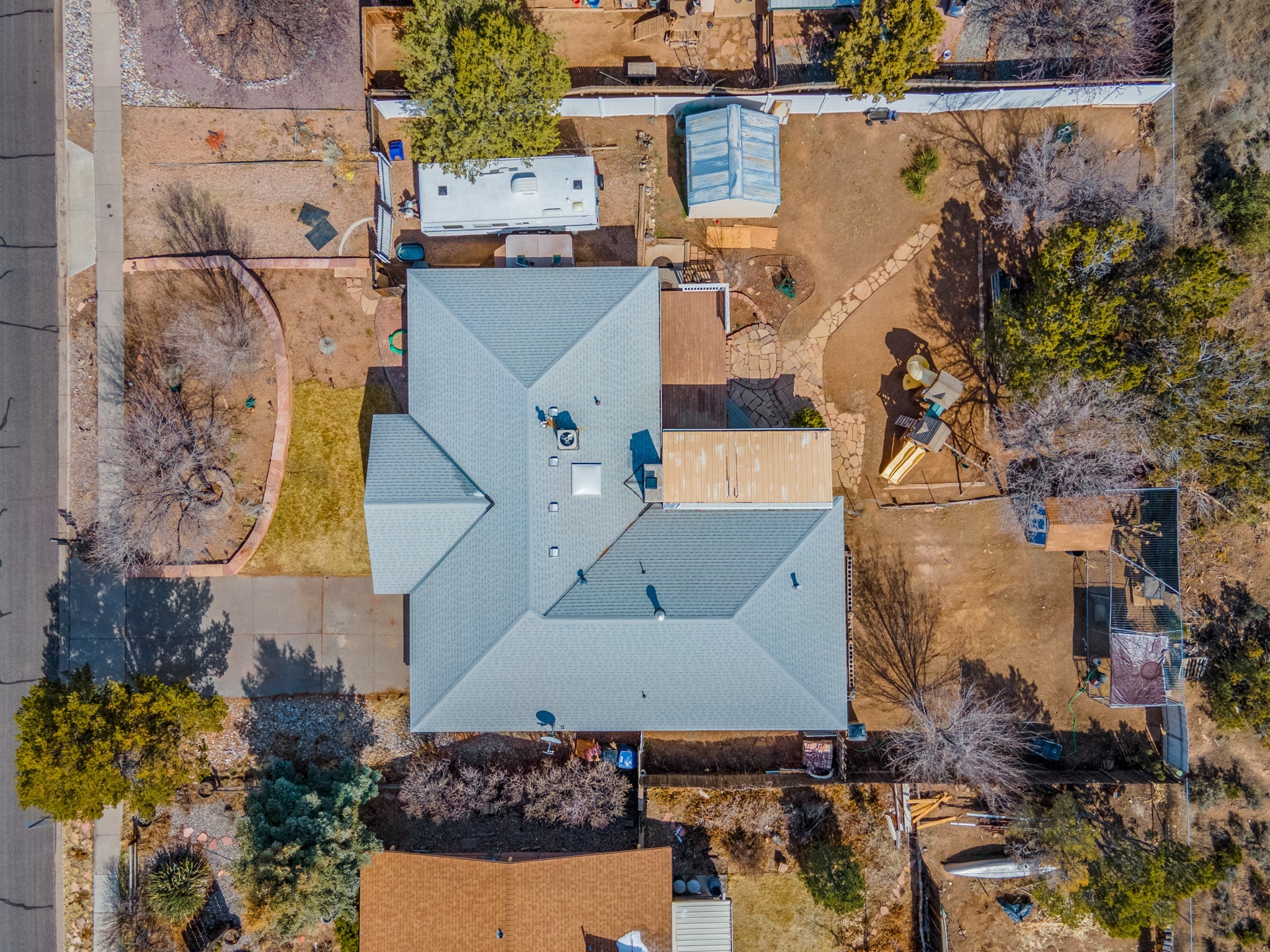 Move-in Ready, Backs to County Land and Overlook, Updated Flooring and Baths, Air Conditioning, Fenced Yard, Chicken Coop, RV Parking, and More! This four-bedroom White Rock house backs to County land at Overlook Park and provides a number of updates and comfort features. The entrance opens into a peaceful sitting room featuring updated flooring that flows into the formal dining room, where a feature fireplace is sure to impress your dinner guests. The kitchen - featuring a stainless-steel range, fridge, and dishwasher - also opens to the living room through a brick archway. In the living room, you'll find an informal dining area and east- and south-facing windows that flood the room with an abundance of natural light. An office off the living room can also serve as a fourth bedroom, if needed. The bedroom wing includes the primary suite, featuring an updated bathroom, as well as two guest bedrooms and an updated guest bathroom. Outside, you'll find a fully-fenced yard suitable for your four-legged companions, as well as a chicken coop. The large deck will provide you with a great vantage point to enjoy 4th of July fireworks from the comfort of your own home. Extras include central refrigerated air conditioning, RV parking, and repaired ducts. The sellers plan to review offers on Tuesday, March 28, so schedule your showing today!