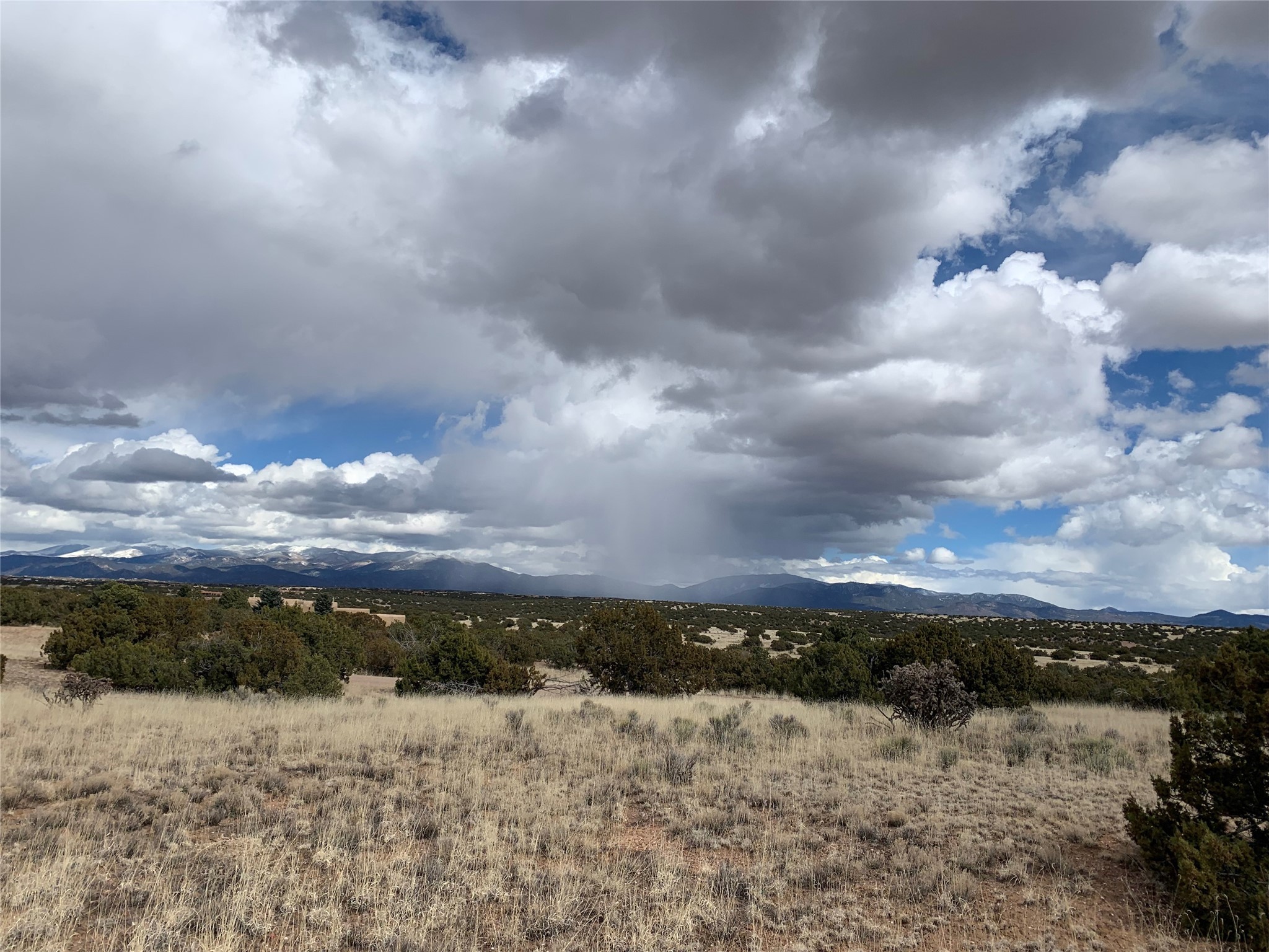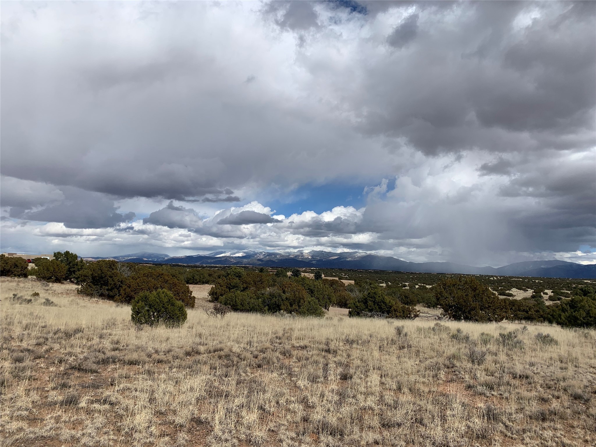 This is a beautiful higher-view lot in a wonderful rural and gated subdivision, Rancho de Los Ninos. There are paved roads up to the gate and only a short distance of dirt road to the lot. The wonderful views are of the Sangre de Christo Mountains. Marty Sanchez golf course is just a short distance away. A real bonus is the miles-long walking paths along Caja del Rio. This lovely parcel is minutes from downtown Santa Fe using 599 and an easy commute from I-25.
