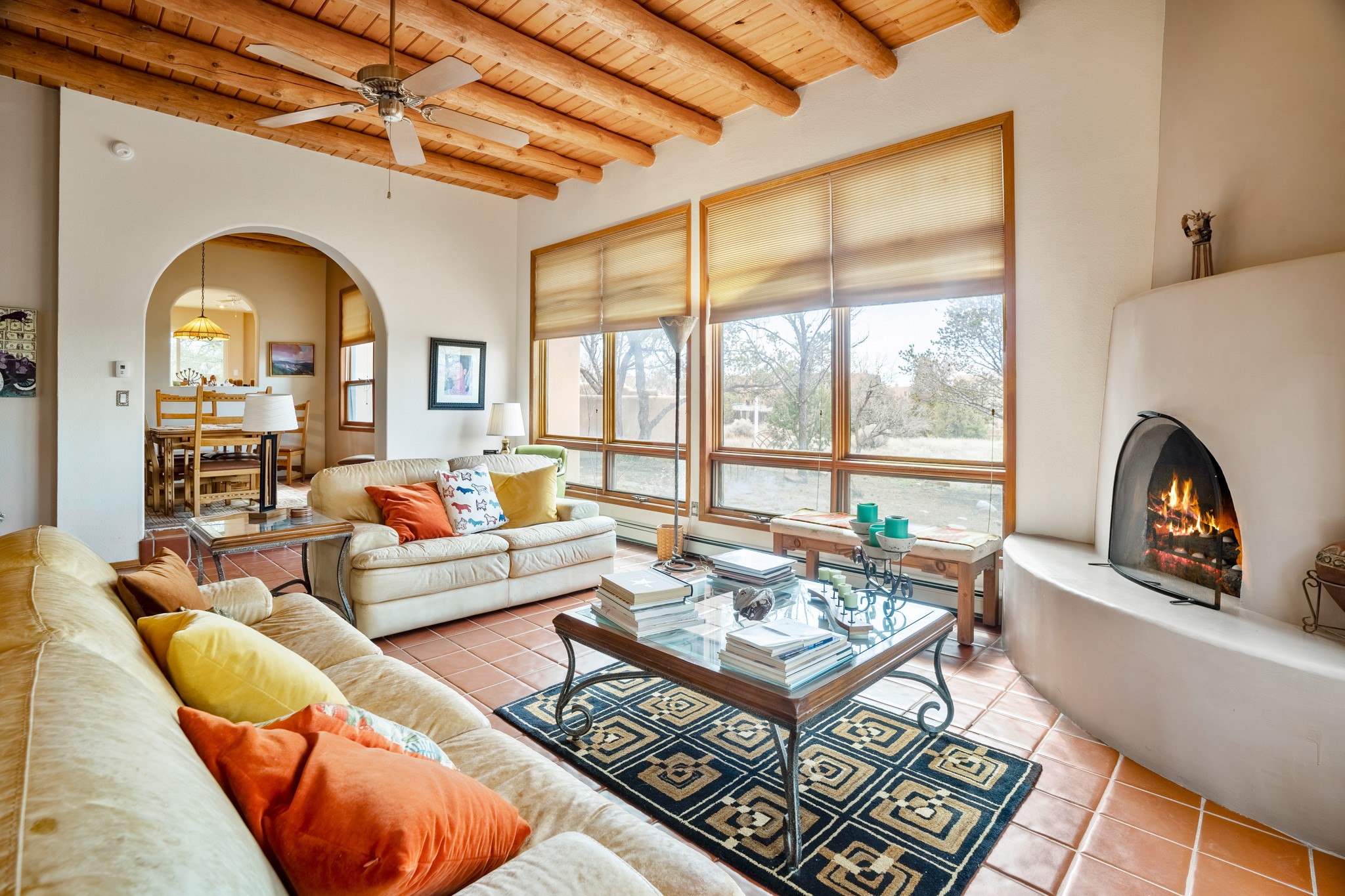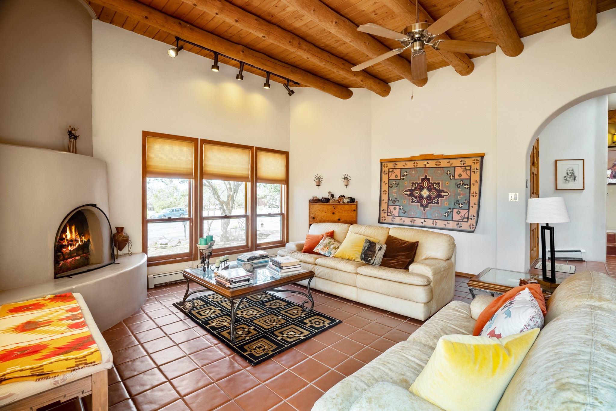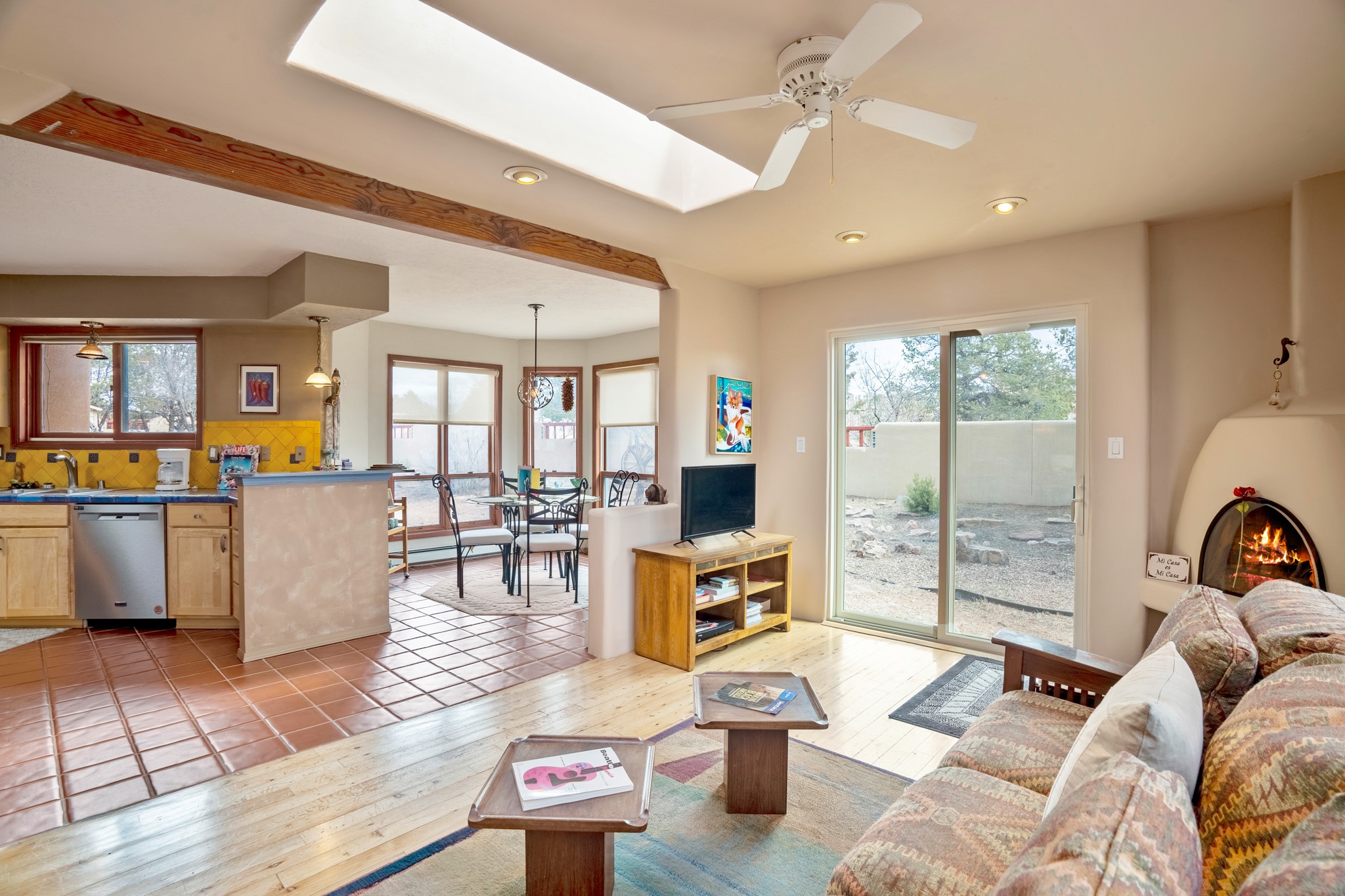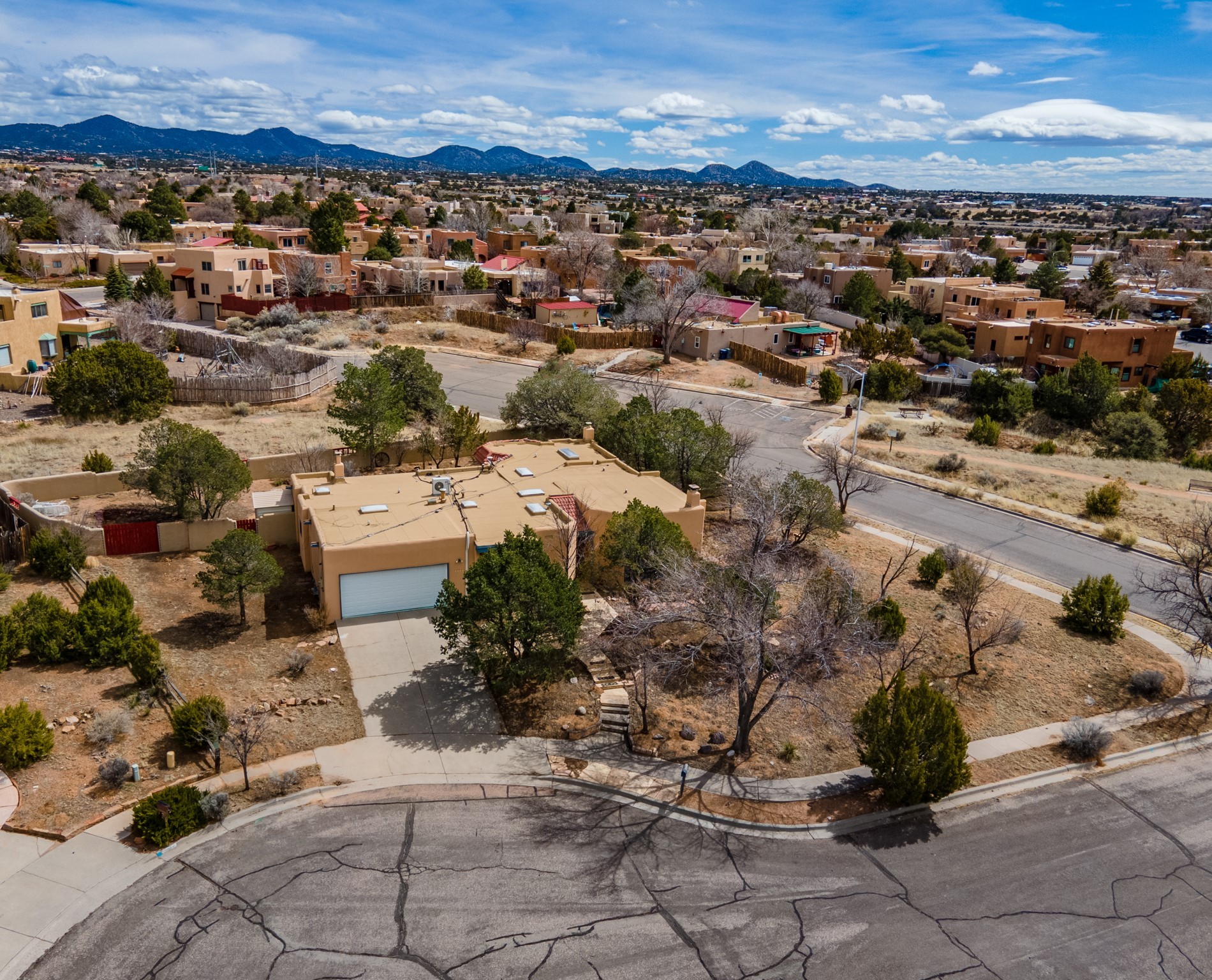 Sited on a very private area in the highly sought after Via Caballero neighborhood, this 3 bedroom with 2 bathroom home is not to be missed. 2300 sqft with a 2 car garage and 3 wood burning Kiva fireplaces, this home is ready for a new owner. The home is situated in a cul de sac on a corner lot with an elevated setting. The .38 acres lot is set very private with a trail adjoining it to the east giving extra space between this home and the neighbor. Wood, carpet and tile with baseboard heat and mini splits for cooling. Newer kitchen appliances and all appliances stay with the home. A very nice breakfast nook and sitting area adjoining the kitchen with a formal dining room as well. The main living room/area has large windows facing south and west to capture passive solar and to take in the sunset views. Close to shopping, schools, healthcare, and anything else Santa Fe has to offer. Easy access to fitness facilities, the Santa Fe Community College, and a simple route to I-25. A very nice home is a very competitive market. Don't wait to see this one.