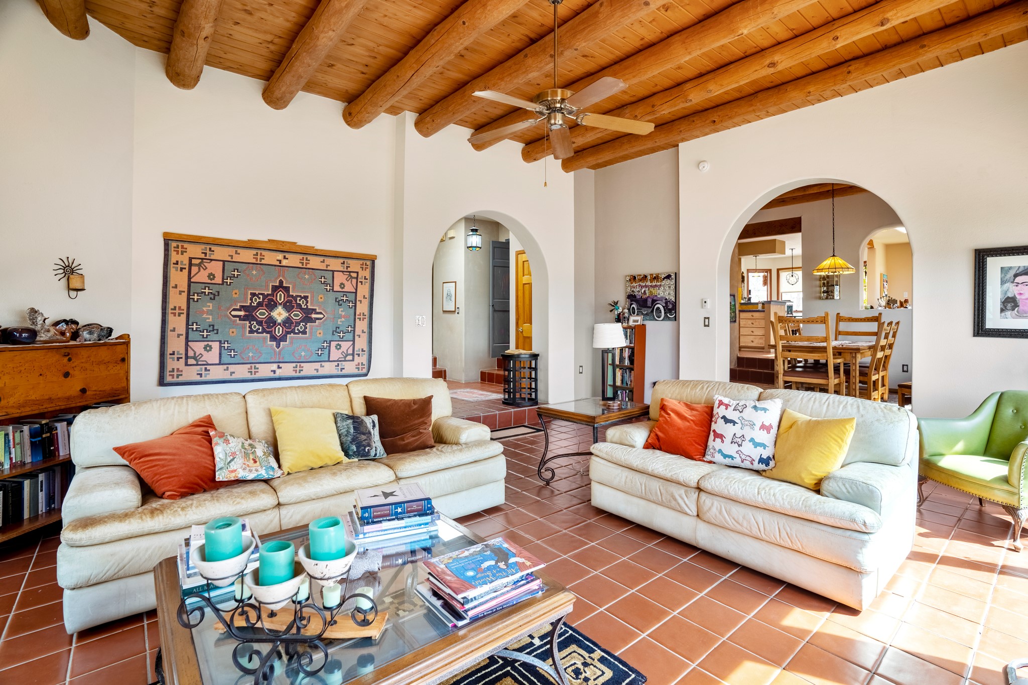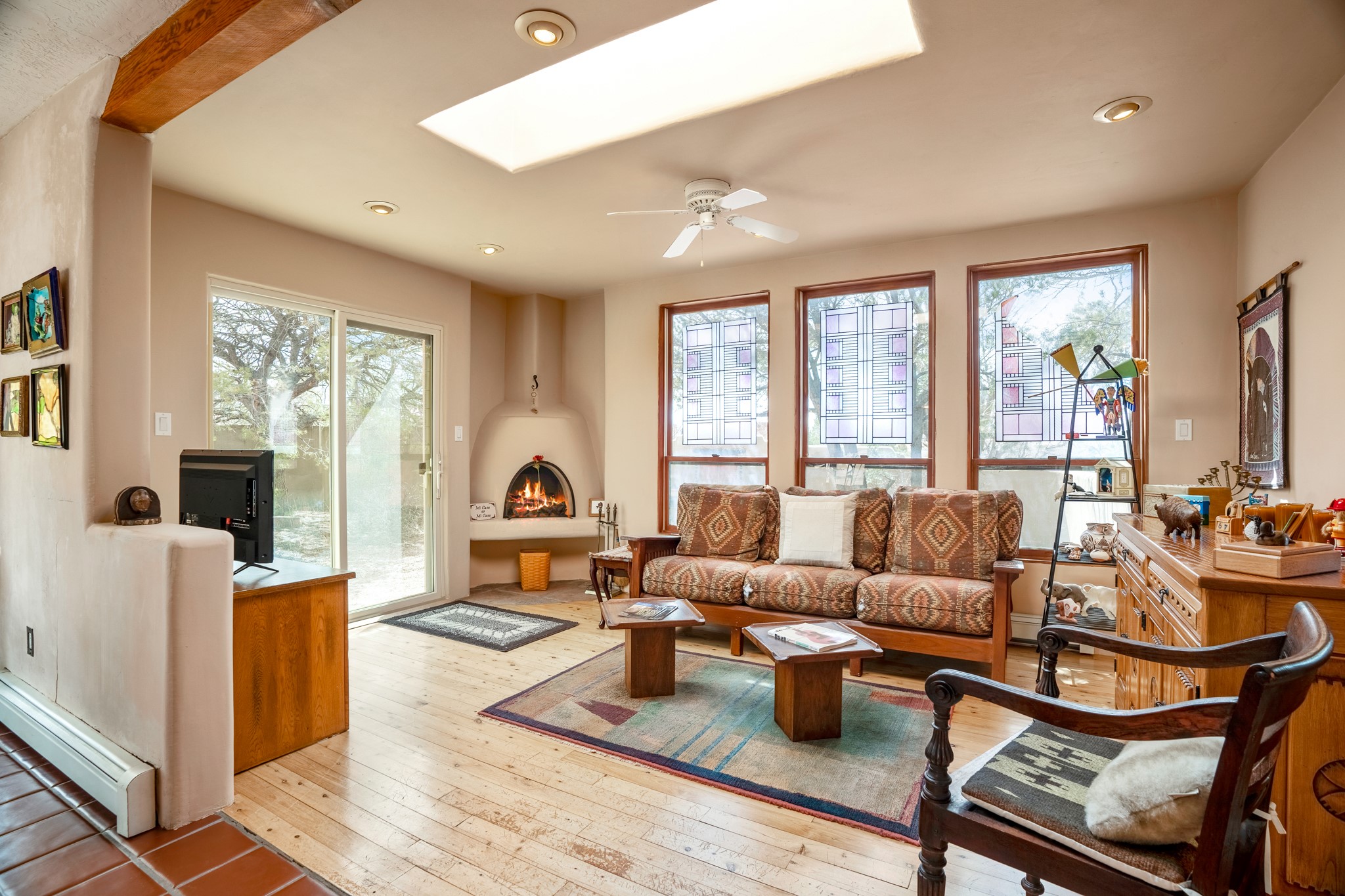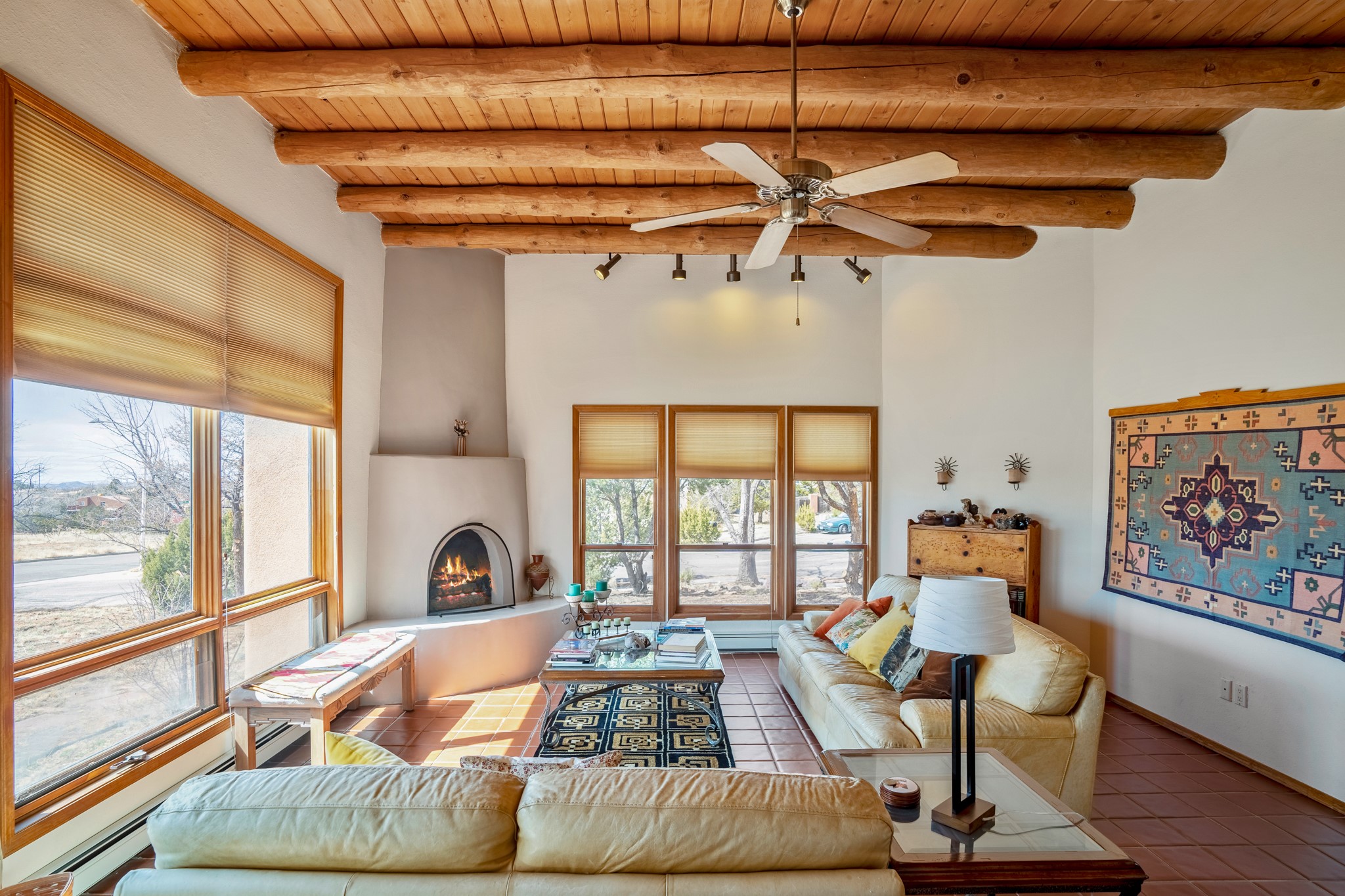 Sited on a very private area in the highly sought after Via Caballero neighborhood, this 3 bedroom with 2 bathroom home is not to be missed. 2300 sqft with a 2 car garage and 3 wood burning Kiva fireplaces, this home is ready for a new owner. The home is situated in a cul de sac on a corner lot with an elevated setting. The .38 acres lot is set very private with a trail adjoining it to the east giving extra space between this home and the neighbor. Wood, carpet and tile with baseboard heat and mini splits for cooling. Newer kitchen appliances and all appliances stay with the home. A very nice breakfast nook and sitting area adjoining the kitchen with a formal dining room as well. The main living room/area has large windows facing south and west to capture passive solar and to take in the sunset views. Close to shopping, schools, healthcare, and anything else Santa Fe has to offer. Easy access to fitness facilities, the Santa Fe Community College, and a simple route to I-25. A very nice home is a very competitive market. Don't wait to see this one.