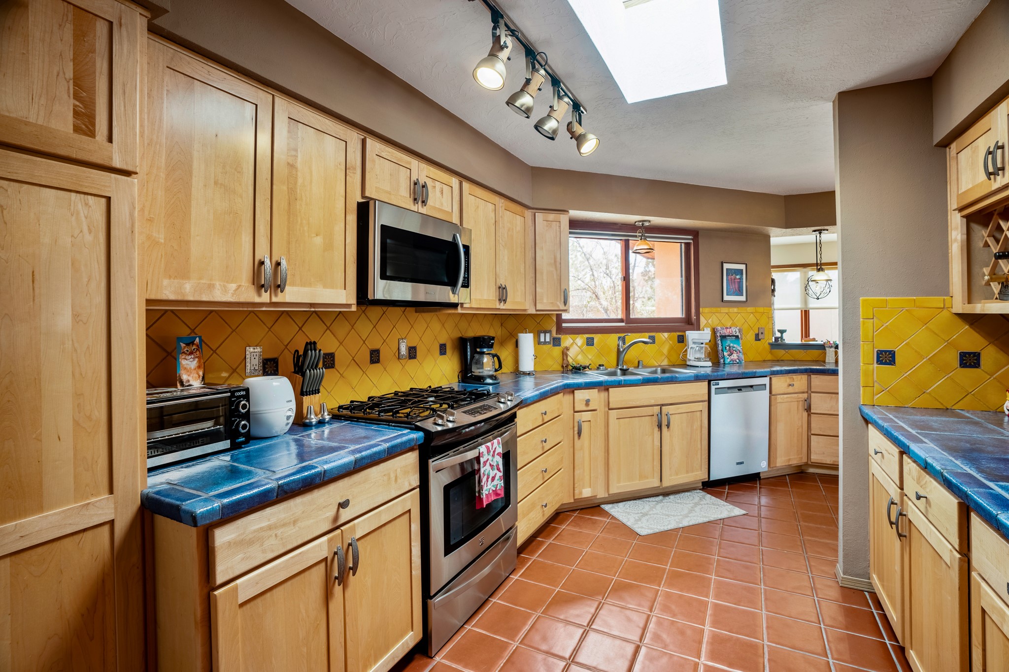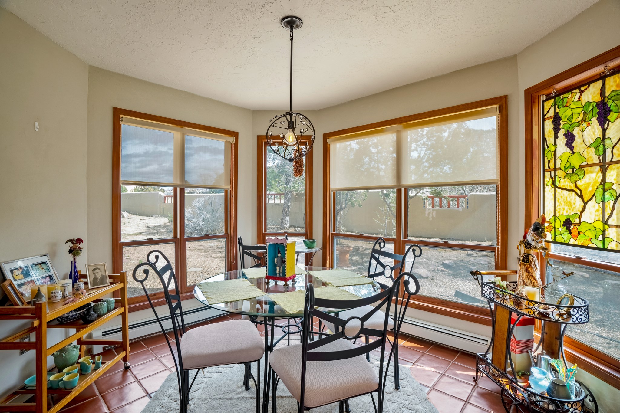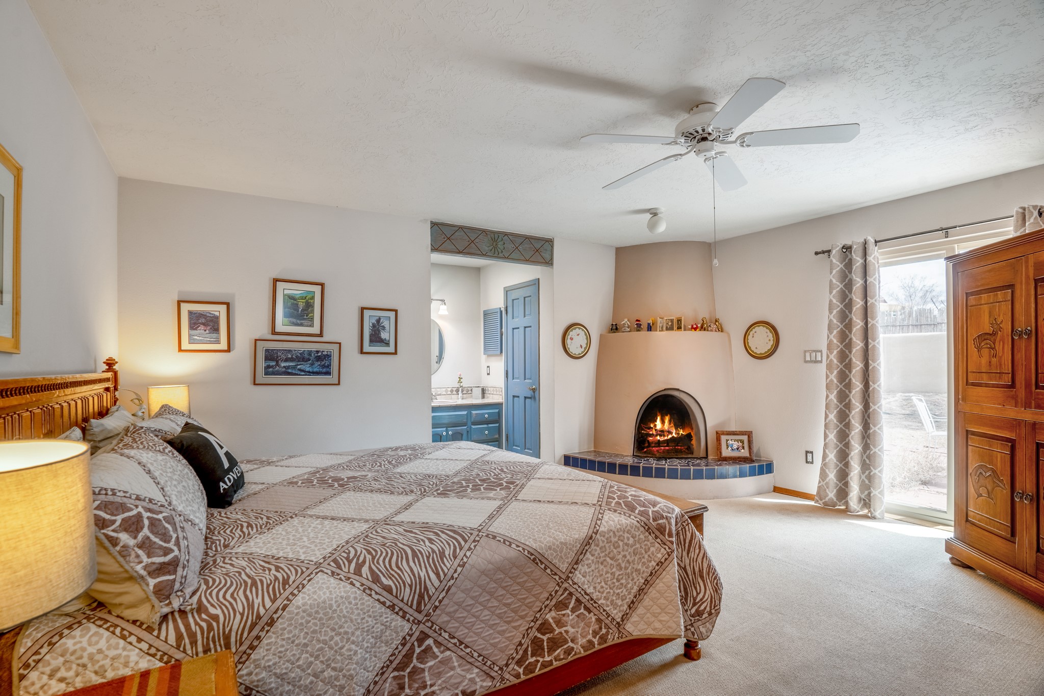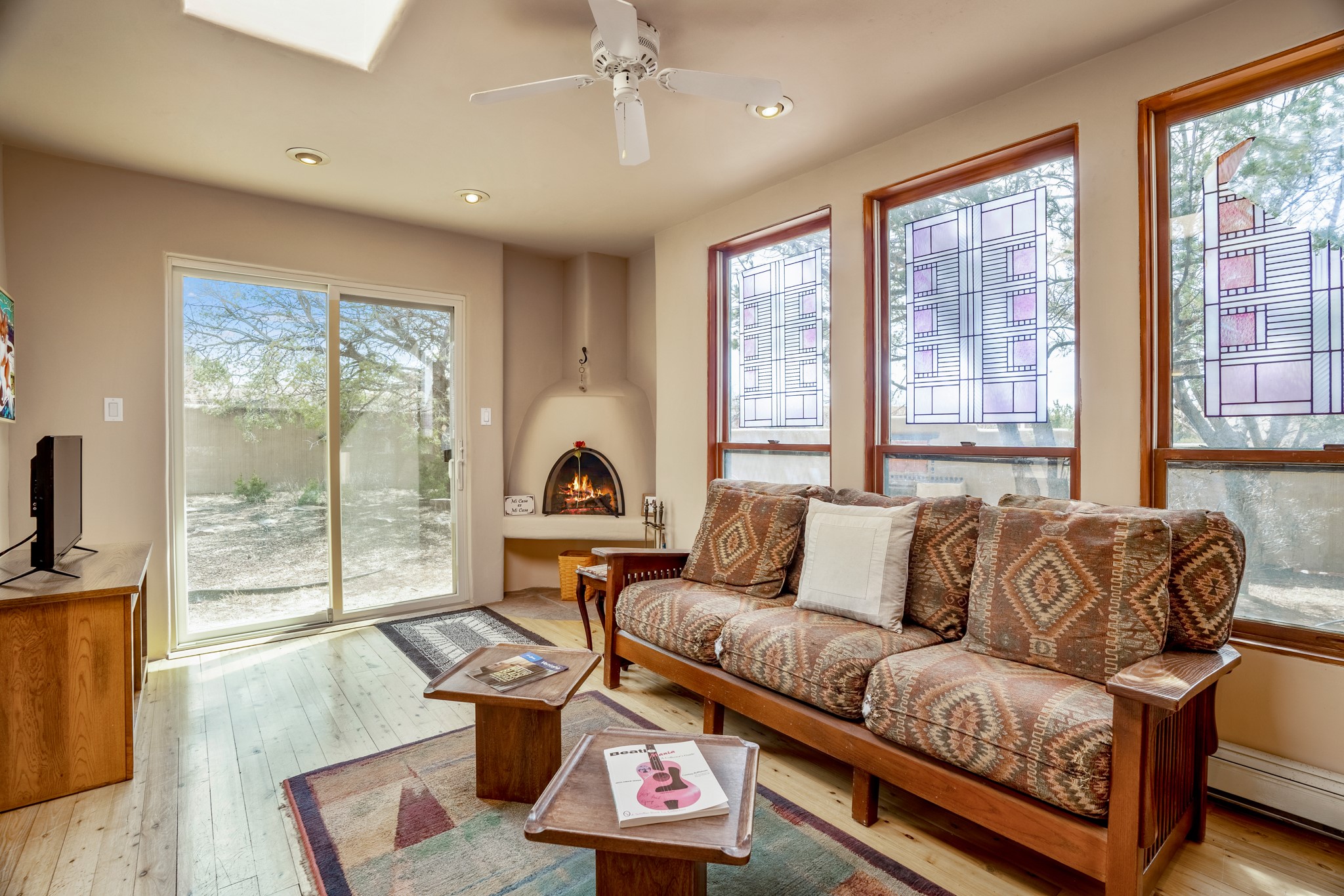 Sited on a very private area in the highly sought after Via Caballero neighborhood, this 3 bedroom with 2 bathroom home is not to be missed. 2300 sqft with a 2 car garage and 3 wood burning Kiva fireplaces, this home is ready for a new owner. The home is situated in a cul de sac on a corner lot with an elevated setting. The .38 acres lot is set very private with a trail adjoining it to the east giving extra space between this home and the neighbor. Wood, carpet and tile with baseboard heat and mini splits for cooling. Newer kitchen appliances and all appliances stay with the home. A very nice breakfast nook and sitting area adjoining the kitchen with a formal dining room as well. The main living room/area has large windows facing south and west to capture passive solar and to take in the sunset views. Close to shopping, schools, healthcare, and anything else Santa Fe has to offer. Easy access to fitness facilities, the Santa Fe Community College, and a simple route to I-25. A very nice home is a very competitive market. Don't wait to see this one.
