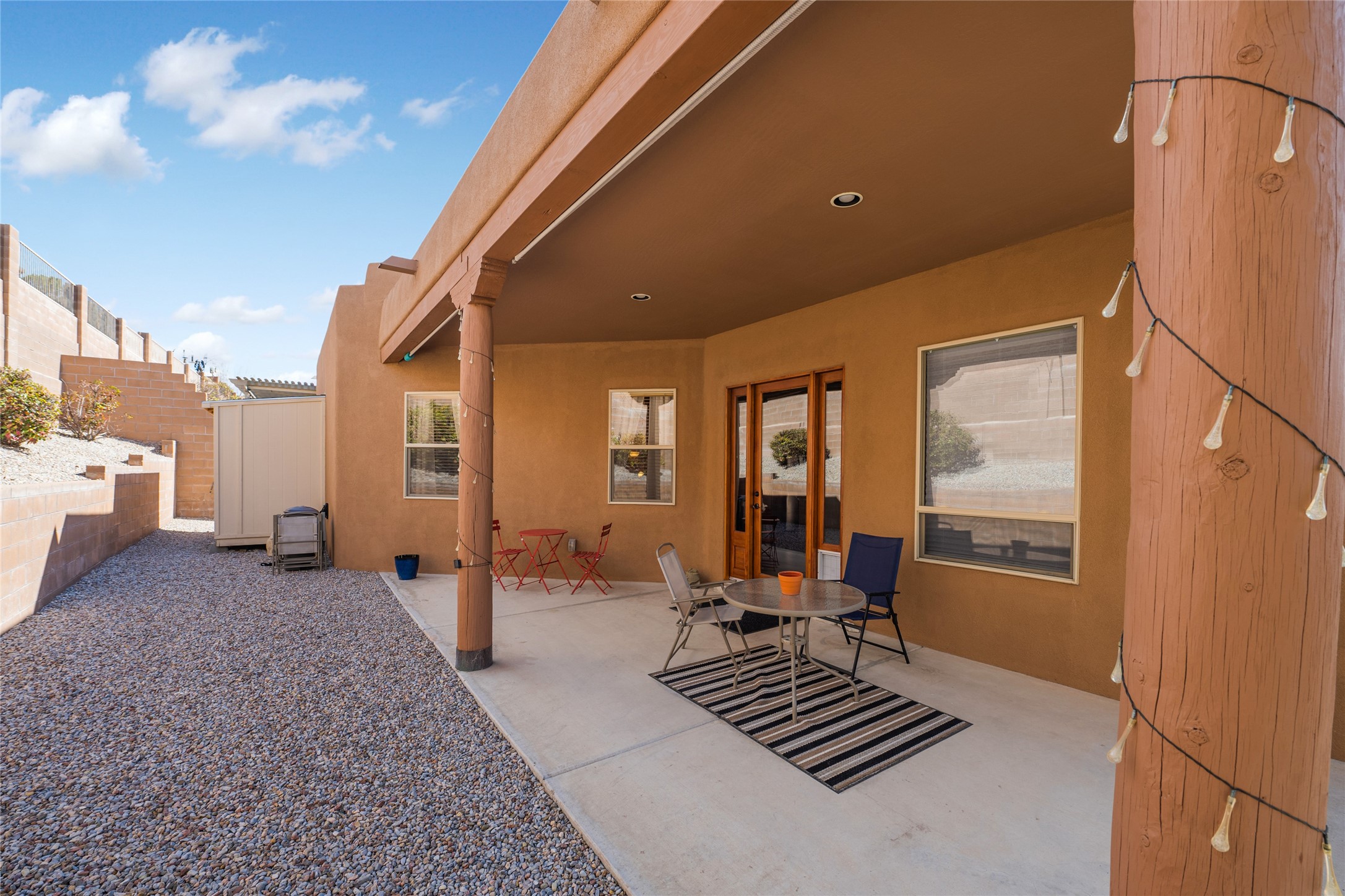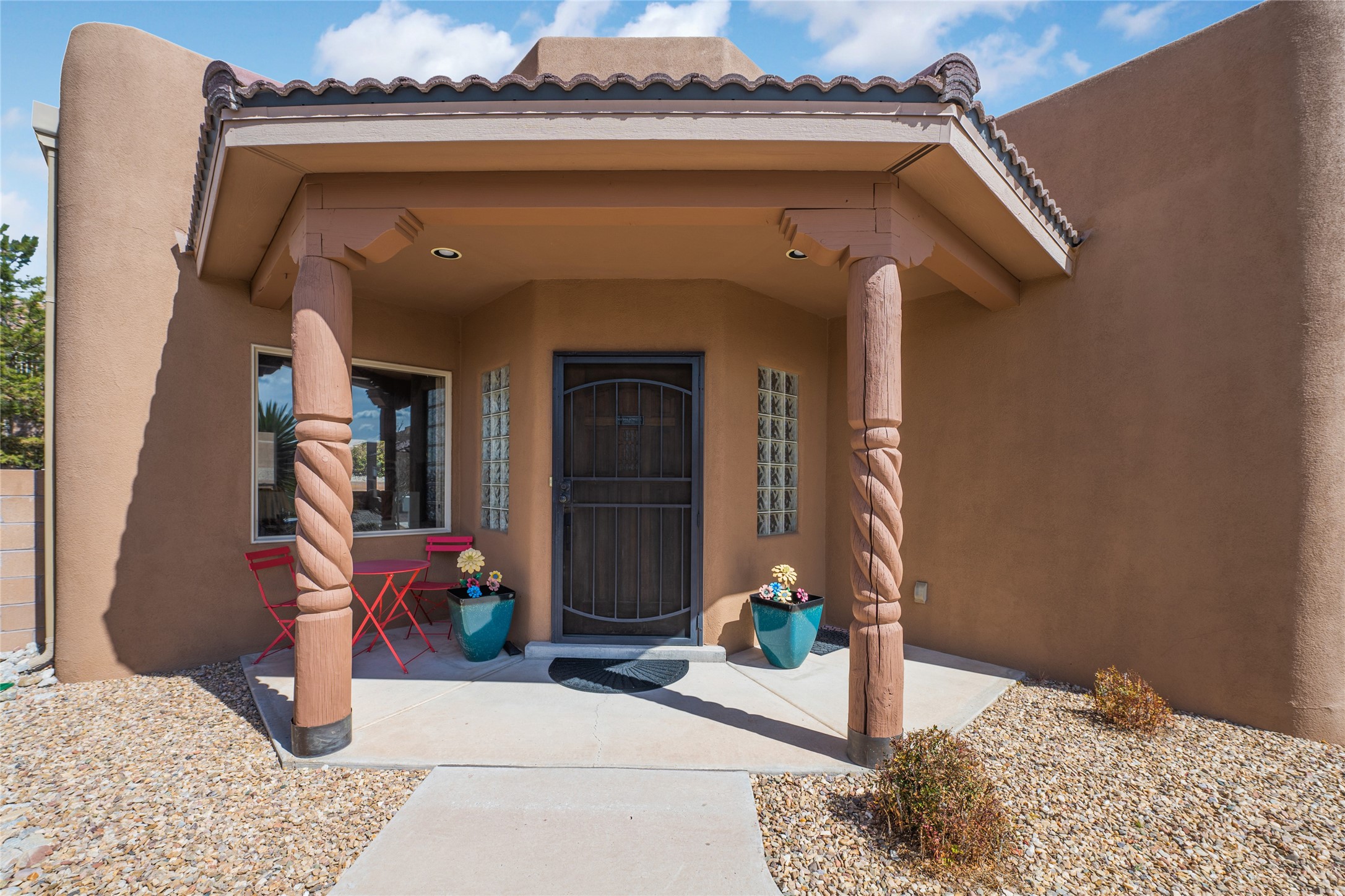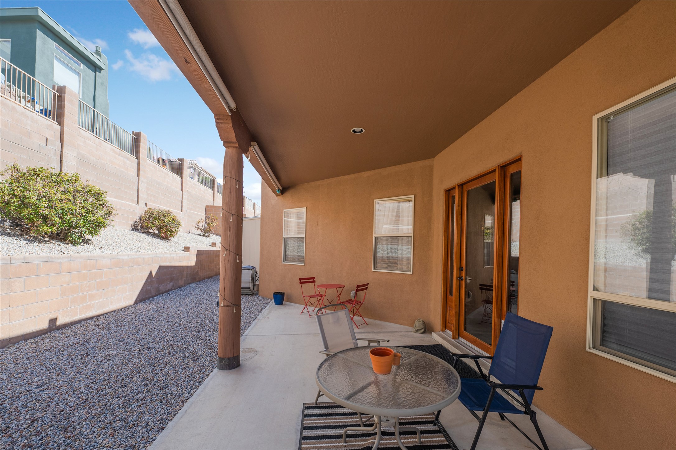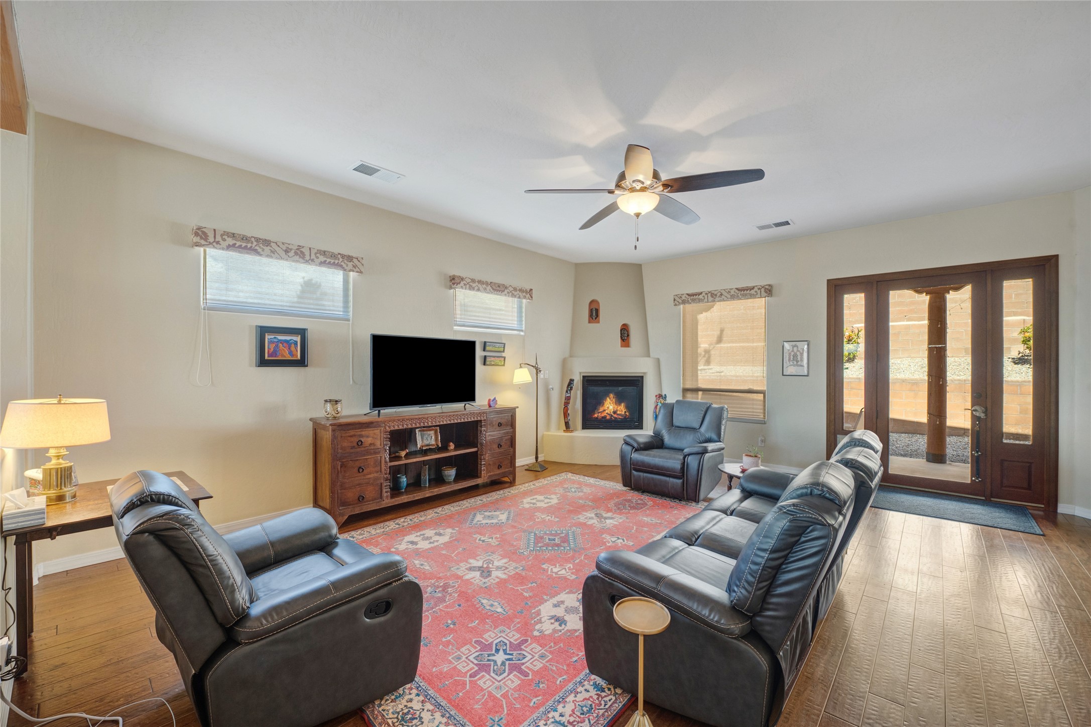 Beautiful home in Trinity Estates that offers room for all to enjoy. This open floor plan makes entertaining or enjoying family/friends a breeze. The kitchen boast stainless steel appliances, granite counter tops, custom lighting and eating bar. Living room opens up to the dining room and kitchen. Warm yourself by the kiva fire place and put your art work in the nichos for all to enjoy. Primary bedroom is spacious enough for a sitting area to enjoy and relax. Soak the day away in your garden tub. No carpet. Relax in your backyard under the covered outdoor patio. Appliances are newer and the refrigerator, washer/dryer are all 2 years old - conveying with the home. Nice three car garage gives added space for storage or the extra vehicle. Commute with ease. Come by and stay awhile, you won't be disappoint
