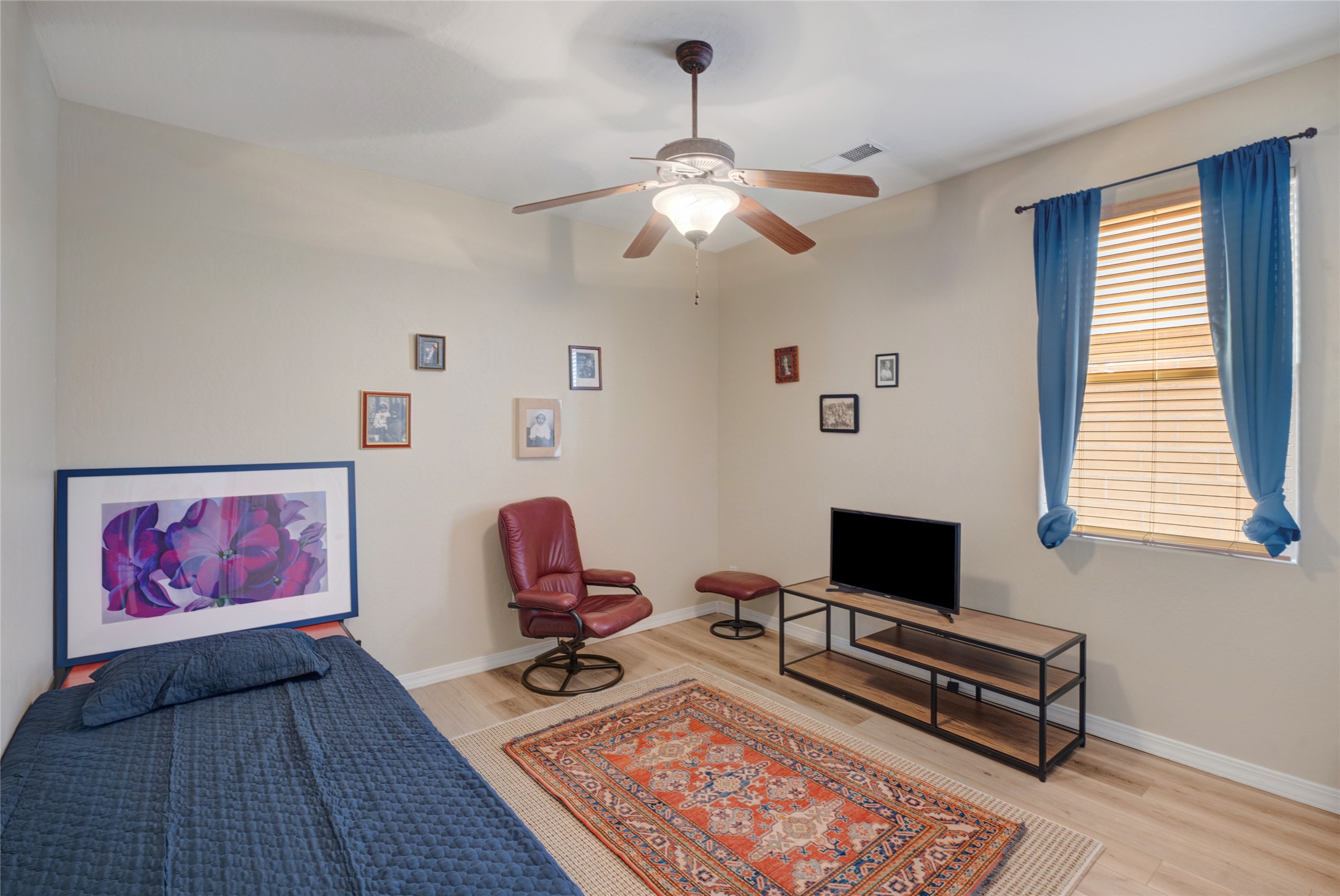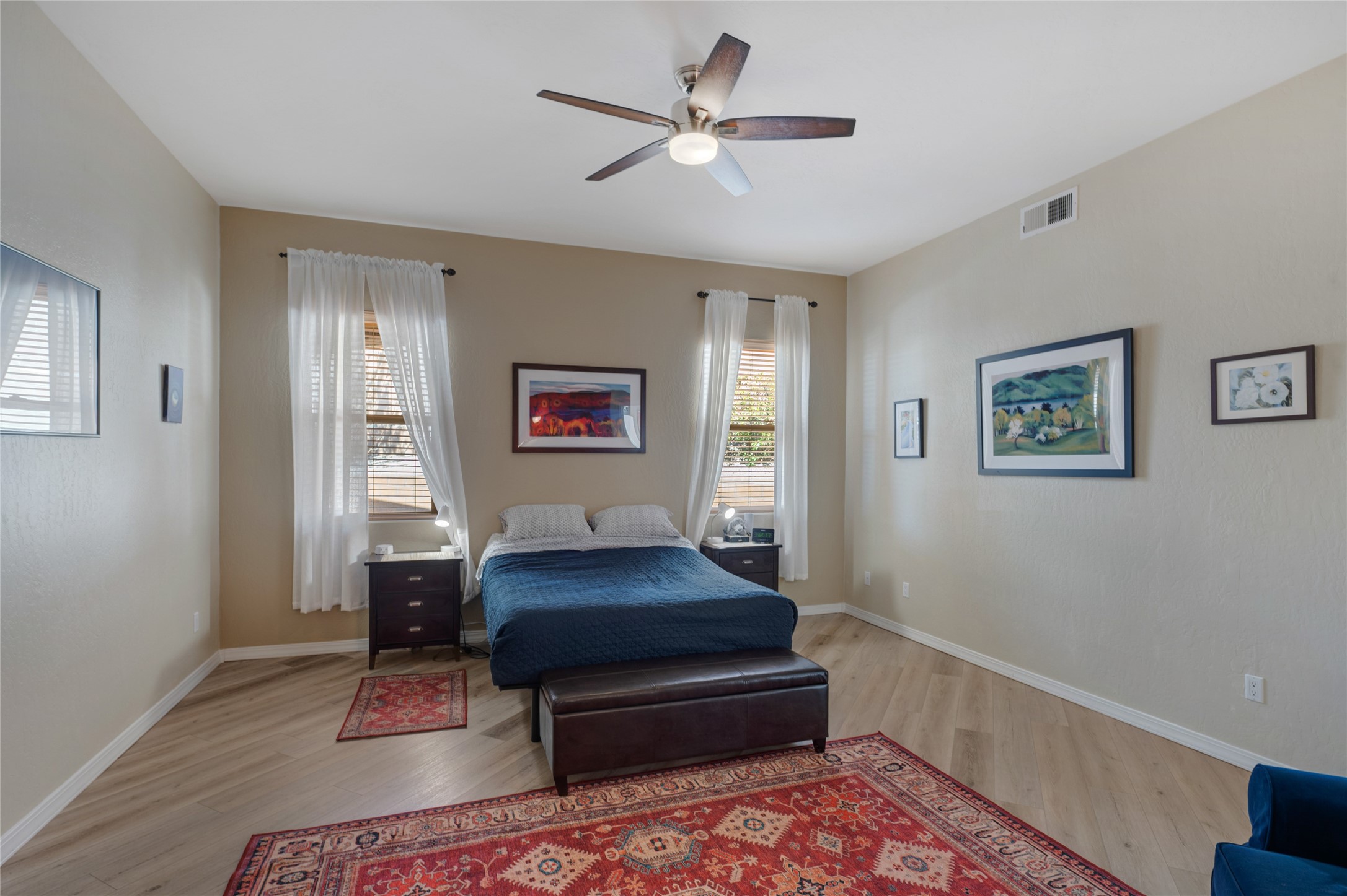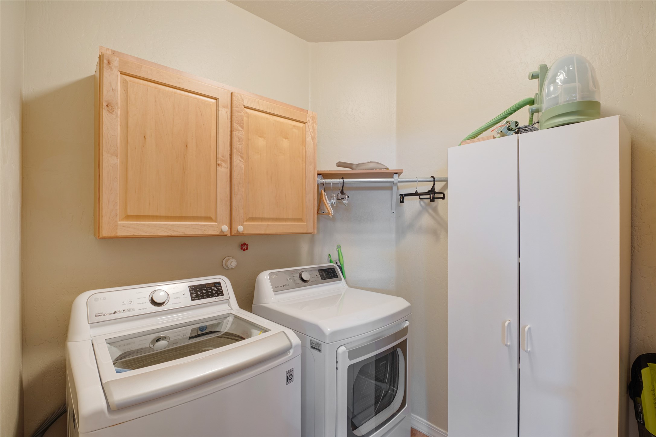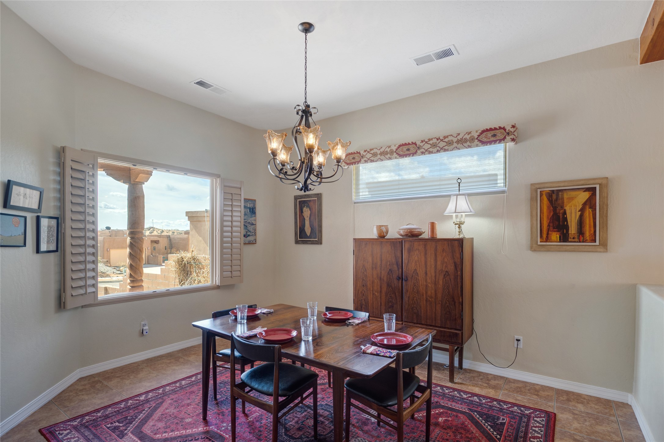 Beautiful home in Trinity Estates that offers room for all to enjoy. This open floor plan makes entertaining or enjoying family/friends a breeze. The kitchen boast stainless steel appliances, granite counter tops, custom lighting and eating bar. Living room opens up to the dining room and kitchen. Warm yourself by the kiva fire place and put your art work in the nichos for all to enjoy. Primary bedroom is spacious enough for a sitting area to enjoy and relax. Soak the day away in your garden tub. No carpet. Relax in your backyard under the covered outdoor patio. Appliances are newer and the refrigerator, washer/dryer are all 2 years old - conveying with the home. Nice three car garage gives added space for storage or the extra vehicle. Commute with ease. Come by and stay awhile, you won't be disappoint