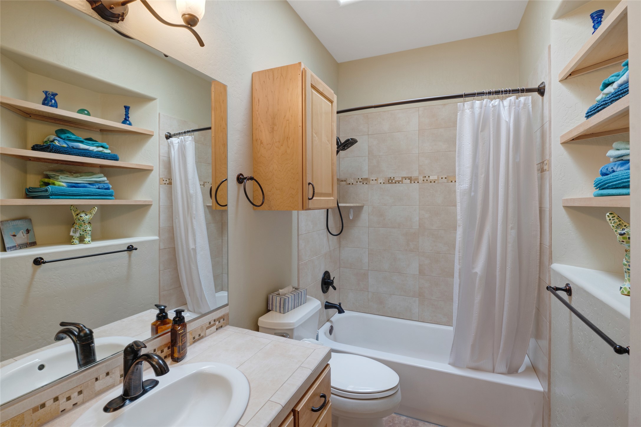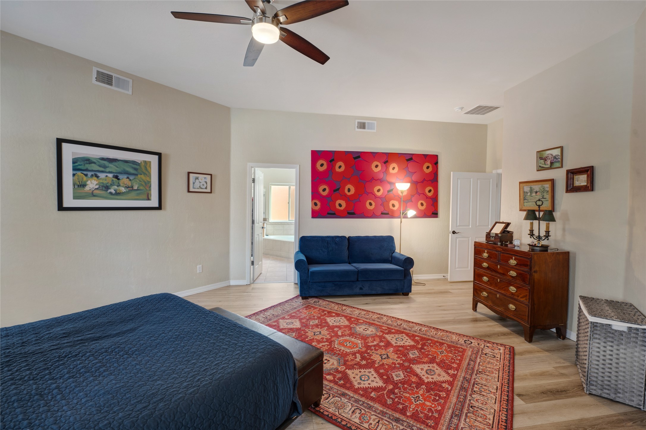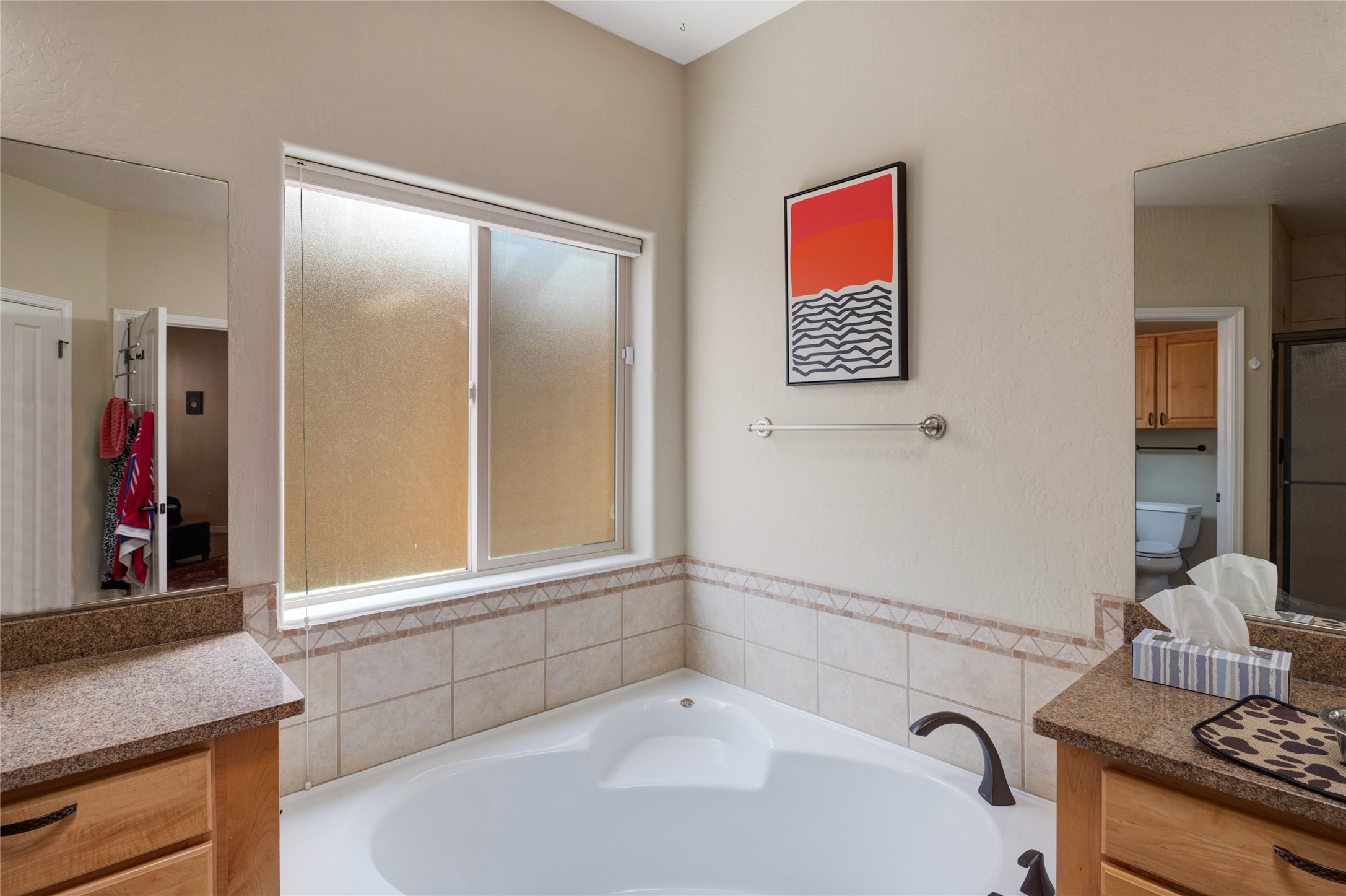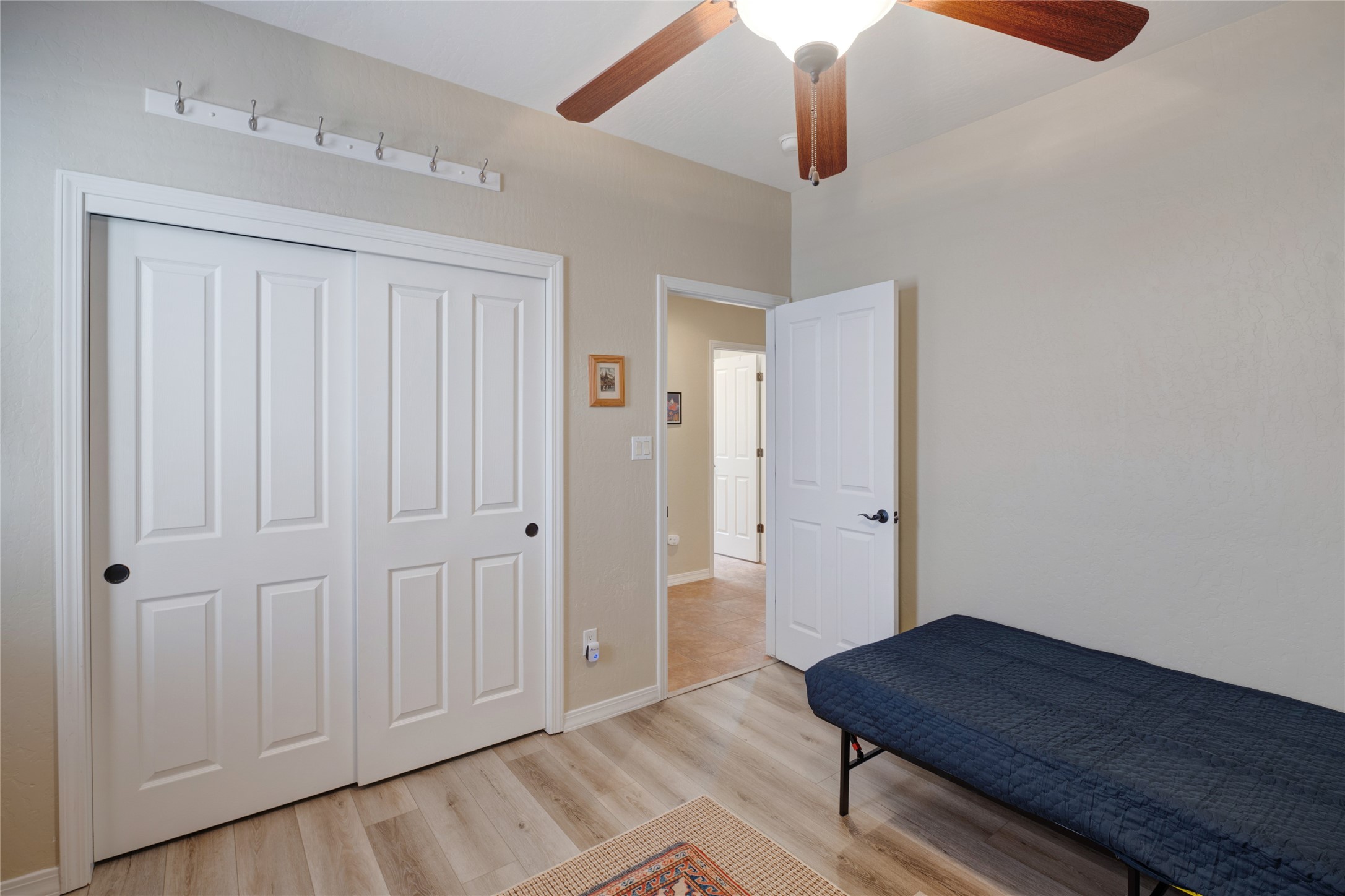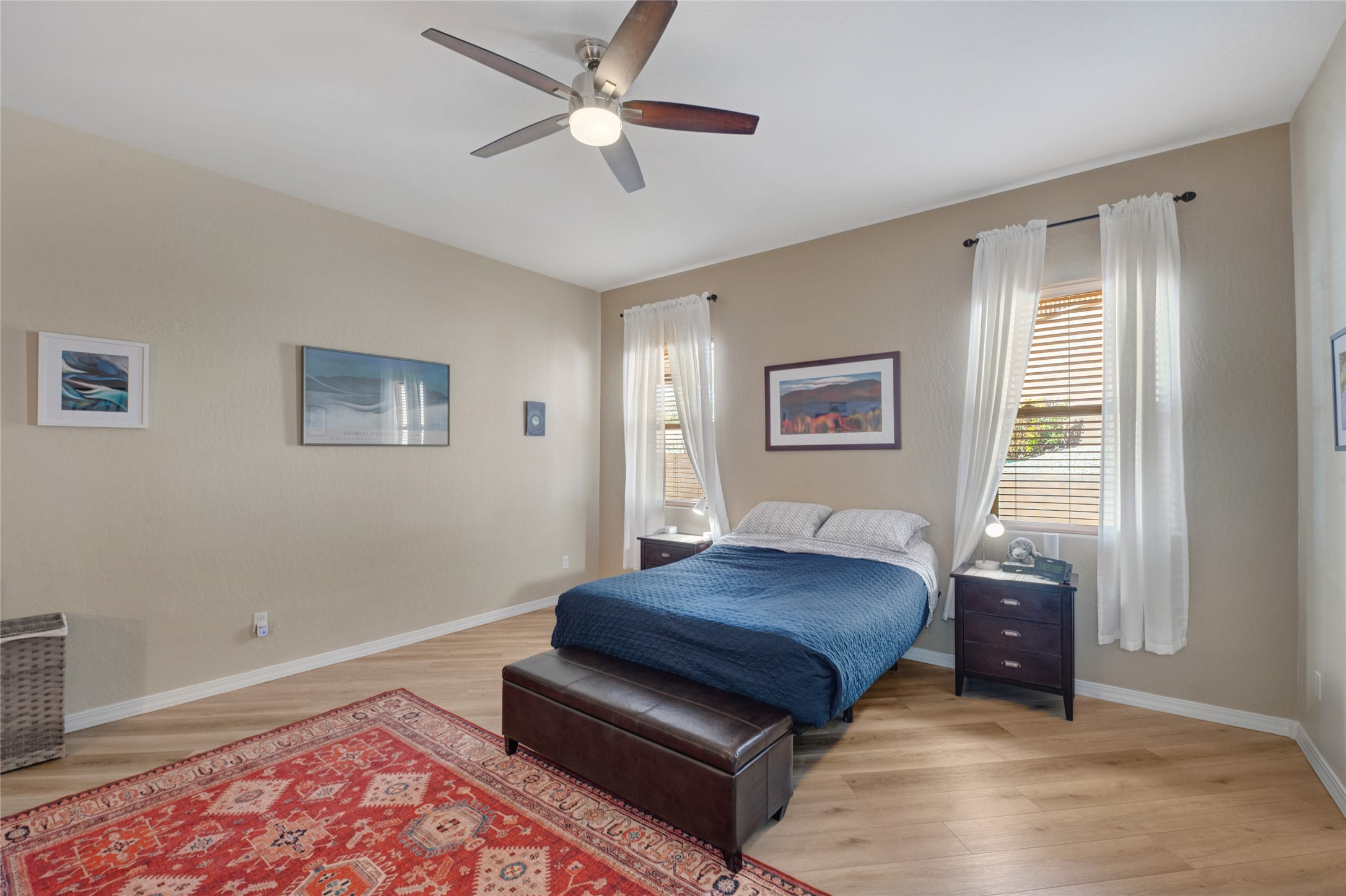 Beautiful home in Trinity Estates that offers room for all to enjoy. This open floor plan makes entertaining or enjoying family/friends a breeze. The kitchen boast stainless steel appliances, granite counter tops, custom lighting and eating bar. Living room opens up to the dining room and kitchen. Warm yourself by the kiva fire place and put your art work in the nichos for all to enjoy. Primary bedroom is spacious enough for a sitting area to enjoy and relax. Soak the day away in your garden tub. No carpet. Relax in your backyard under the covered outdoor patio. Appliances are newer and the refrigerator, washer/dryer are all 2 years old - conveying with the home. Nice three car garage gives added space for storage or the extra vehicle. Commute with ease. Come by and stay awhile, you won't be disappoint