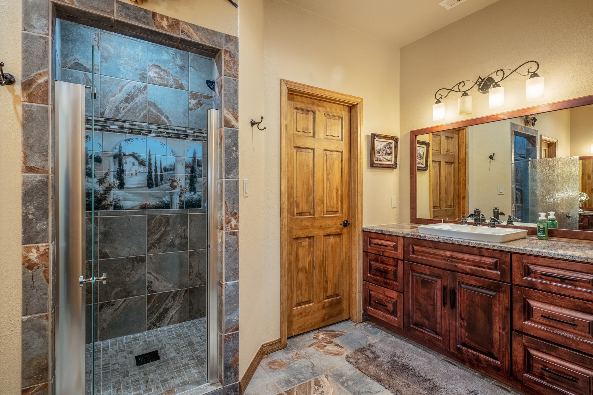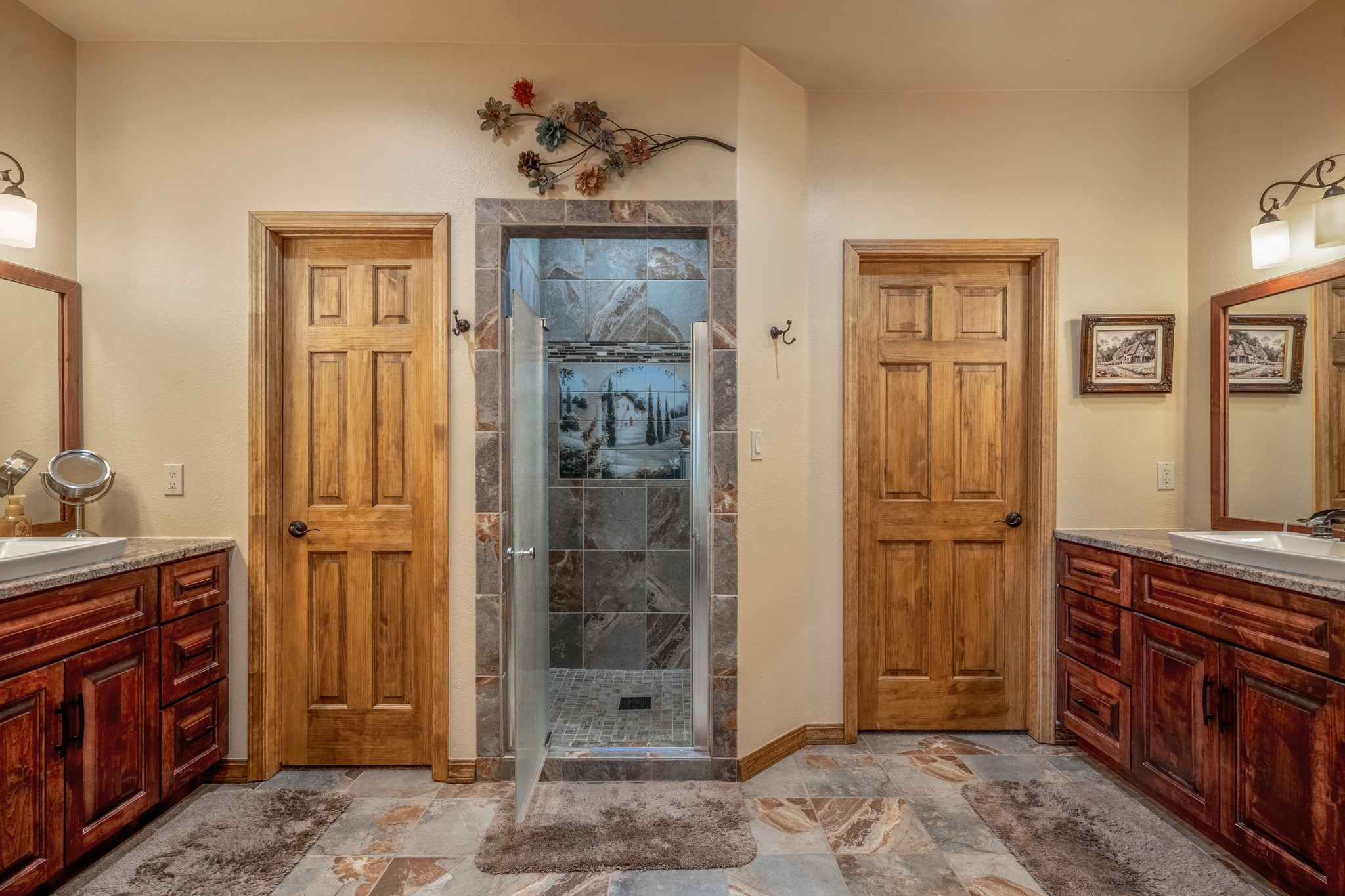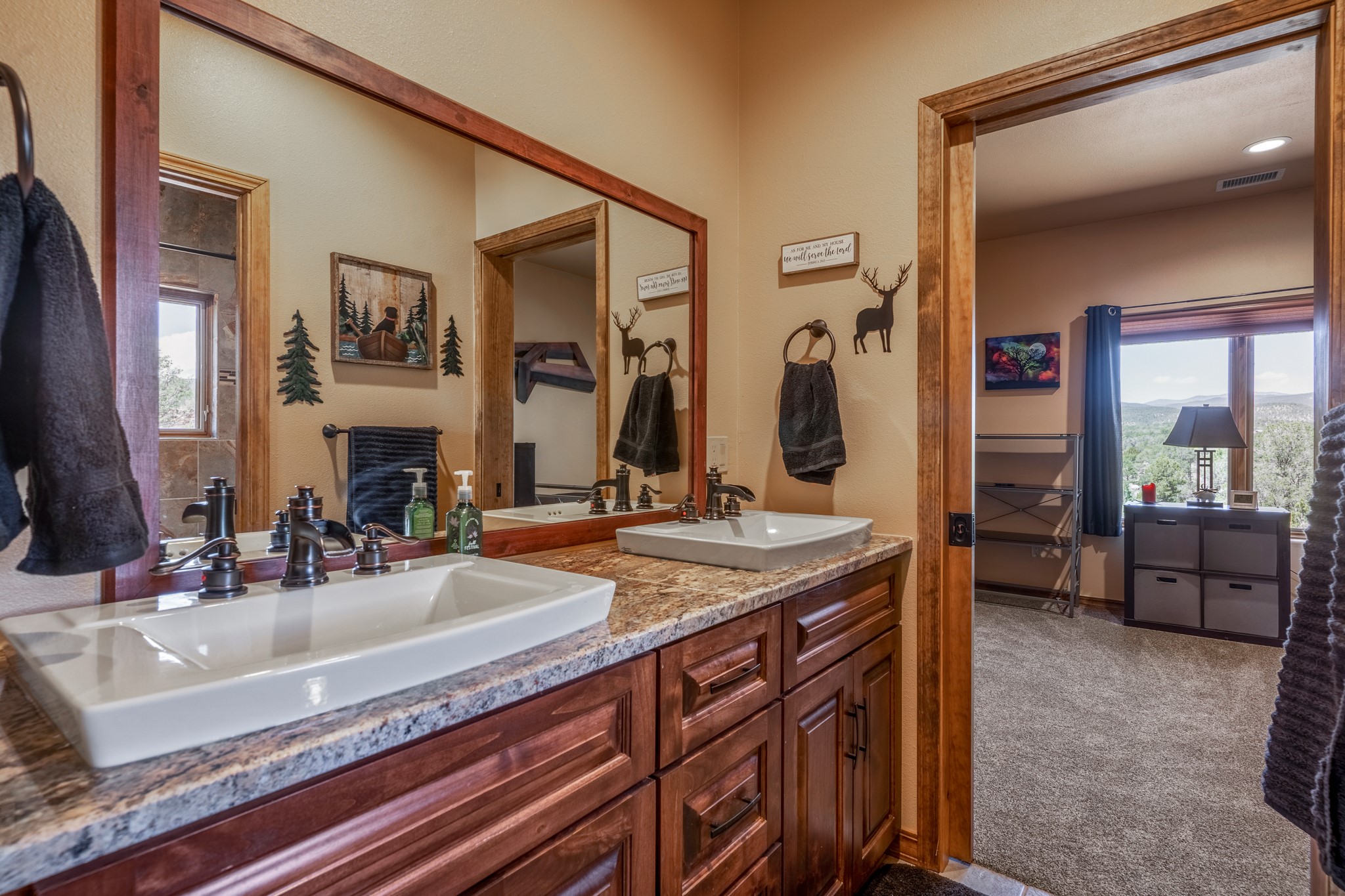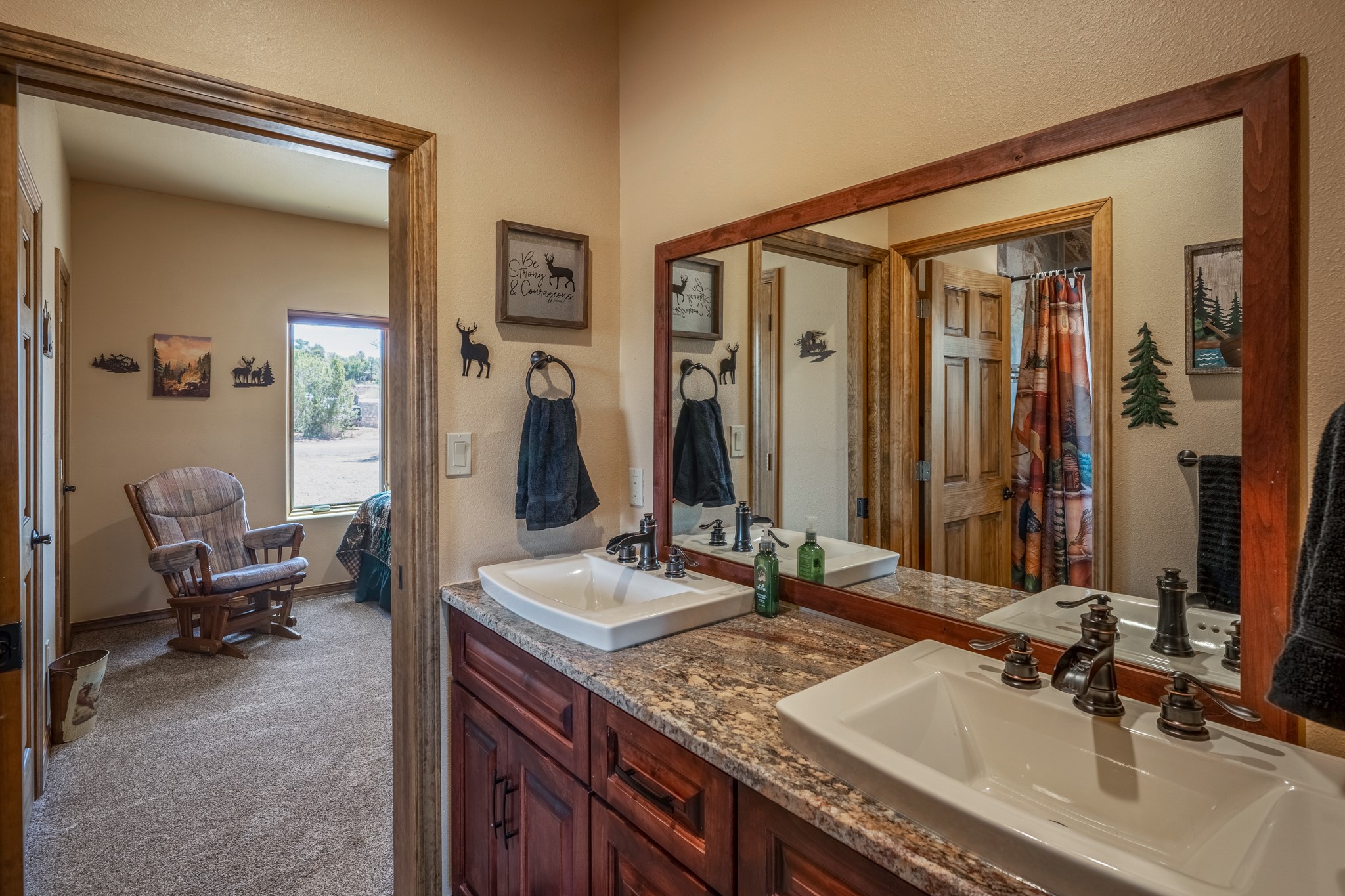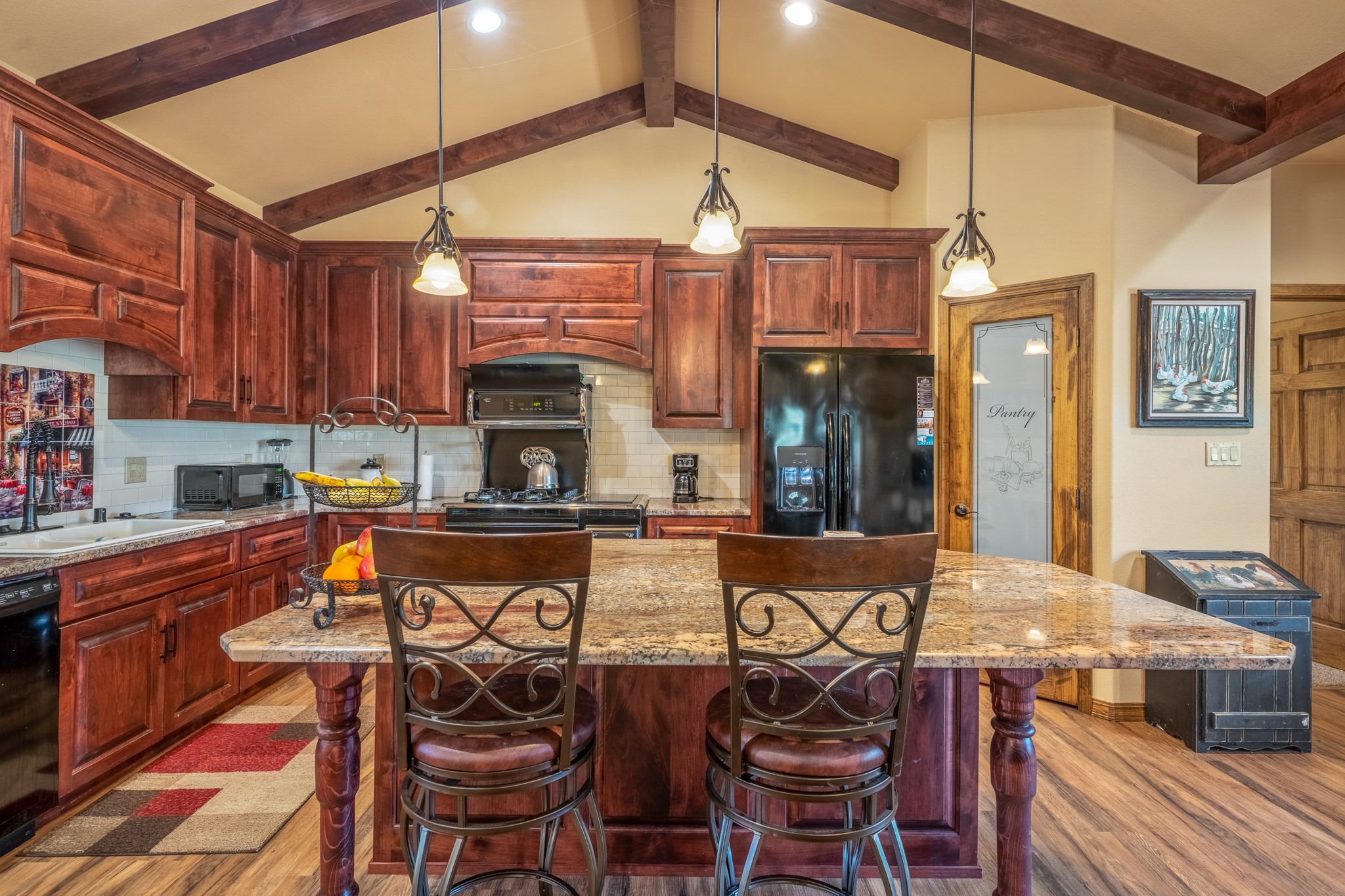 Gorgeous Pecos gem built in 2021 with wonderful views approximately 20 minutes from Santa Fe and is sited on a bit over an acre boasting 2312 +/- square feet, 3 bedrooms plus an office/work out room/playroom or a possible 4th bedroom, 3 bathrooms, and a direct entry finished 2-car garage into the large laundry room with granite counters and cabinets. This single level home offers an open concept kitchen with can and pendant lighting, beautiful granite counters, a huge island, soft close drawers and cabinets, eat-in kitchen nook and pantry. The living room with tall ceiling has wood beams and doors leading to the large rear covered porch perfect for viewing the amazing views. The split bedroom floorplan is perfect for privacy. The large owner's suite has an en-suite bath with dual sinks, granite counters, tiled shower, his and hers walk-in closets with built-ins and 2 separate commode closets. On the opposite side of the home, you will find 2 good sized guest bedrooms (1 with 2 walk-in closets) with a jack and jill full bath with double sinks and granite counters. The home has the Village of Pecos water and sewer, Mora San Miguel electric and propane for gas. Amenities/Features: Wood doors-Forced air heat with central refrigerated air conditioning-Pitched pro-panel roof-Pella windows and doors throughout-Formal dining room-Front and rear covered porches-Tile and wood laminate flooring and carpet in the bedrooms-Whole house water softener and so much more!