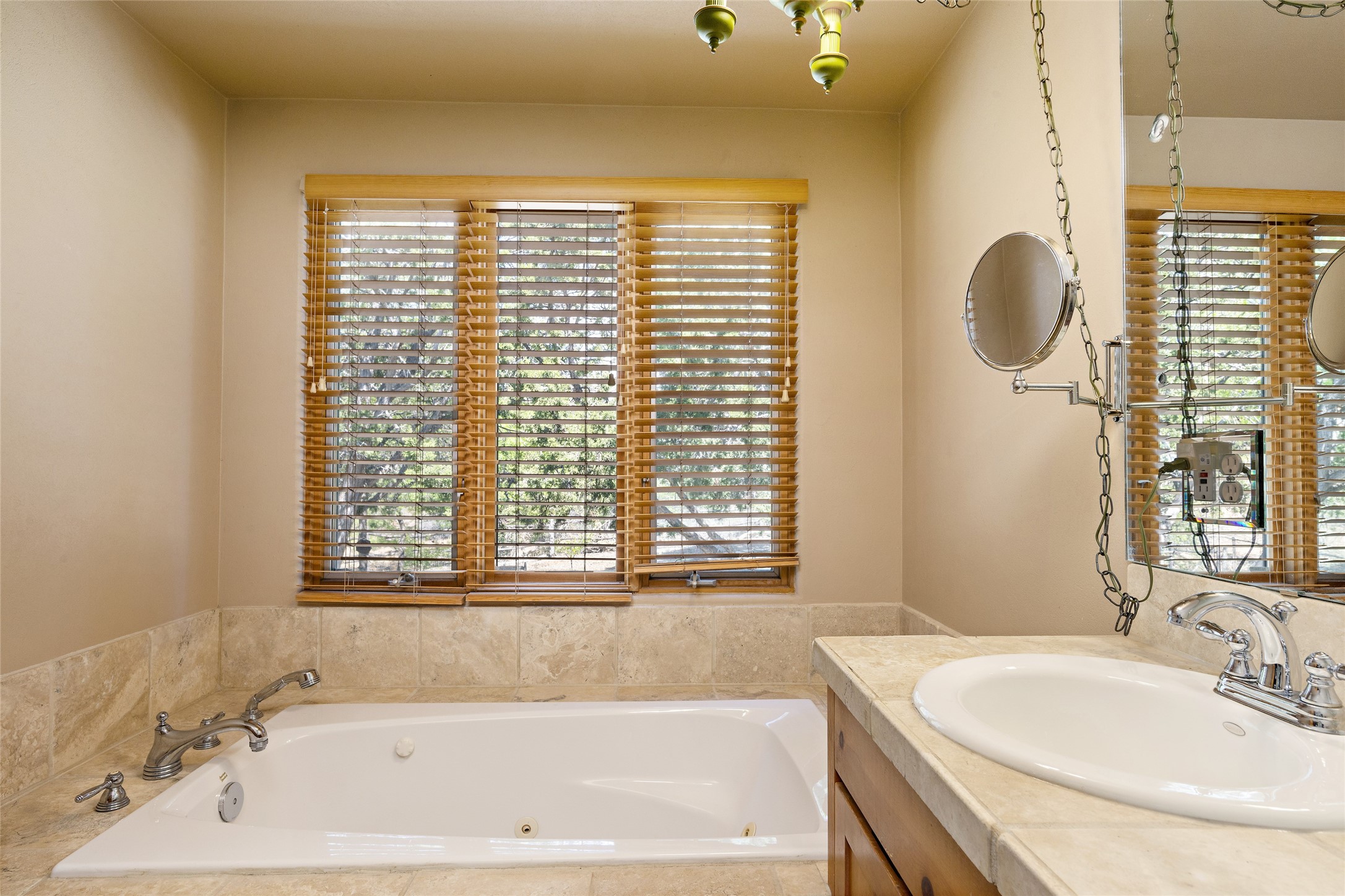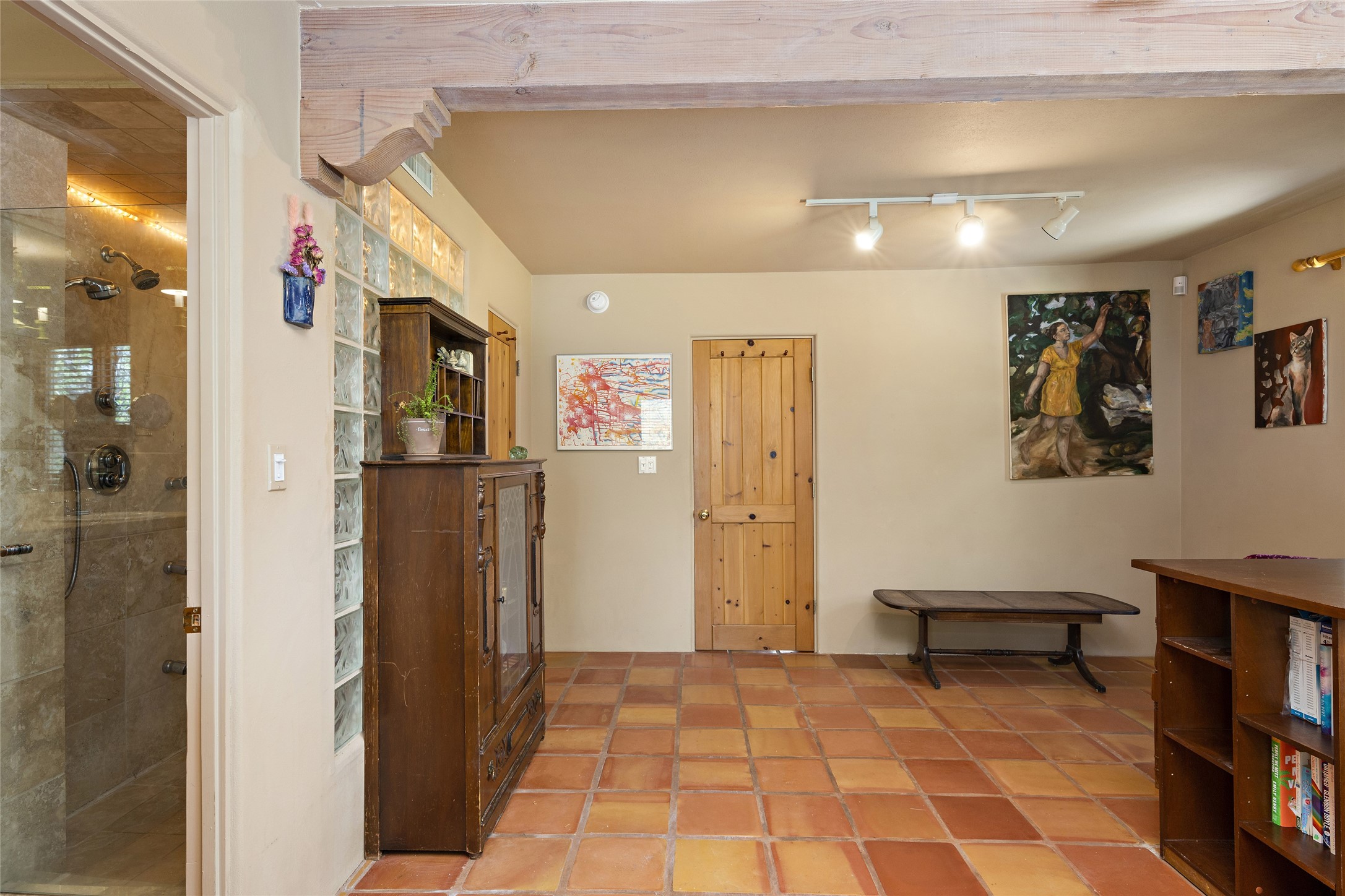 Just minutes away from the vibrant Santa Fe Plaza, this 3-bedroom, 3-bathroom home is nestled in a park-like setting on a sprawling .72-acre lot, this property offers the perfect blend of tranquility and convenience.As you enter, you'll be greeted by an open and flowing floor plan, seamlessly connecting the living room, den, and formal dining room--a true haven for entertaining guests. The two primary suites provide a luxurious retreat, while the additional rooms can be flexibly utilized as bedrooms, studios, or separate offices, catering to your unique needs. Revel in the charm of tile flooring, complemented by the elegance of some beam ceilings and the warmth of two Kiva fireplaces. A walled courtyard off the front primary suites adds a touch of serenity and seclusion to your living space.The home boasts a large backyard, perfect for outdoor activities and relaxation. Additionally, a long Portal enhances the comfort of the home during the delightful spring and summer months, offering an ideal setting for al fresco dining, grilling, and entertaining guests. The established landscaping, gardens, and raised beds provide opportunities for those with a green thumb to indulge in their passion.This home has been thoughtfully upgraded over time, ensuring modern comfort and functionality. The generously sized rooms provide ample space, while the bathrooms boast walk-in showers, adding a touch of luxury to your daily routine.Seize the opportunity to explore this captivating property today and discover if it's the perfect fit for you. Schedule a visit and embark on a journey to witness the timeless charm and remarkable features that make this home a true gem.