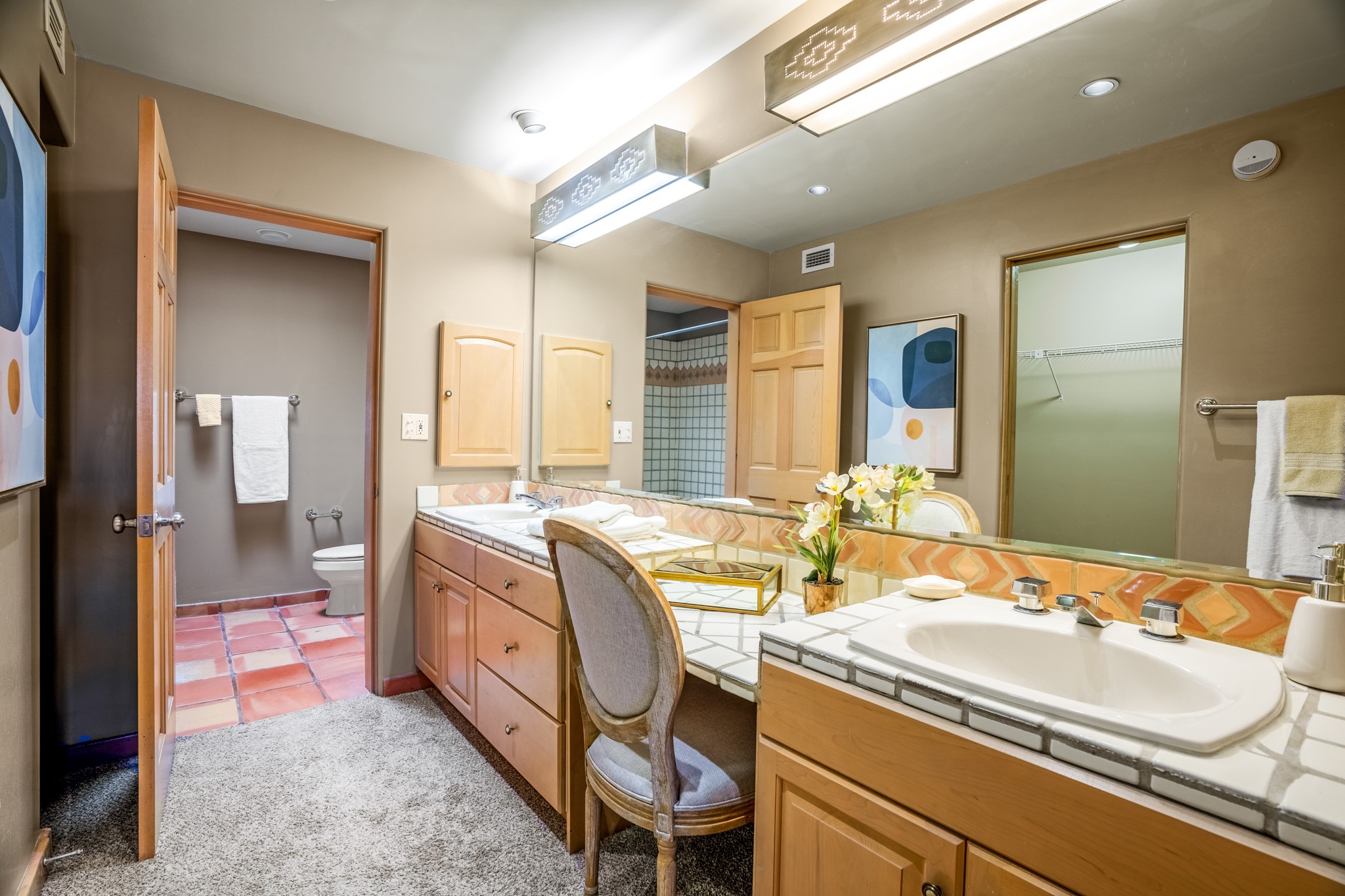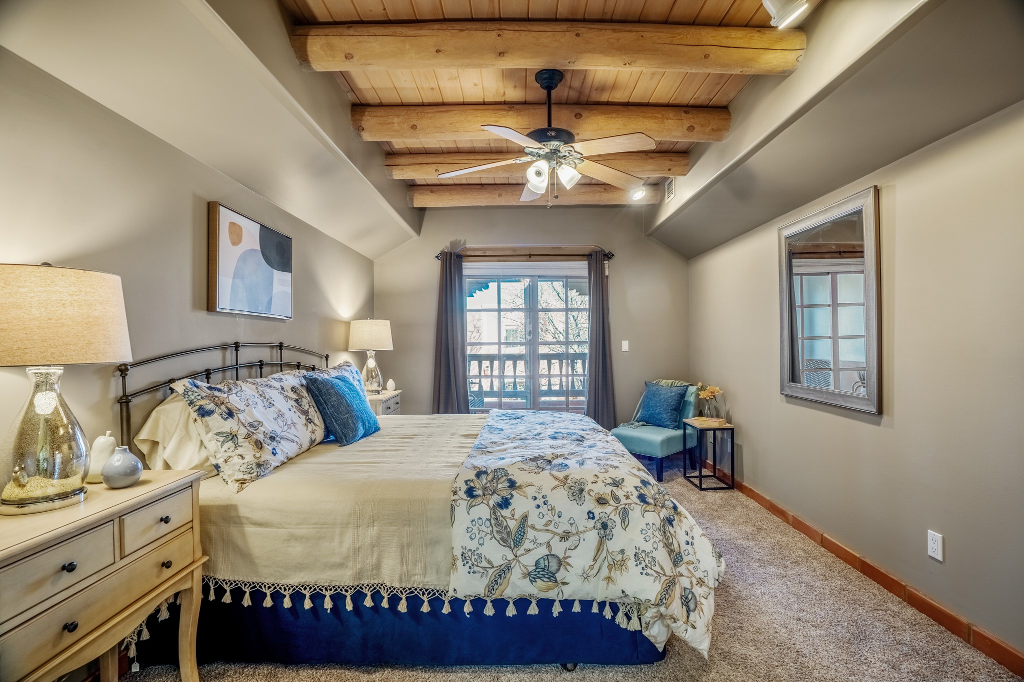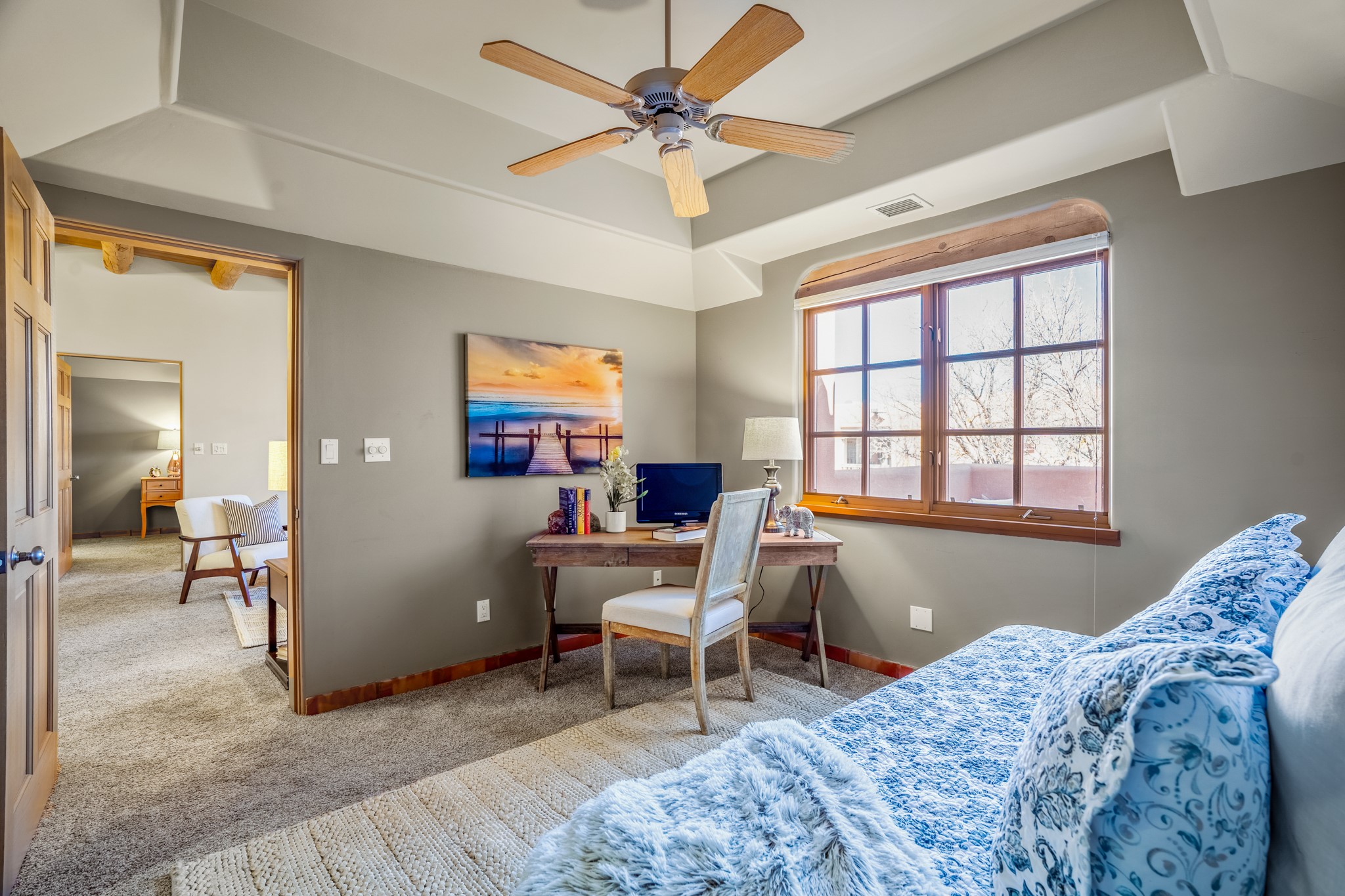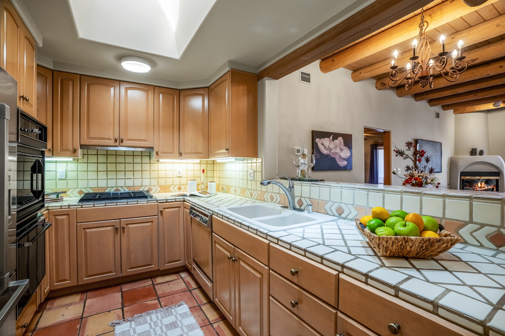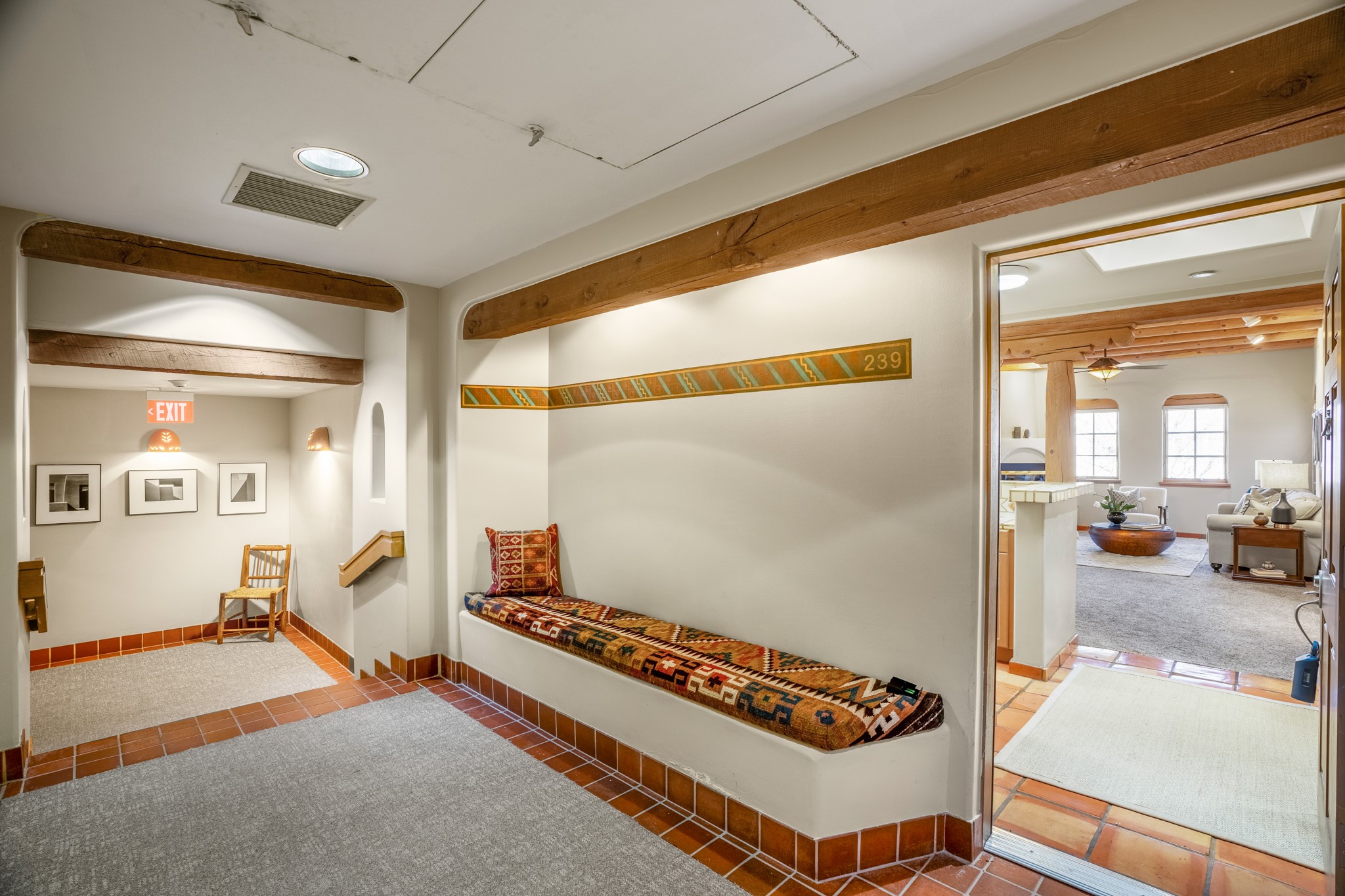 Resort Style living only minutes from the downtown. Welcome home to this second floor condo, three steps from the elevator. This unit embodies Santa Fe Style with vigas, saltillo tile and a kiva fireplace. There are two bedrooms and two balconies, one is oversized and covered. Come join Quail Run which offers community in a space that accommodates the times you need privacy and quiet. Ownership includes all of Quail Run's top notch amenities including golf, fitness, indoor pool, spa, gym, pickleball and more. 24 hour hosted security and stunning grounds, Quail Run remains one of a kind.