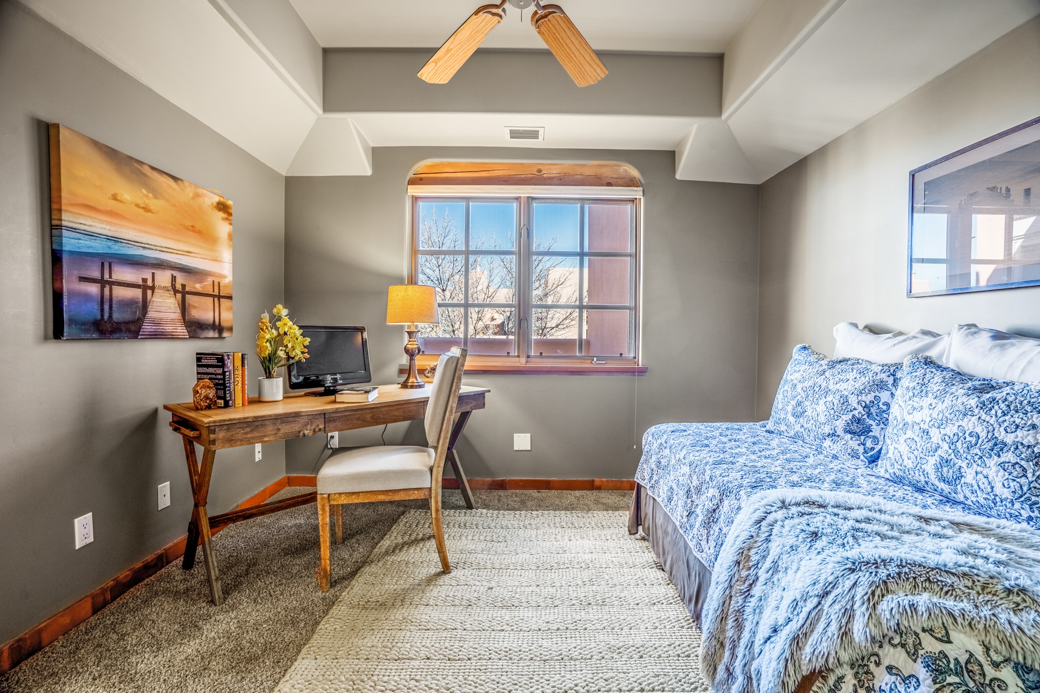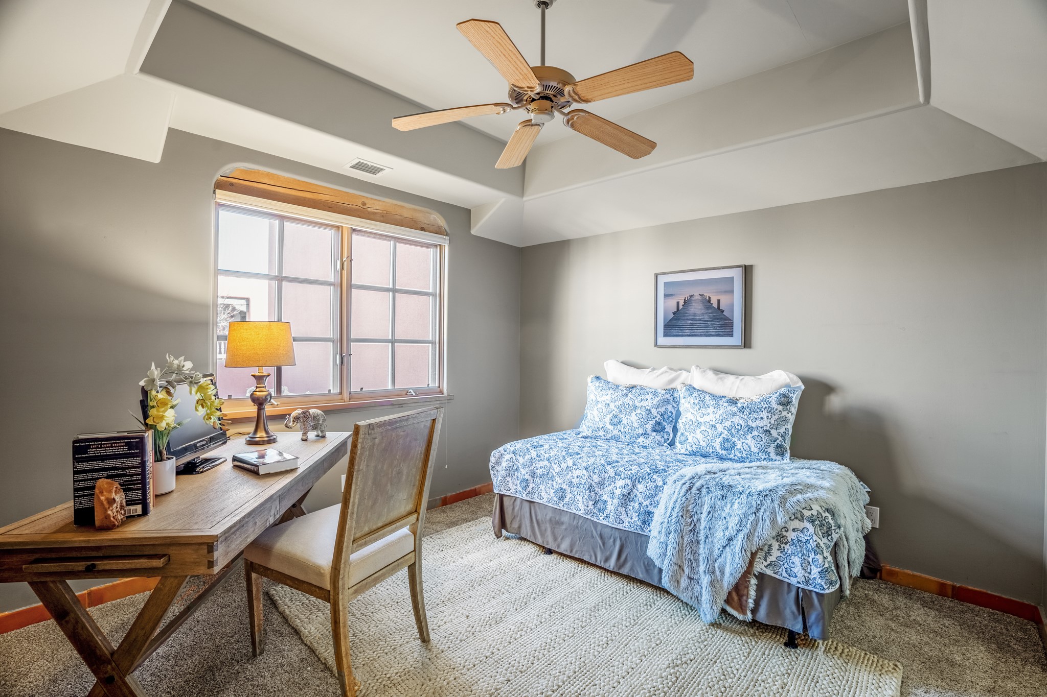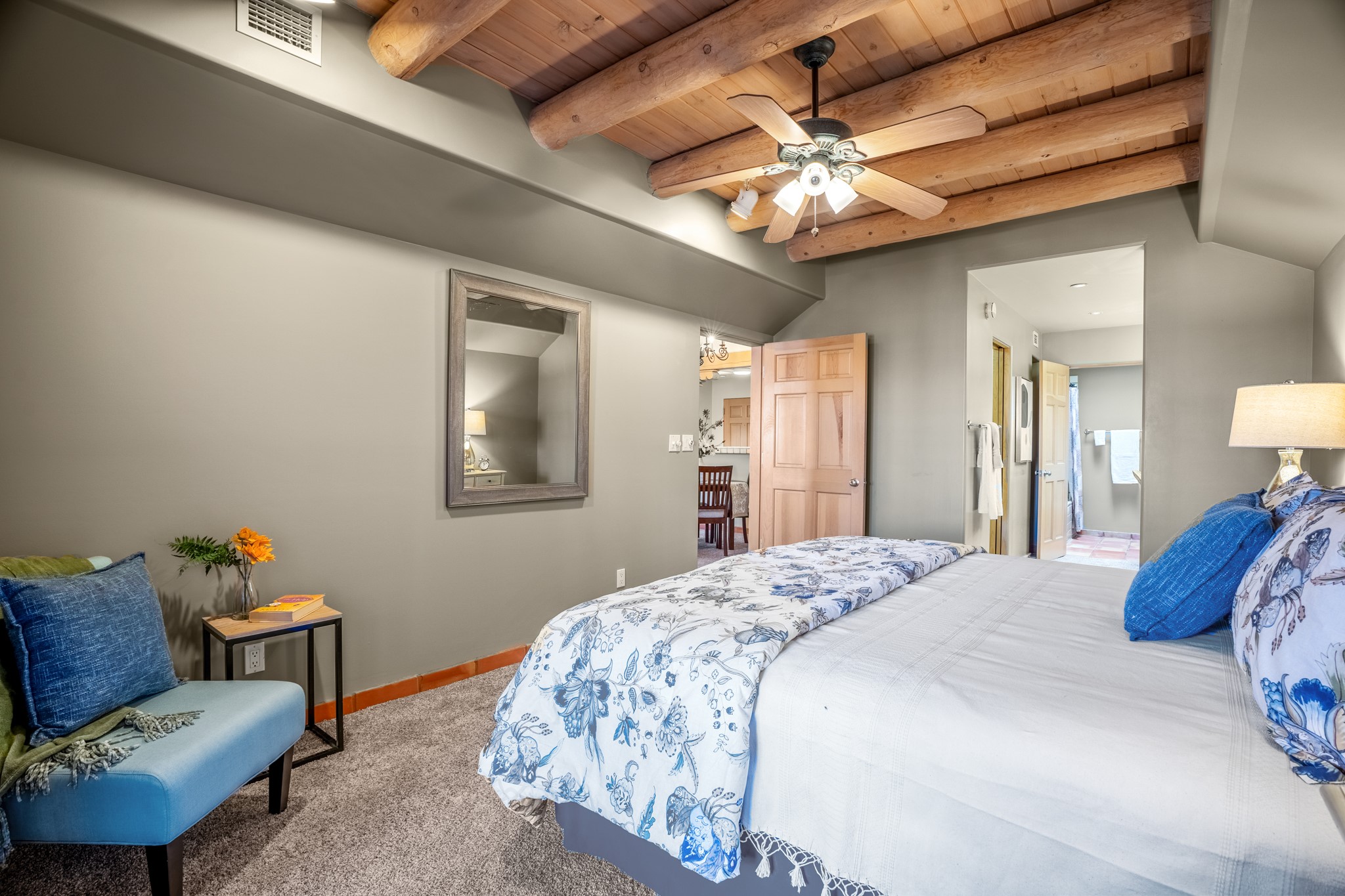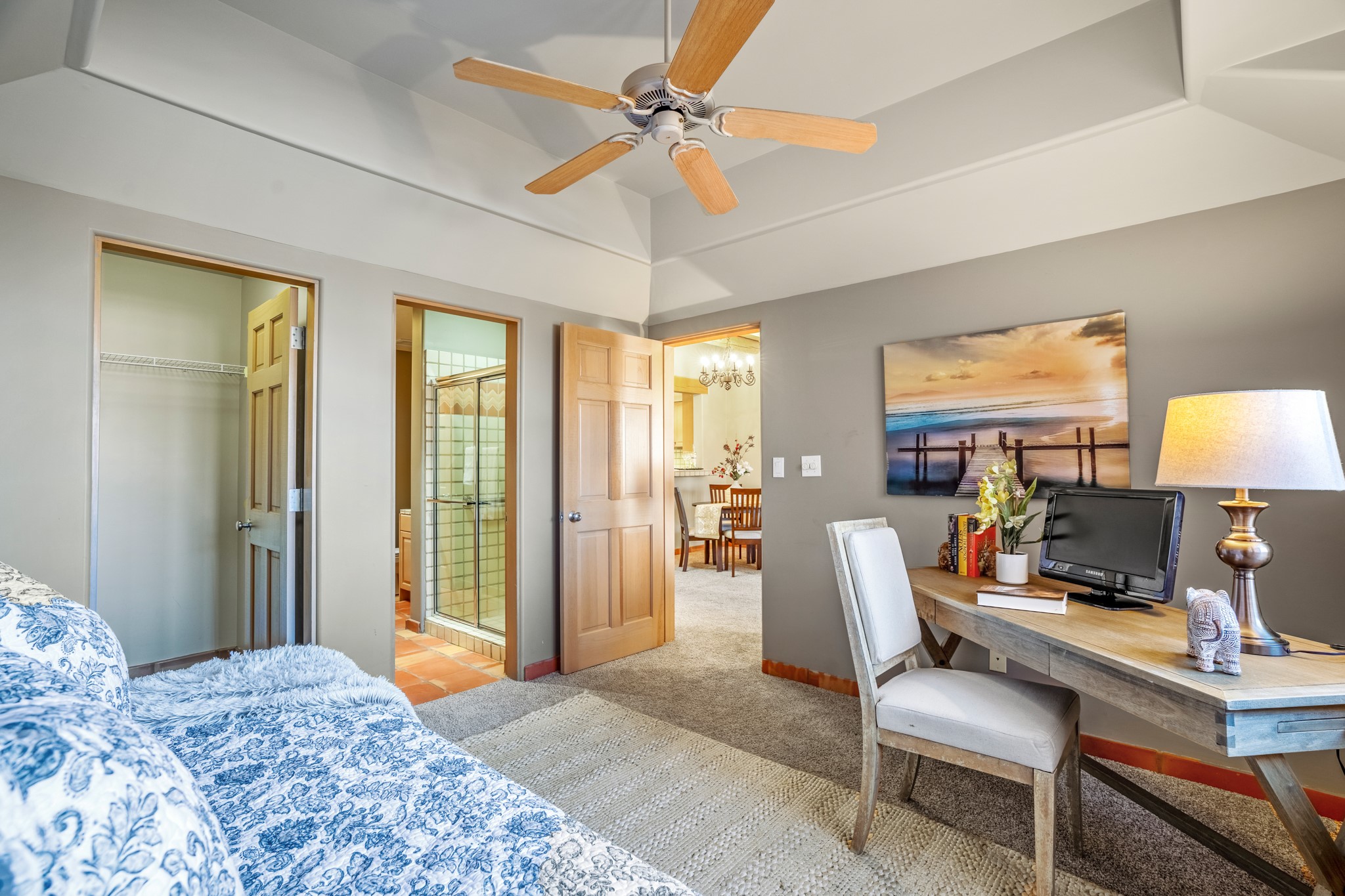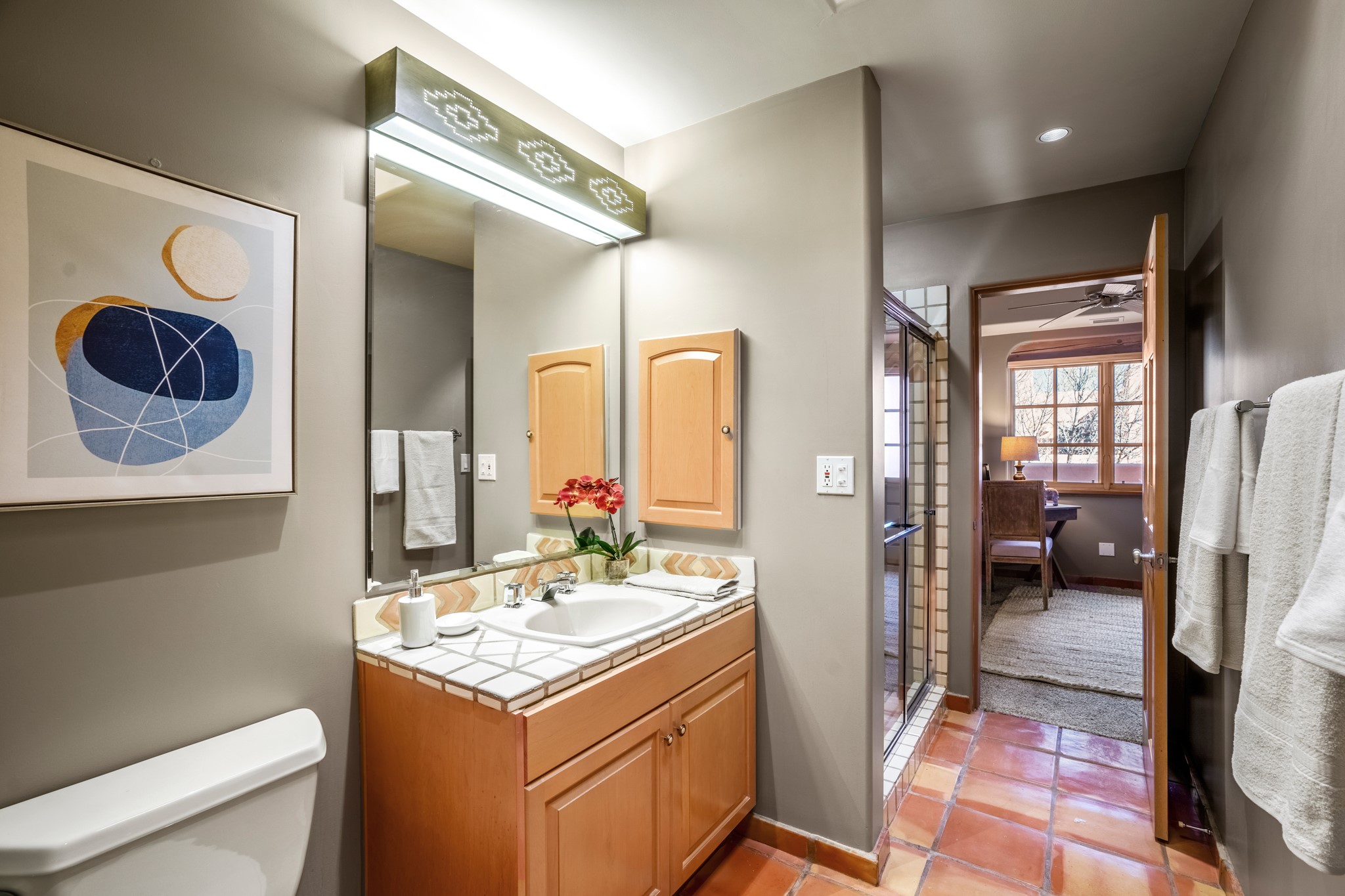 Resort Style living only minutes from the downtown. Welcome home to this second floor condo, three steps from the elevator. This unit embodies Santa Fe Style with vigas, saltillo tile and a kiva fireplace. There are two bedrooms and two balconies, one is oversized and covered. Come join Quail Run which offers community in a space that accommodates the times you need privacy and quiet. Ownership includes all of Quail Run's top notch amenities including golf, fitness, indoor pool, spa, gym, pickleball and more. 24 hour hosted security and stunning grounds, Quail Run remains one of a kind.
