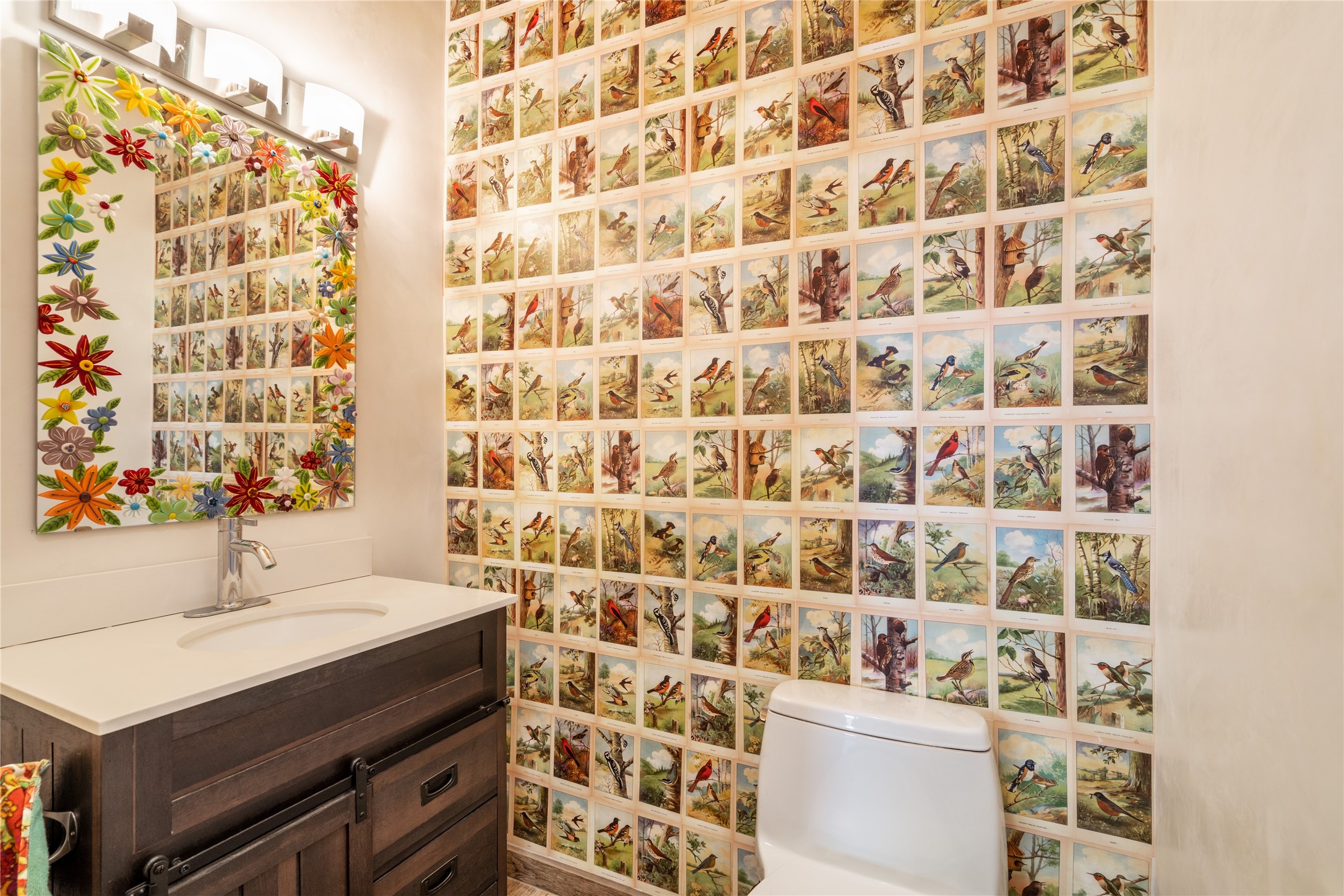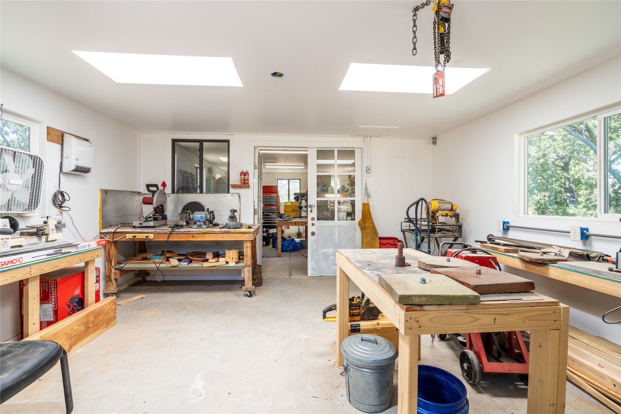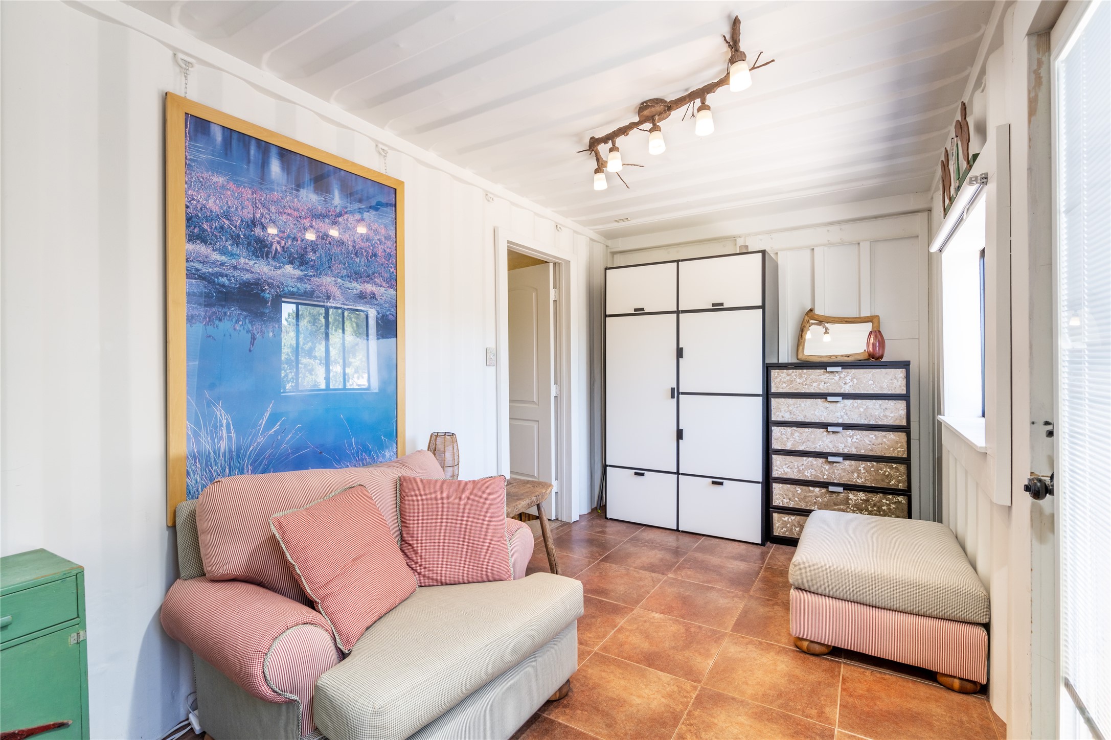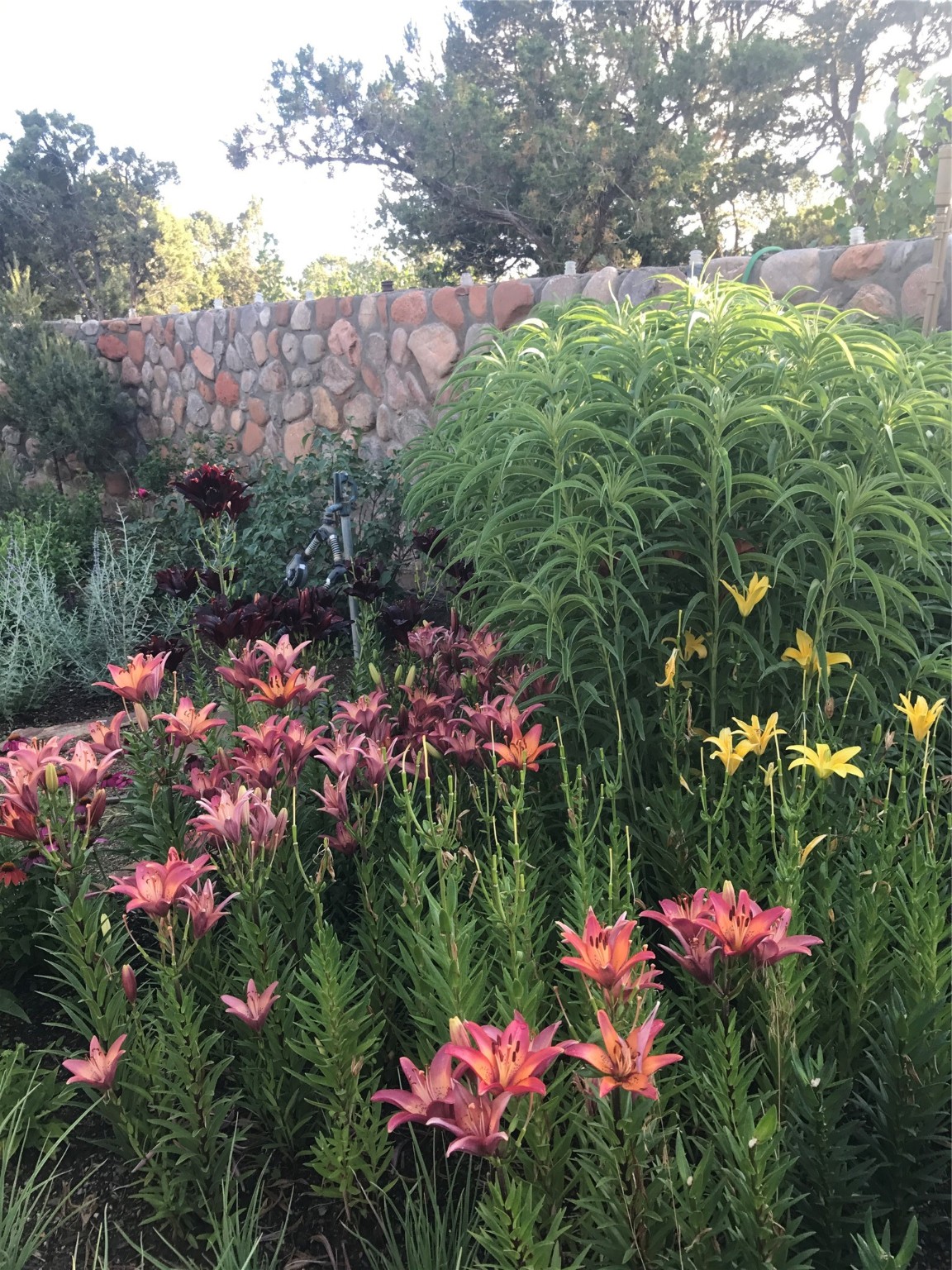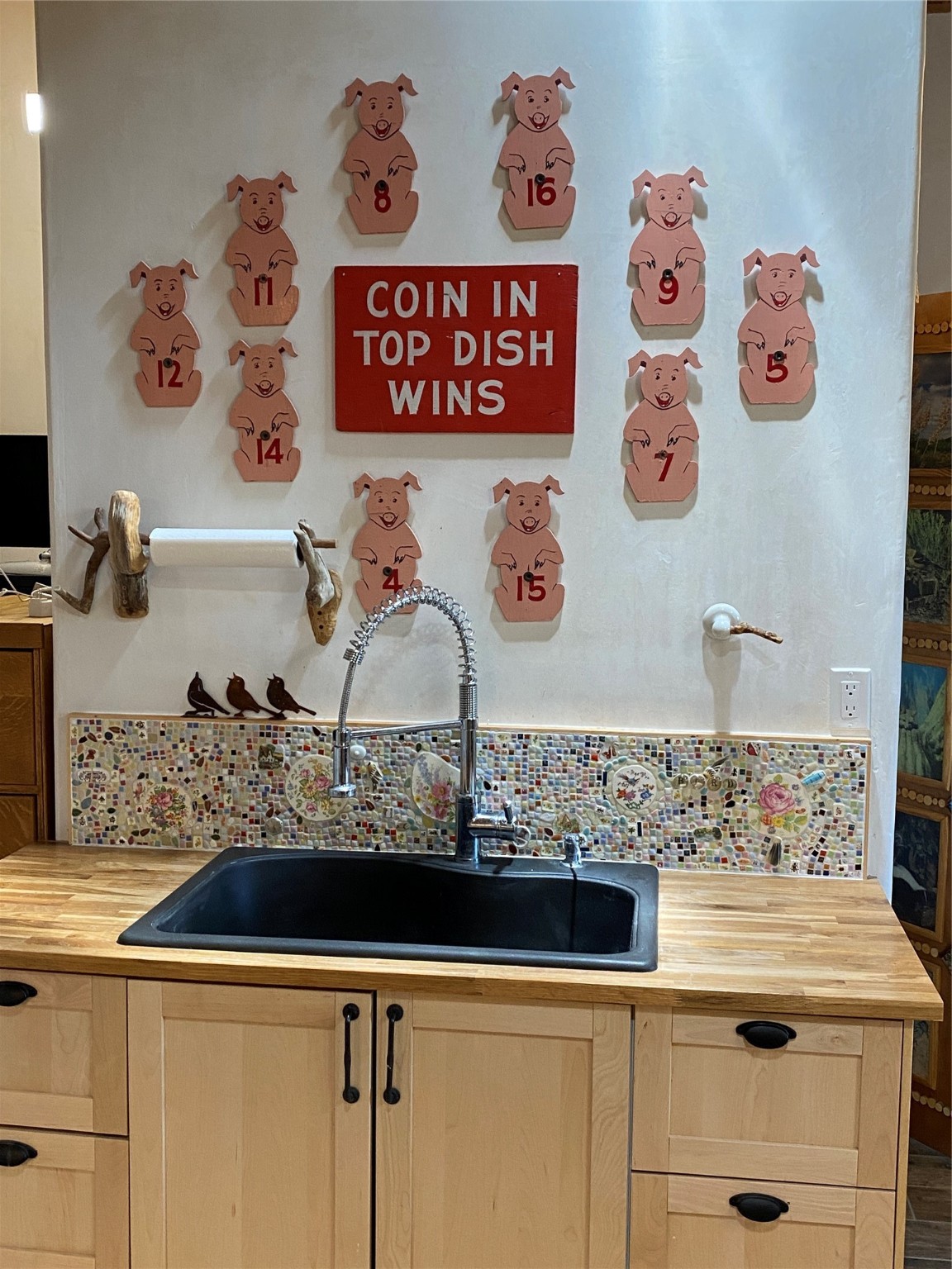 Welcome to this custom and unique gated compound on 5.76 acres just off the Old Santa Fe Trail. Built in 2016, the celebrated designer Todd Oldham credits his parents Linda and Jack Oldham with creating an "incubator of creativity." This fully fenced property features a pitched roof main house, a glass house with salvaged stained glass windows, a container modified into a hip, log cabin casita, a green house, an art house/studio, a wood shop, barn and stable. Lush and mature landscaping throughout with gardens galore and extensive rock work. Rare iris, mallows, clematis, plum, peach and cherry trees plus garden stone beds for growing corn, tomatoes, greens, cucumbers, sweet peas and strawberries; a true gardeners paradise. A private well with 13 acre feet of water and two, 2000 gallon tanks for efficient water reclamation. The main house at 4268 square feet has a pitched ceiling, an entry way with handmade tile and restored metal 1940s chandeliers, three bedrooms, large primary bathroom w/custom handmade tiles, one 3/4 bathroom and a colorful and artistically tiled 3rd bathroom, 1/2 bath with bird motif walls, den/studio, kitchen, walk-in pantry and plenty of wall space for artwork and collectibles. The kitchen has black marble counter tops and marble hexagon green tiled back splash with antique glass windows above the sink, double sided spice rack and stainless appliances. The over sized garage is 1461 sq. ft and has ample bonus storage. Solar panels are owned and provide 40% of the electricity which provides an effortlessly comfortable and thermally efficient environment. This is a remarkable, story book setting punctuated with bursts of color from mosaics, stained glass and other art installations created by the entire family. Just 10 minutes to the Santa Fe Plaza, near Harry's Road House, El Gancho Club and easy access to I-25. Don't miss seeing this private and peaceful retreat.