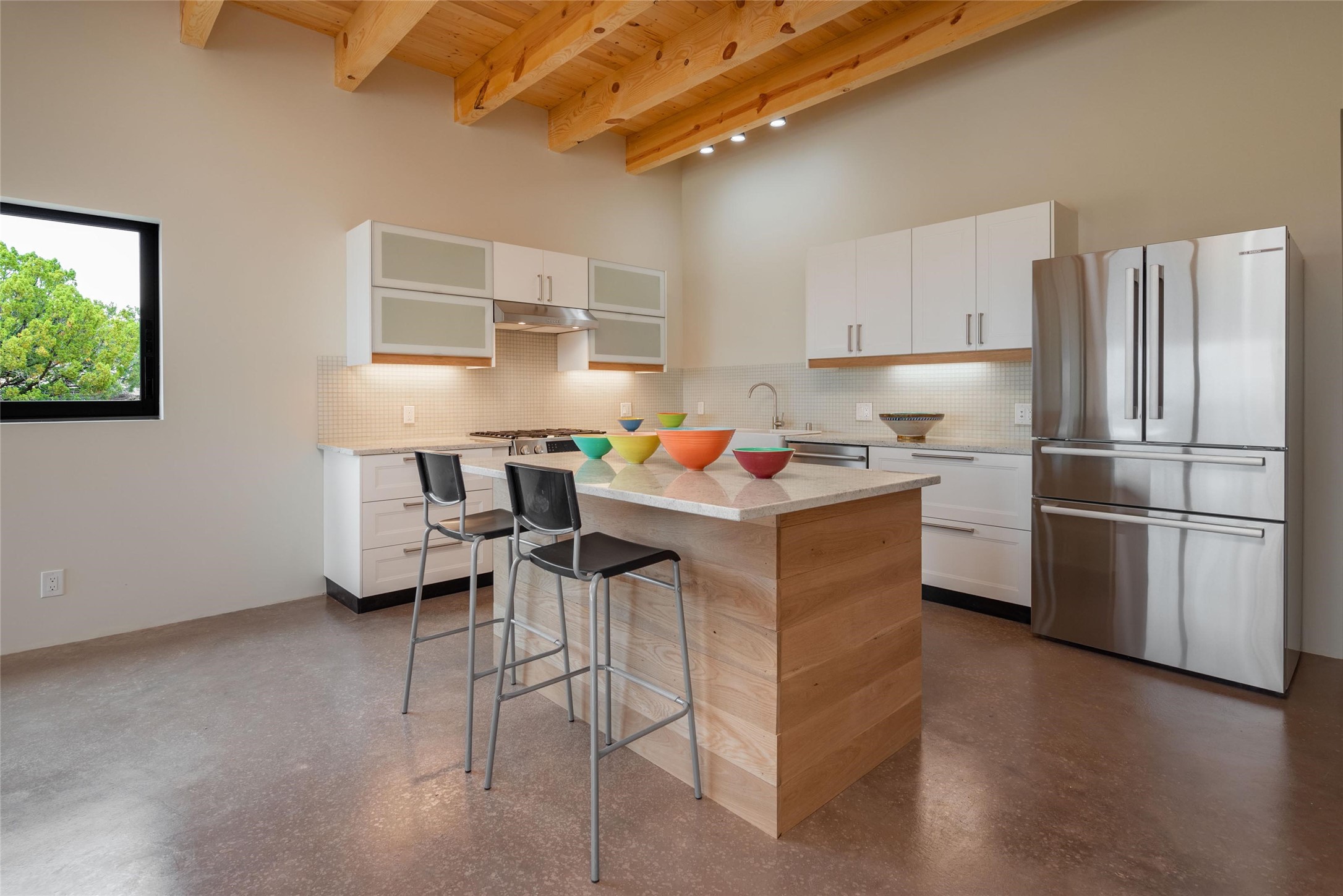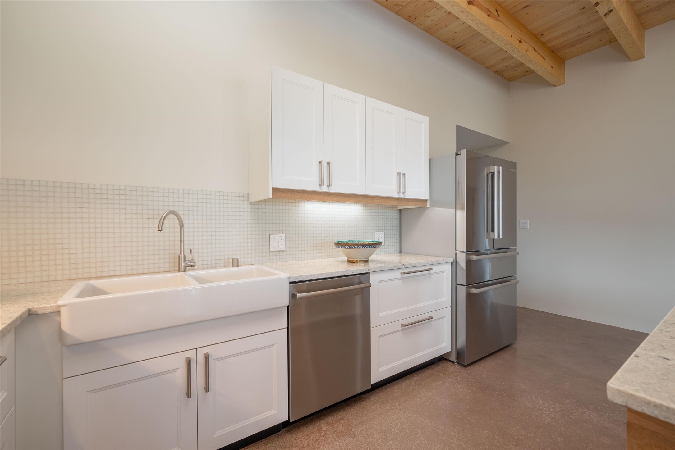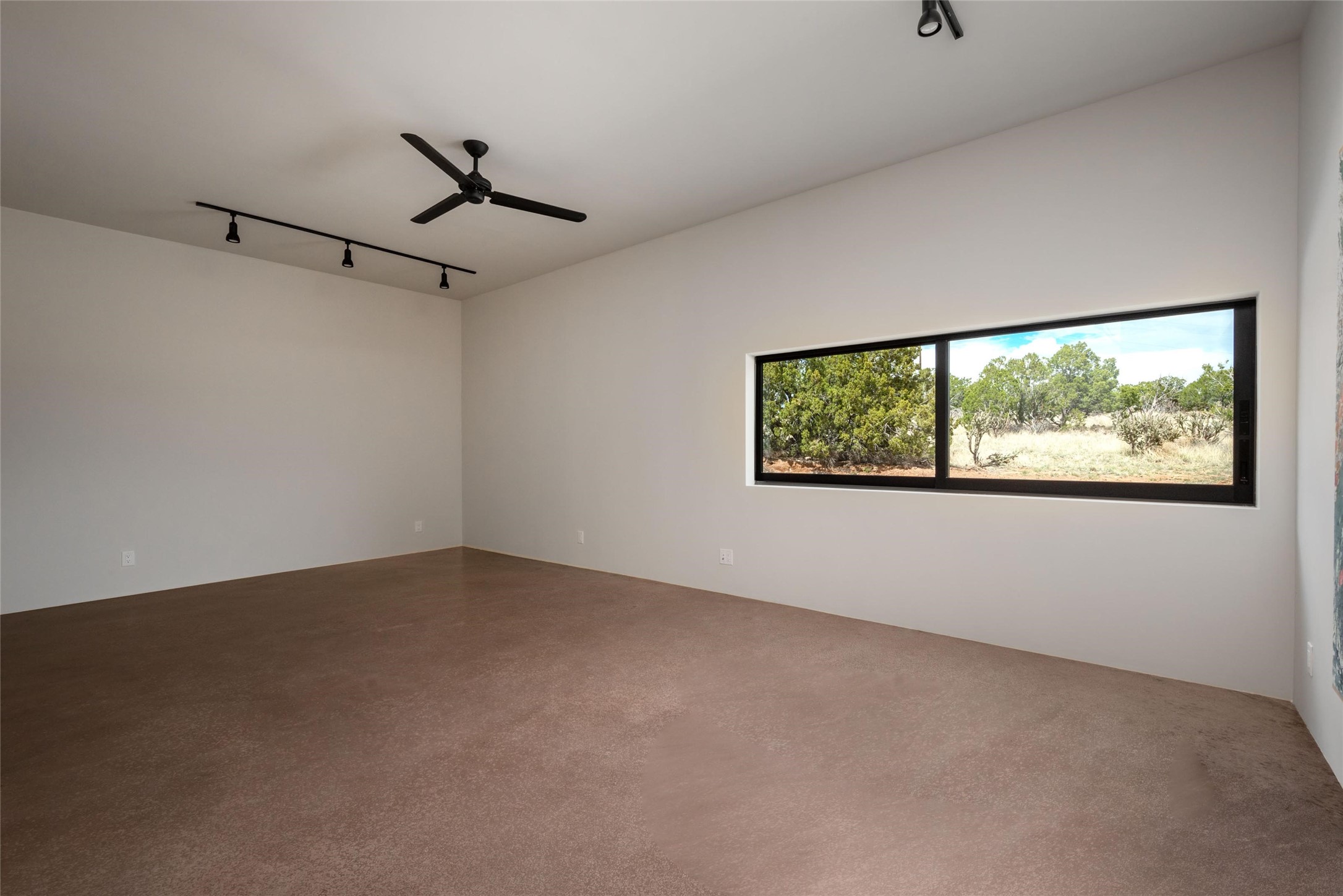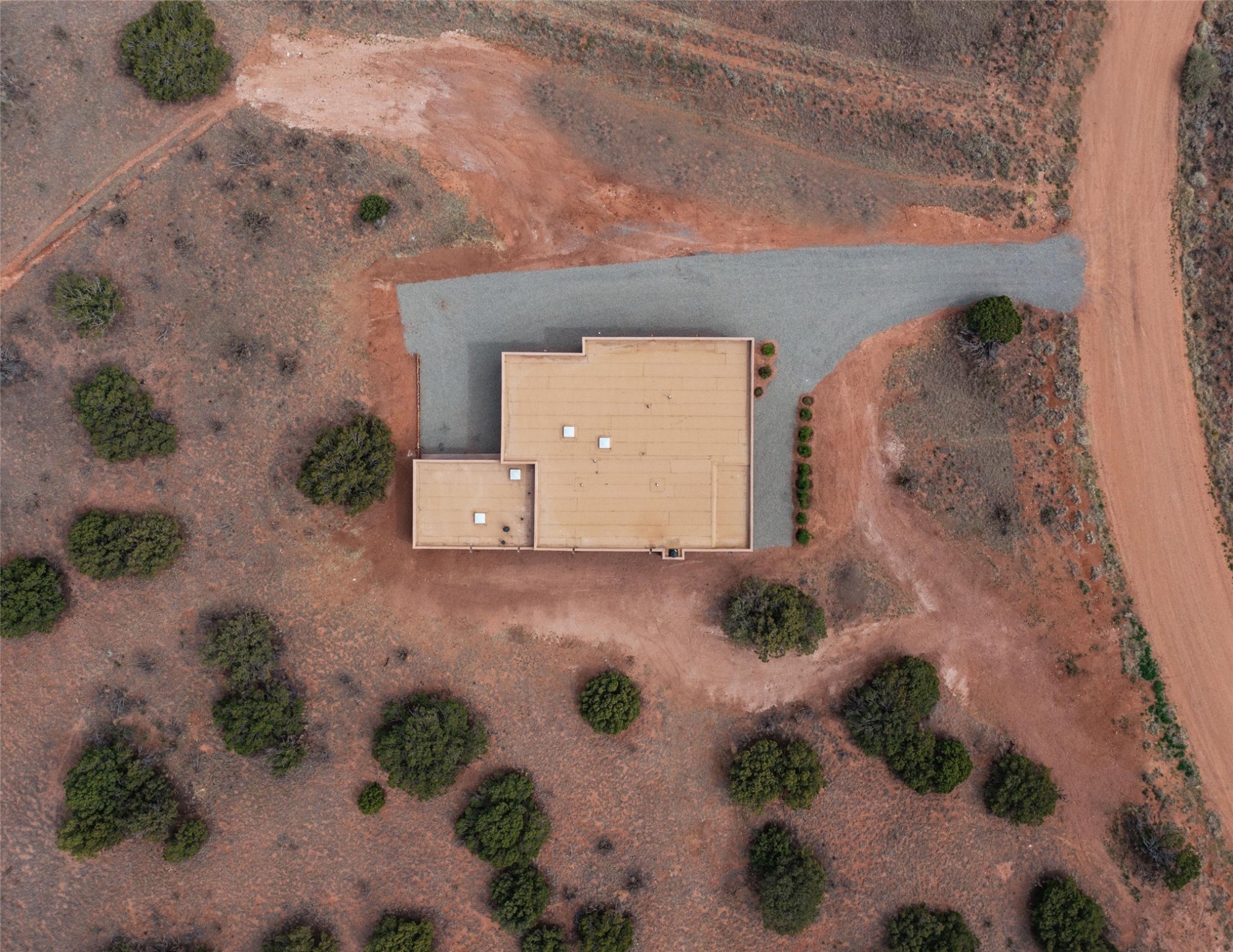 Outstanding views from the top of the hill for this wonderful mid-century style Jenning's designed/built home. Exciting newly constructed home with light filled rooms through out, fabulous/panoramic Ortiz mountain views, and refreshing hard edge modern design. This new home has a open living/dining/kitchen area with lovely beams, central kitchen island, Euro style stainless Bosch appliances, sleek cabinetry, granite counter tops, farm style sink, and under cabinet lighting. There is a wood burning fireplace in the living room. The main suite with mountain views is private and features a Euro style bath with walk in shower. All bedrooms are generous in size and Jennings has designed the 3rd bedroom as a very generous multi-function room which can be a bedroom or studio/creative space room. In addition, all windows used in construction are "Western" brand windows and are commercial grade with wide glass expanses. A very special upgrade feature. The home is on a nicely treed 2.73acre lot on the northern side of the subdivision. Rancho San Lucas is an established subdivision which was started in 2008 and has developed a sense of community. The location is ideal and is near the railroad trail system and the Galisteo Basin Reserve is within walking distance for additional hiking and star watching. Seller/builder will provide a one year builder warranty and the Rancho San Lucas Restrictive Covenants are available for review at www.ranchosanlucashoa.com/legal Property is in the Eldorado Water System and has natural gas.