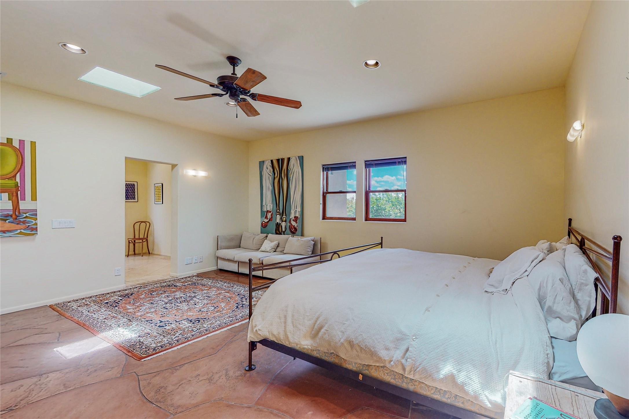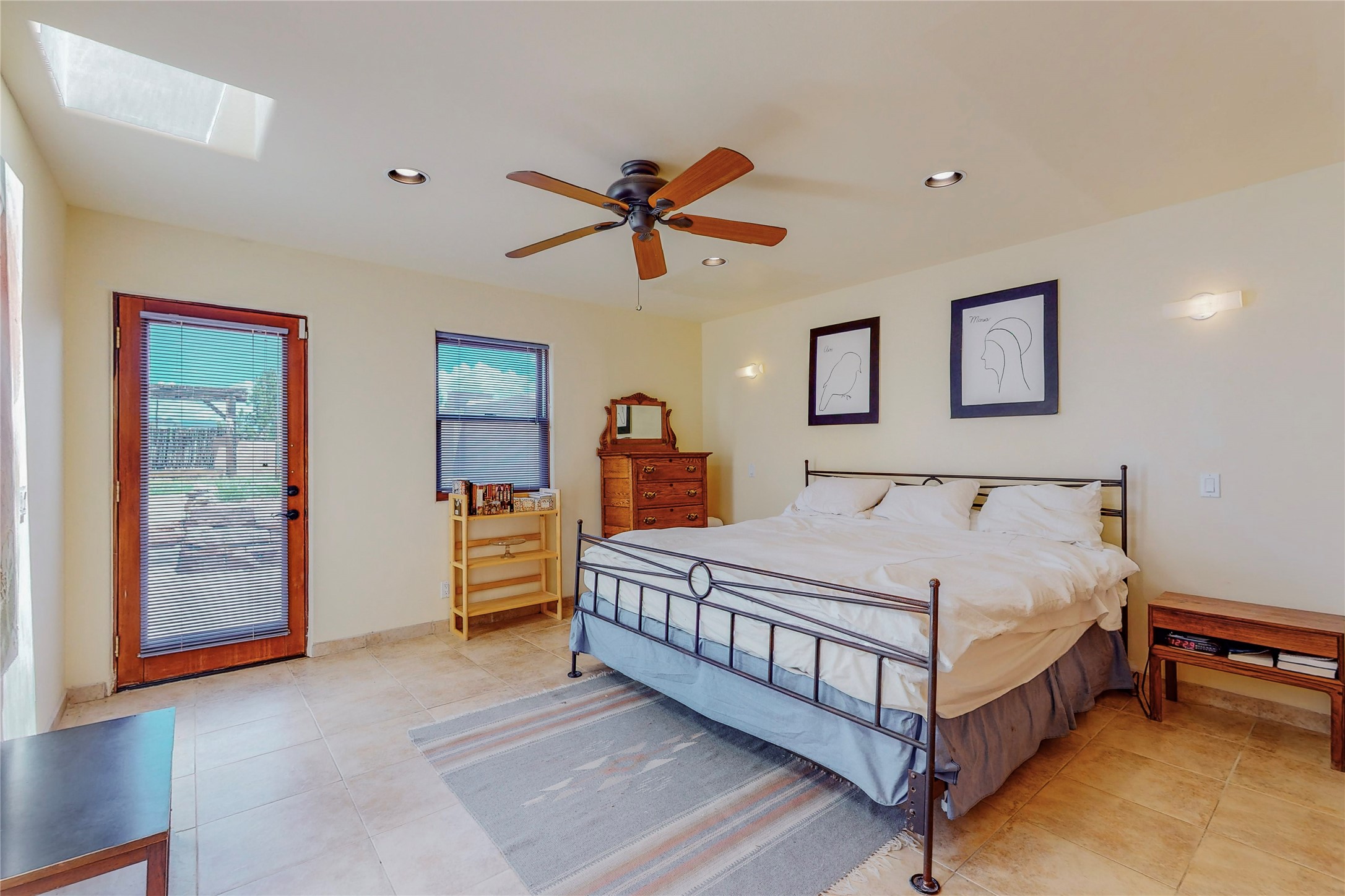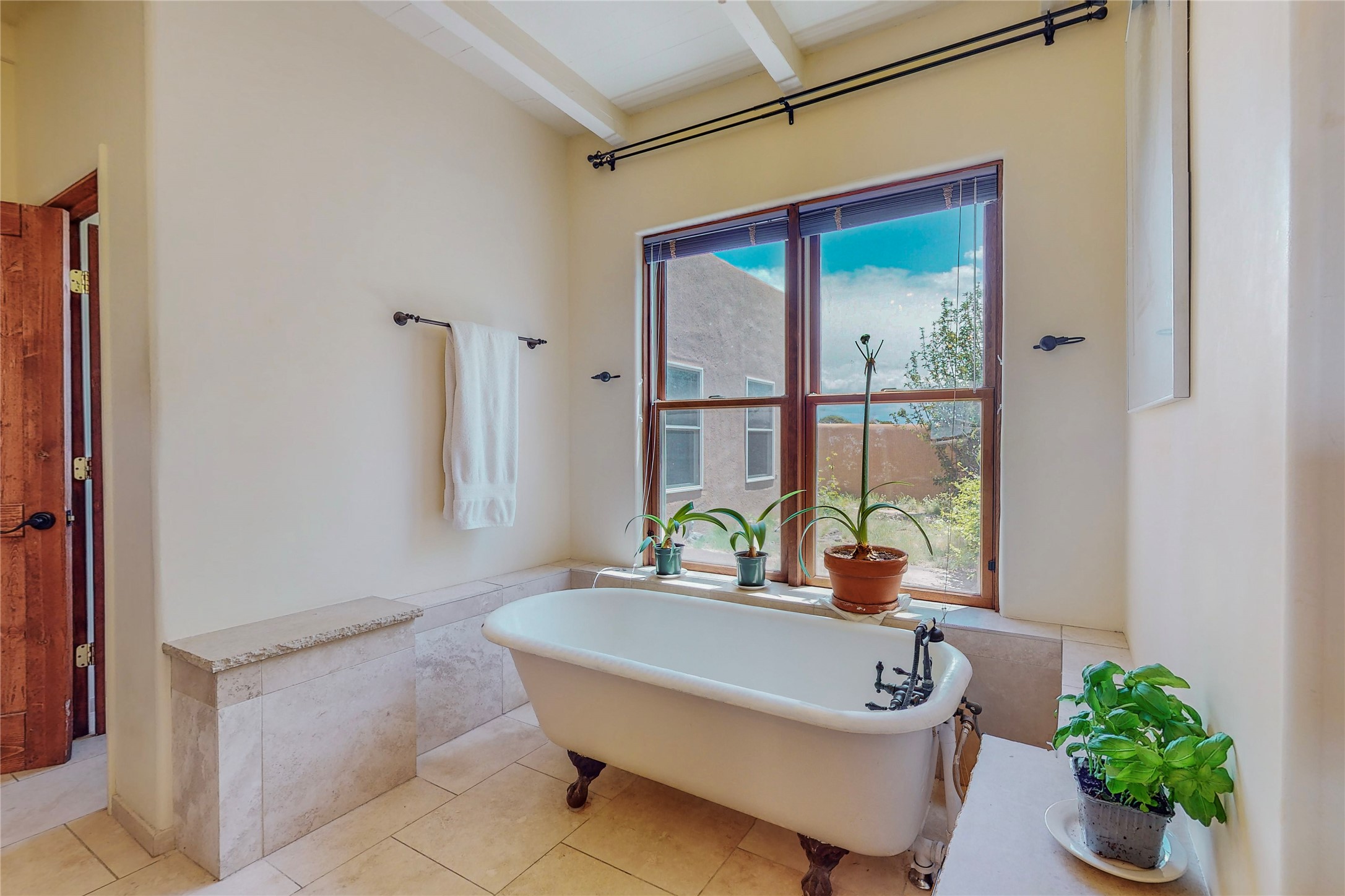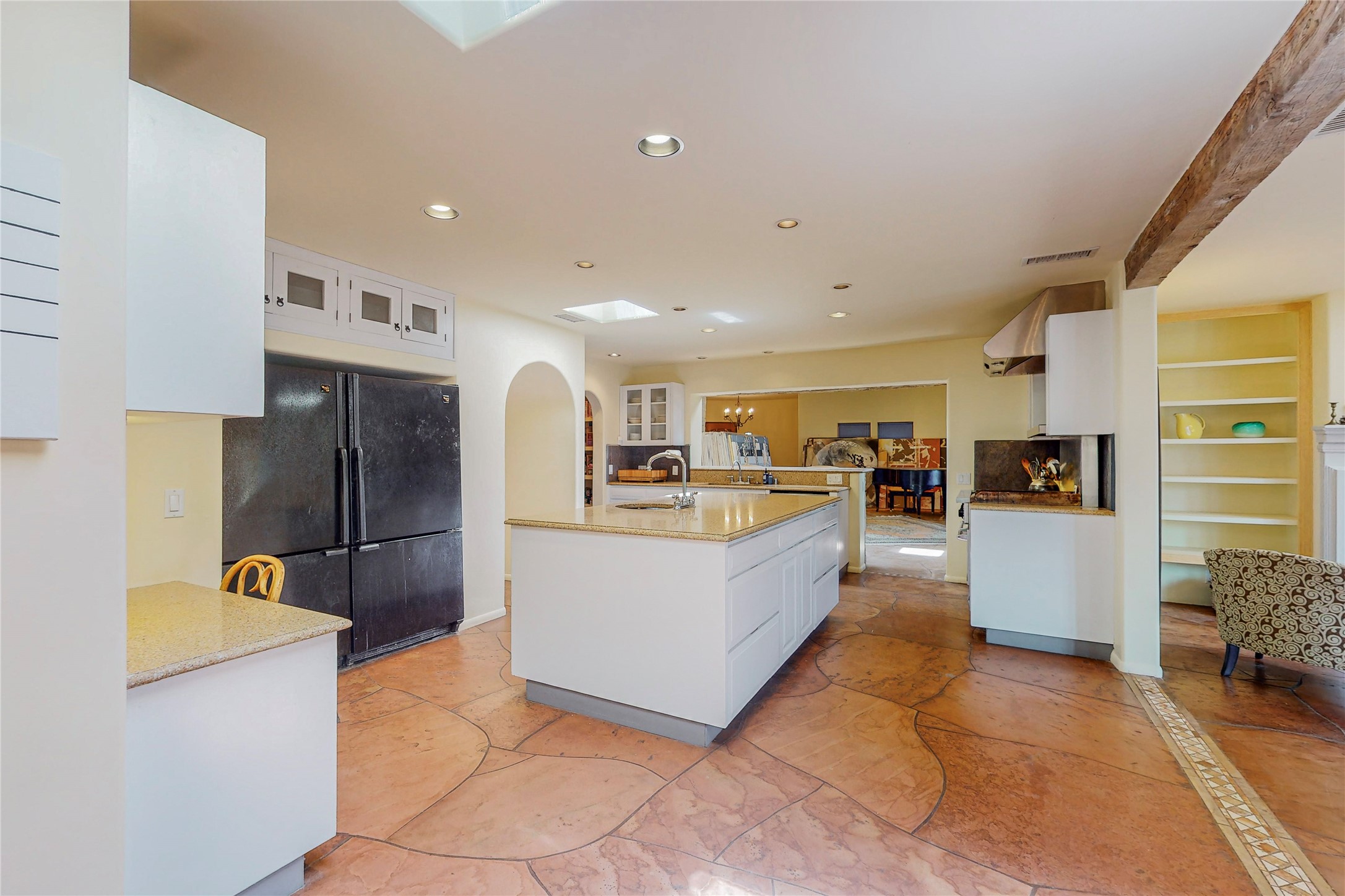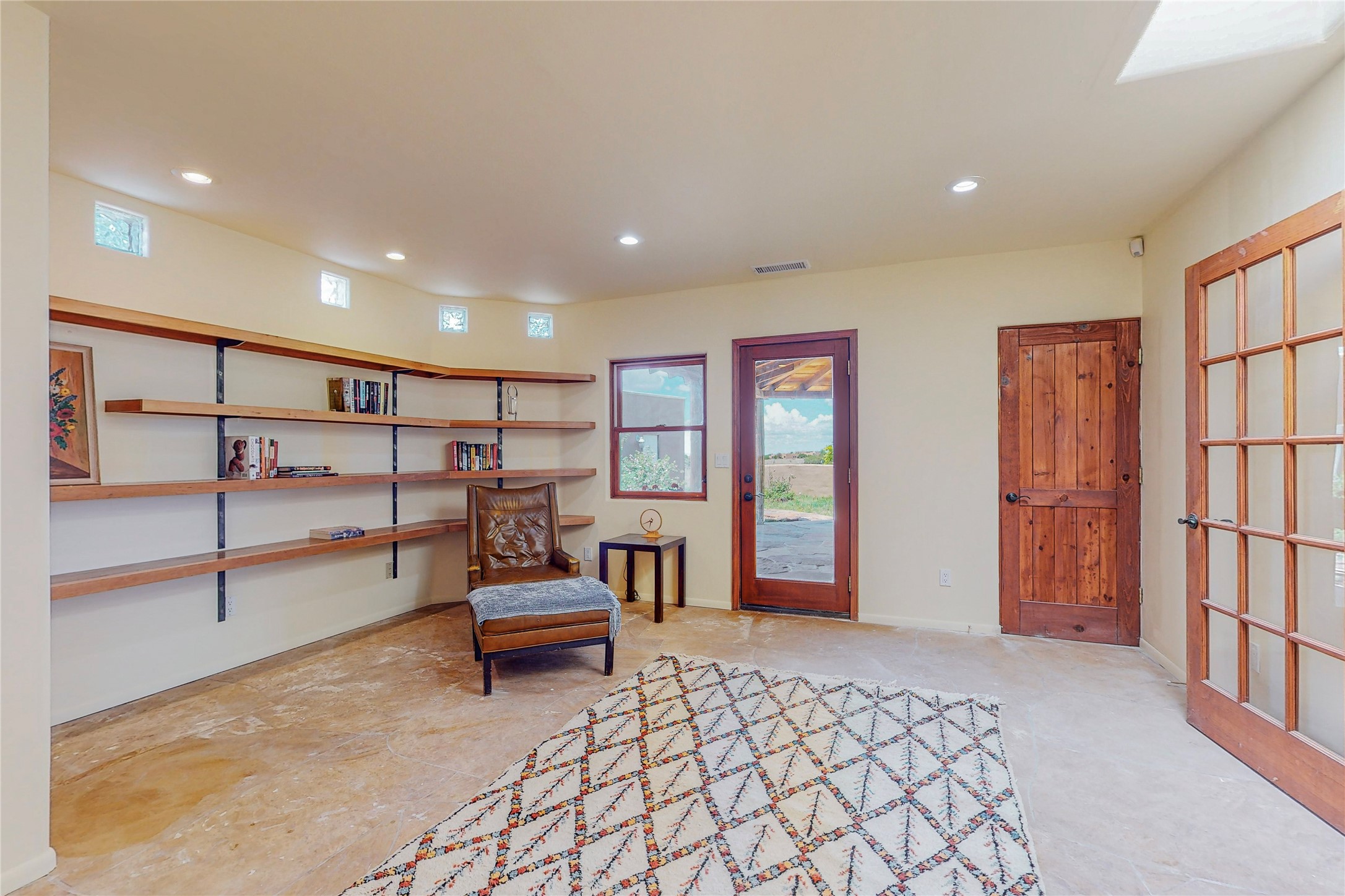 Welcome to an extraordinary slice of Southwestern serenity. This skillfully crafted ranch property is an impressive blend of rustic charm and modern amenities spread across over 4000 sq. ft. With three bedrooms and three bathrooms, this home is nestled on five private acres, rich in views, and boasts an additional room that makes a perfect office or flex room with a private entry. The home's distinctive character is marked by accents of 150-year-old reclaimed lumber and honed flagstone floors with tile inlay. Curved archways, charming details, and exquisite built-ins add to the home's unique aesthetic. Thirteen skylights throughout the house create a light-filled environment, while two fireplaces add warmth and ambiance.Cater to your culinary ambitions in the gourmet kitchen, featuring granite countertops, a spacious island, two refrigerators/freezers, a 6-burner Garland stove, and a large walk-in pantry. Entertain effortlessly indoors and out with two spacious portals equipped with a sound system, lushly landscaped gardens, and multiple flagstone patios offering panoramic mountain views. French Pella double doors lead from the dining room and family room to the great outdoors, facilitating a seamless indoor-outdoor lifestyle. The home's flexible floor plan accommodates both formal and casual living spaces. A formal dining room with limestone accents and an informal dining room with built-in shelves and counter complement the great room, replete with a kiva fireplace and 14-foot beamed ceilings. The primary suite, a true sanctuary, features a romantic bath with a vintage claw foot tub and travertine tile overlooking a private courtyard. The generously designed California Closet is not to be forgotten and is perfect for your wardrobe. Additional amenities include A/C, forced air heating, an oversized 2-car garage with four skylights and built-in storage, and a spacious laundry room equipped with a washer and dryer.