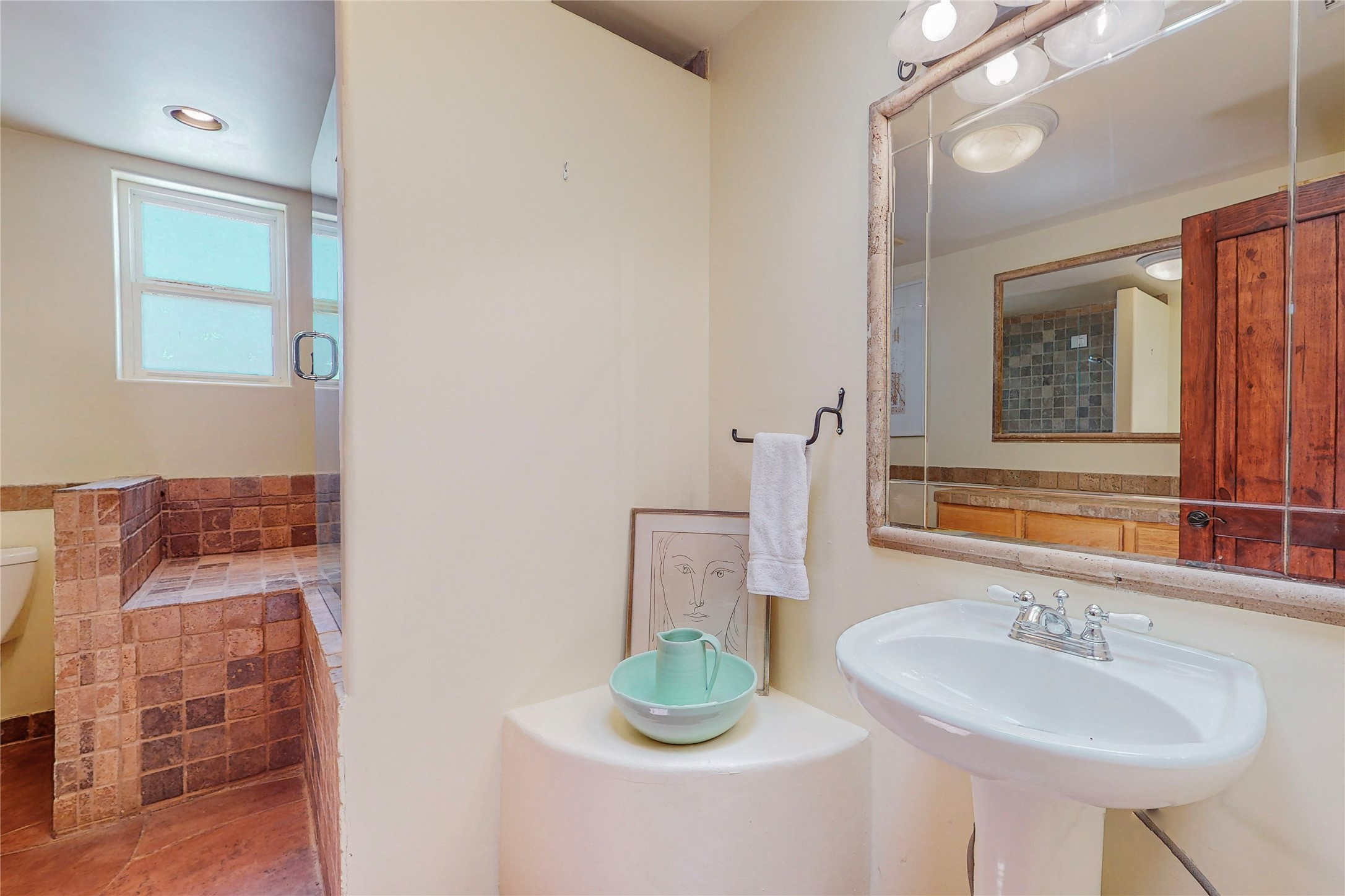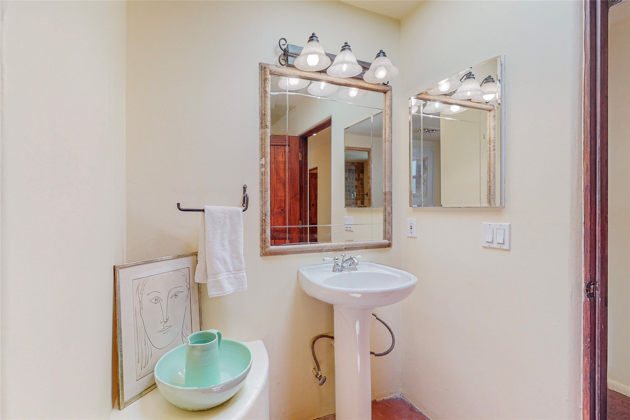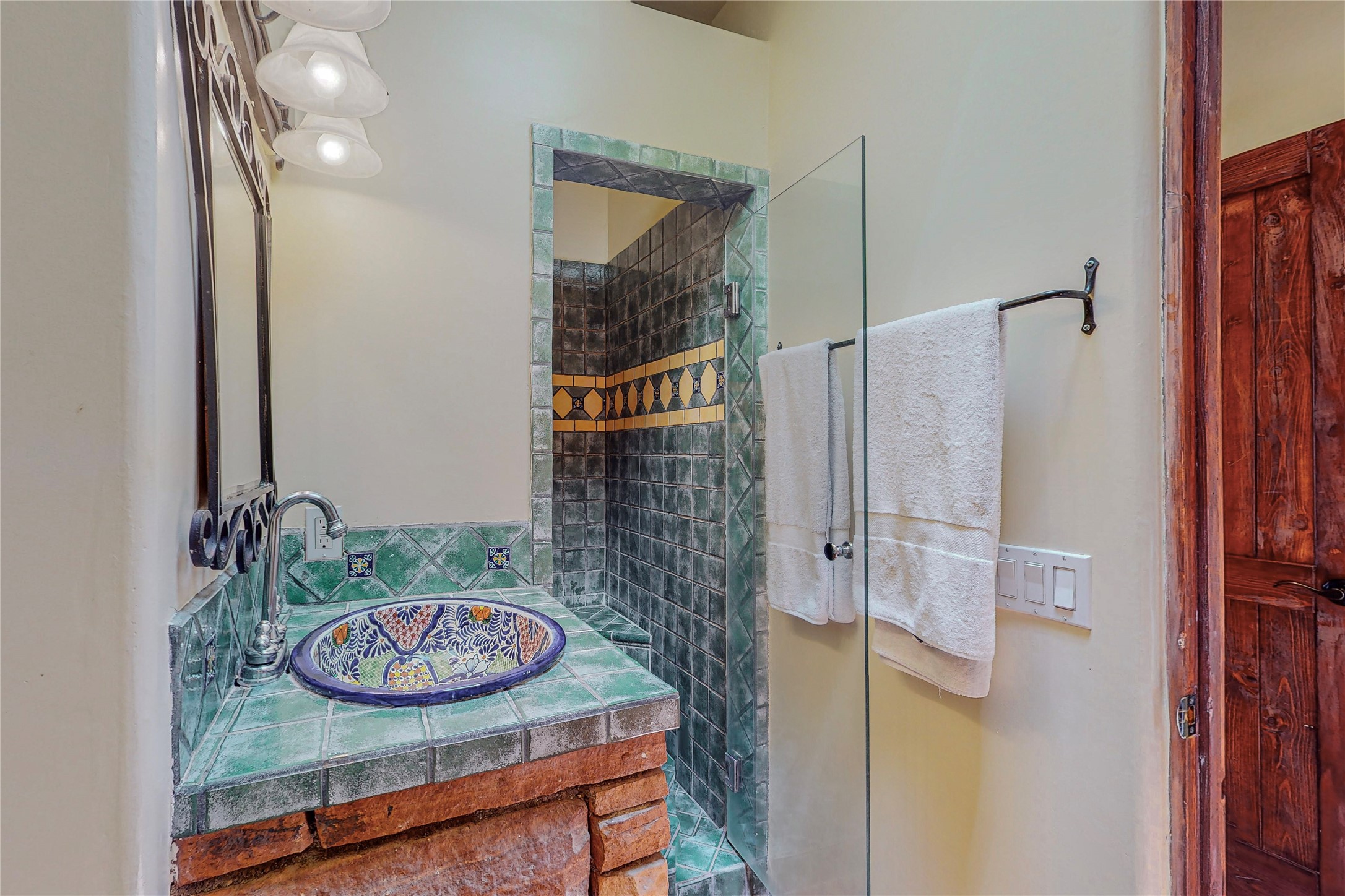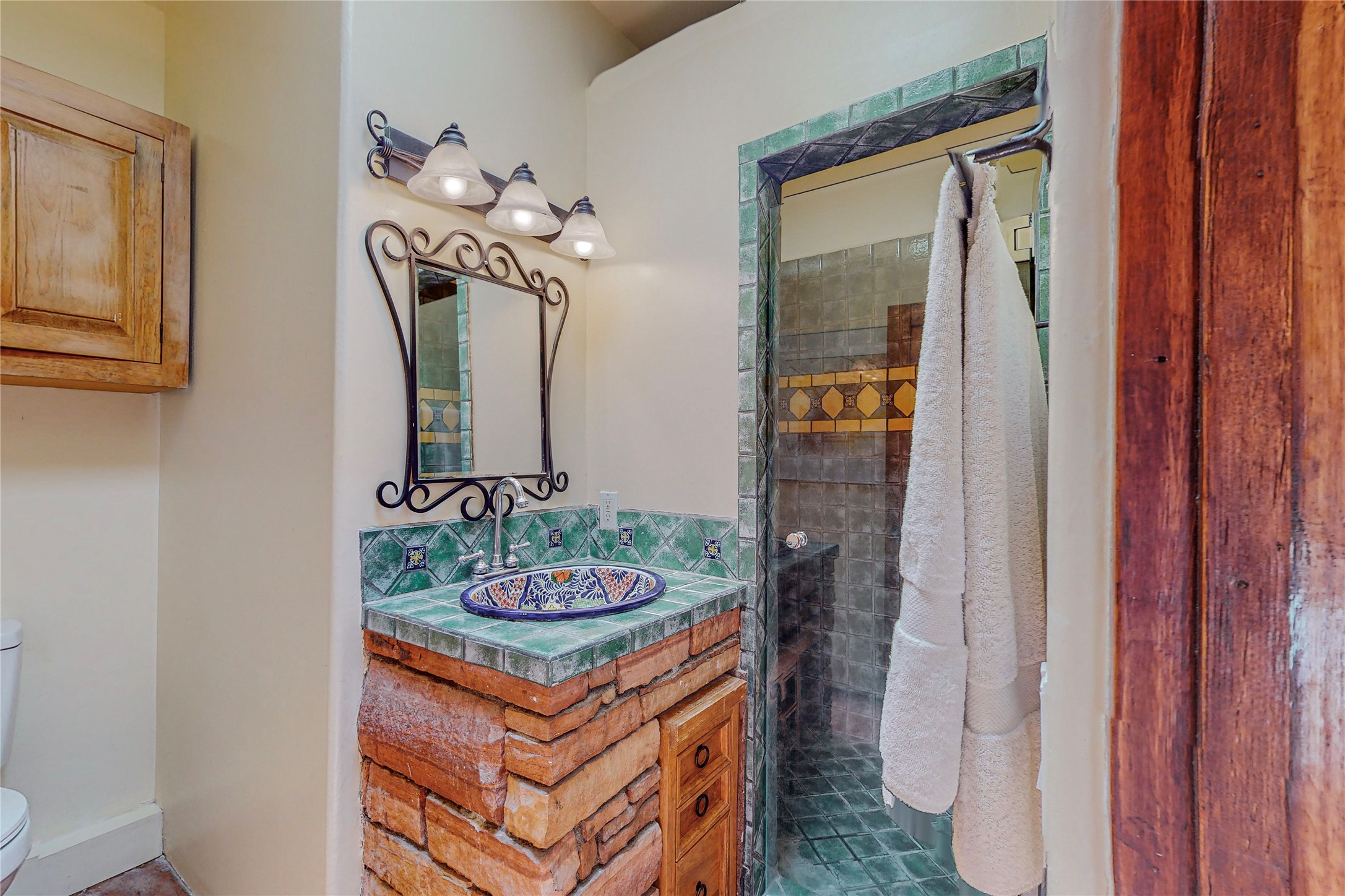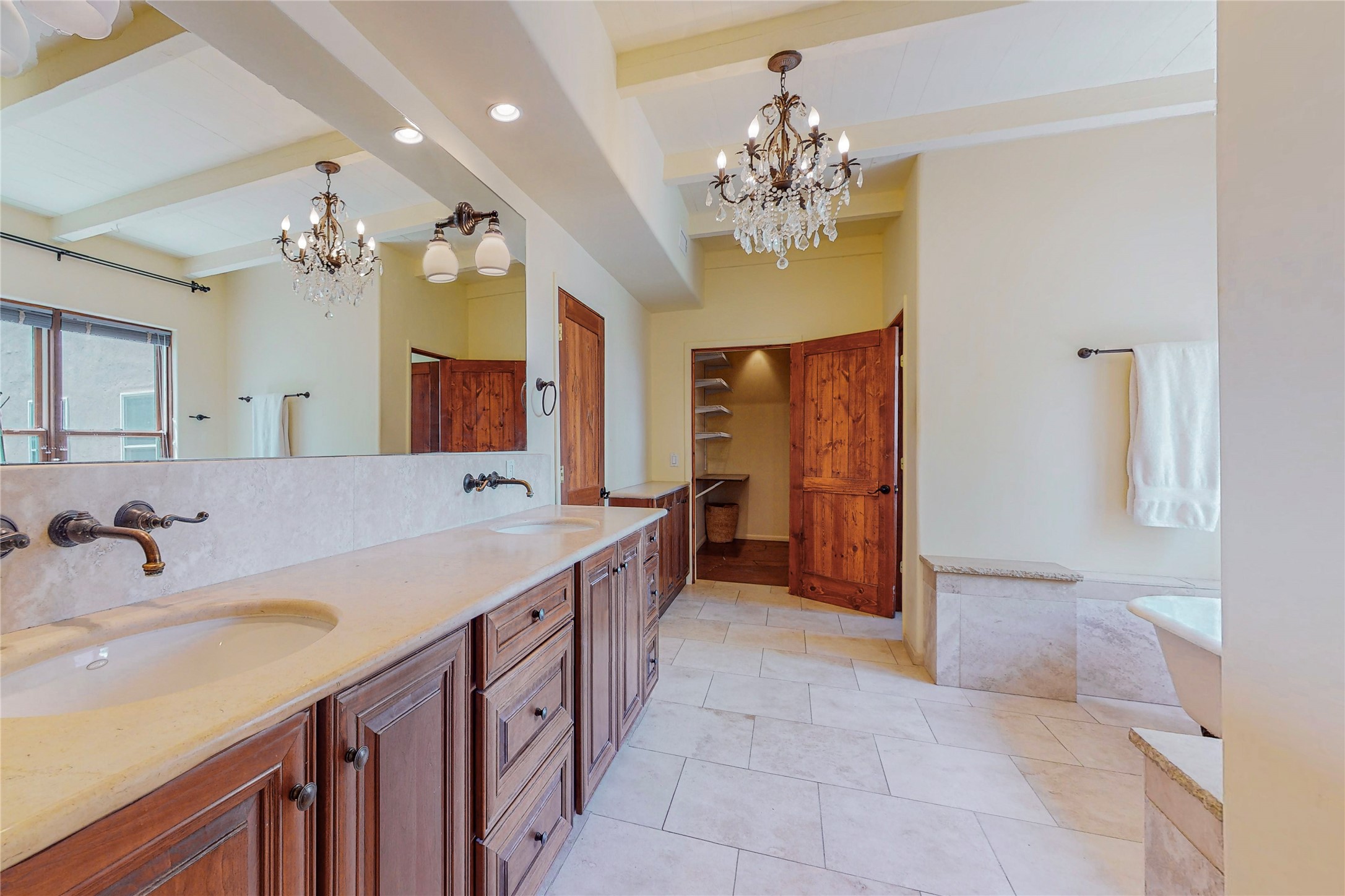 Welcome to an extraordinary slice of Southwestern serenity. This skillfully crafted ranch property is an impressive blend of rustic charm and modern amenities spread across over 4000 sq. ft. With three bedrooms and three bathrooms, this home is nestled on five private acres, rich in views, and boasts an additional room that makes a perfect office or flex room with a private entry. The home's distinctive character is marked by accents of 150-year-old reclaimed lumber and honed flagstone floors with tile inlay. Curved archways, charming details, and exquisite built-ins add to the home's unique aesthetic. Thirteen skylights throughout the house create a light-filled environment, while two fireplaces add warmth and ambiance.Cater to your culinary ambitions in the gourmet kitchen, featuring granite countertops, a spacious island, two refrigerators/freezers, a 6-burner Garland stove, and a large walk-in pantry. Entertain effortlessly indoors and out with two spacious portals equipped with a sound system, lushly landscaped gardens, and multiple flagstone patios offering panoramic mountain views. French Pella double doors lead from the dining room and family room to the great outdoors, facilitating a seamless indoor-outdoor lifestyle. The home's flexible floor plan accommodates both formal and casual living spaces. A formal dining room with limestone accents and an informal dining room with built-in shelves and counter complement the great room, replete with a kiva fireplace and 14-foot beamed ceilings. The primary suite, a true sanctuary, features a romantic bath with a vintage claw foot tub and travertine tile overlooking a private courtyard. The generously designed California Closet is not to be forgotten and is perfect for your wardrobe. Additional amenities include A/C, forced air heating, an oversized 2-car garage with four skylights and built-in storage, and a spacious laundry room equipped with a washer and dryer.