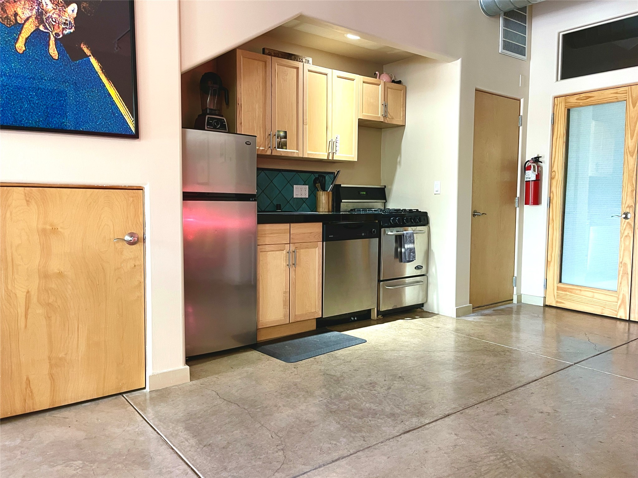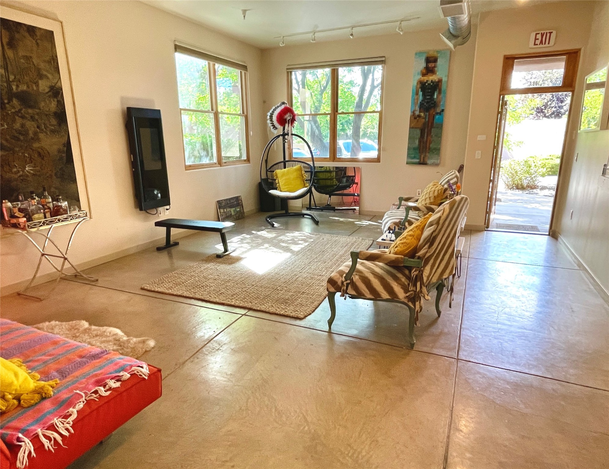 Stylish pied-a-terre, short term weekly rental, live /work, lock and leave, or a Santa Fe Rail Yard home. Quiet, end ground unit with high ceilings, lots of light, and a sense of privacy. Fantastic location.