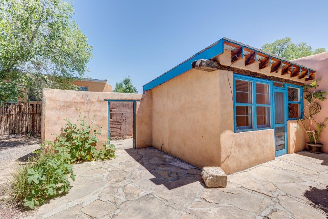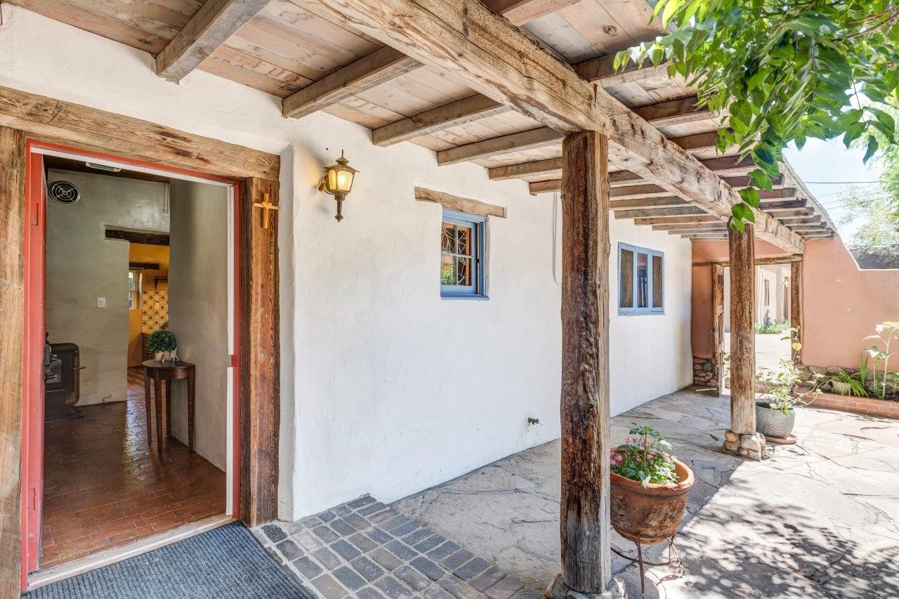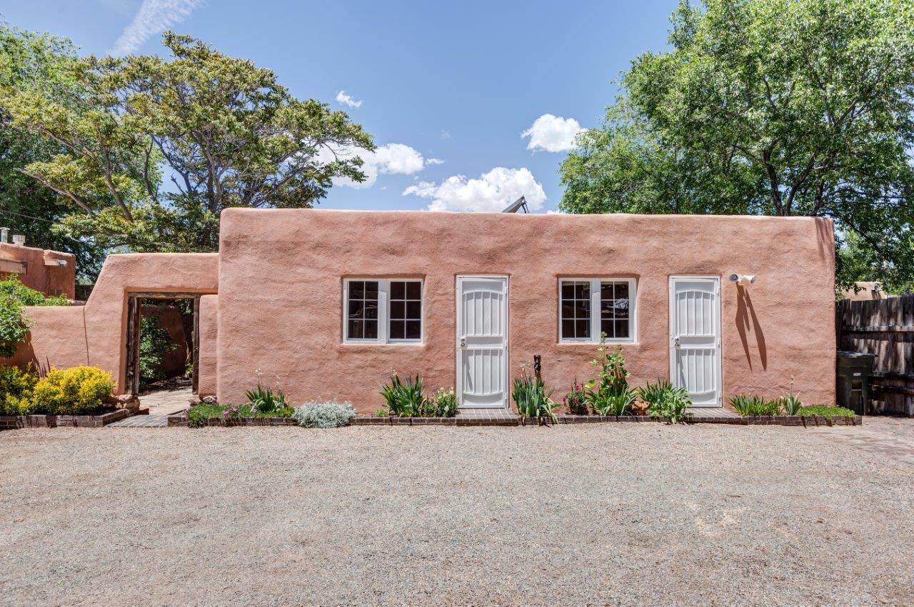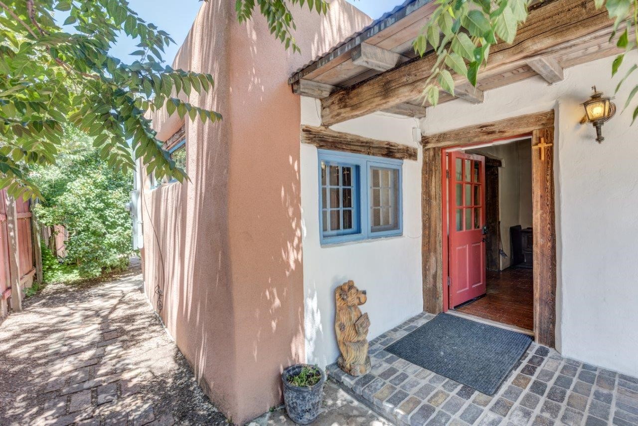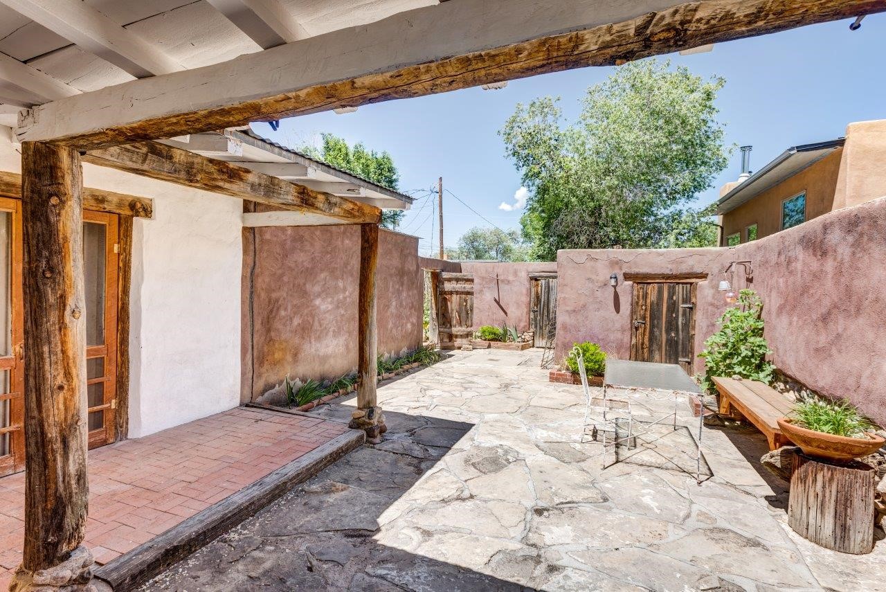 Quintessential adobe home within short proximity to the historic downtown Santa Fe plaza! Welcome to 534 1/2 West Alameda Street-a well-built home with a rustic flair that features many classic and attractive finishes throughout! From the hand crafted ceilings to the solid flagstone flooring, this home provides the ideal setting for the desirable living lifestyle you've been waiting for. Features include 3 bedrooms, 2 baths, 1,479 heated sqft, smooth plaster walls, custom built cabinetry, kiva fireplace, new wood stove, a ductless heating and cooling system and one of a kind hand-hewn, barn wood vigas/beams and lentils repurposed from a barn in Washington State circa early 1800's. There are several inviting and spacious outdoor spaces that are prime for entertaining and provide ideal areas for your future gardening desires. Some of the additional updates include new electric service meter panel and service line, reroofing in 2016, new stucco in 2018, stainless steel appliances and a complete renovation of the primary bathroom. Easy access to great walking/biking paths along the Santa Fe river. Pride of ownership abounds in this move-in-ready home!