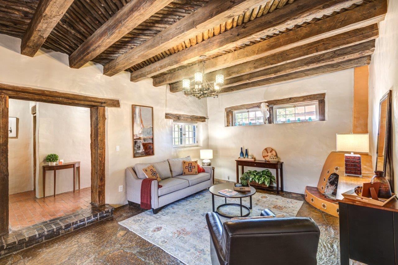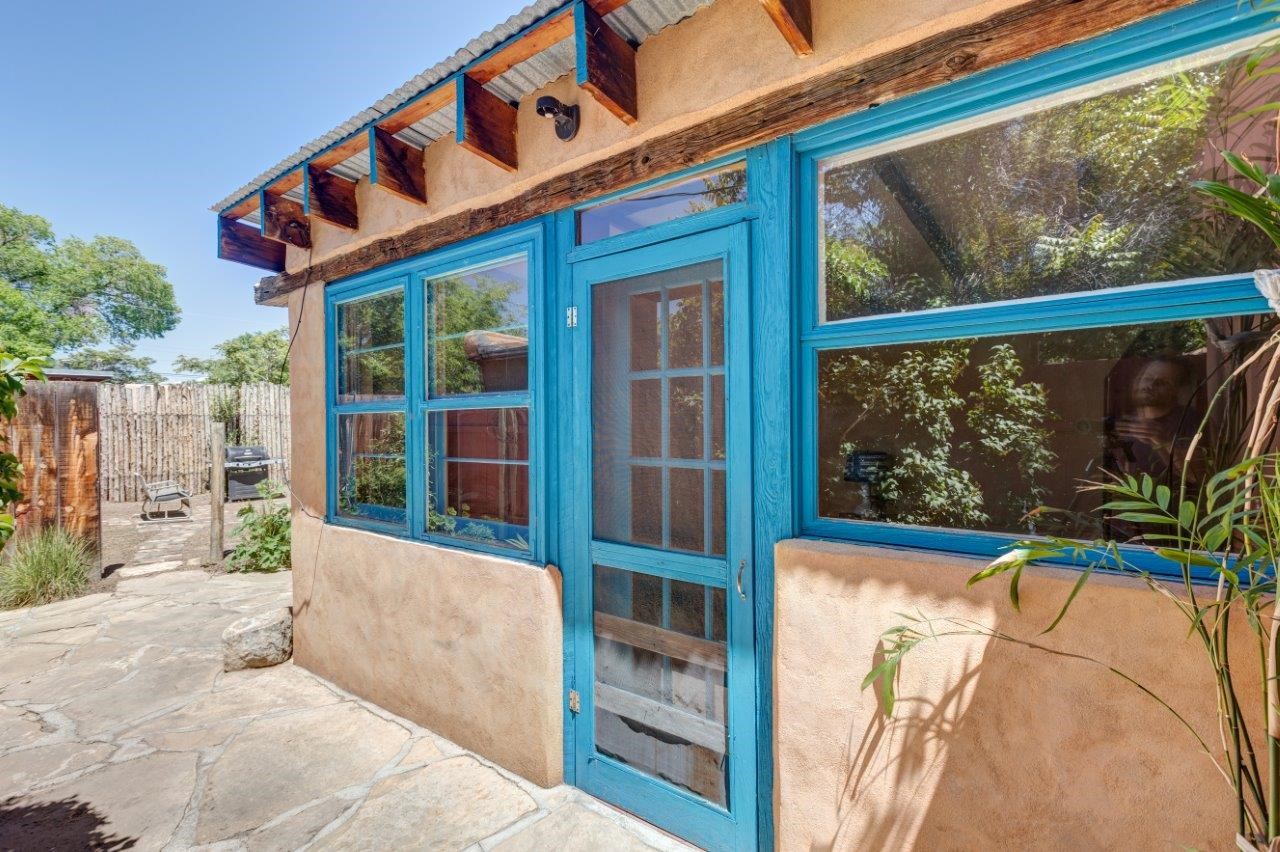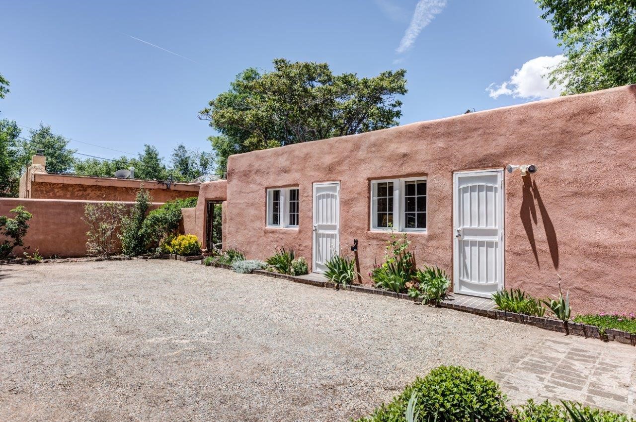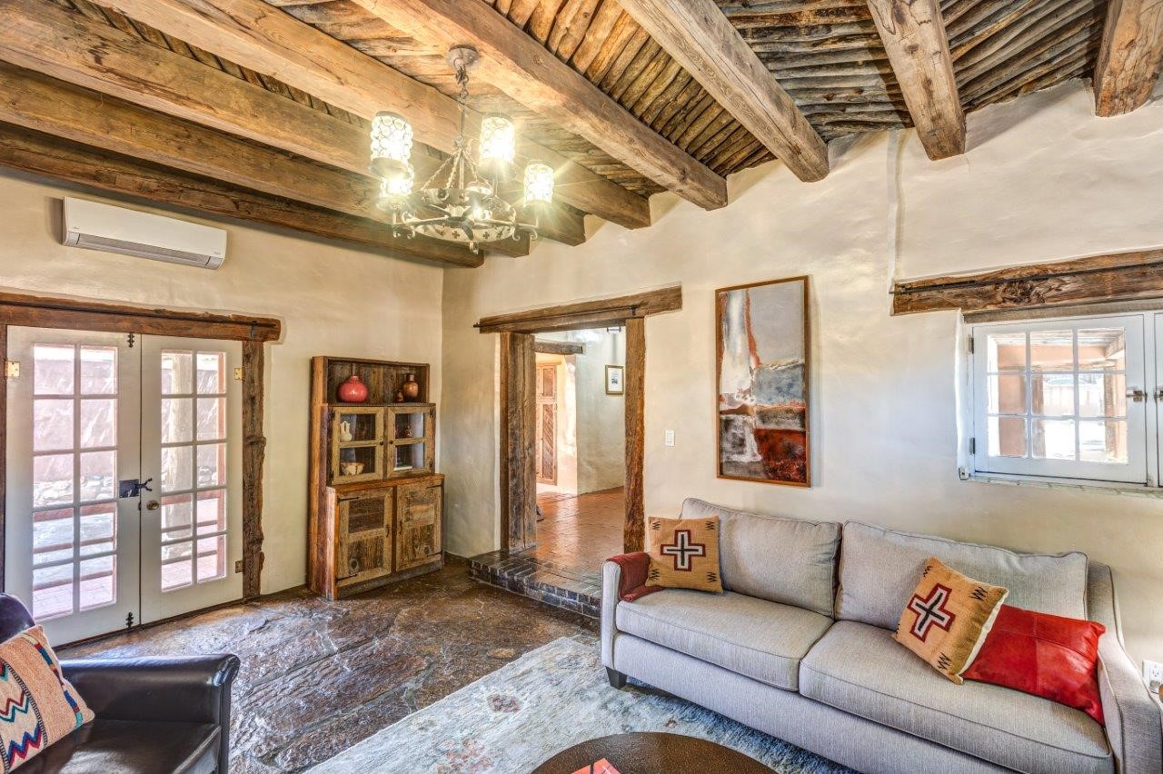 Quintessential adobe home within short proximity to the historic downtown Santa Fe plaza! Welcome to 534 1/2 West Alameda Street-a well-built home with a rustic flair that features many classic and attractive finishes throughout! From the hand crafted ceilings to the solid flagstone flooring, this home provides the ideal setting for the desirable living lifestyle you've been waiting for. Features include 3 bedrooms, 2 baths, 1,479 heated sqft, smooth plaster walls, custom built cabinetry, kiva fireplace, new wood stove, a ductless heating and cooling system and one of a kind hand-hewn, barn wood vigas/beams and lentils repurposed from a barn in Washington State circa early 1800's. There are several inviting and spacious outdoor spaces that are prime for entertaining and provide ideal areas for your future gardening desires. Some of the additional updates include new electric service meter panel and service line, reroofing in 2016, new stucco in 2018, stainless steel appliances and a complete renovation of the primary bathroom. Easy access to great walking/biking paths along the Santa Fe river. Pride of ownership abounds in this move-in-ready home!