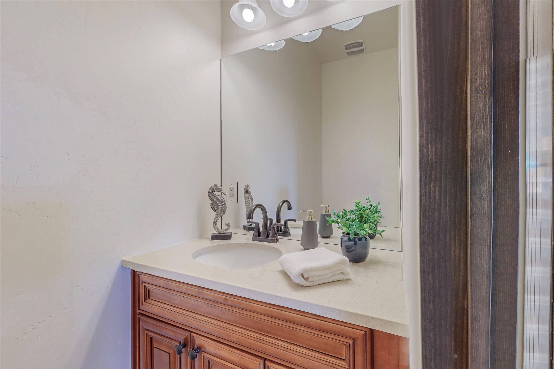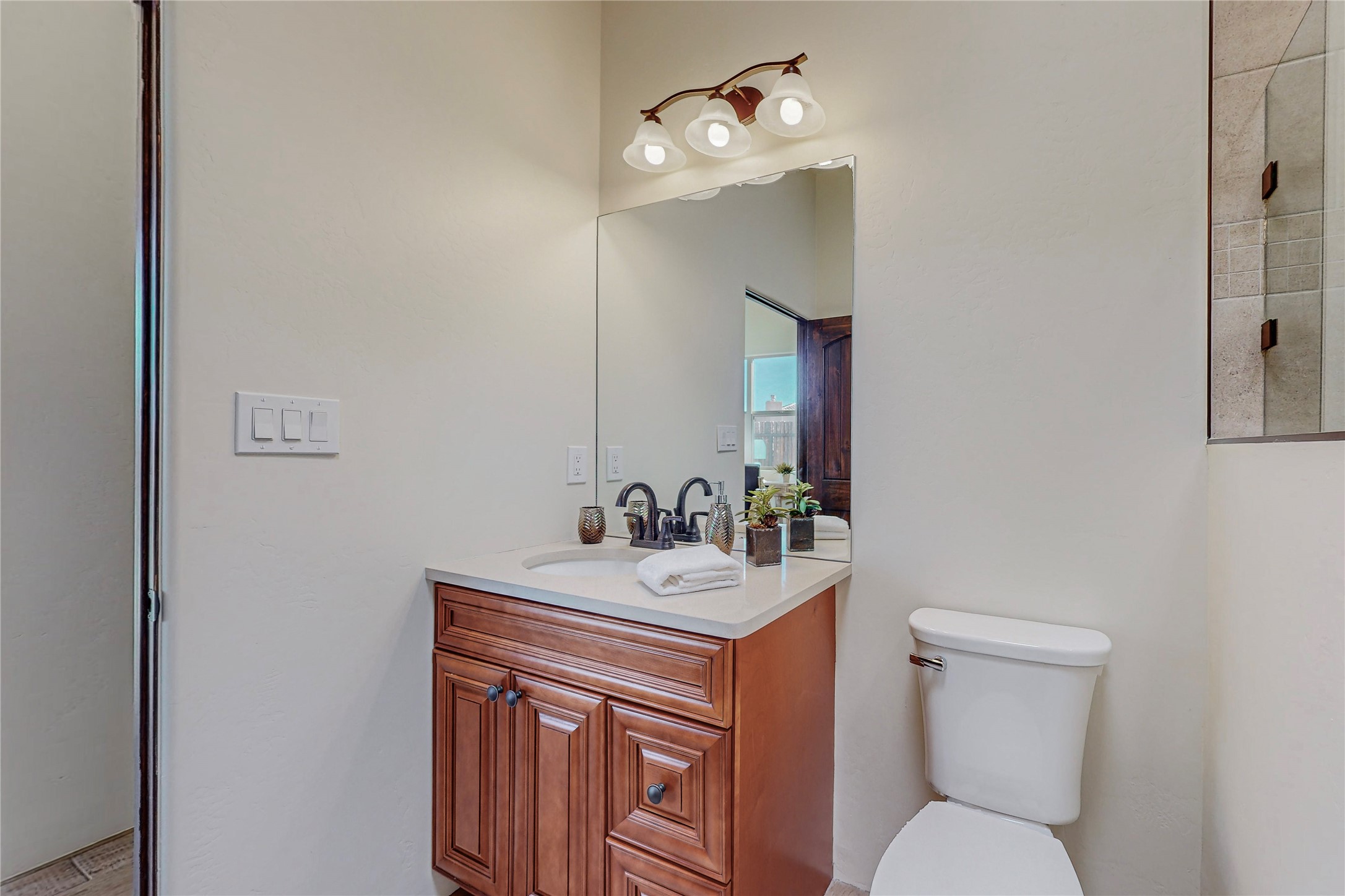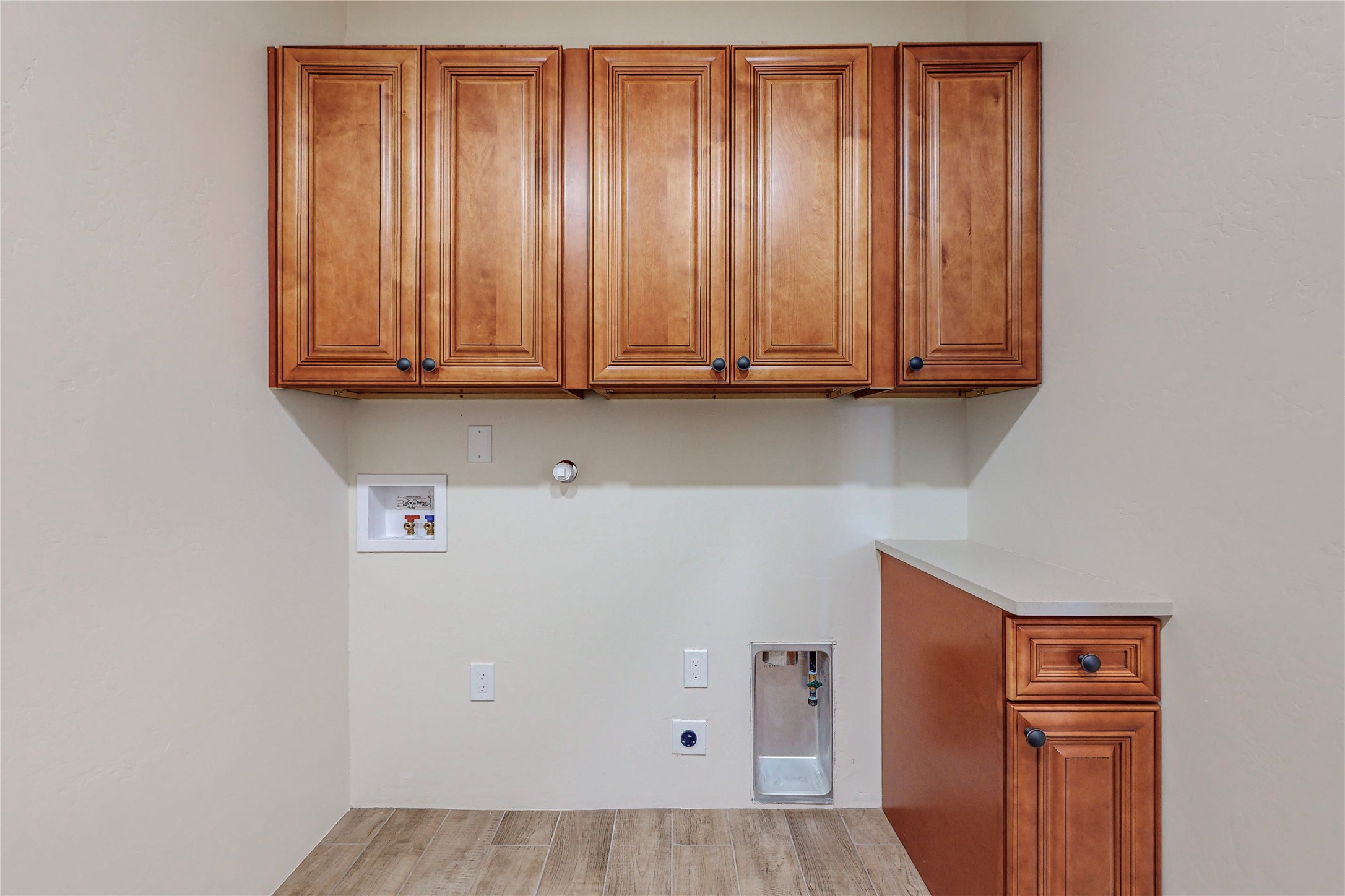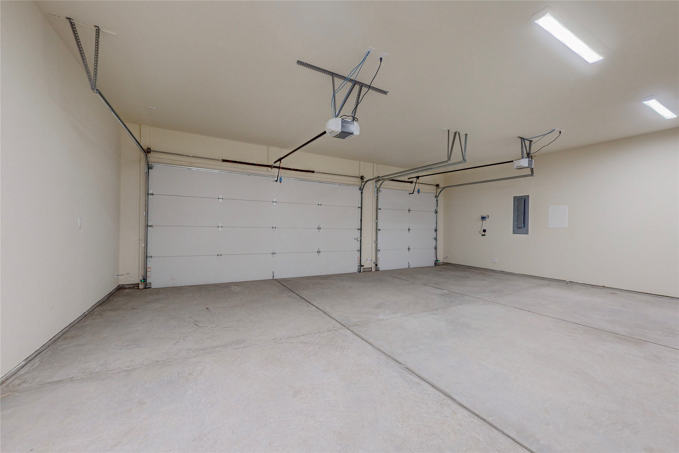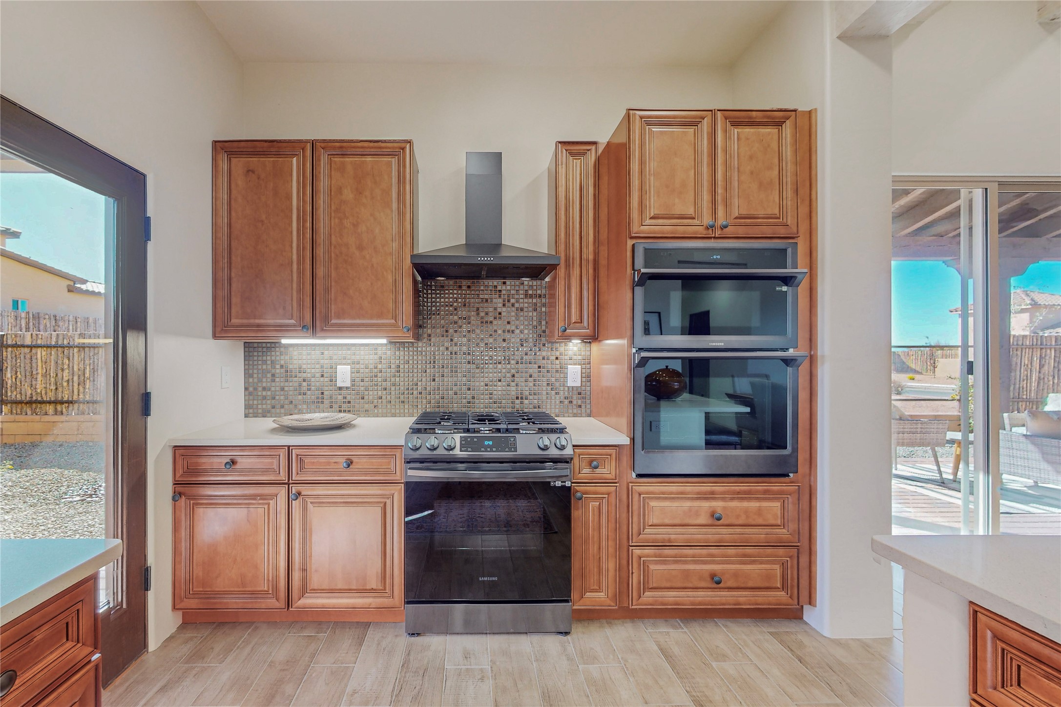 This powerful Santiago Plan is a 2239 sq.ft. 3 bedroom 4 bath home, with three fireplaces, three bedrooms, each with ensuite baths and a 3-car garage. Located at 11 Pinon Doblado in the La Pradera Subdivision, the home has open space on two sides of the home. Access to this home is through an 8 ft tall door which opens into a foyer with a 13-foot boveda ceiling. Immediately to the left is a powder room and an adjacent closet. To the right is a study/bedroom with a gas-fired kiva fireplace and a 3/4 bath. The living room has a 12-foot ceiling, white stained wood beams with T&G trim and a fireplace. The open kitchen has maple cabinets. The kitchen and the guest bedroom open out to a covered portal with a gas fireplace and brick pavers. Floor tile is porcelain plank in a light brown wood-like tone. The owner's suite has an enormous walk-in closet (about 100 sq.ft) and the owner's bath has a skylight, a large walk-in shower with euro-style shower fixtures and an overhead rain shower head. The exterior is a pitched roof Spanish design with clay-concrete tile roofs and covered portals with heavy wood beams and brick pavers. The driveway is a colored stamped concrete design. The insulated three-car garage has two storage closets and an epoxy-coated floor.