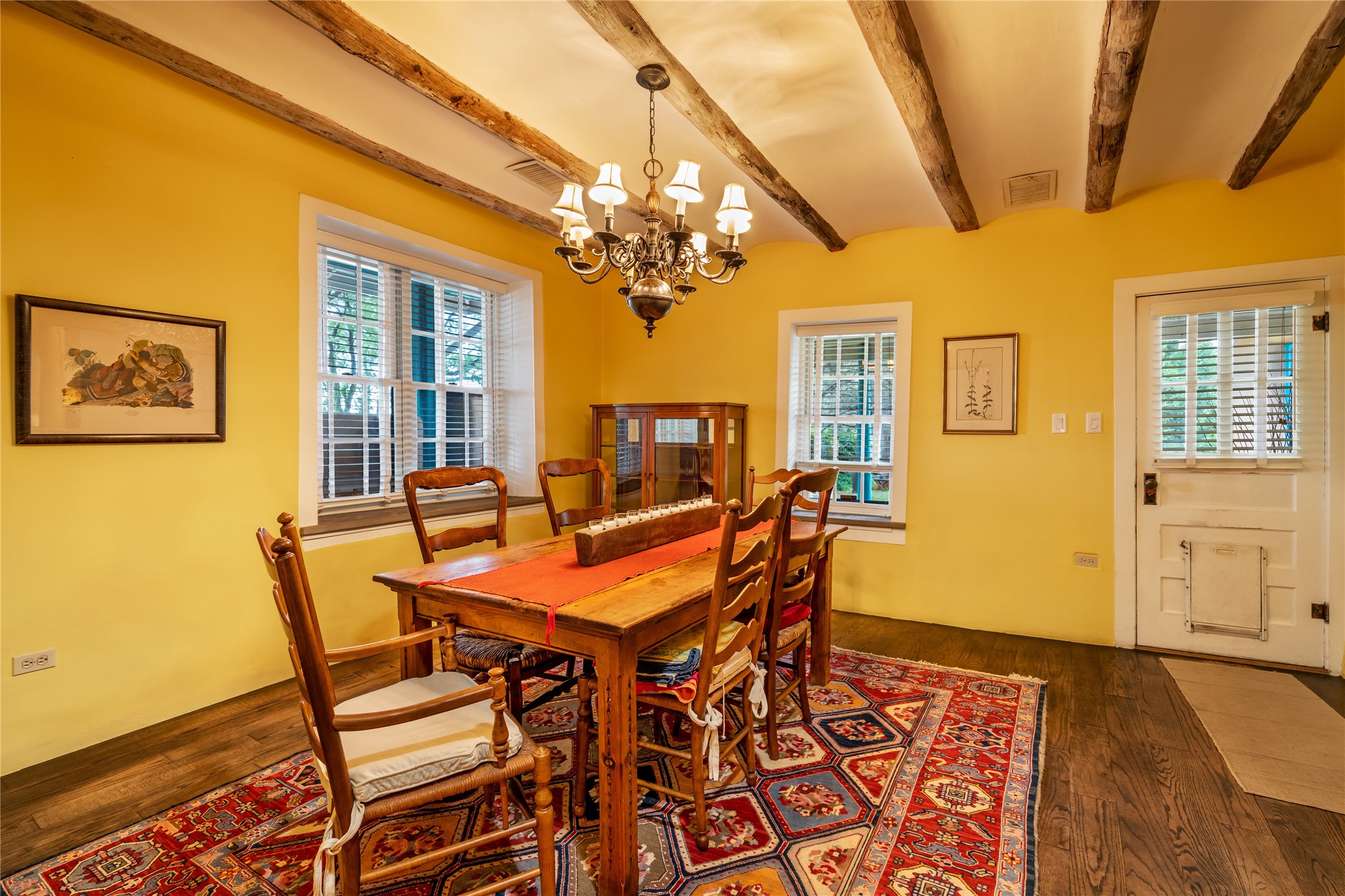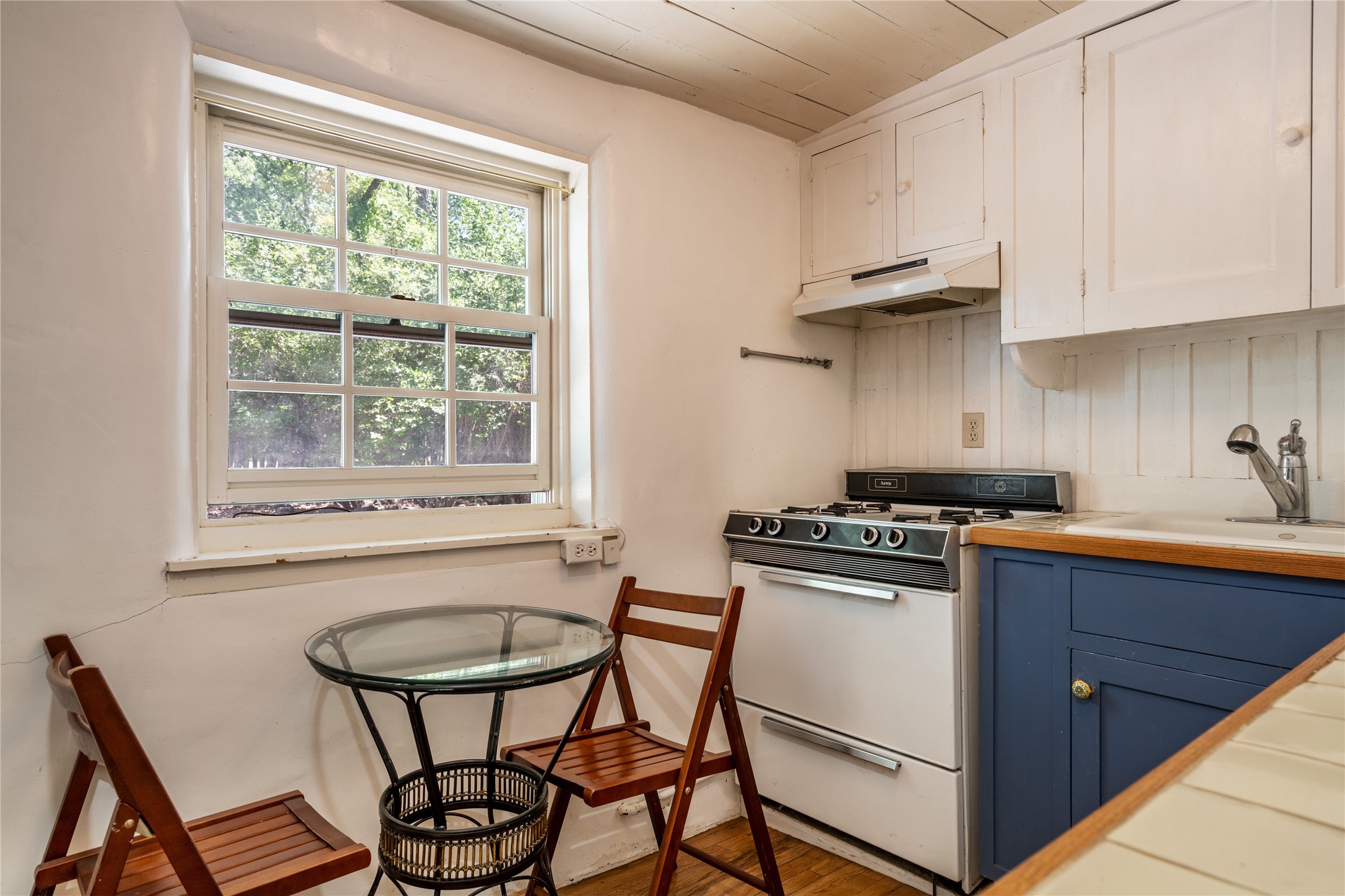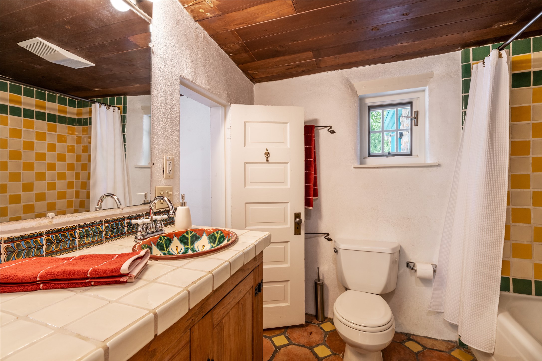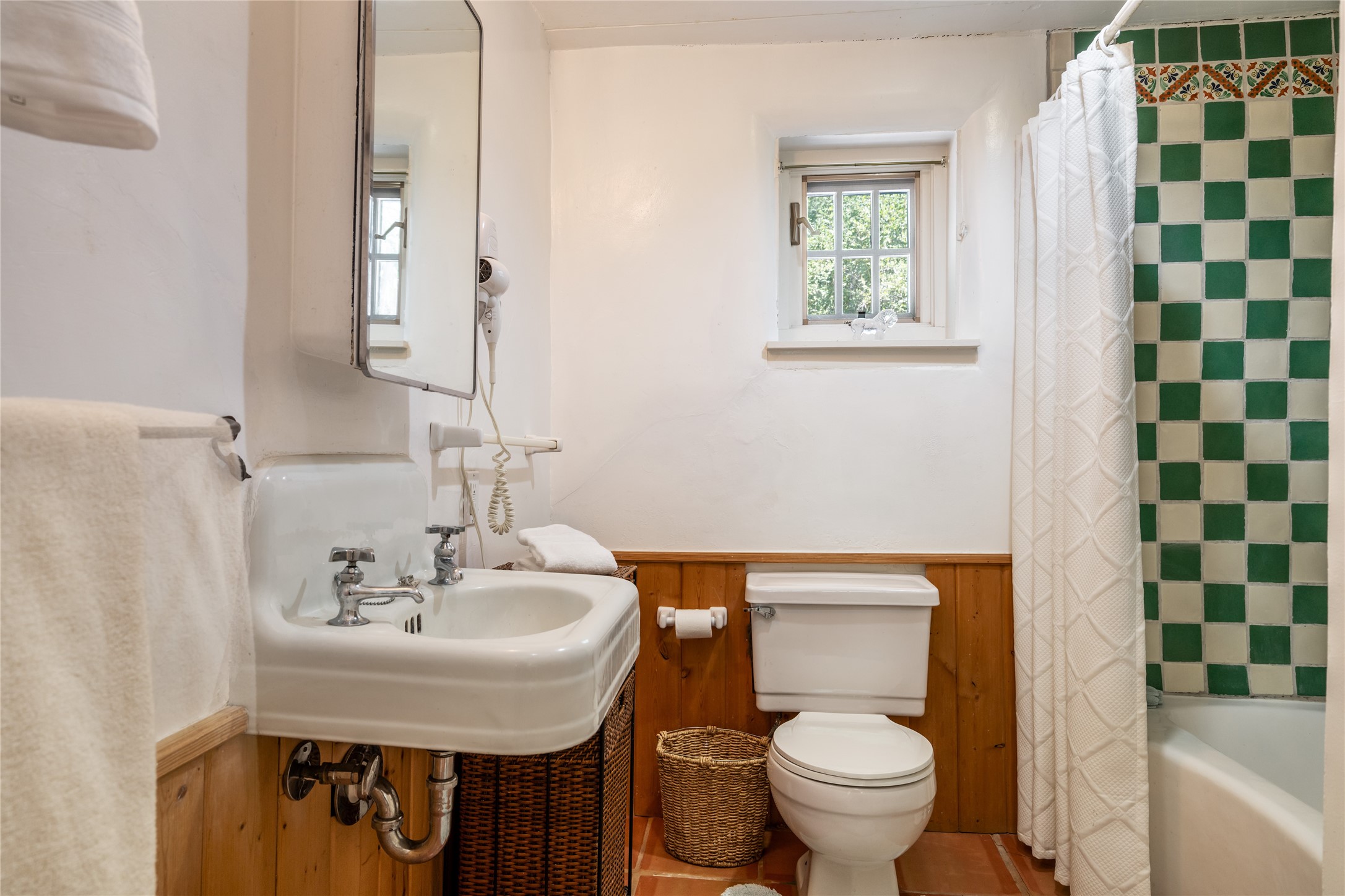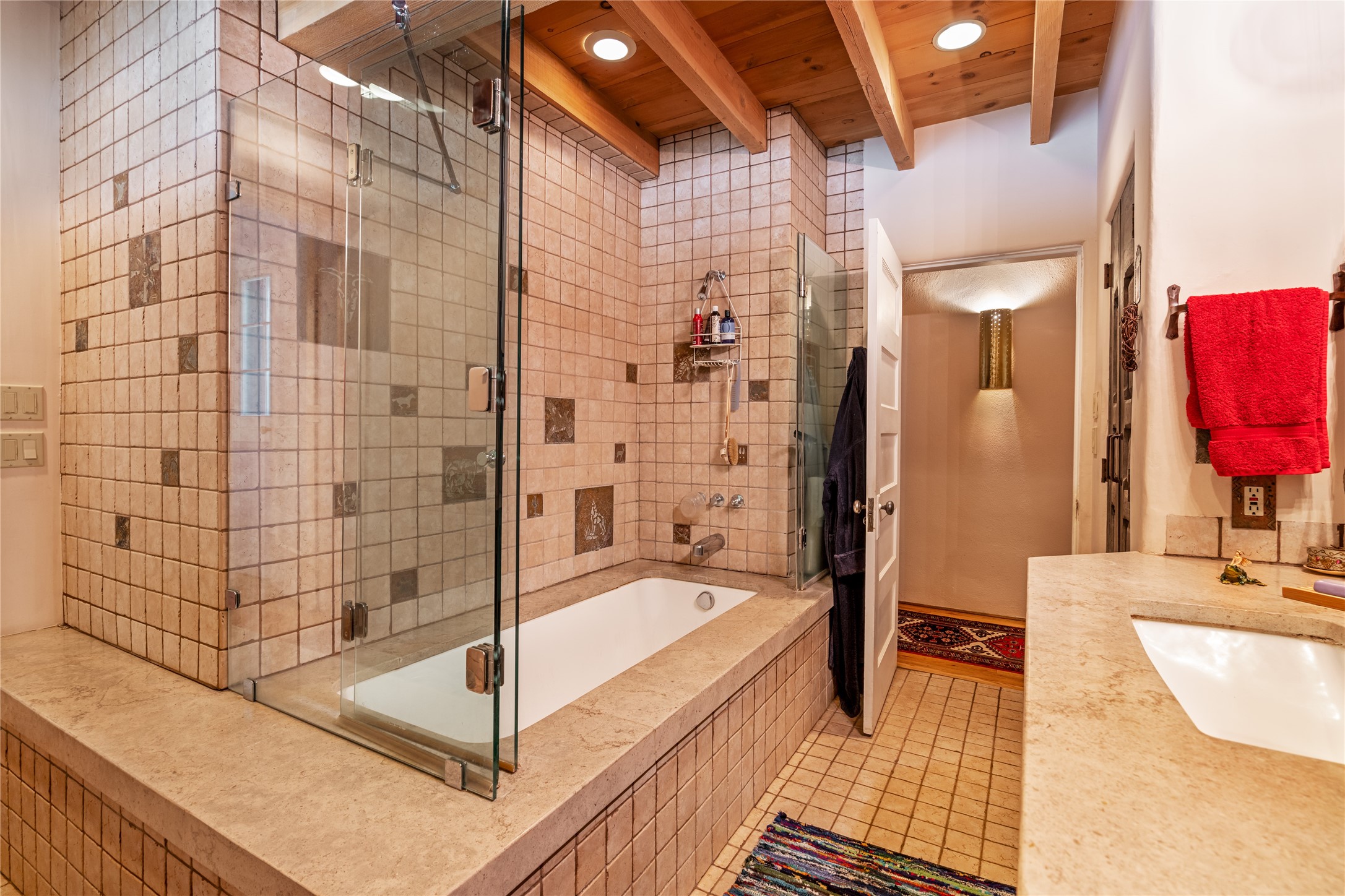 Historic Tesuque property with water rights, a New Mexico dream! Experience what used to be the community hub of Tesuque Village, home to the post office, market, small cottage motel, service station and residence of the postmistress and proprietor.All businesses have long since relocated. The main structure was converted into a private home and the motel into a casita with 2 independent guest apartments, all on 2 lots totaling 1.8 acres. The 3 bedroom, 2 bath double adobe main home features 2 kiva fireplaces in the main living room with a third stone fireplace in the primary bedroom. Traditional viga and cove ceilings decorate the main shared living spaces, with beam and plank ceilings in the halls, bedrooms, bath and sitting rooms. Built-in shelving and multiple closets offer ample storage. The charm continues with custom cabinetry and tin detailing in the kitchen. Also included are unique details such as a dugout for mechanics beneath the floor of the garage, once the Sinclair Service Station, and an outdoor bar with built-in grill. The guest apartments were previously the Modern Cottage Court Motel, a picturesque stone structure. The first apartment has potential for 2 bedrooms or a bedroom and flex space, 1 bath, a full kitchen, 2 fireplaces, an enclosed parking space, and beautiful stonework, all local river rock. The second is a charming studio with a kitchenette and fireplace.The home's character is amplified by the incredible gardens, tree canopy and mature fruit trees. The separate lot is a conservation easement offering additional space to enjoy. Modern updates include forced air heating, a tankless water heater, and an upgraded laundry room in the main house, and a newer roof on the guest house and garage. This special property includes 3 wells and surface water acequia rights. Experience this one-of-a-kind landmark today!