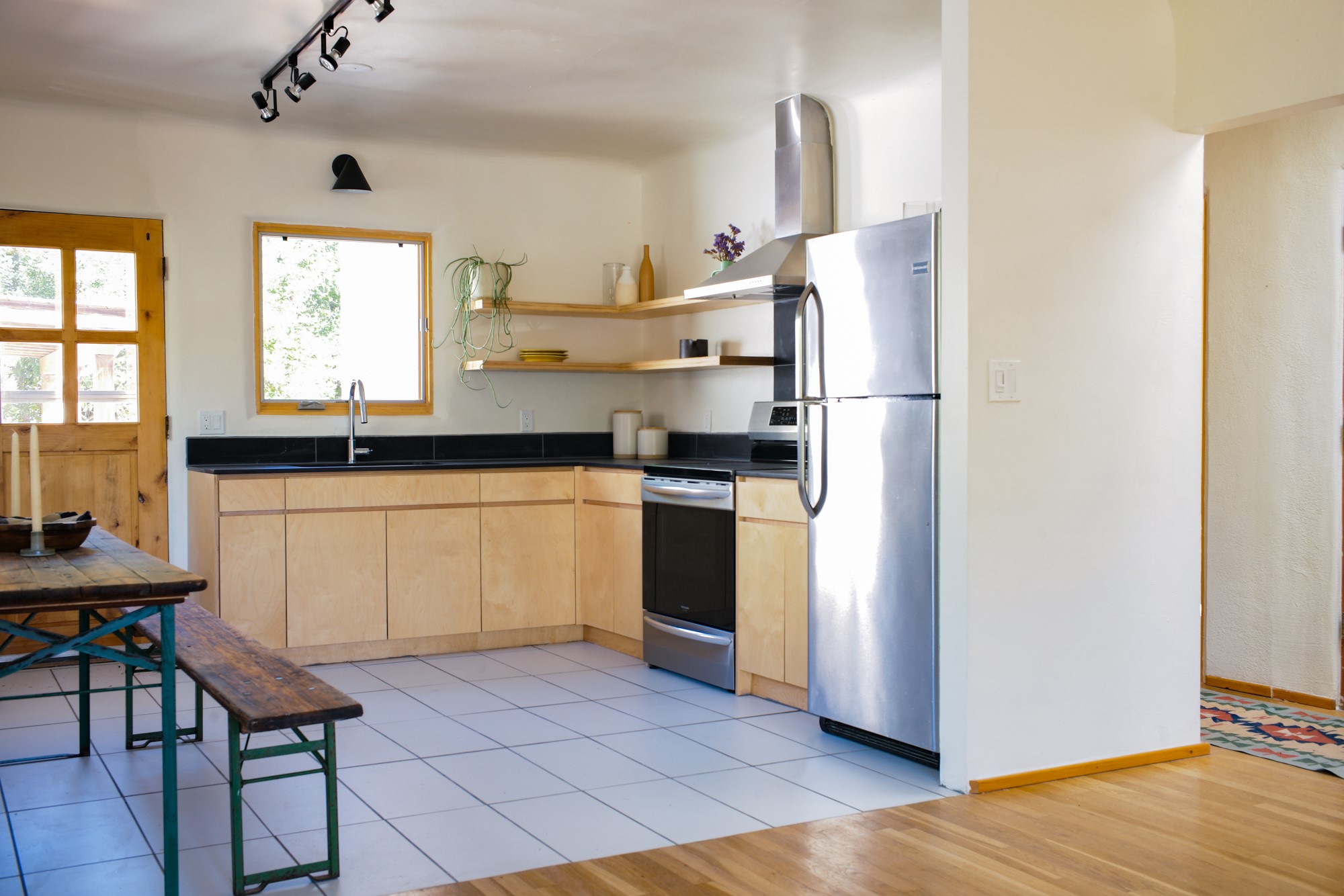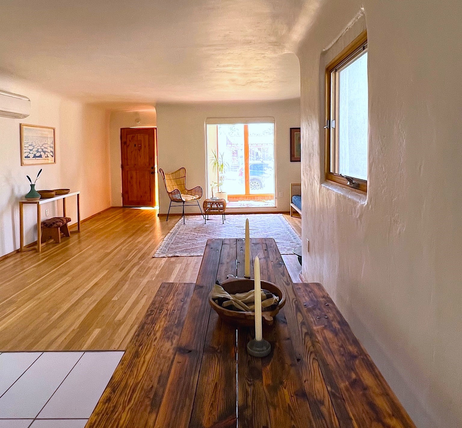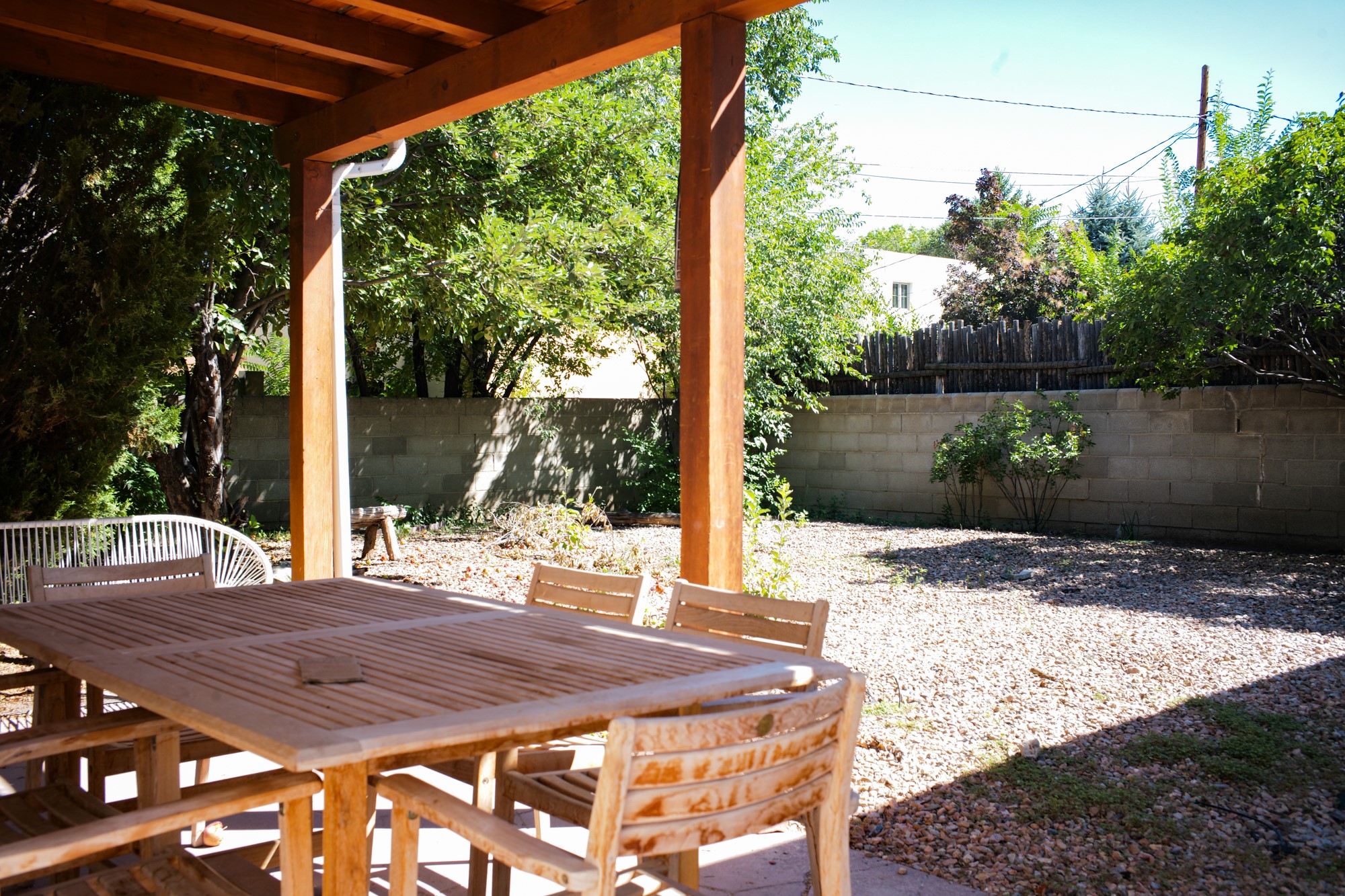 A rare opportunity to live in one of Santa Fe's most desirable neighborhoods in a beautiful, bright and airy move-in-ready South Capitol home! Seller will consider Owner-carry for qualified buyer.Three bedrooms, two full bathrooms and a detached single car garage with fully enclosed backyard provide ample space for a family, hobbyist or work-from-home professionals. Skylights and south-facing sunroom bring in copious natural light while rooftop solar, induction range and new Daikin mini-splits make this home modern and sustainable. Kitchen, bedrooms and bathrooms have been recently renovated with upgraded modern fixtures and double paned windows. Hardwood and porcelain tile floors throughout.Permit-ready, zoning-compliant plans to convert the garage into a one-bedroom ADU available with sale.