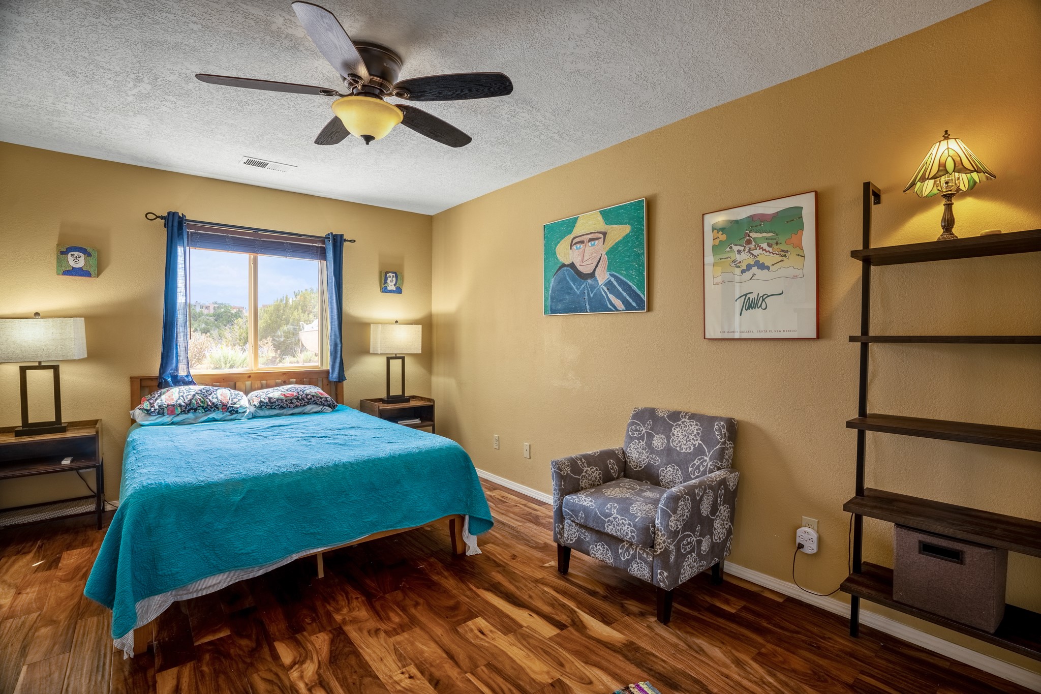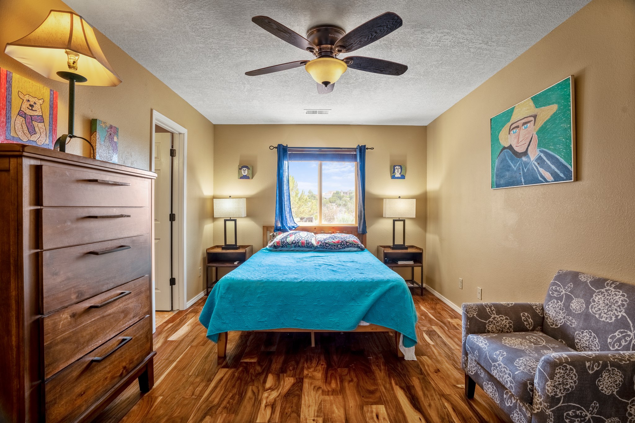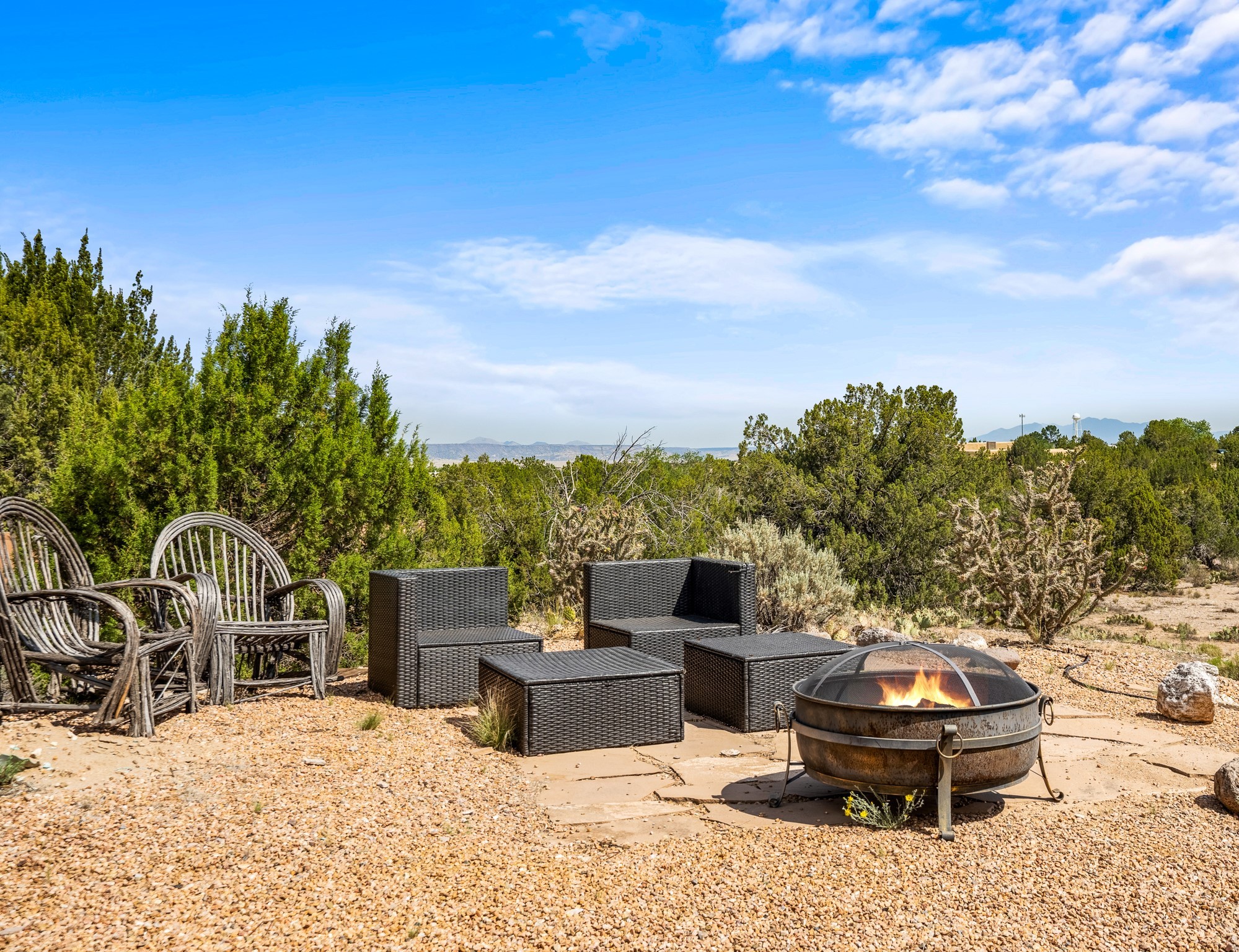 Very sweet, comfortable and well-cared for home between Santa Fe and ABQ. This community is known for its dramatic views, Cochiti Lake and golfing. Home was custom-built for the previous owner. Located on a 0.37 acre lot with a good sense of privacy. New coyote fence off the side of the home recently built for additional privacy and for pets. Minutes from the lake. Beautiful area for evening and morning walks. Open concept kitchen, dining and living area are comfortable and cozy. Garage is located behind the home which gives the home a nice look and entrance. Easy to care for property with an open, clean and natural area at the back of the home for additional outdoor living space. Really a sweet opportunity.