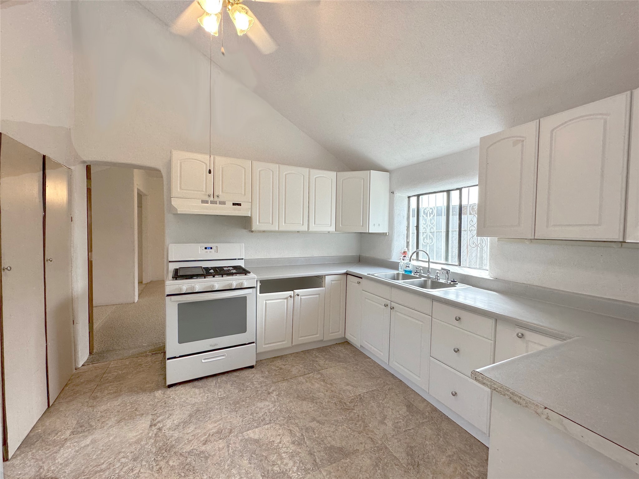 Light and bright! Vaulted ceiling and clerestory windows add drama and spaciousness to the kitchen and living room. Newer oven, plenty of cabinets and counter space. Two bedroom, one and a half bath with split bedroom plan for added privacy. New flooring would help modernize the space, built in the 1970s - bring your decor ideas! Call to schedule a viewing of this affordable entry into the Las Vegas housing market!
