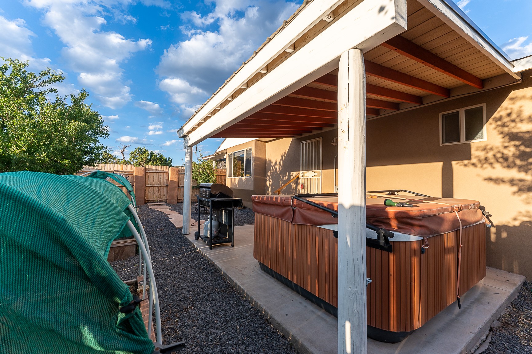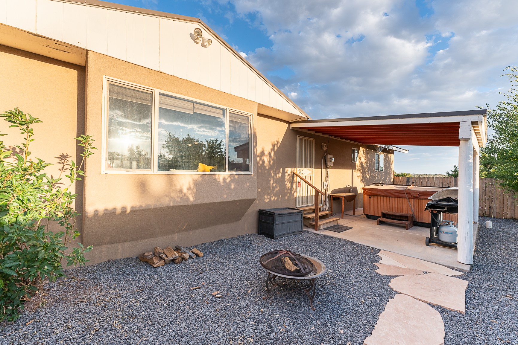 Nestled in nearly four acres of peace and endless views, this beautiful home is a quiet gated escape from the city with 360 views. A masterfully designed kitchen with granite countertops, and stainless-steel appliances awaits you. This floor plan is bright, inviting and a perfect place to entertain your family and friends. The land is entirely fenced-in with a lovely, gated entrance, and has endless parking. The home features two master suites, a third bedroom, with a separate half bathroom. Step outside to enjoy the hot tub or greenhouse like shaded gardens. New stucco just completed June 2023. Bonus: the property features an "Out Building" measuring over 1,500 sqft. A quick 15-minute drive and your clients will thank you.