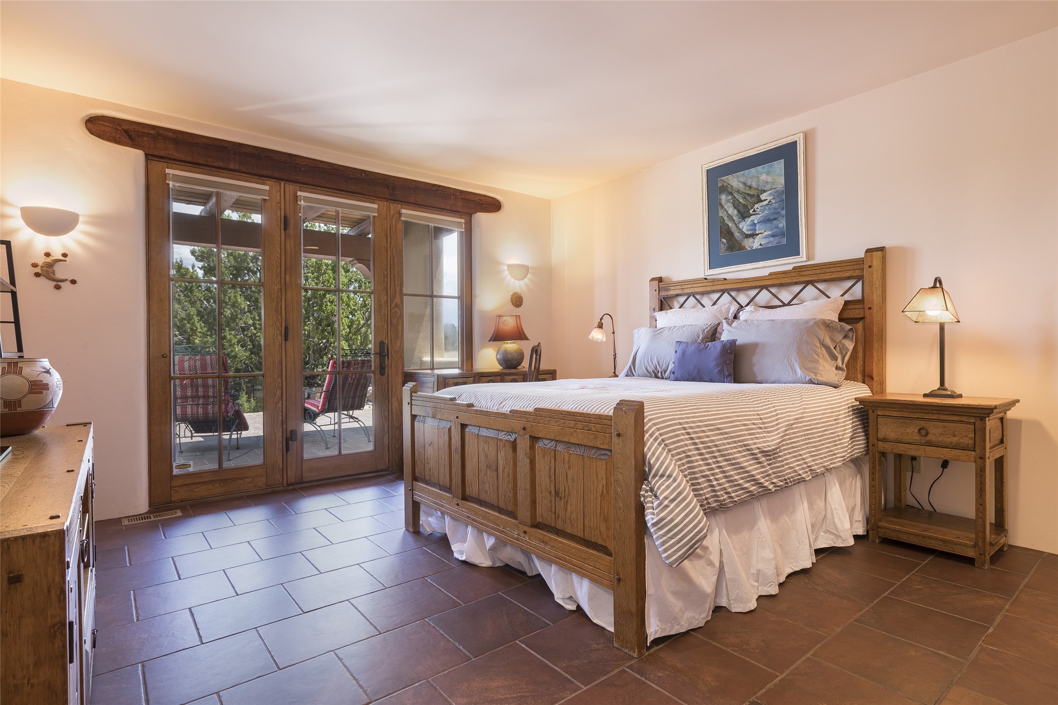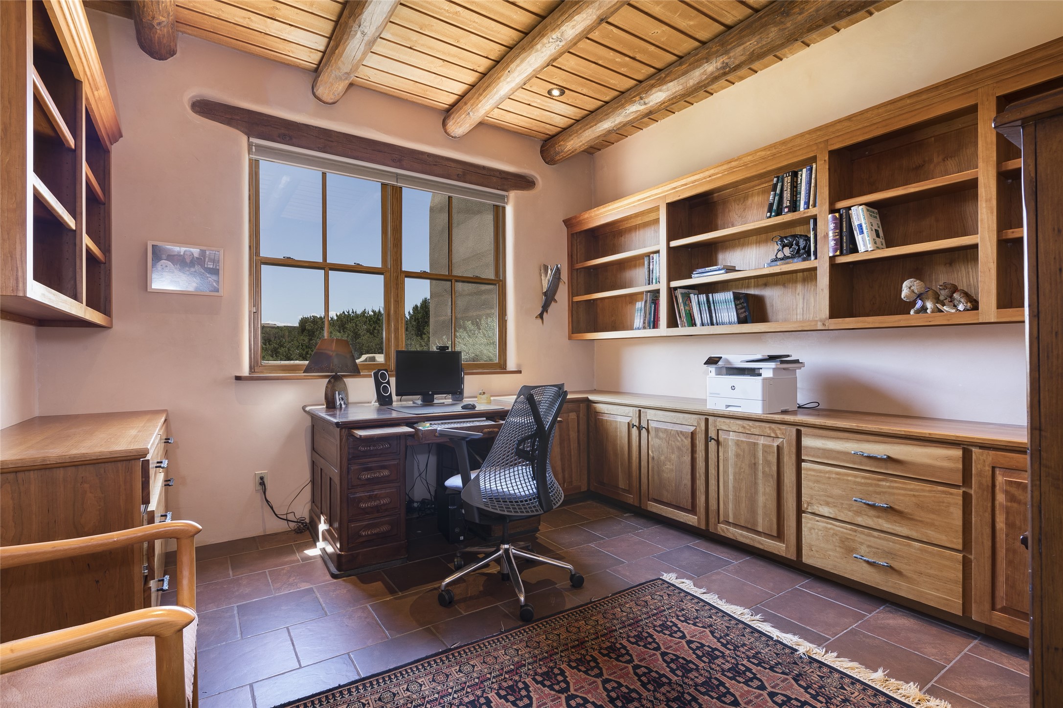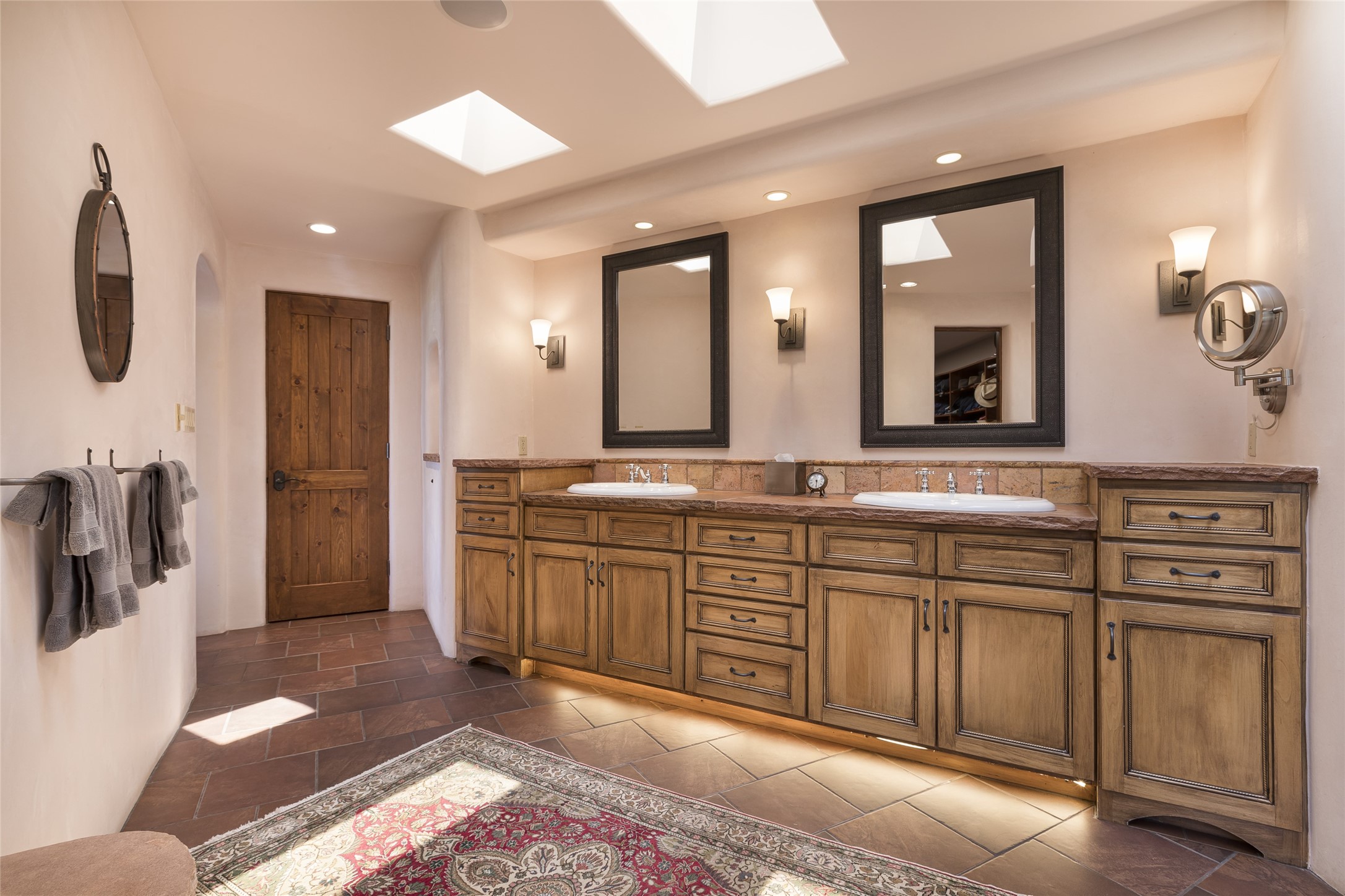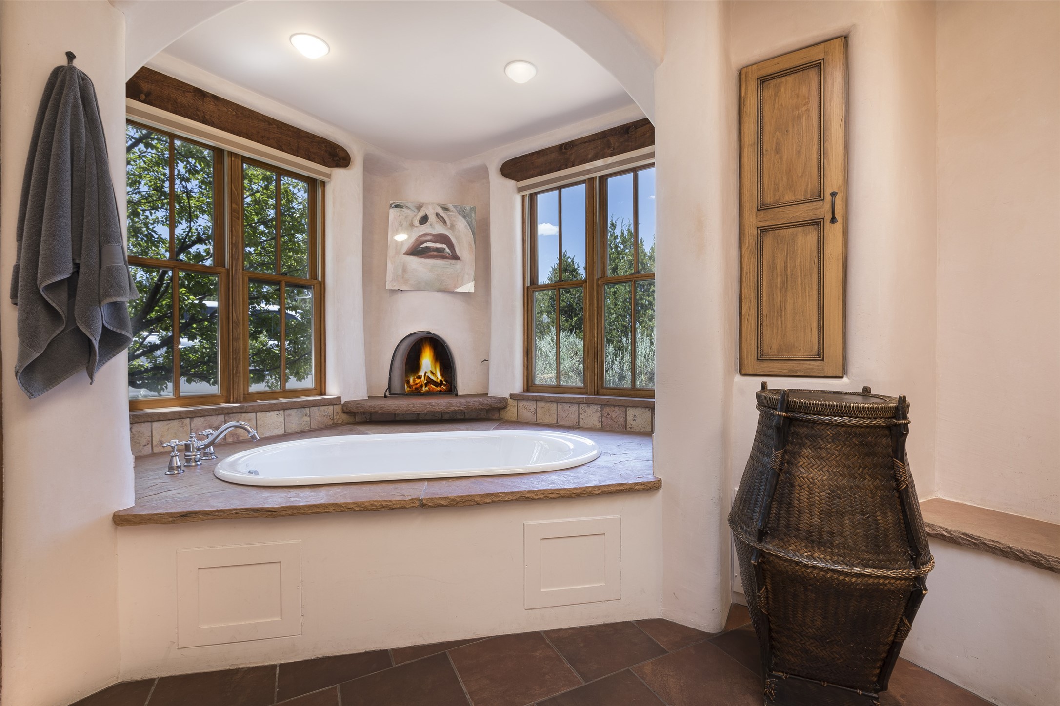 Timeless Santa Fe architecture, spectacular Sangre de Cristo and Jemez Mountain views, and superior outdoor living areas are celebrated at this exciting residence built by renowned builder, Michael Kern. Centrally located within the master planned community of Las Campanas, minutes to the Plaza and The Club at Las Campanas, this exquisite home impresses with exceptional design and the highest level of craftsmanship throughout. Designed to embrace the ultimate Santa Fe lifestyle, this quality single level home offers an excellent separation of space, with a private owner's suite complete with a fireplace, portal access, a tranquil spa-like bath with a jetted tub, dual vanities, walk-in shower and a large walk-in closet. Guests enjoy their own separate guest wing complete with two ensuite bedrooms with Sangre De Cristo Mountain views, private portals and separate entrances. Located off the front entrance is a well-appointed office or ideal fourth bedroom, with custom built-in cabinetry and courtyard views. The spacious chef's kitchen, ideal for entertaining, delights with luxury appliances including a 6-burner gas range with a griddle and double ovens, a free-standing island, and a breakfast bar, all of which open to the spacious living room with a grand fireplace, dining room, and all outdoor living areas. The outdoor living experience is enhanced by deep surround portals, a park-like setting, fully enclosed front and back walled courtyards with an outdoor built-in BBQ, water feature, and expansive back outdoor dining with views of the Sangre de Cristo Mountains. Luxury finishes include plaster walls, rich wood ceiling accents with vigas and corbels throughout, 22 skylights, and rare old-world craftsmanship throughout this one of kind residence. The owner's Equity Golf Membership to The Club at Las Campanas is available for purchase on a separate bill of sale.
