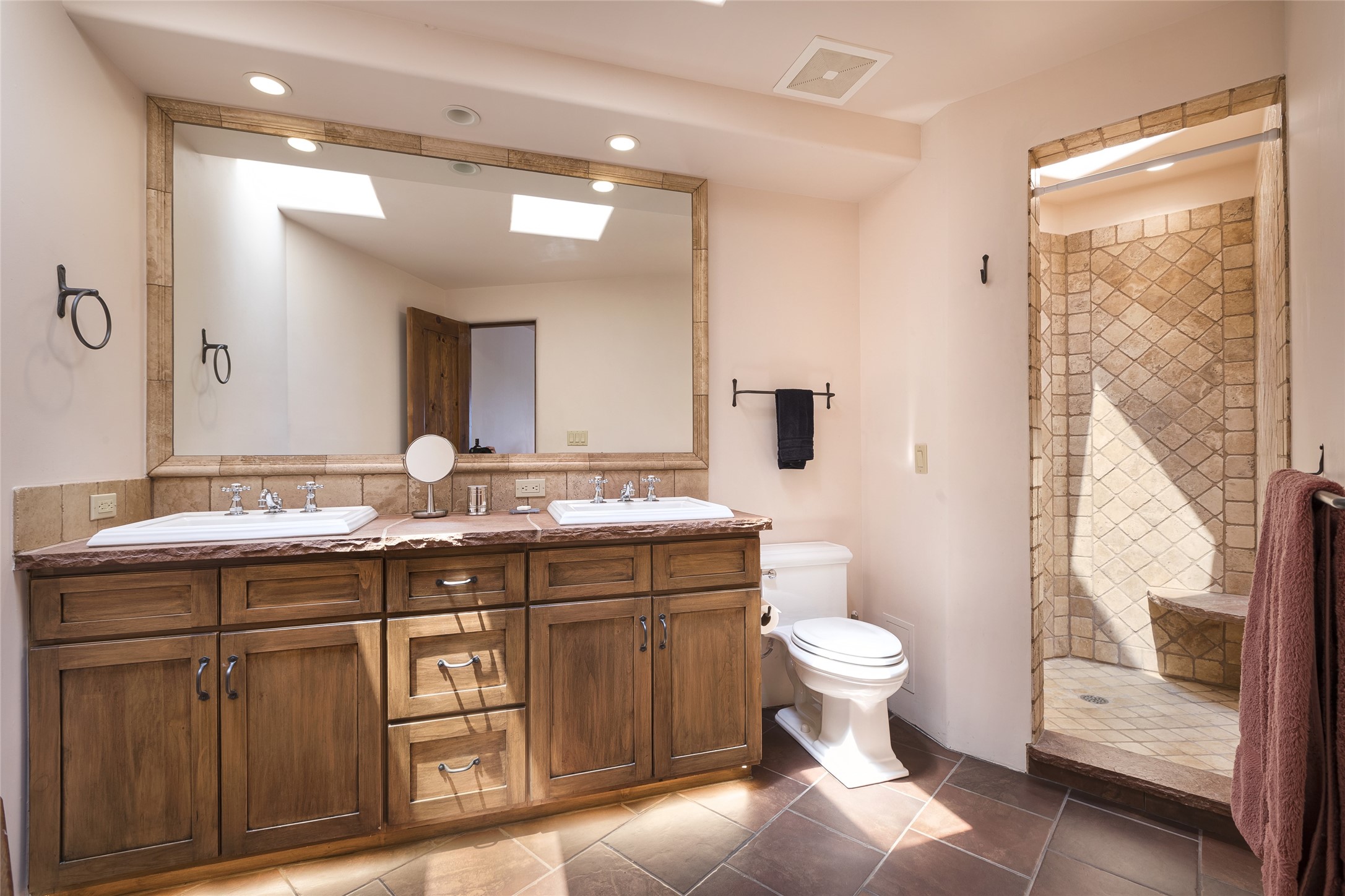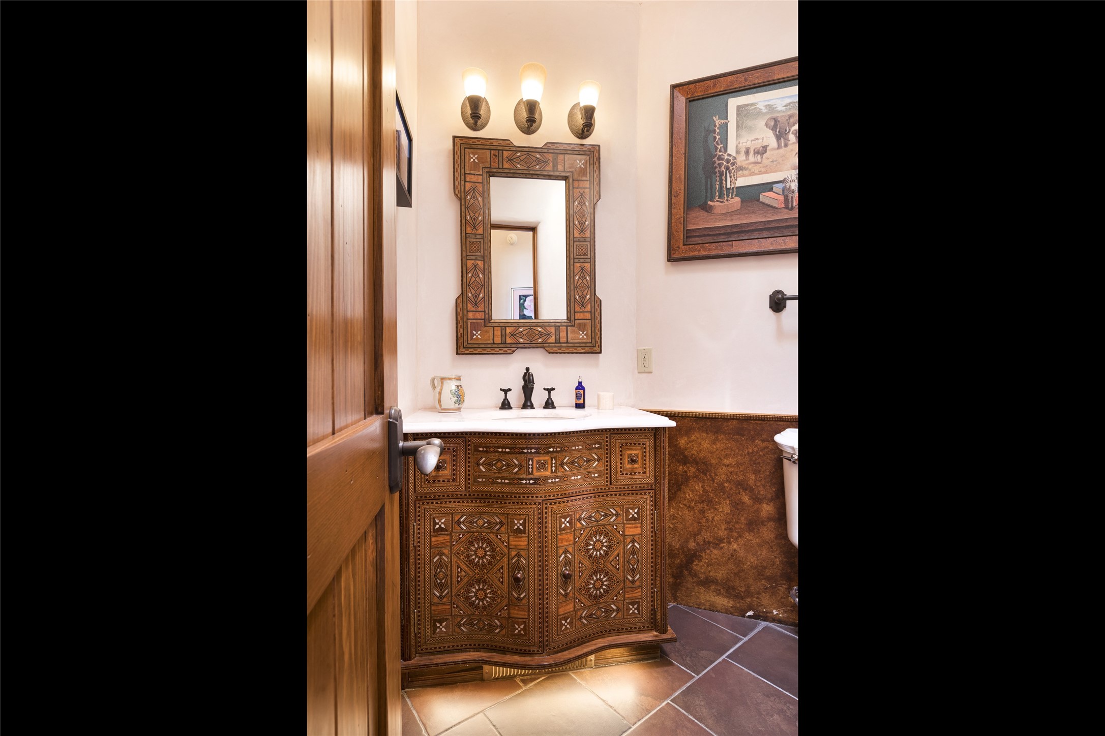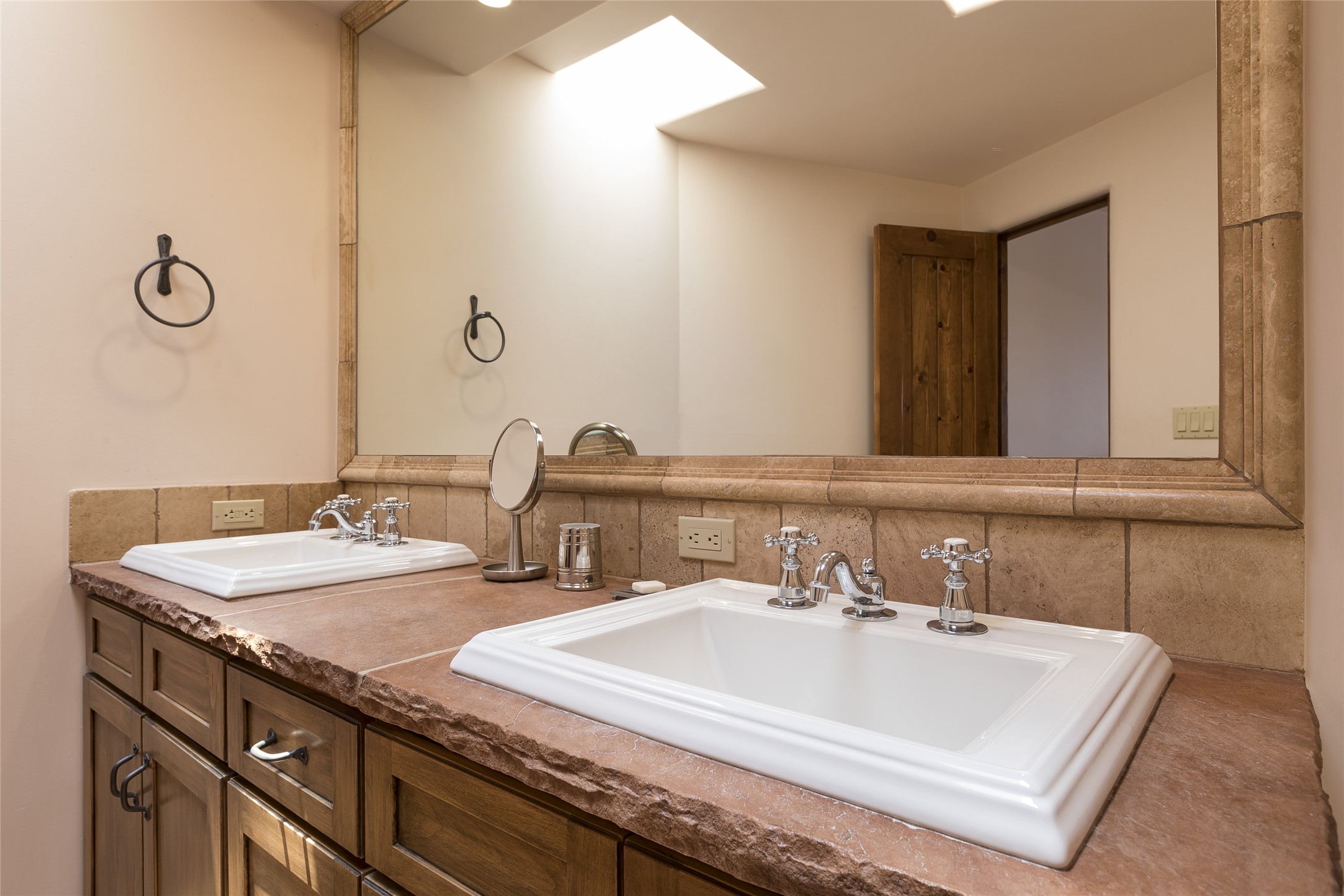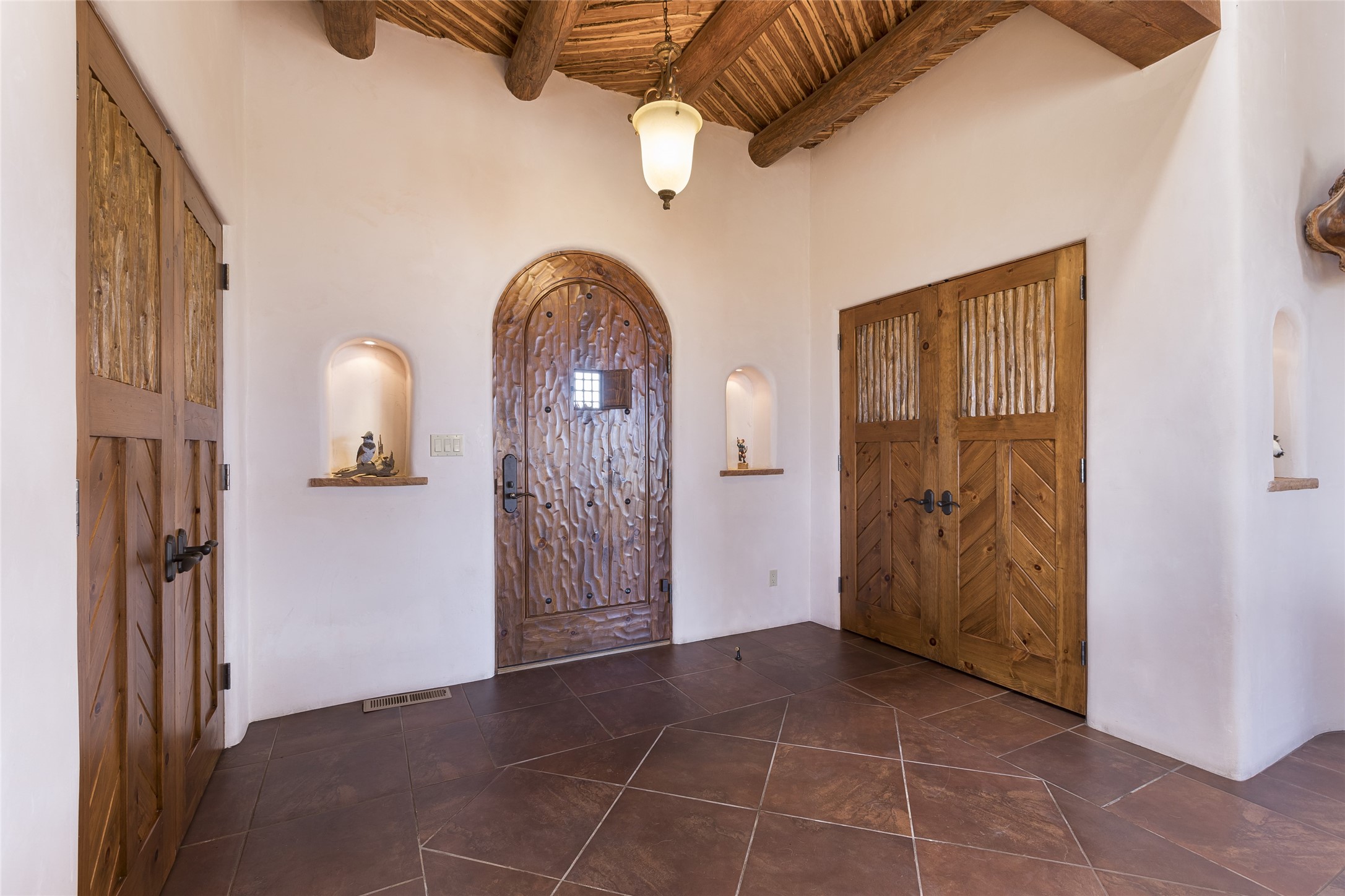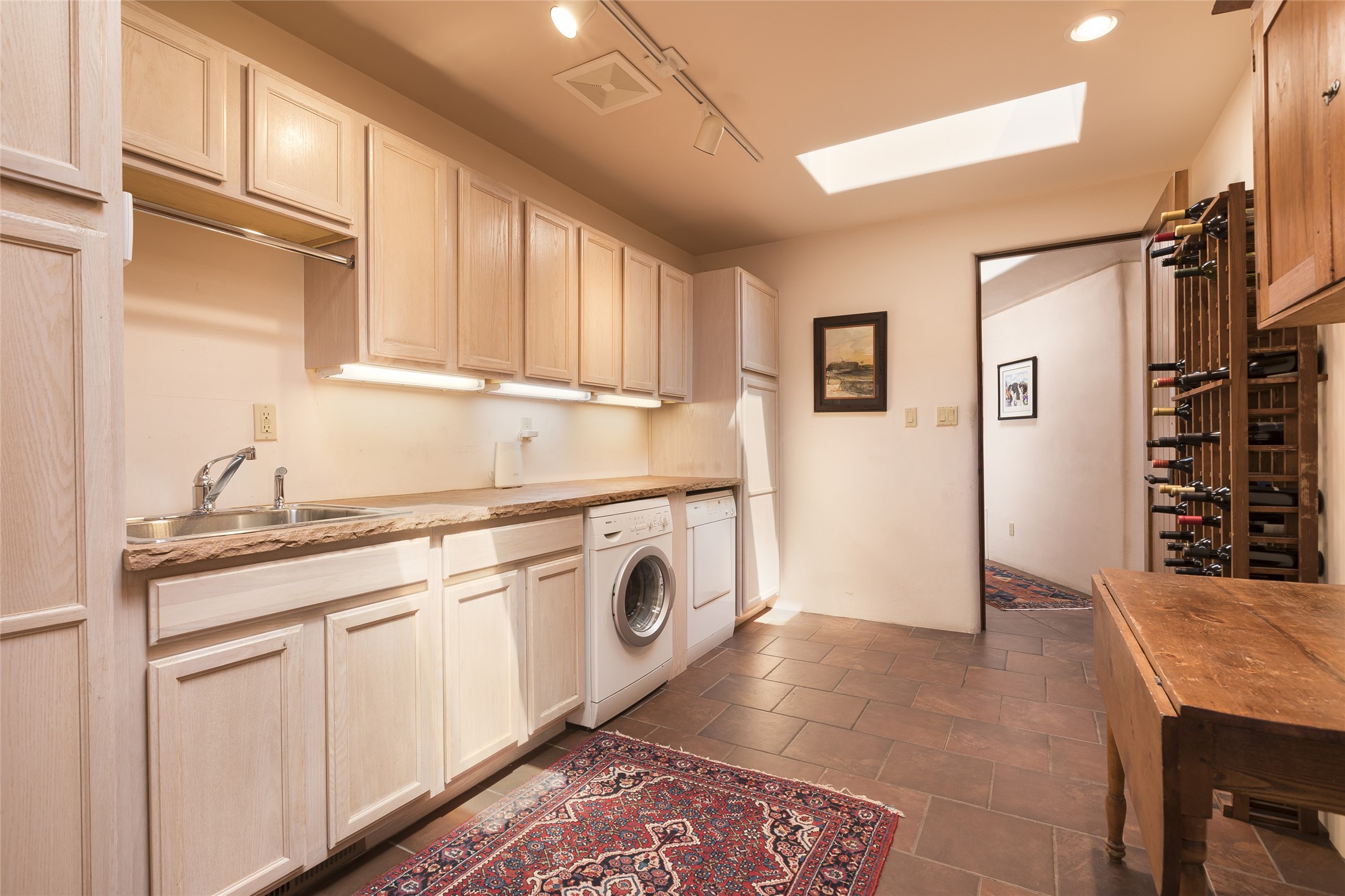 Timeless Santa Fe architecture, spectacular Sangre de Cristo and Jemez Mountain views, and superior outdoor living areas are celebrated at this exciting residence built by renowned builder, Michael Kern. Centrally located within the master planned community of Las Campanas, minutes to the Plaza and The Club at Las Campanas, this exquisite home impresses with exceptional design and the highest level of craftsmanship throughout. Designed to embrace the ultimate Santa Fe lifestyle, this quality single level home offers an excellent separation of space, with a private owner's suite complete with a fireplace, portal access, a tranquil spa-like bath with a jetted tub, dual vanities, walk-in shower and a large walk-in closet. Guests enjoy their own separate guest wing complete with two ensuite bedrooms with Sangre De Cristo Mountain views, private portals and separate entrances. Located off the front entrance is a well-appointed office or ideal fourth bedroom, with custom built-in cabinetry and courtyard views. The spacious chef's kitchen, ideal for entertaining, delights with luxury appliances including a 6-burner gas range with a griddle and double ovens, a free-standing island, and a breakfast bar, all of which open to the spacious living room with a grand fireplace, dining room, and all outdoor living areas. The outdoor living experience is enhanced by deep surround portals, a park-like setting, fully enclosed front and back walled courtyards with an outdoor built-in BBQ, water feature, and expansive back outdoor dining with views of the Sangre de Cristo Mountains. Luxury finishes include plaster walls, rich wood ceiling accents with vigas and corbels throughout, 22 skylights, and rare old-world craftsmanship throughout this one of kind residence. The owner's Equity Golf Membership to The Club at Las Campanas is available for purchase on a separate bill of sale.