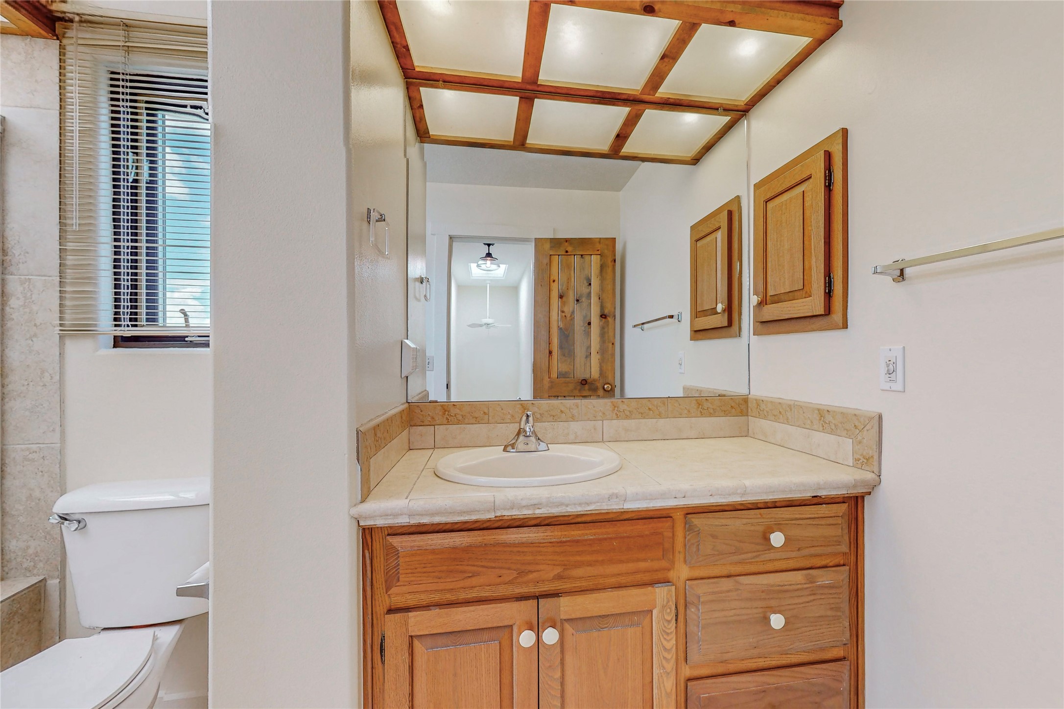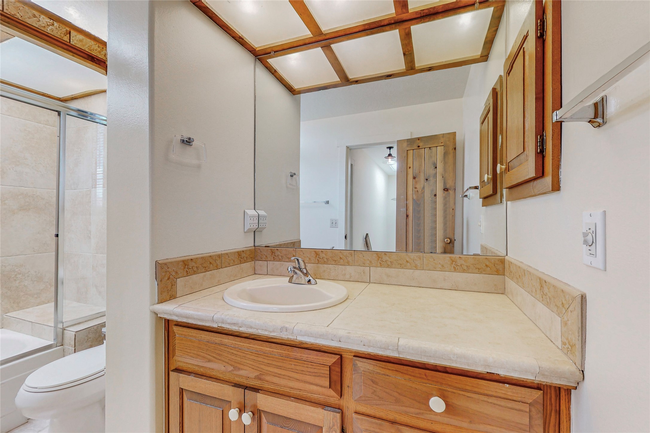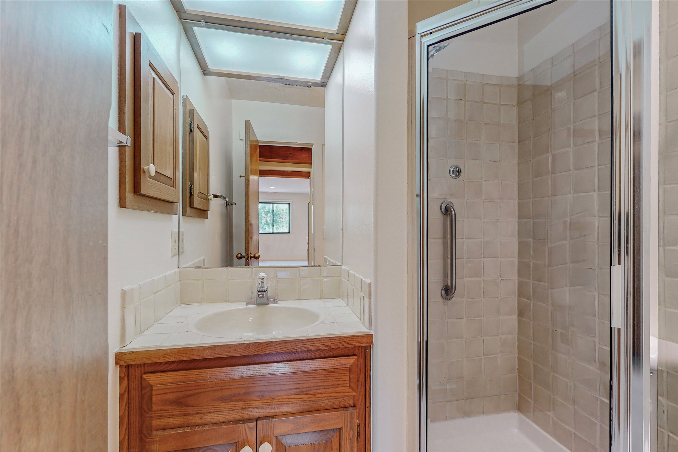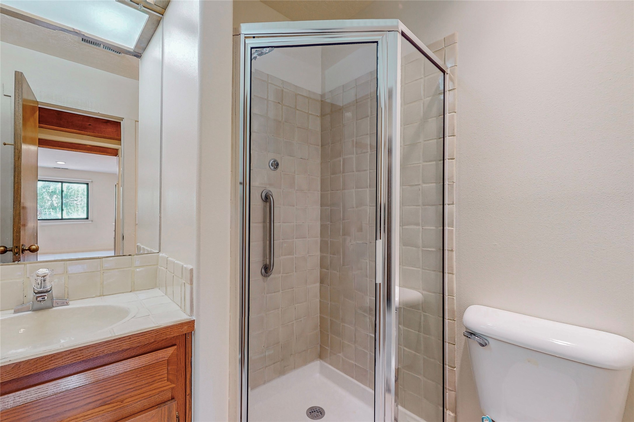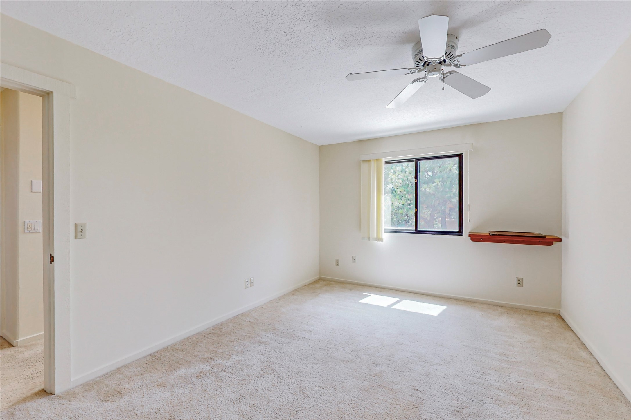 Sunny and secluded - an ideal location for your new Santa Fe home! This condo unit will surprise you, it's private and tucked away at the end of a cul-de-sac. A peaceful courtyard greets you, and this area of greenery and sunshine is also seen from inside the unit. The entire first floor is open space planning focused on a large light-filled living room, complete with a gas-fired corner kiva fireplace. The open space flows to a dining area and from these windows you'll see mountain views of the Sangres - and possibly snow-covered peaks. The open kitchen is euro style with a Wolf induction cook top. Currently there is no oven, but there is a cabinet space (under counter) in the kitchen that formerly had an oven and this is where a new oven could be installed. The extra-deep attached garage, laundry area, and bath with walk-in shower complete the first floor. Up the staircase you'll find two generous bedrooms with a large full bath between. Both bedrooms offer big windows, good closets and lots of natural light. With professional HOA coverage on many exterior items plus the new roof completed in September of 2021, this unit will provide the new owner with easy living. The location offers you close proximity to all of downtown Santa Fe, for restaurants, museums, shopping. Nearby are numerous grocery store options and the farmers' market. Within 5 minutes you can be ordering breakfast at a downtown location. Also, just at the base of the hill is Ft Marcy park, which offers multiple choices: pickle ball courts, indoor swimming pool, basketball court, exercise rooms, and good dog walking options. OR, you can walk downhill to the Plaza in about 20 minutes. This is a very comfortable place as a full time home or your Santa Fe escape. Welcome to Santa Fe!