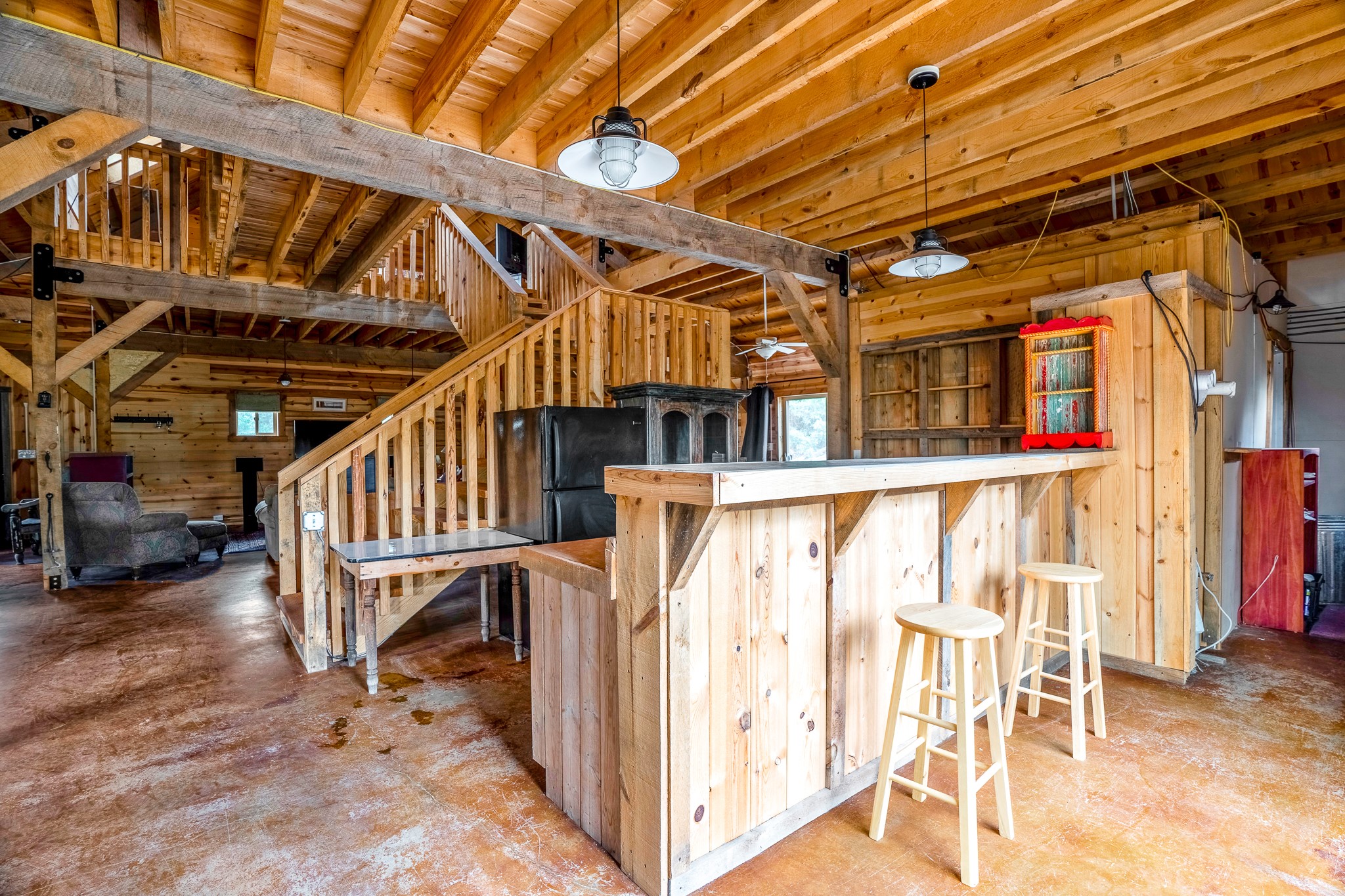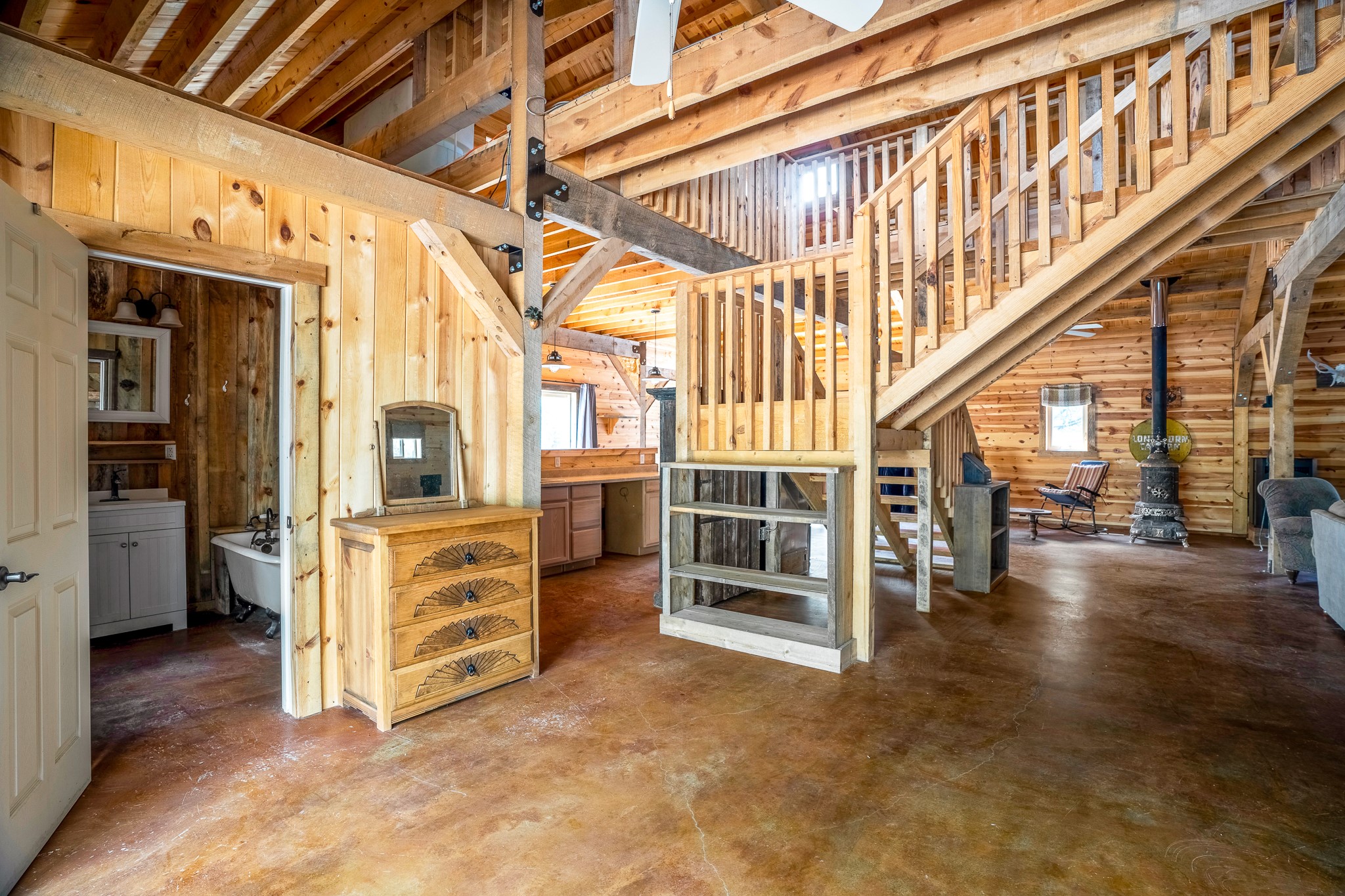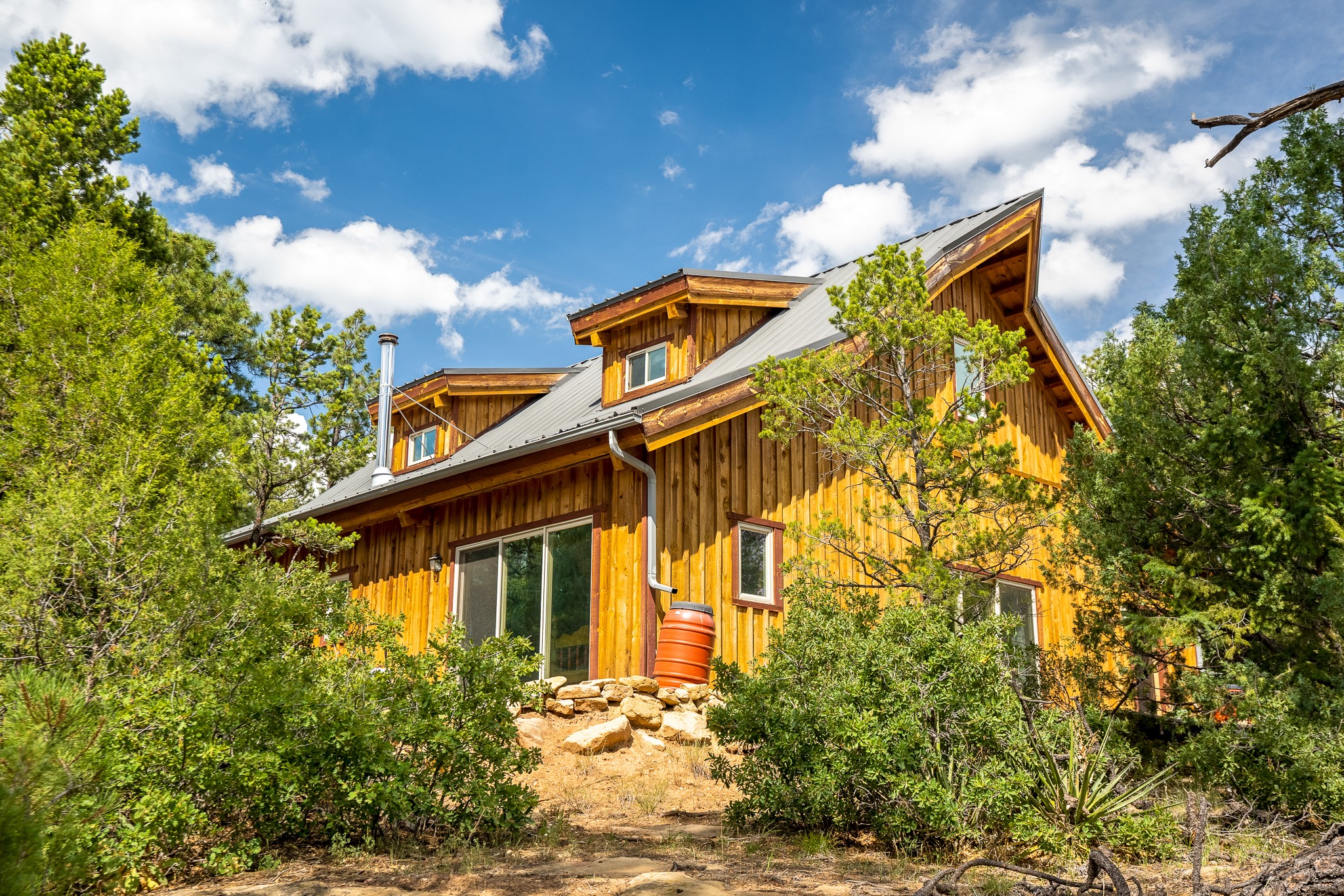Discover serenity in this beautiful property, nine plus acres on La Cueva Road, in Glorieta. Embrace the rural setting with mature pine trees and captivating rock outcroppings. "The Barn," a spacious cabin-style home on the property, offers off-grid living at its finest. With a small PV solar system, water cistern, composting toilet and clawfoot bathtub, it's a sustainable retreat. Large exposed beams frame two loft spaces, connected by a great center staircase and catwalk. The open main level integrates the kitchen, dining, and living areas seamlessly with 3 sets of glass doors to nature. The original main structure will require renovation and is currently uninhabitable but offers features such as a private well, septic, electric utility services, large south-facing windows, sun deck, loft space, and a private primary suite. Escape the city to this rustic haven just 40 minutes from Santa Fe. Whether you seek tranquility or a creative sanctuary, this property offers both - a genuine mountain retreat. This property is an estate and being sold "as-is" with limited information available. Will most likely need to be a cash transaction given condition.