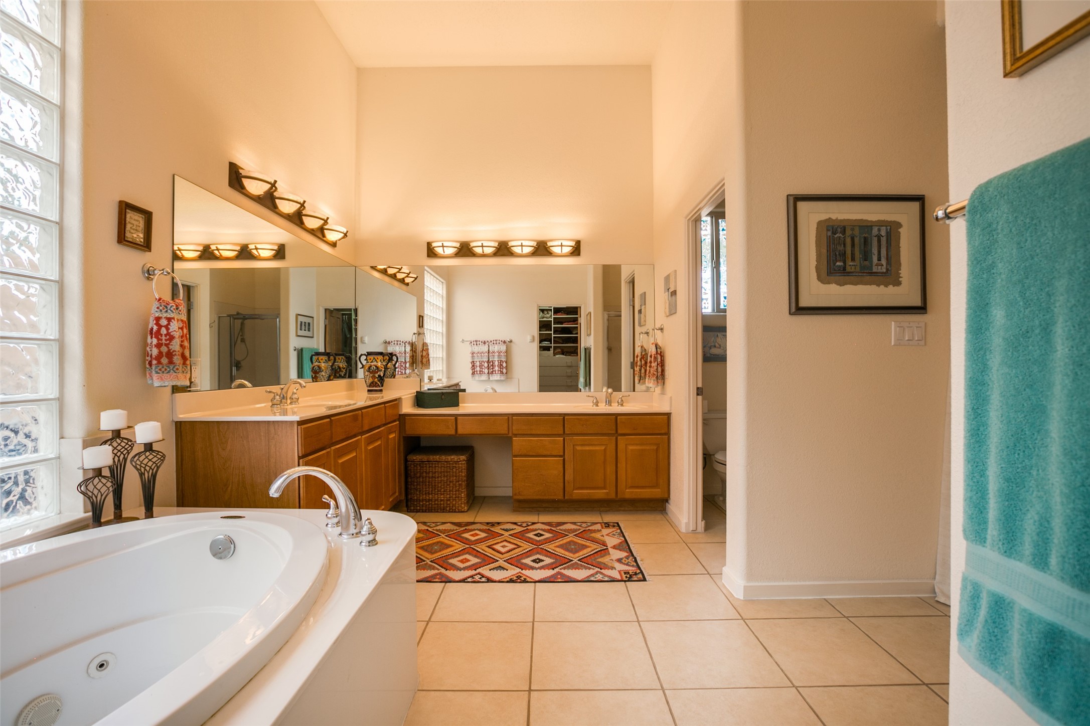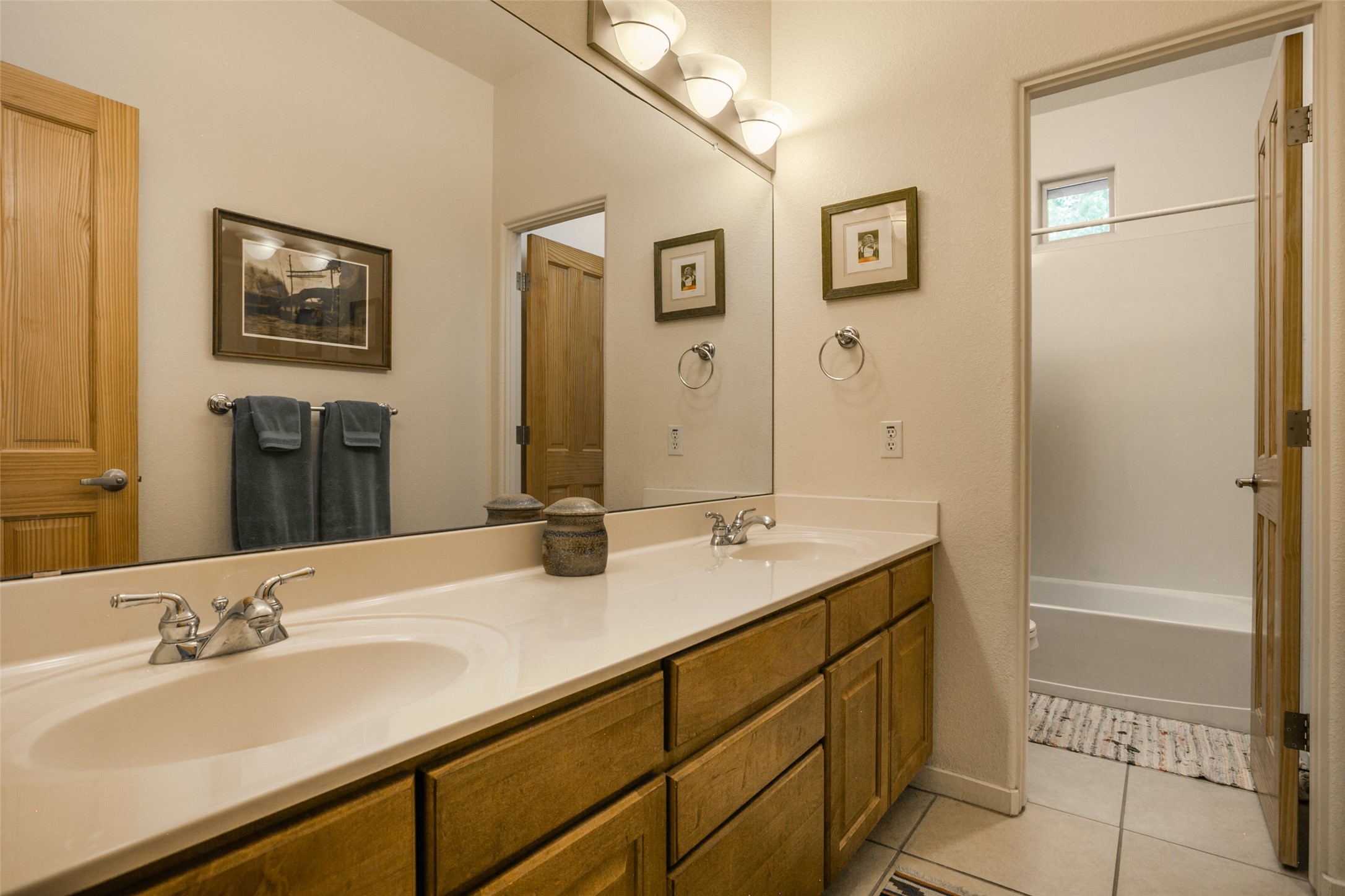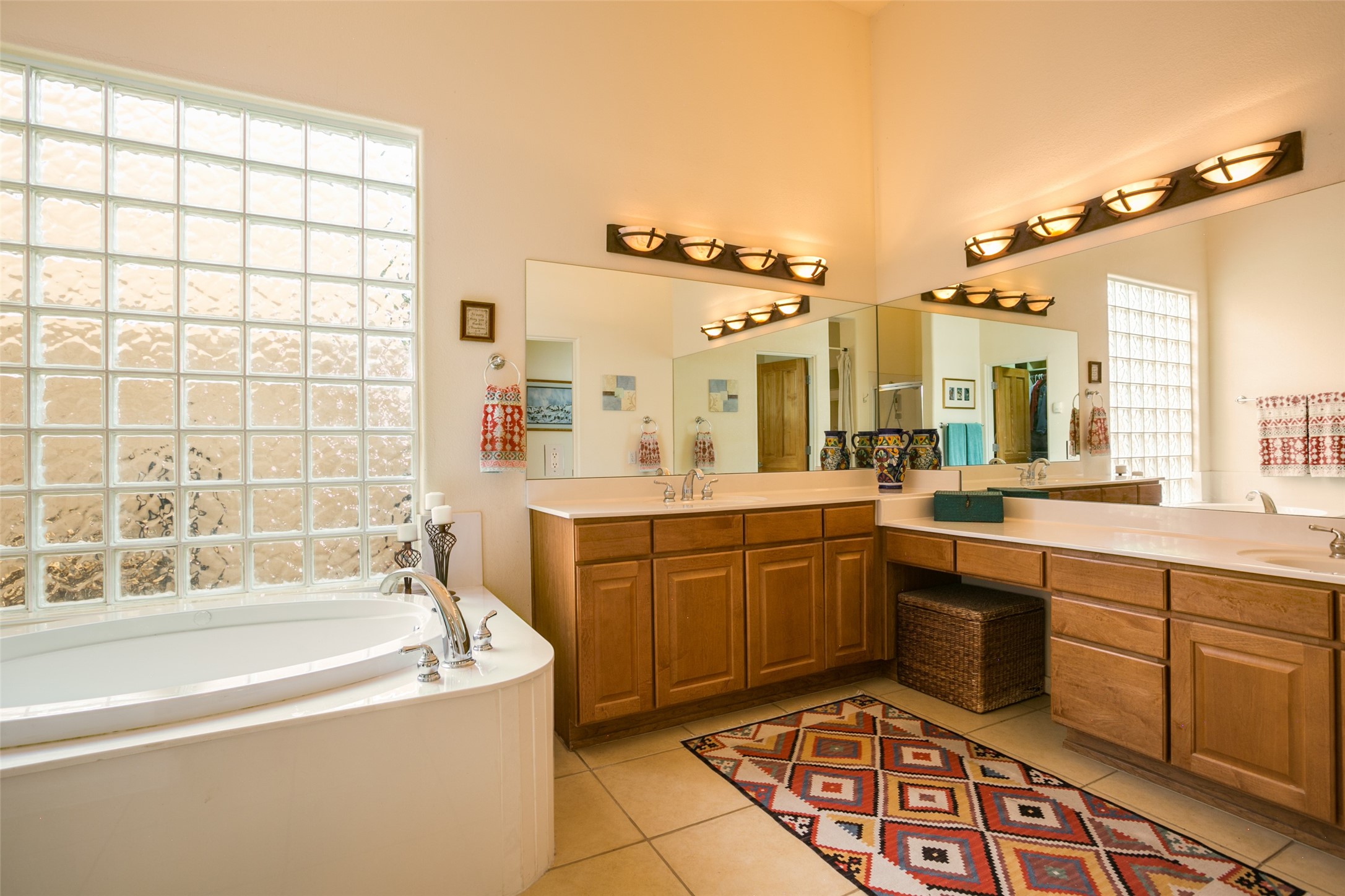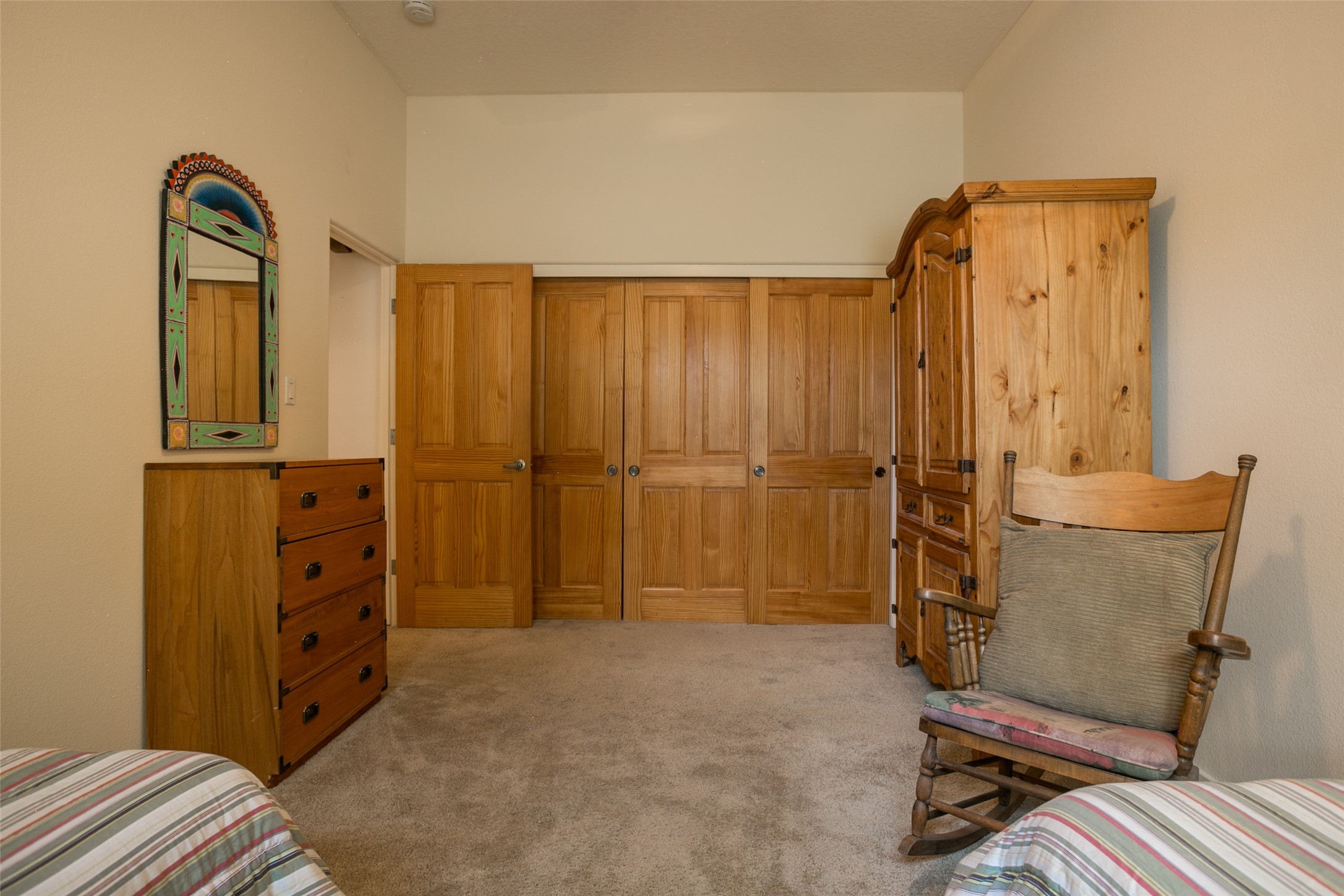 This Chaparral Model home offers an abundance of natural light, soaring 12 ft ceilings, a 4th bedroom with tile floors that could be used as a studio or private office space, mountain views, and high-end finishes throughout. The single-level open floor plan has complete separation of the primary bedroom from all other rooms in the home. The primary suite possesses a gas fireplace, a 17 ft deep walk-in closet with built-in storage from California Closets, a spa-like en-suite bathroom with double vanities, custom tile finishes, an enclosed toilet, garden tub, and a spacious walk-in shower. There is a formal living room, formal dining room, library with custom-made floor-to-ceiling bookcases, den/family room, kitchen island with seating for intimate meals, a large breakfast nook, and a laundry room with extra cabinets and storage. The Chef's kitchen is equipped with ample counter space and cabinets for storage, a large pantry, a built-in desk area, and some newer appliances. The kitchen opens up to the den/family room which features a wood-burning Kiva fireplace and a wall of windows inviting you to step outside. The amazing flagstone patio and the covered portal were custom designed with large vigas and corbels to replicate the ones found at the La Fonda Hotel. This very private and oversized lot was professionally landscaped with Aspen and Pine trees and native plants and has a new irrigation system. This home has 2 separate evaporative cooling systems and radiant heat. The residents of the Rancho Viejo community enjoy many miles of paved trails through the preserved, natural open space which provides expansive mountain views for walking and biking, plus 6 neighborhood parks with play equipment. Don't miss this true gem!