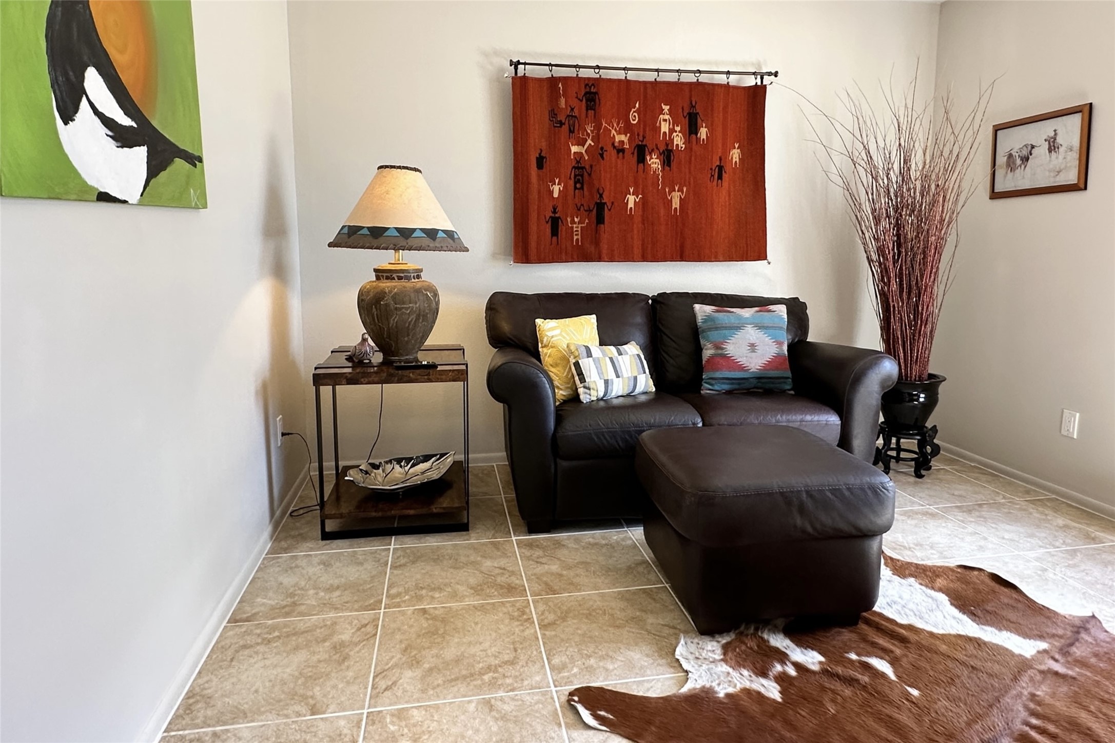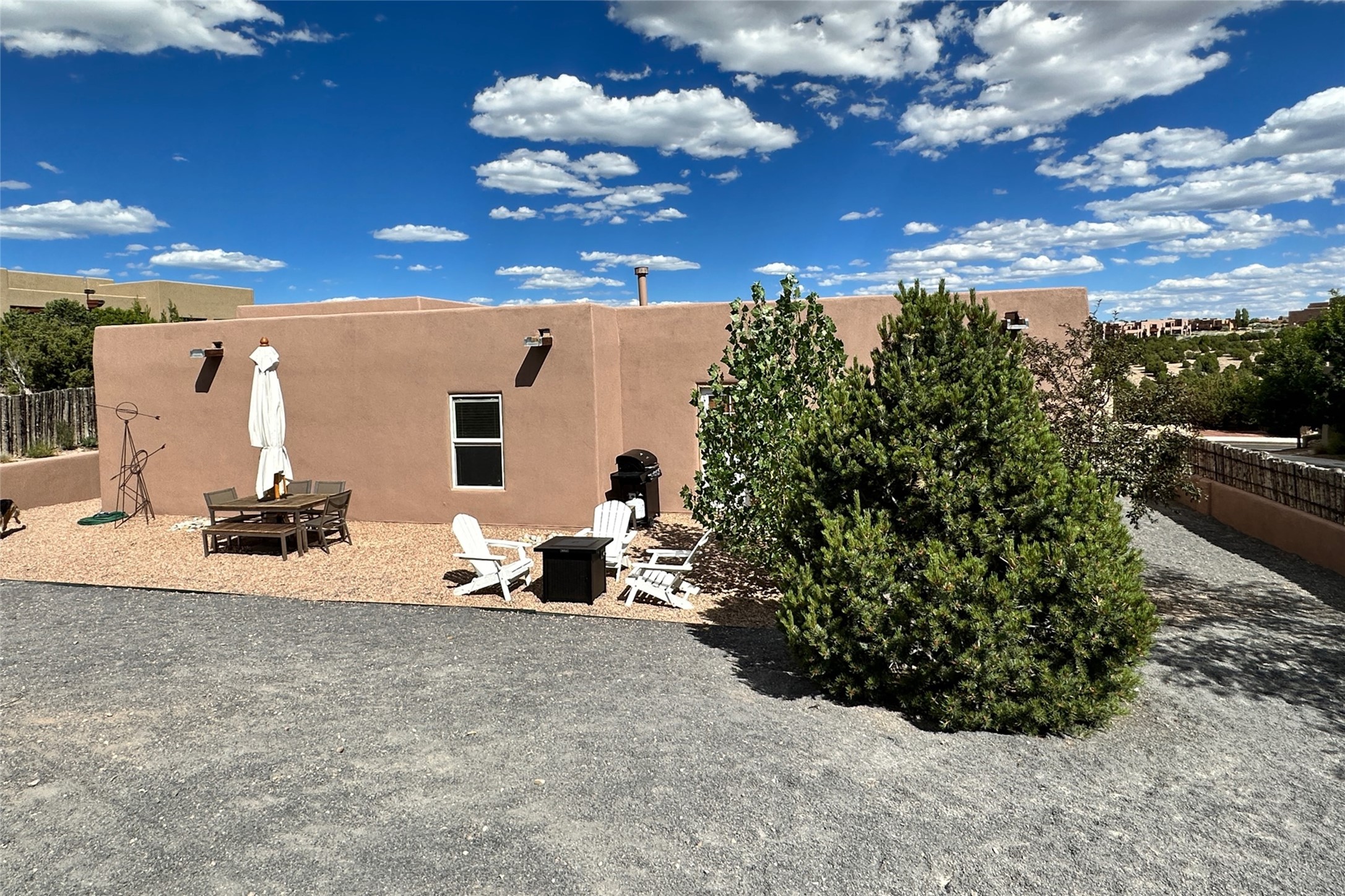 Discover just off 599 in Aldea, this warm and inviting single level home with a large coyote fenced yard and recently updated with tile flooring, new appliances, wall finishes to name just a few. Well separated bedrooms and versatile room use is possible. Set on a quiet street with a large two car garage and with extra parking and easy care landscaping.Aldea de Santa Fe includes over 200 acres of parks with tennis, bocce, pickle, and basketball courts plus walking trails to enjoy during the day and dark skies at night to see all the heavens you missed in town.
