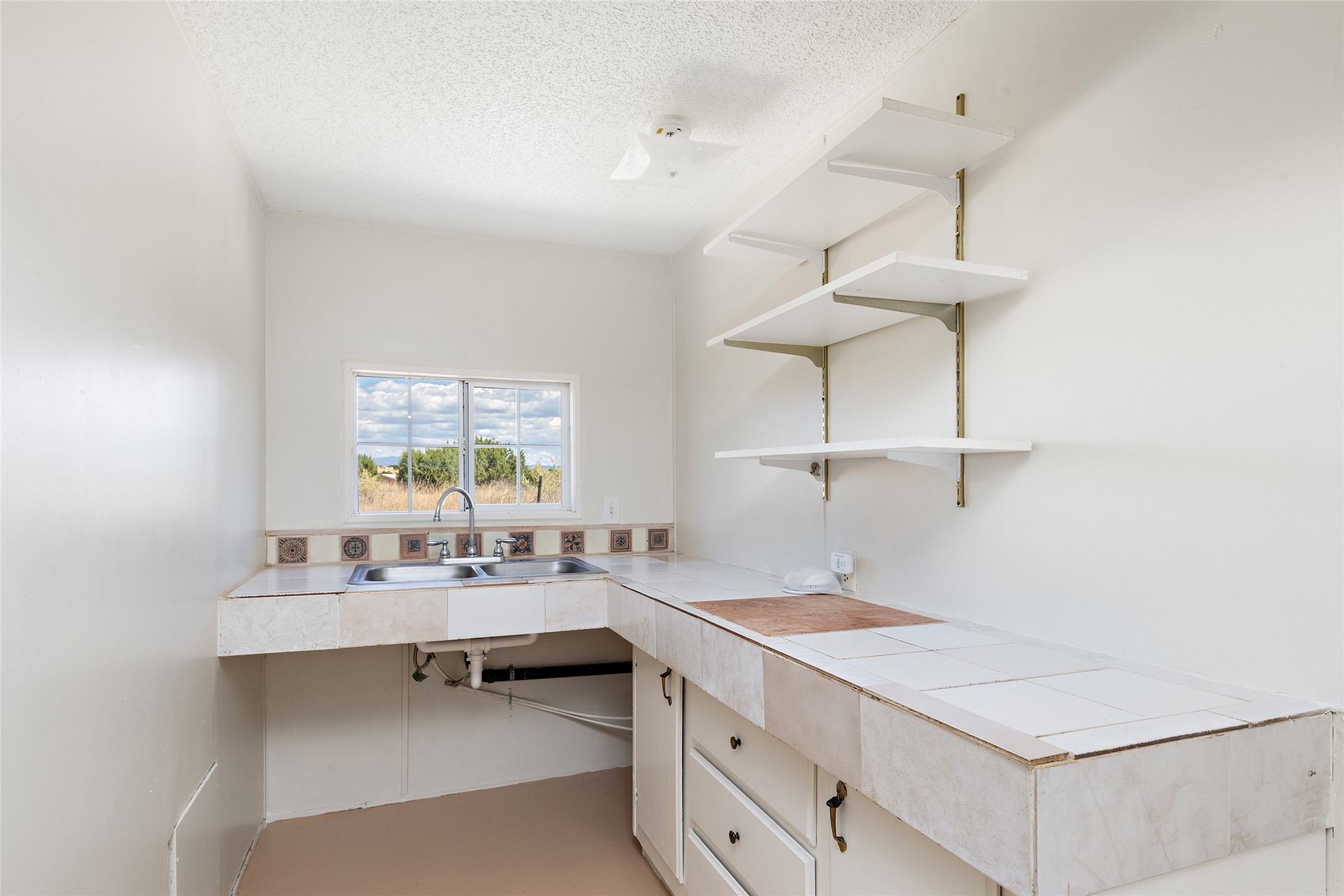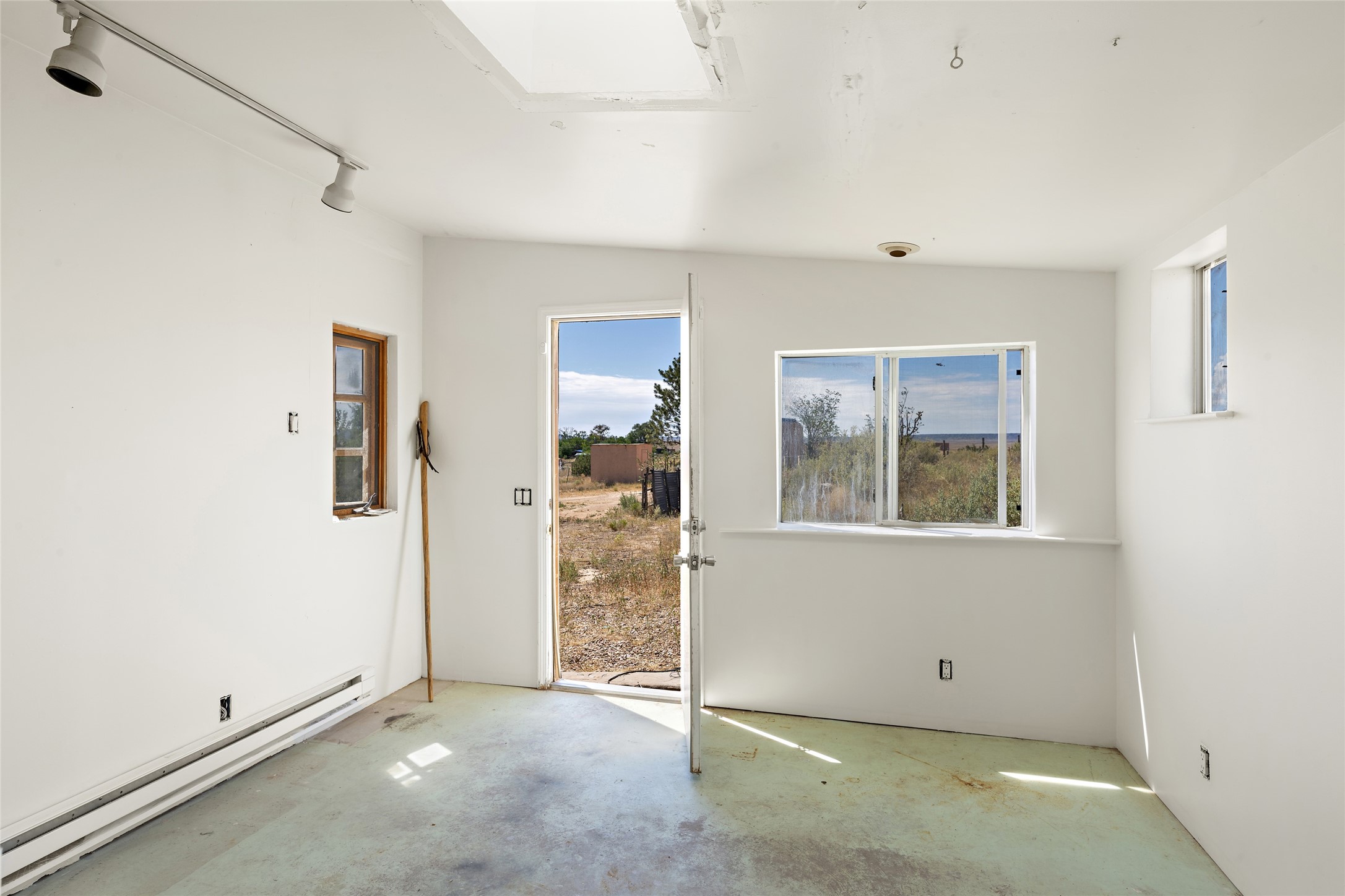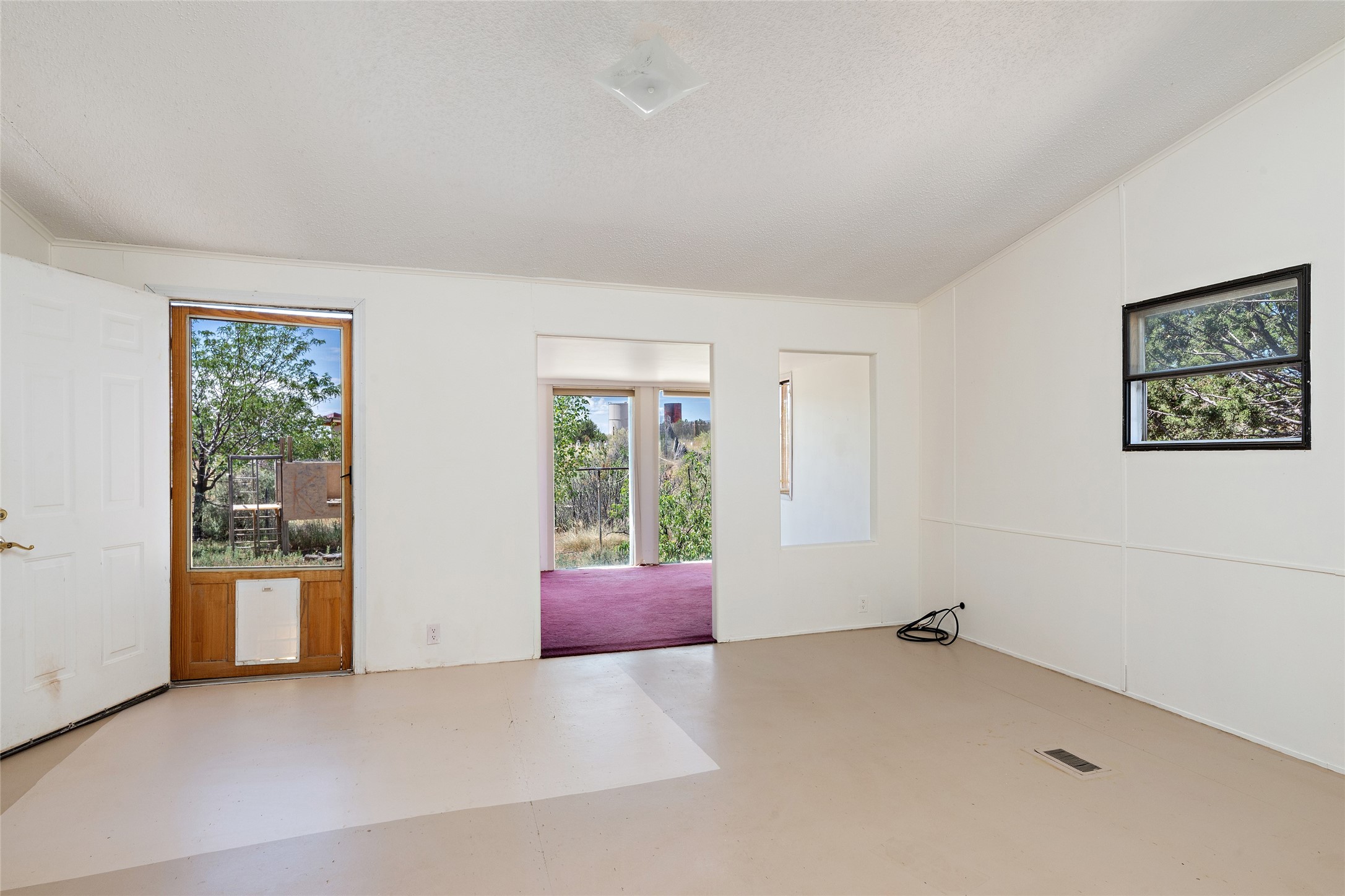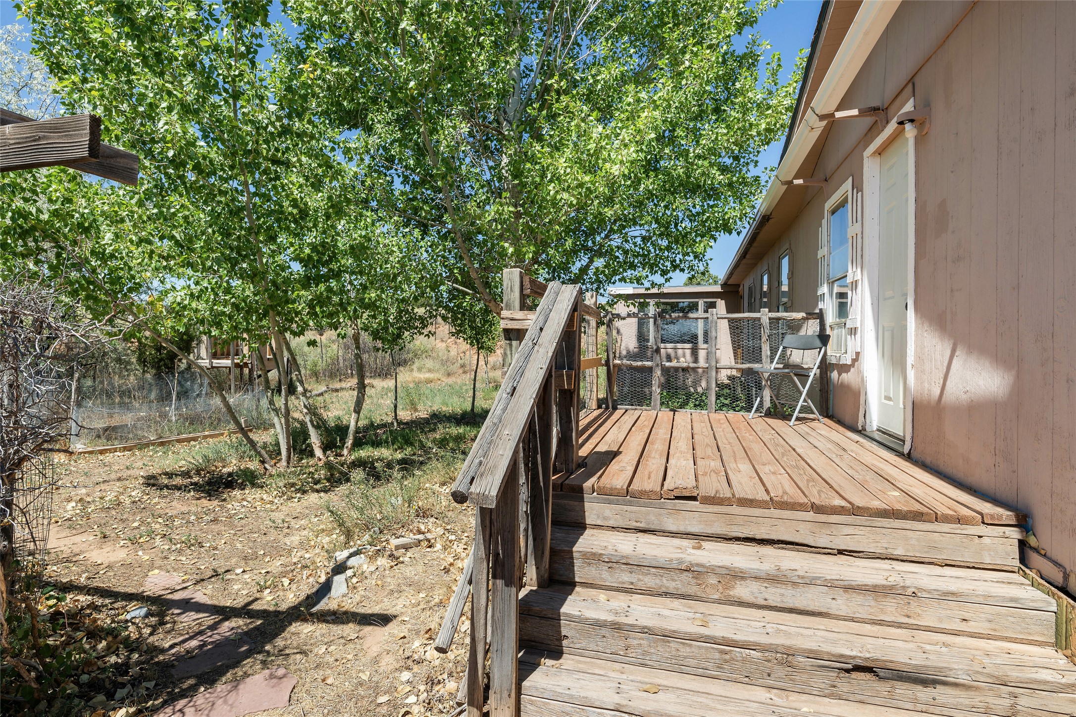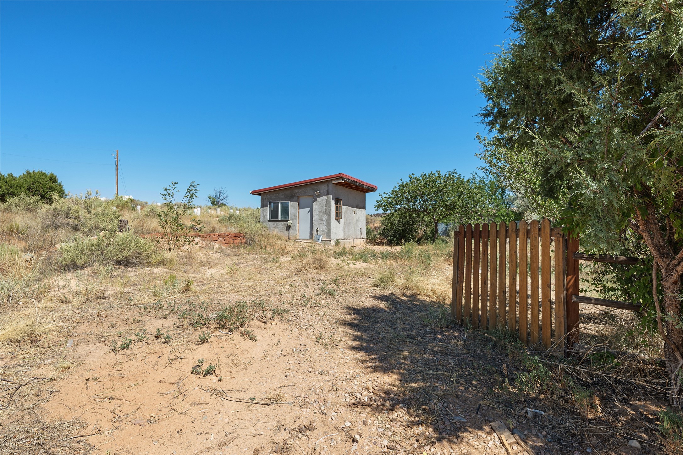 Nestled on elevated terrain close to the heart of the historic village of Galisteo, this 1.53 acre parcel consists of a 1,848 sq. ft. manufactured home, a 195 sq. ft. studio structure with 3/4 bath, a jobsite trailer, two sheds and a mixture of mature trees providing shade. With infrastructure in place including a connection to the community water system, multiple electric connections and meters, septic system, etc. this property is ready for your imagination and creativity! The manufactured home is in clean but dated condition while the studio structure requires some finishing work but both are livable spaces. Come take a look to see all the possibilities this property has to offer!