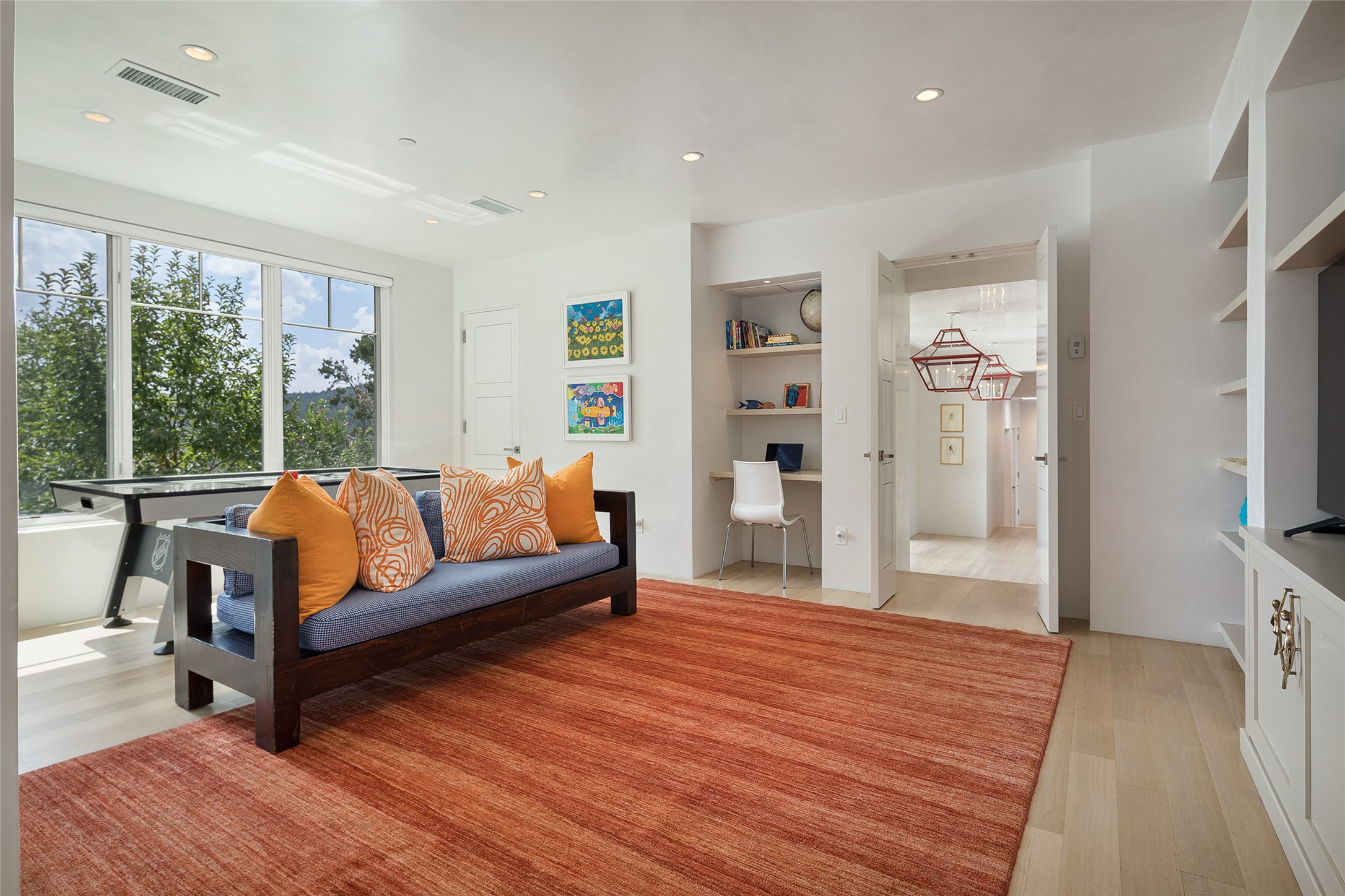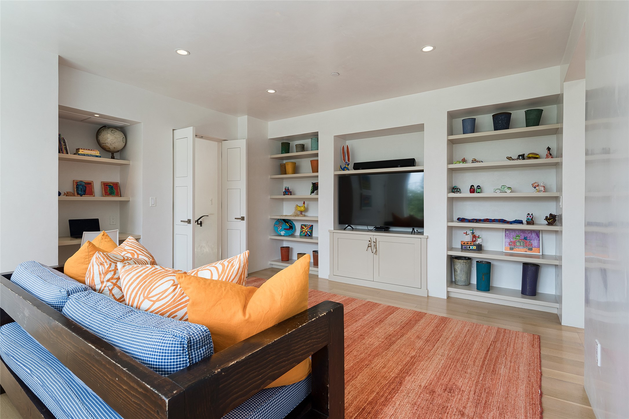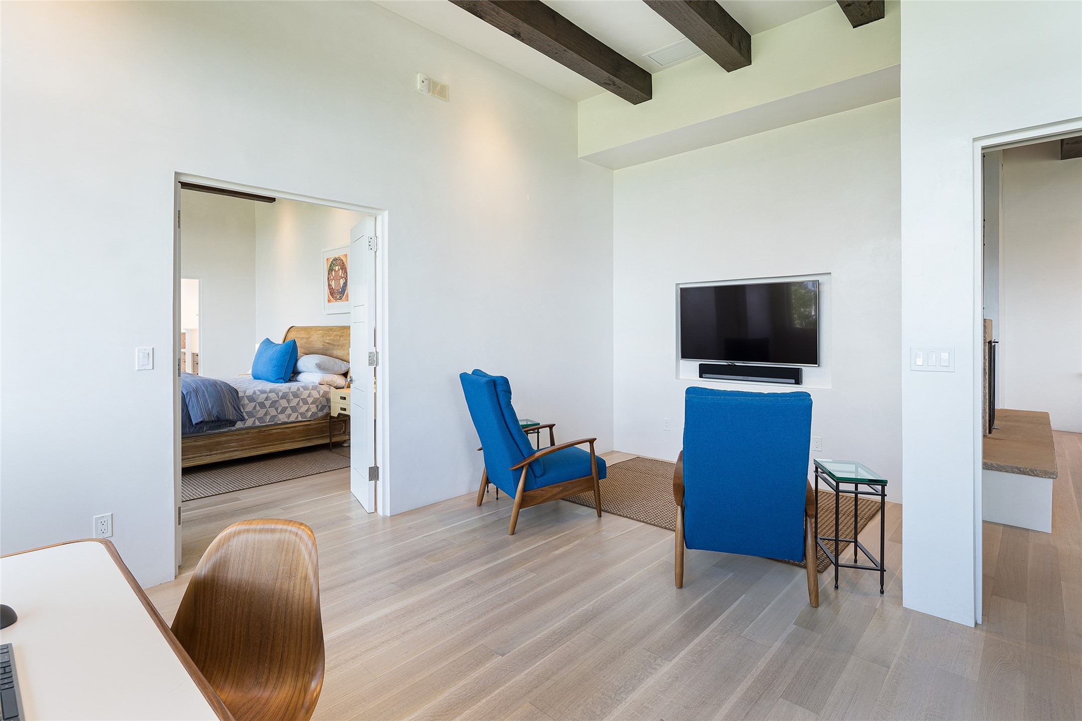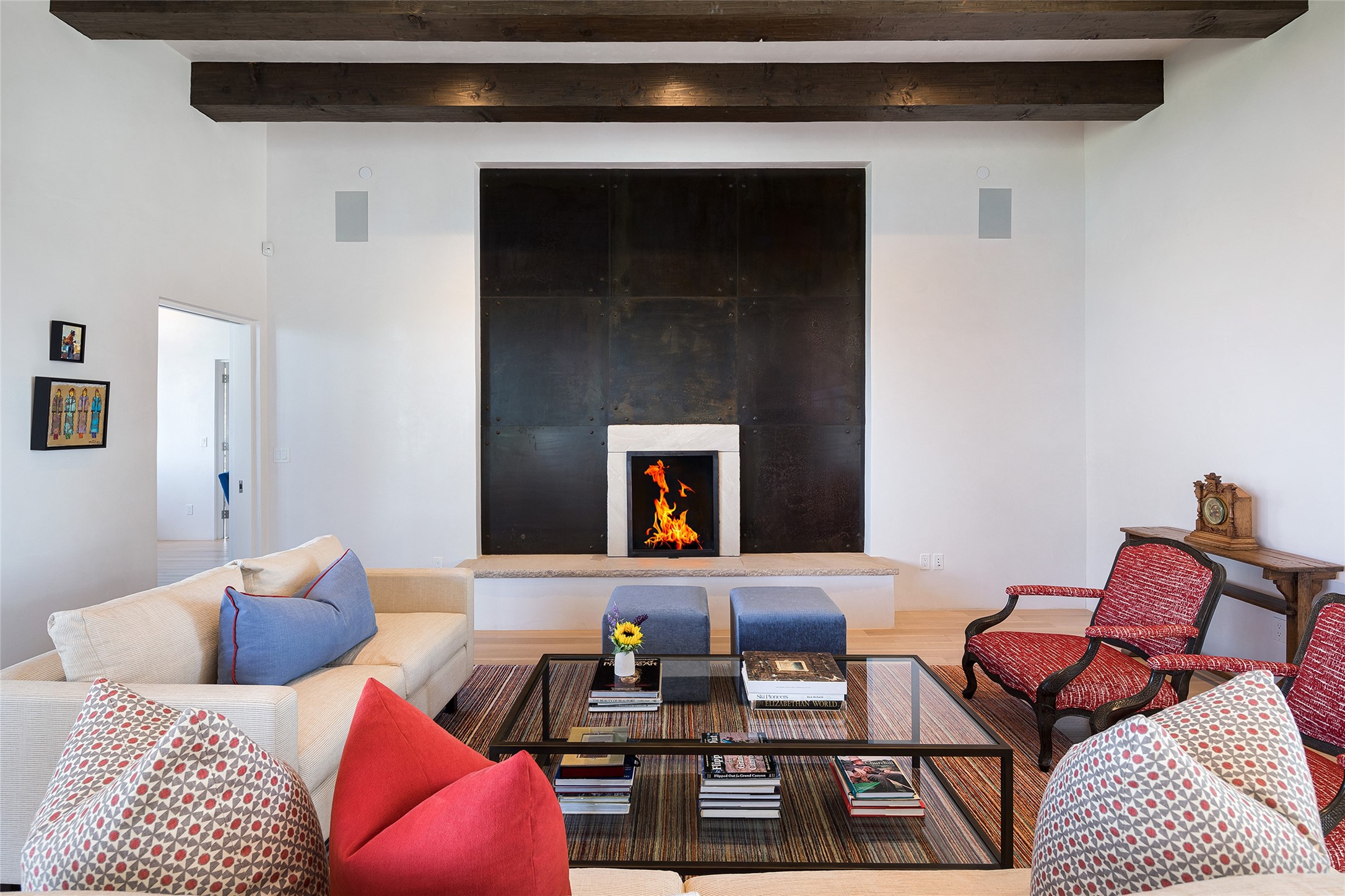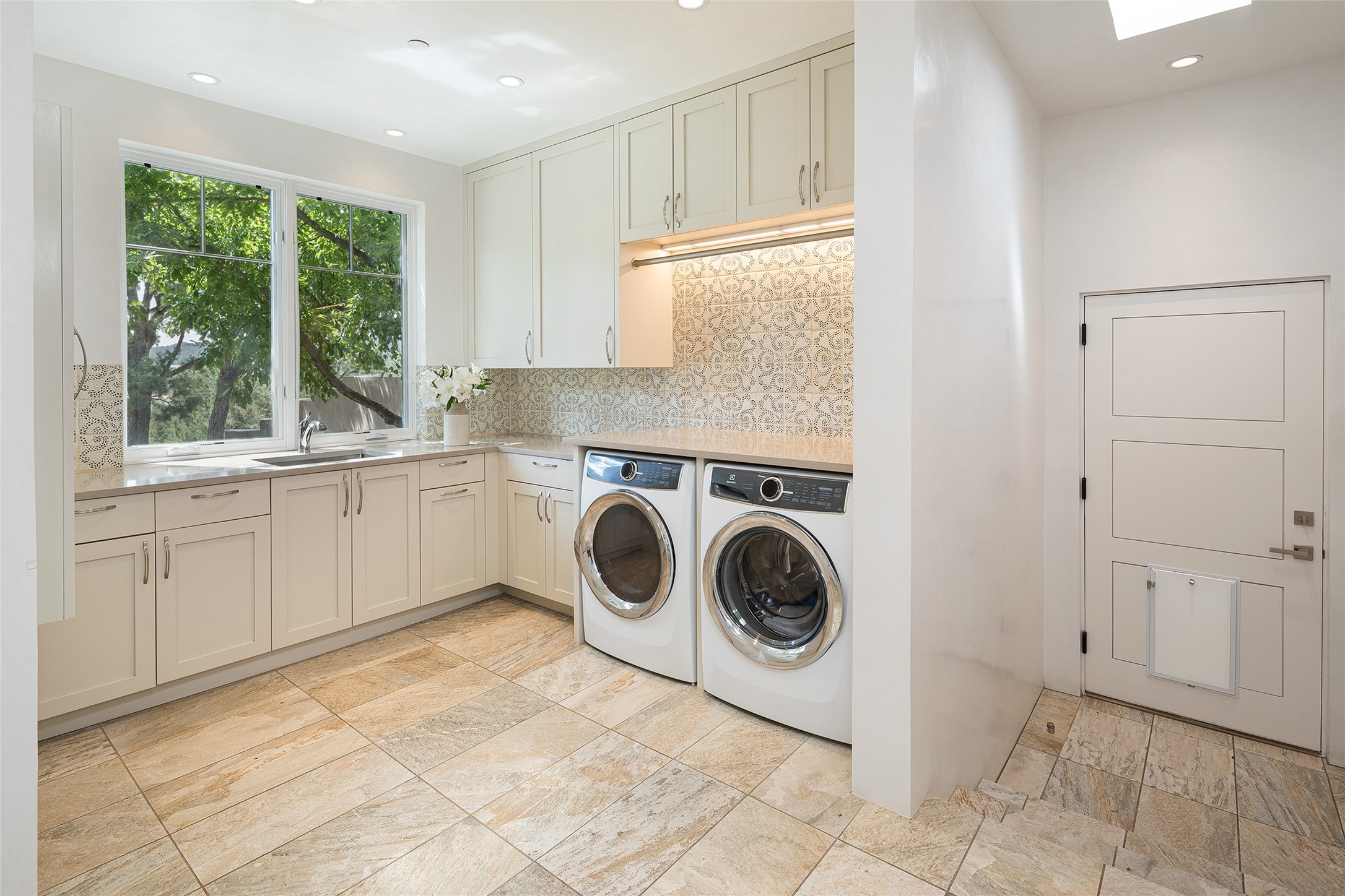One of the most extraordinary estates in all of Santa Fe, this exceptional 2018-built residence by the awarding winning, Woods Design Builders excites and captivates with powerful architecture, stunning, expansive views mountain, city and sunset views, and a rare resort-style diving pool, spa, and cabana. Located within Wilderness Gate, and sited on a superior, elevated 5 acre view lot, this exquisite gated residence, exemplifies the unique blend of sophisticated contemporary design with inherent Santa Fe warmth. Designed with a grand open concept living experience, with seamless surround view windows, this fabulous home stuns upon entering through the glass and metal pivot front entrance door into the living room and dining room, complete with a custom metal accent wall, fireplace, wet bar, wine cooler, and sliding glass doors which open to the epic mountain and city views and the the outdoor covered portal with a BBQ and fireplace. The ultimate entertainer's kitchen delights with an expansive island with waterfall Taj Mahal counters, pantry, dual sinks, and luxury appliances, which opens to a casual dining and living room with a fireplace. The luxurious owner's suite delights with majestic views, private portal, an attached office area, sitting room or an ideal media room, and a state-of-the art bath complete with a jetted tub, steam shower, and generous walk-in closet. Separate from the owner's suite are two well-appointed guest bedroom ensuites, plus an additional living room with an office niche. The newly installed heated pool and spa with a fully equipped cabana defines excellence, with resistance swim jets, an outdoor kitchen, fireplace and media center. Additional luxury features include white oak flooring, lush vibrant surround gardens with multiple outdoor entertainment areas, plaster walls, and rich beams with steel accents throughout, and all within minutes from the Plaza, steps away from Atalaya Mnt, St. Johns College, and the Dale Ball trail system.