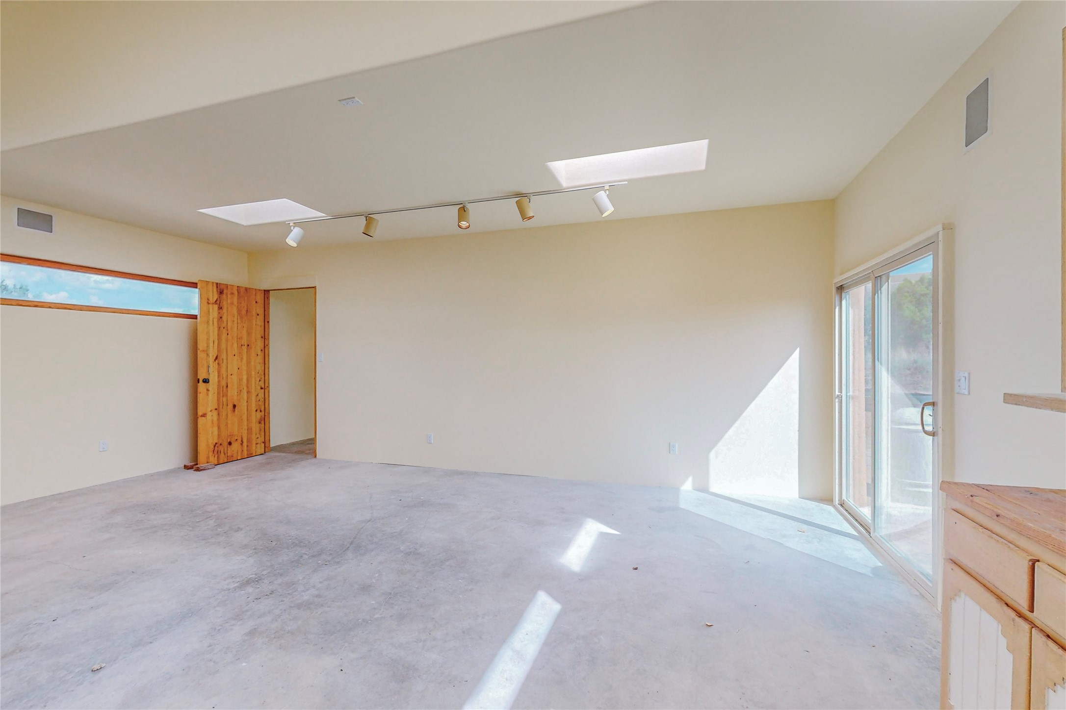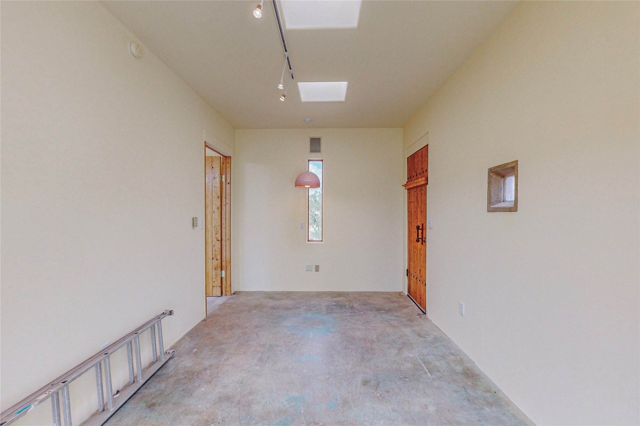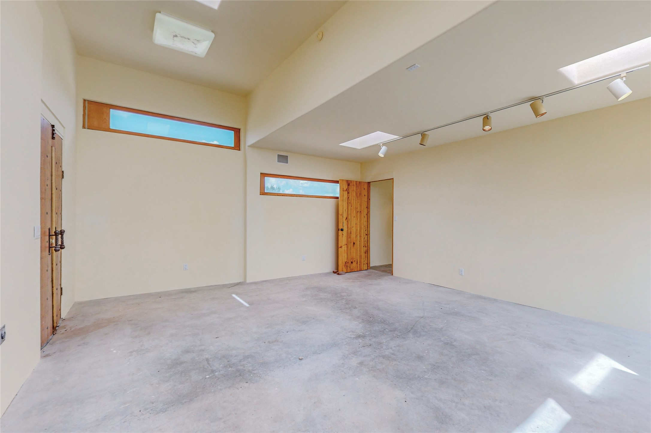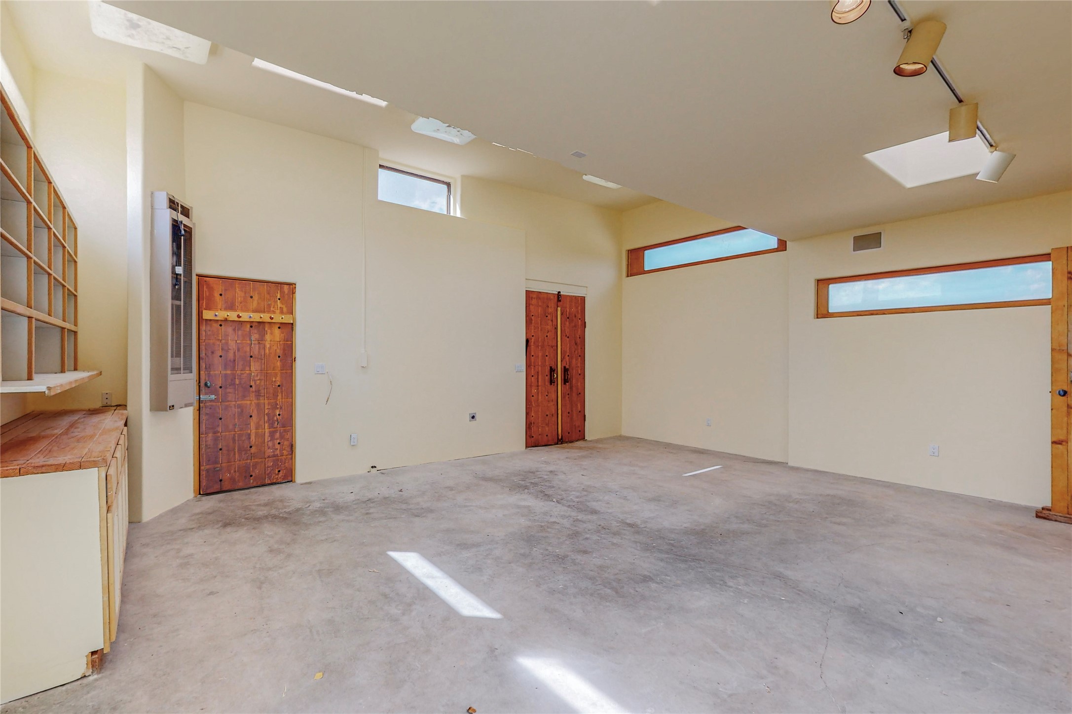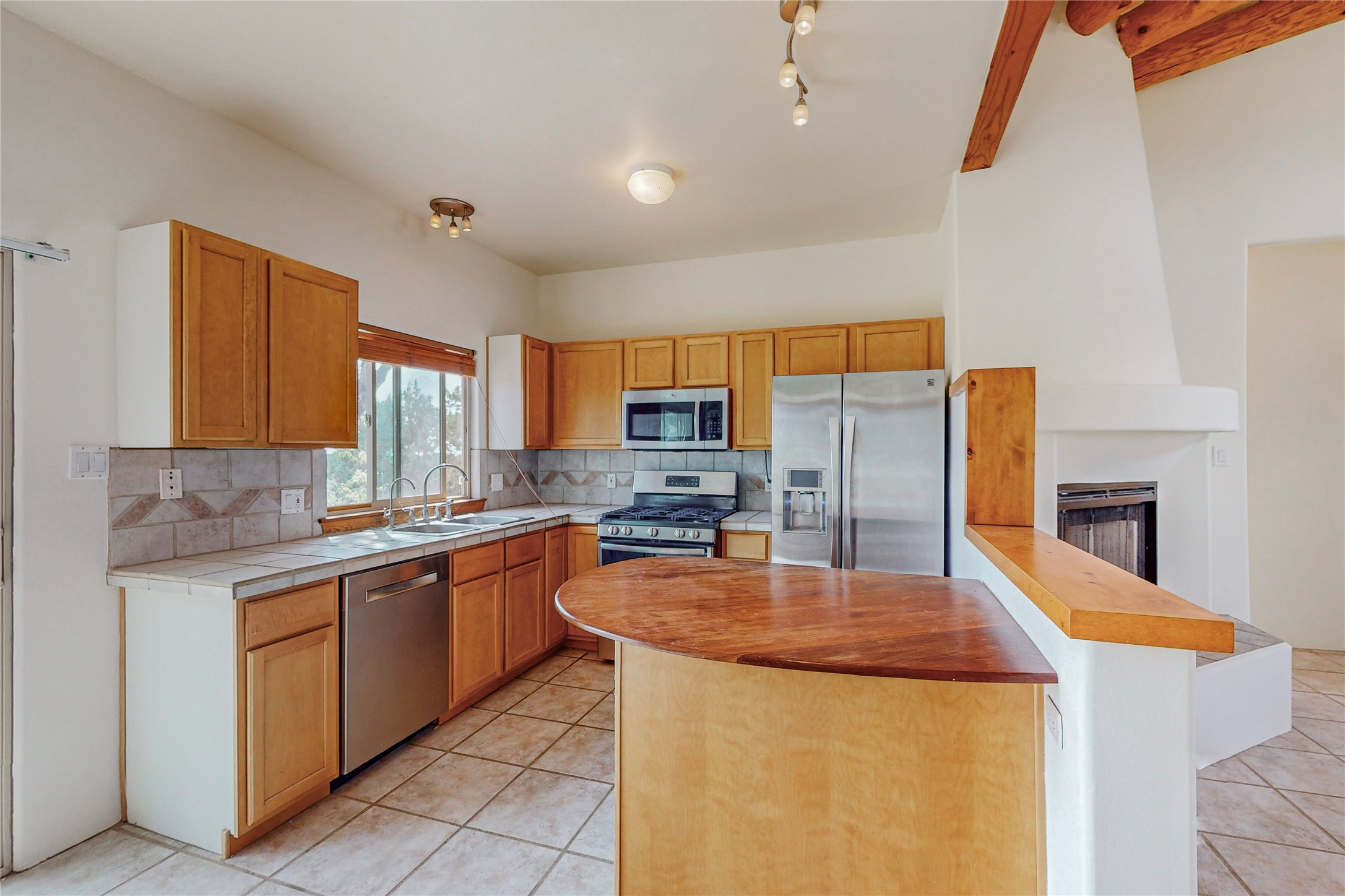 Open plan, split 3 bedroom, 2 bath home attached 800 sqft. 2 heated studios with huge high ceilings. Although small the high ceilings create a spacious feel. A sunburst design viga ceiling and corner living room fireplace opens to the kitchen and dining areas. The surrounding landscape is ready and invites your personal touches, and has sweeping mountain and sunset views. A large 2-car garage and plenty of guest parking adds convenience. Privately located on a cul de sac bordering a large greenbelt yet close to paved access roads leading to local shopping, restaurants, schools, senior center, and library. This home accesses all of Eldorado community activities and trails plus only minutes into Santa Fe.