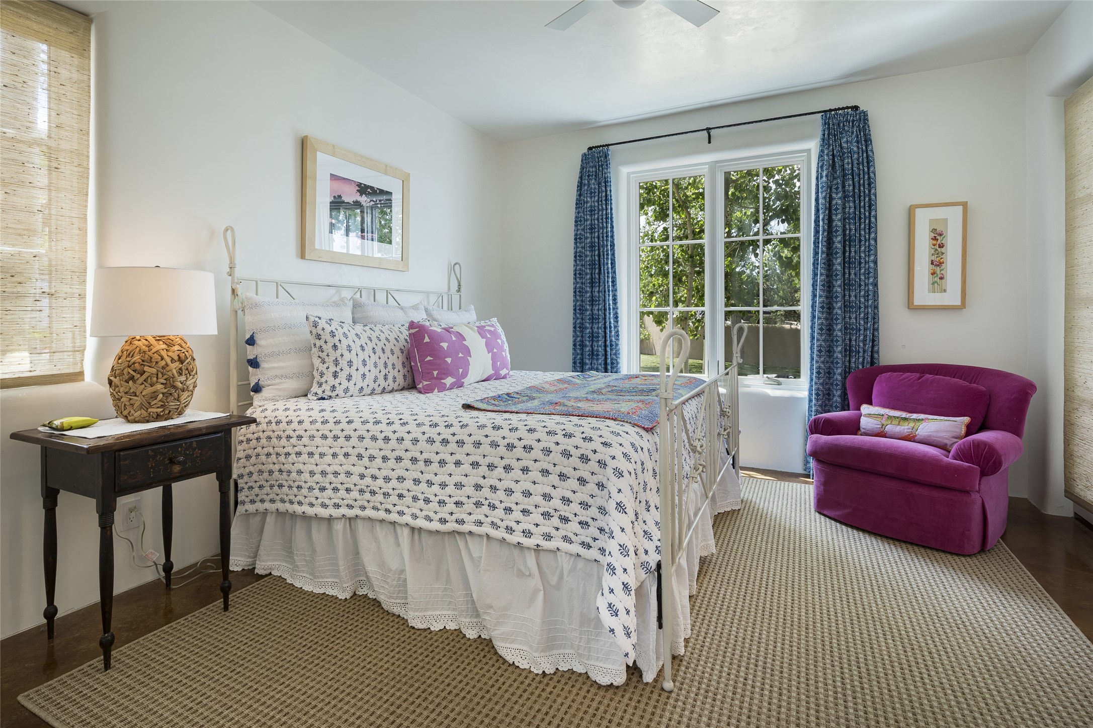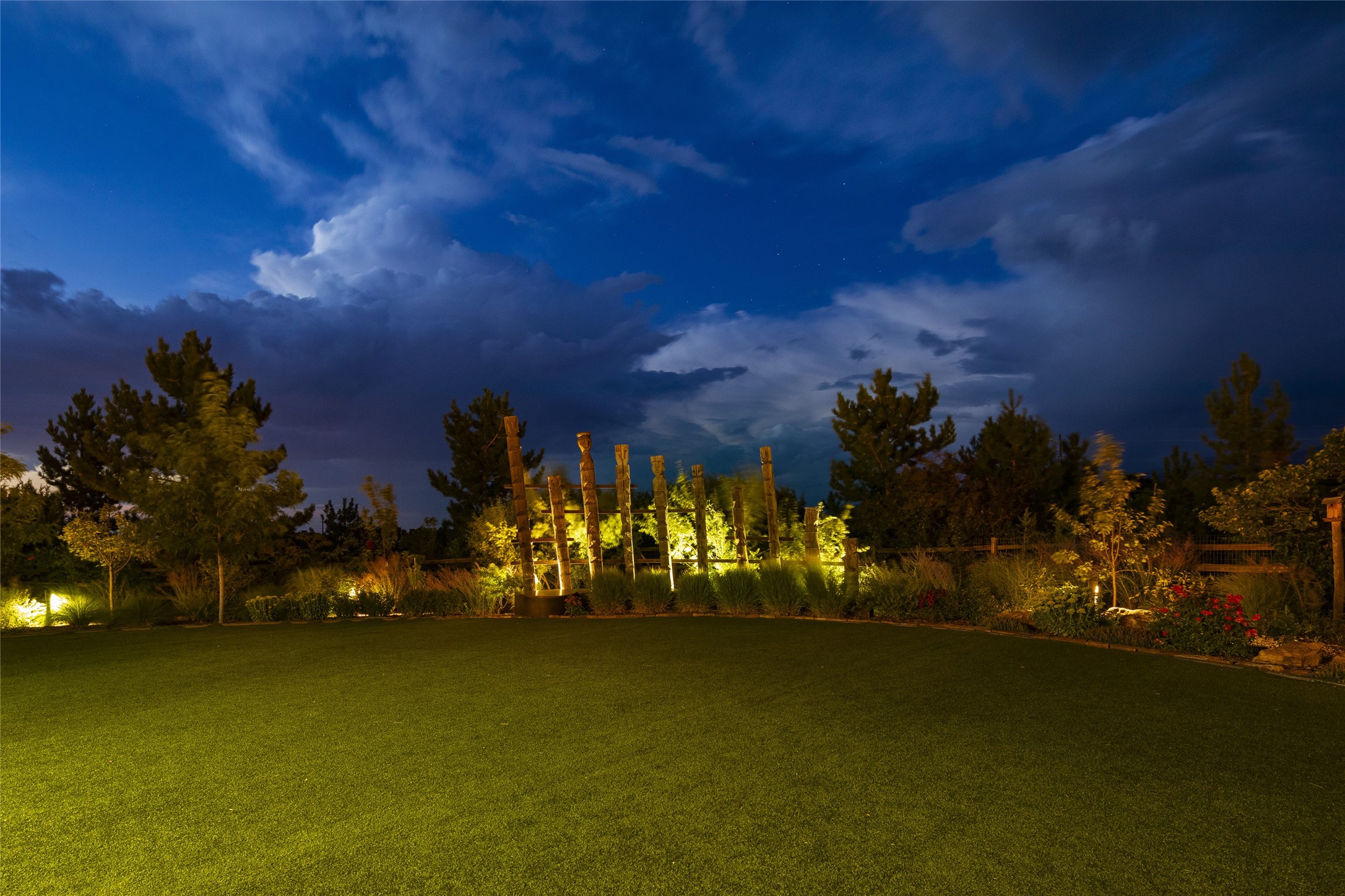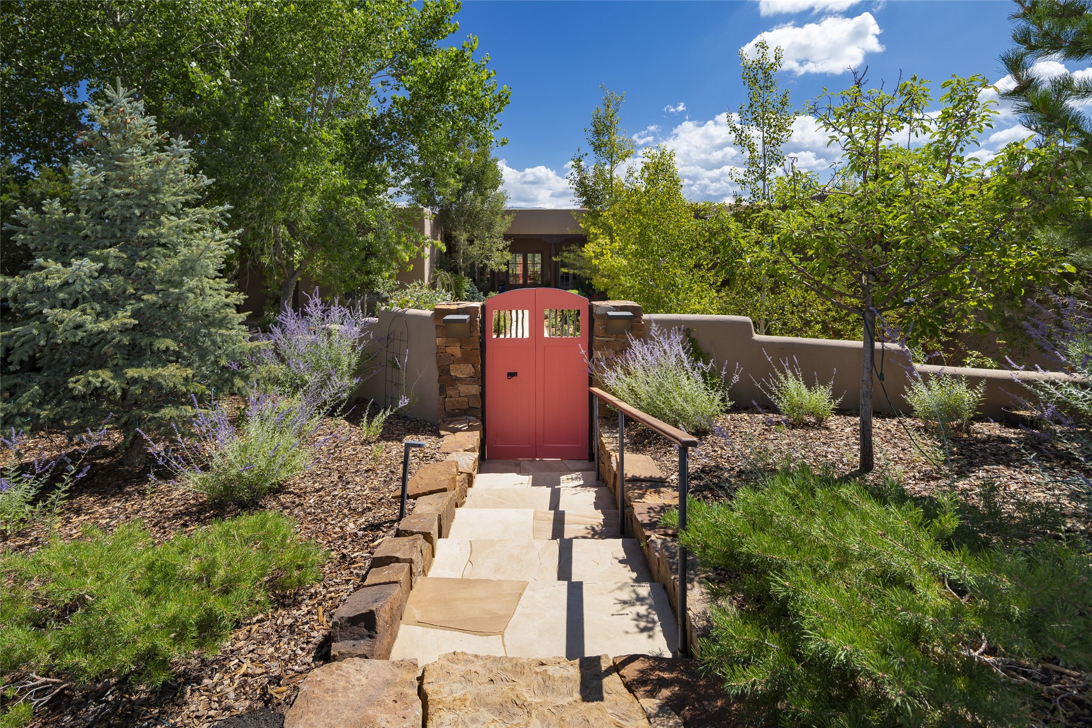 EXPERIENCE THE BEST-OF-THE-BEST IN THIS EXCITING SANTA FE PROPERTY WITH SWEEPING MOUNTAIN VIEWS LOCATED ON A RARE ELEVATED 5+ ACRE PARCEL ON COVETED TANO ROAD. Casa de la Luz is an open, airy, happy, single level home with natural light and lush gardens that enhance the home at every turn. Private gated entry and winding driveway are just the beginning. This exquisite residence has been renovated practically stem-to-stern with first class materials that feel livable, luxurious and relaxing. Dazzling white hand plastered walls, soaring ceilings and banks of windows take your eyes to the WOW views of mountain and sky! Elegant gates lead to the front courtyard with a water feature and impressive double doors that peak through the home to the Sangre de Cristo Mountains. The cook's kitchen is welcoming with plenty of counter space, high-end appliances and a den-like informal dining area. Entertain with style and grace at this stunning property which offers 3 bedrooms, each with an ensuite bathroom, and a separate office. The primary suite features a fireplace, a spa-like bathroom, a soaking tub, separate walk-in shower, and three oversized closets. The living room has soaring ceilings, a fireplace, and large windows that showcase the panoramic views. The sunroom is a perfect place to relax and enjoy the scenery, while the sitting room offers a cozy spot to read or watch TV. The property also includes a 3-car garage with epoxy floors and slat hanging units, a sleek laundry room, and a designer powder room with colors that subtly carry throughout the house. Fall in love with the outdoor living spaces filled with lush landscaping, water features, and mature trees, a covered patio with Lynx grill, and gated vegetable gardens where you can enjoy the peace and tranquility of nature, while being only minutes away from historic downtown Santa Fe. This is a rare opportunity to own a magnificent home in one of the most sought-after locations in Santa Fe. Live...Love...87506!