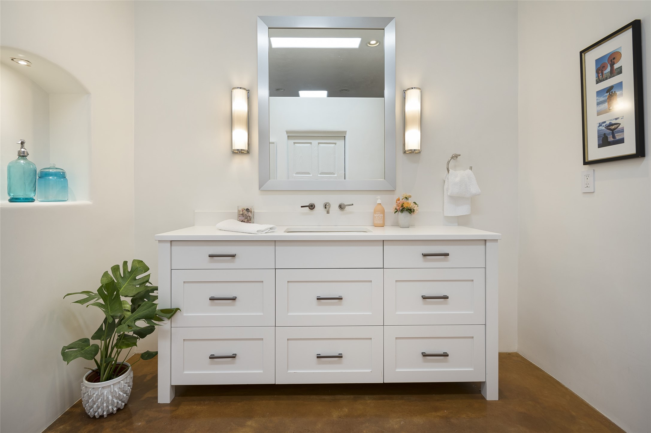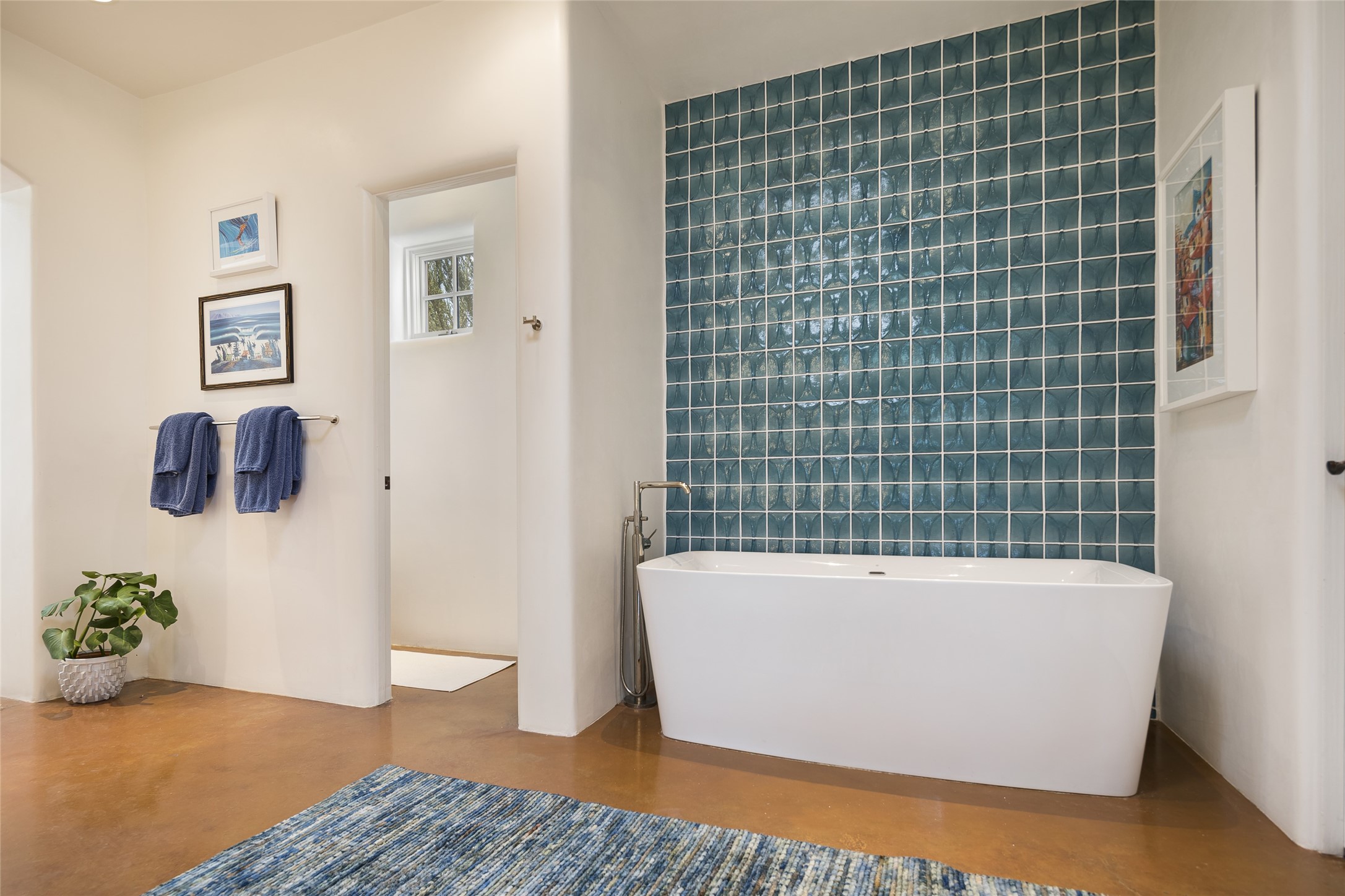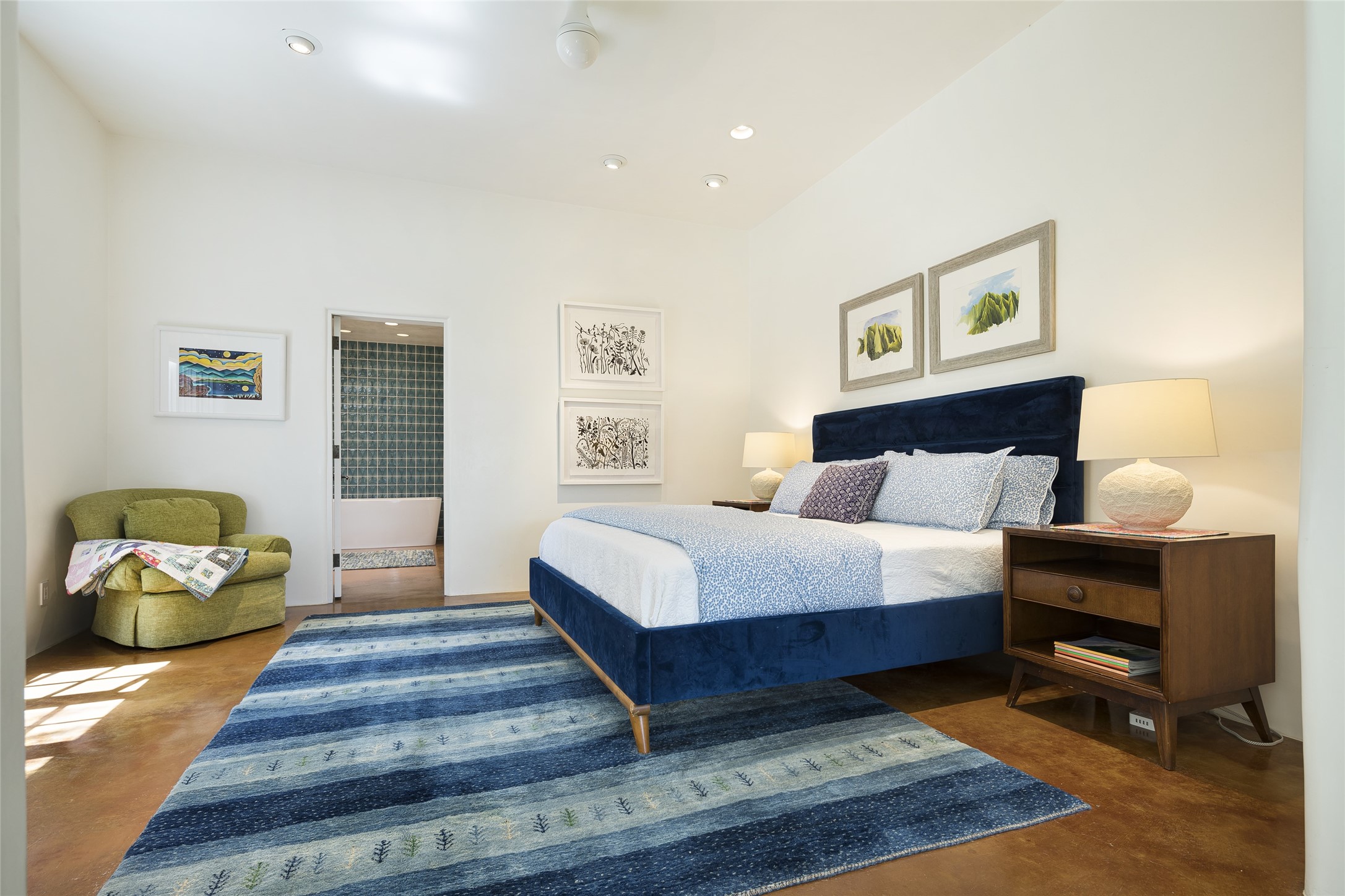 EXPERIENCE THE BEST-OF-THE-BEST IN THIS EXCITING SANTA FE PROPERTY WITH SWEEPING MOUNTAIN VIEWS LOCATED ON A RARE ELEVATED 5+ ACRE PARCEL ON COVETED TANO ROAD. Casa de la Luz is an open, airy, happy, single level home with natural light and lush gardens that enhance the home at every turn. Private gated entry and winding driveway are just the beginning. This exquisite residence has been renovated practically stem-to-stern with first class materials that feel livable, luxurious and relaxing. Dazzling white hand plastered walls, soaring ceilings and banks of windows take your eyes to the WOW views of mountain and sky! Elegant gates lead to the front courtyard with a water feature and impressive double doors that peak through the home to the Sangre de Cristo Mountains. The cook's kitchen is welcoming with plenty of counter space, high-end appliances and a den-like informal dining area. Entertain with style and grace at this stunning property which offers 3 bedrooms, each with an ensuite bathroom, and a separate office. The primary suite features a fireplace, a spa-like bathroom, a soaking tub, separate walk-in shower, and three oversized closets. The living room has soaring ceilings, a fireplace, and large windows that showcase the panoramic views. The sunroom is a perfect place to relax and enjoy the scenery, while the sitting room offers a cozy spot to read or watch TV. The property also includes a 3-car garage with epoxy floors and slat hanging units, a sleek laundry room, and a designer powder room with colors that subtly carry throughout the house. Fall in love with the outdoor living spaces filled with lush landscaping, water features, and mature trees, a covered patio with Lynx grill, and gated vegetable gardens where you can enjoy the peace and tranquility of nature, while being only minutes away from historic downtown Santa Fe. This is a rare opportunity to own a magnificent home in one of the most sought-after locations in Santa Fe. Live...Love...87506!