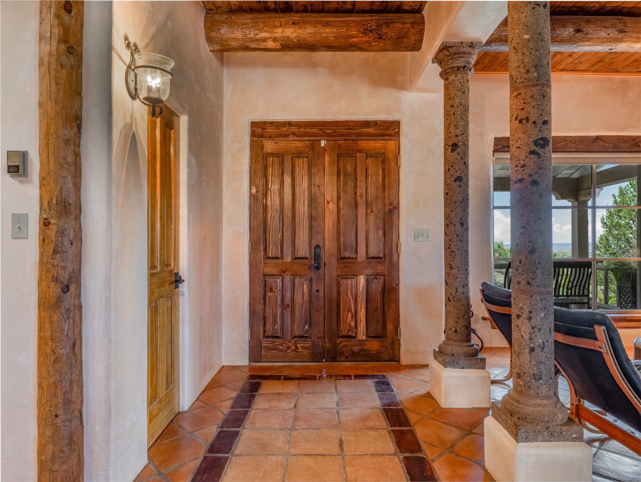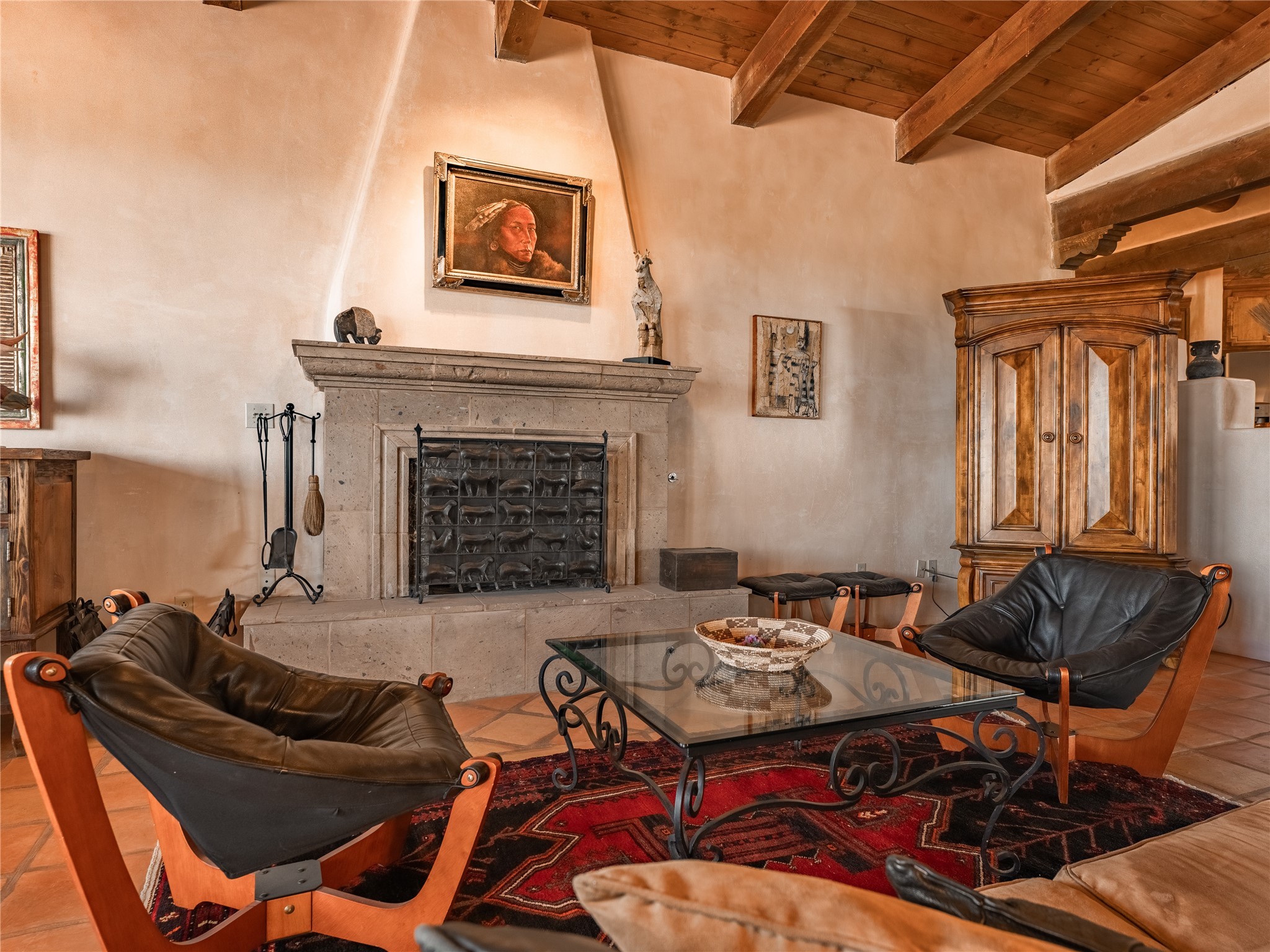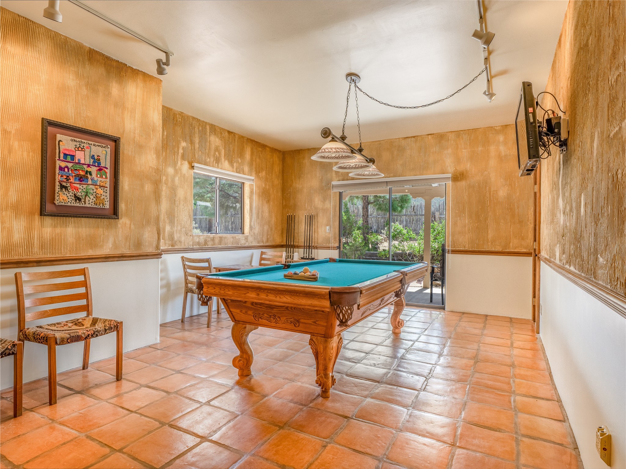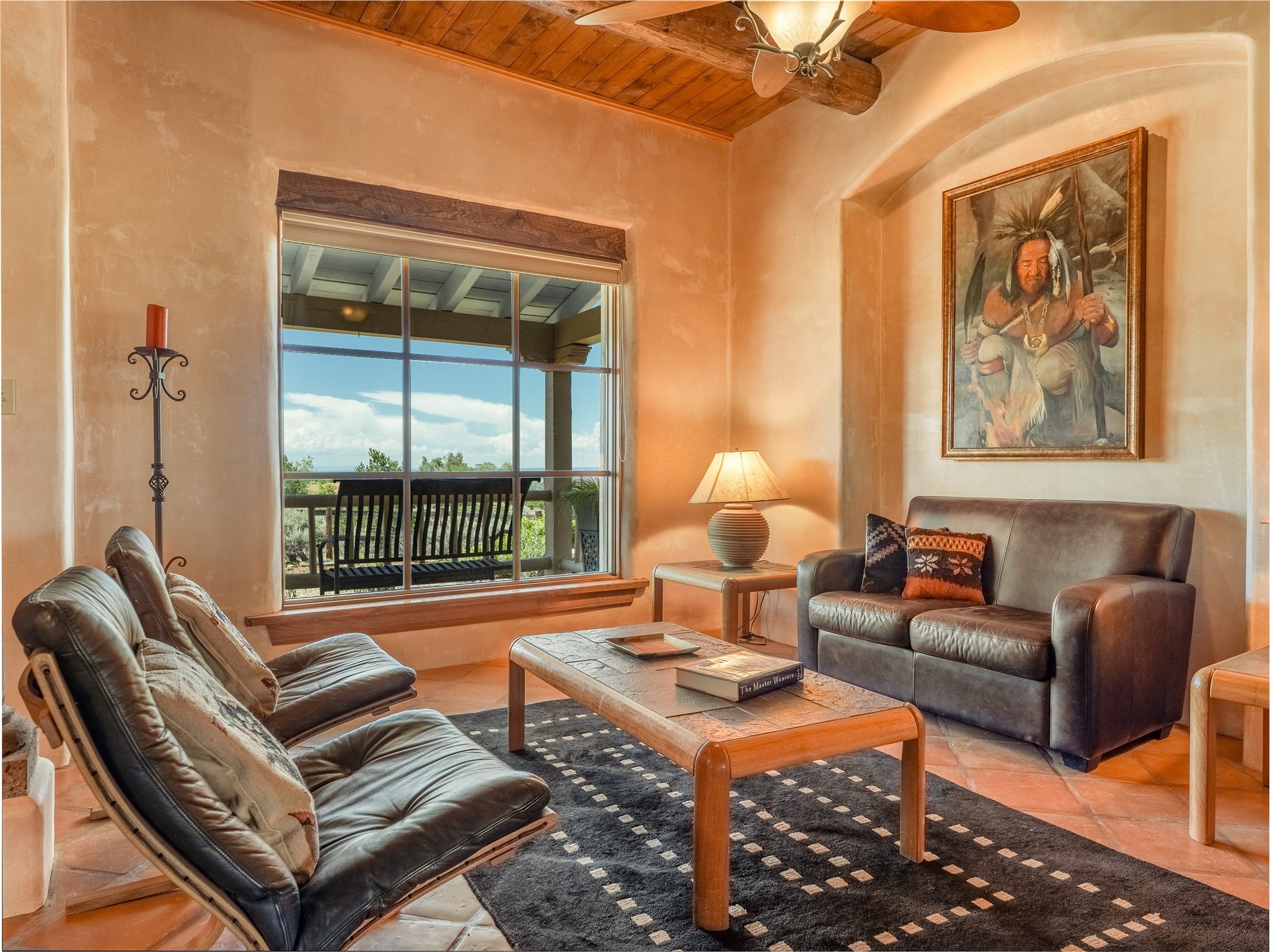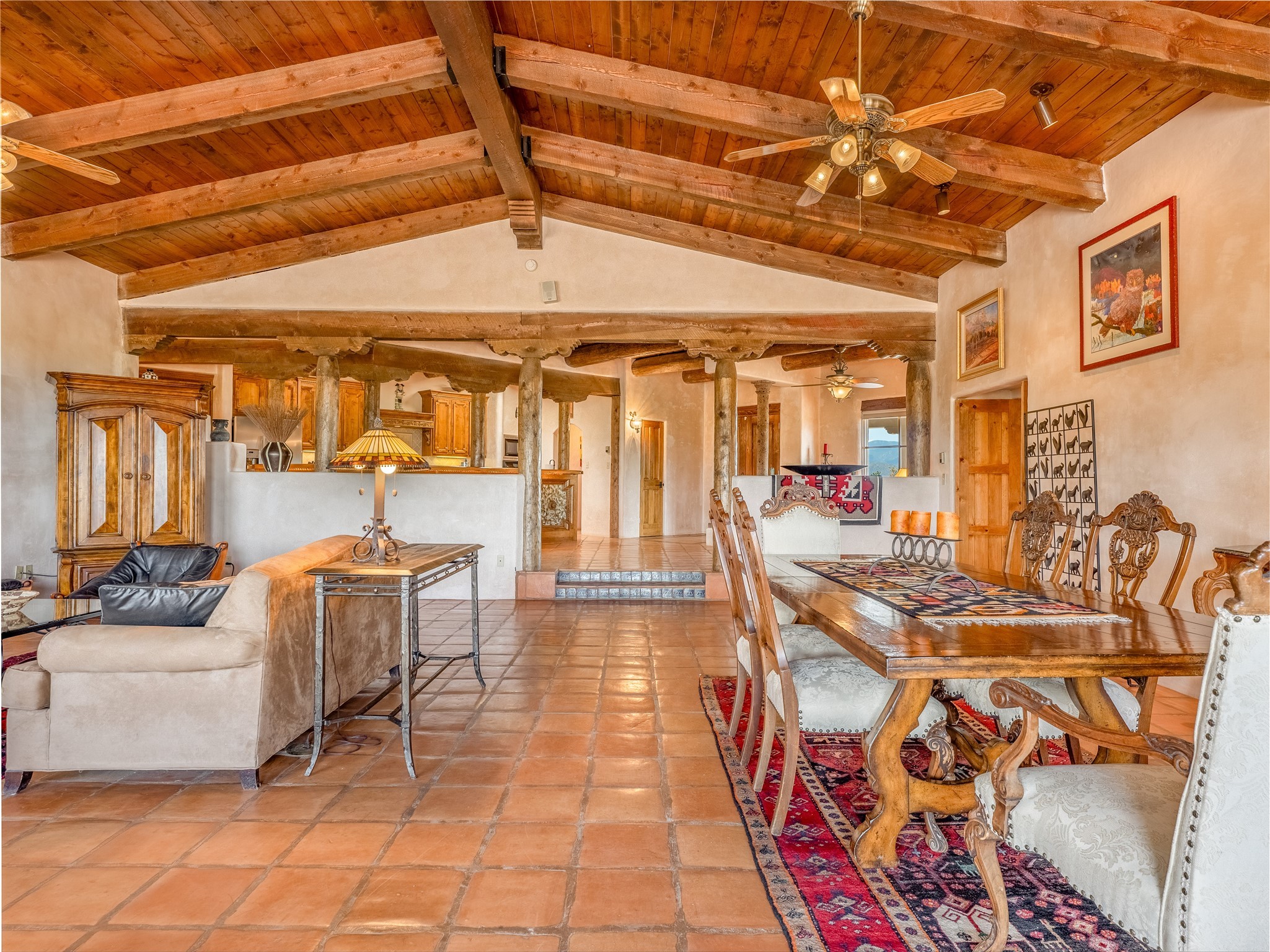 Come see this stunning Taos property before it's gone! Set on 3 acres in the Weimer neighborhood, the beautiful adobe-style home comes with excellent views of the Sangre de Cristo mountains. Inside, enjoy iconic Southwestern features such as saltillo tile floors, plaster walls, and large vigas throughout the entire home. Marvel at the unobstructed views of the mountains from the spacious living area with a vaulted ceiling, wood-burning fireplace, and access to the covered patio. The large kitchen offers beautiful wood cabinetry and tilework, a large pantry, and ample space for creating gourmet meals on the granite countertops. The primary bedroom has a kiva-style fireplace and the ensuite bathroom features a walk-in shower and large tub with luxury tiling and a massive walk-in closet. Two guest bedrooms with ensuite bathrooms offer plenty of room for the entire family. Additional features include a fourth bedroom that is currently setup as a billiards room and a laundry room with full size washer and dryer. An attached garage has room for two vehicles, and a separate outbuilding can store two more vehicles or be finished out as a studio or workshop. Enjoy the comforts of southwestern luxury with 1101 Hennings Street!