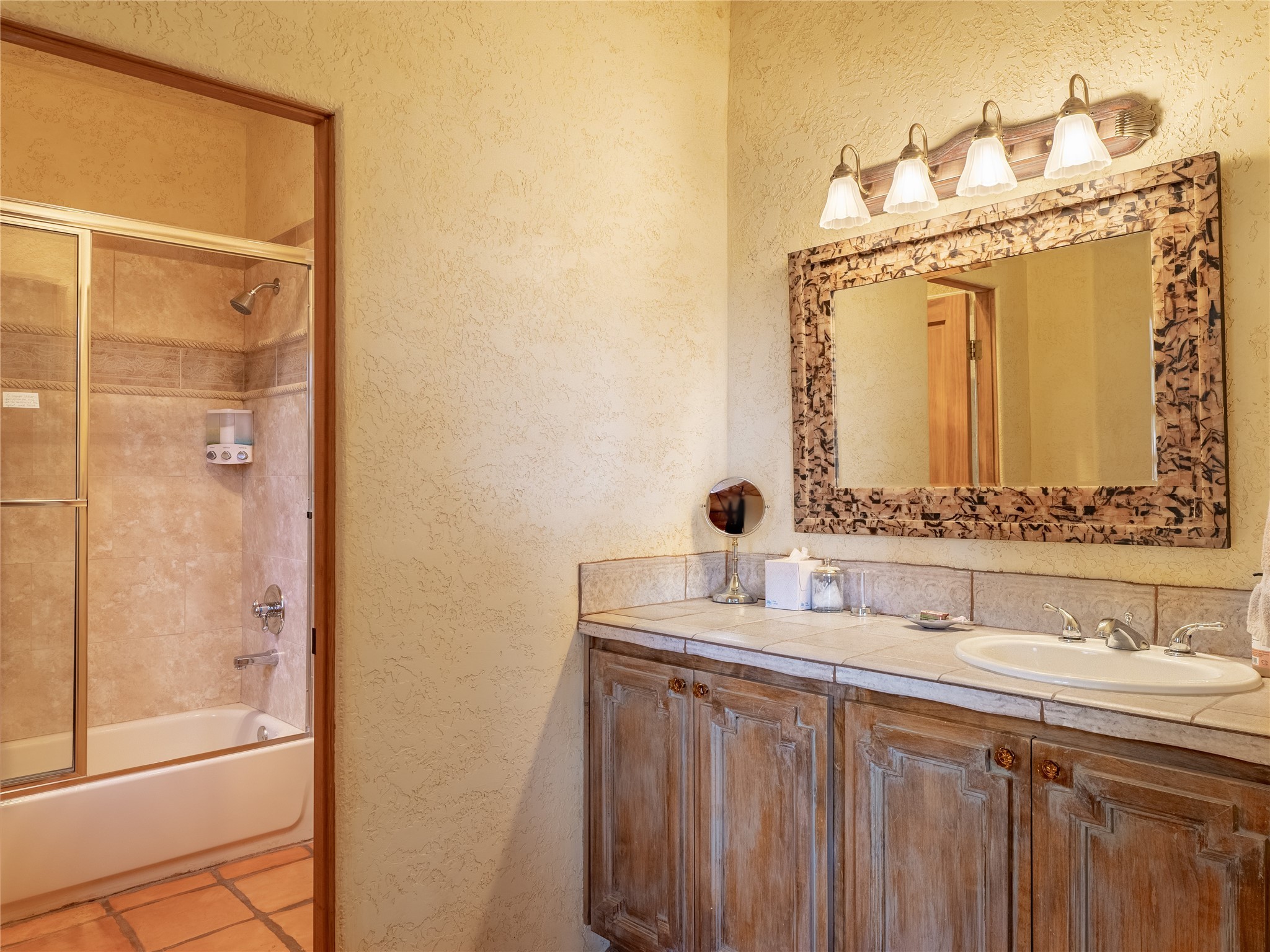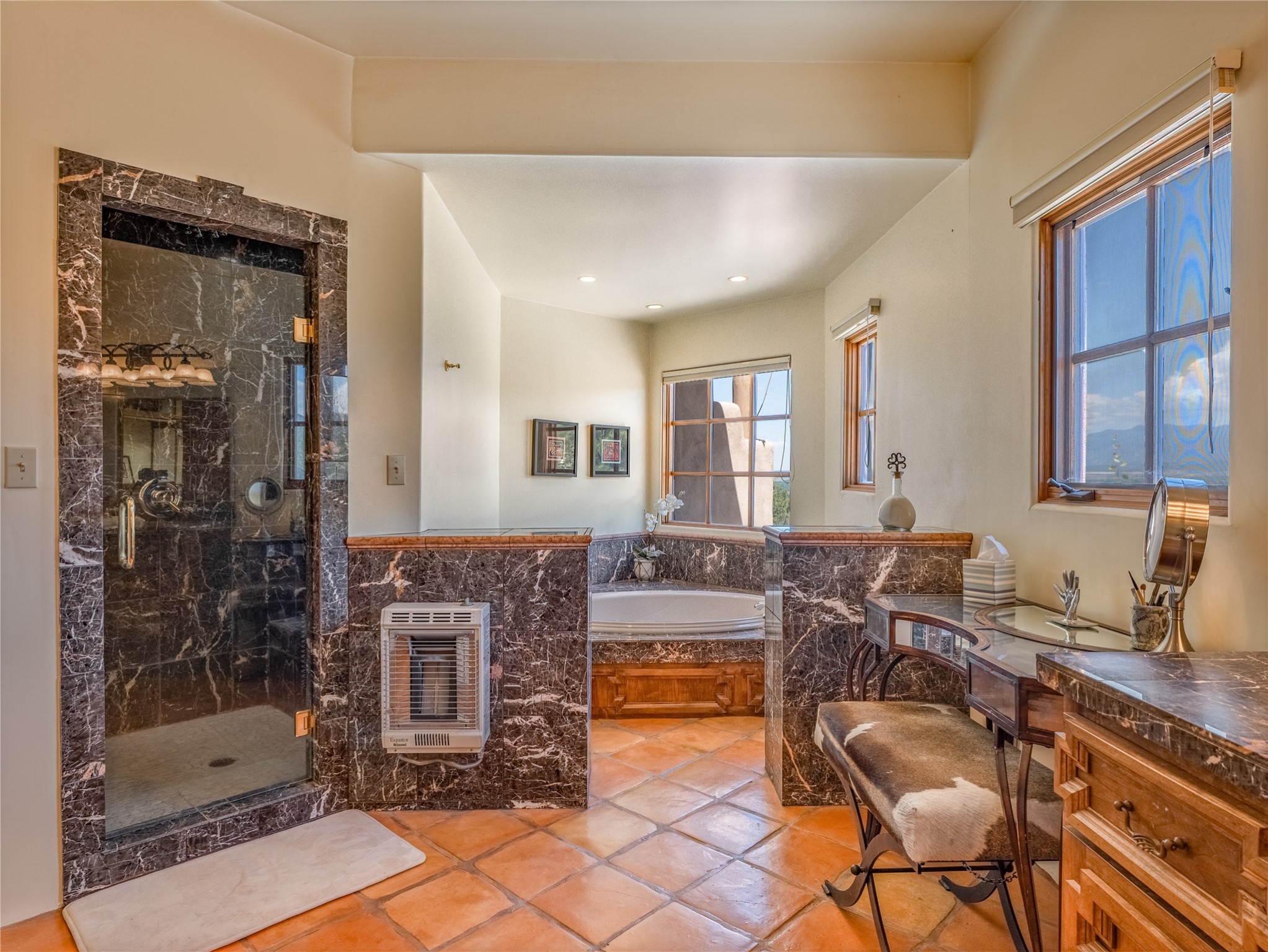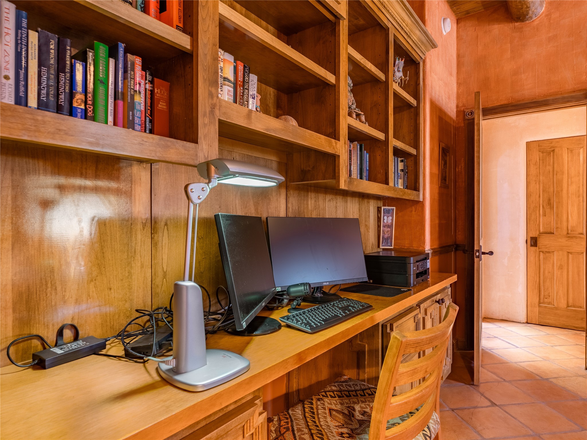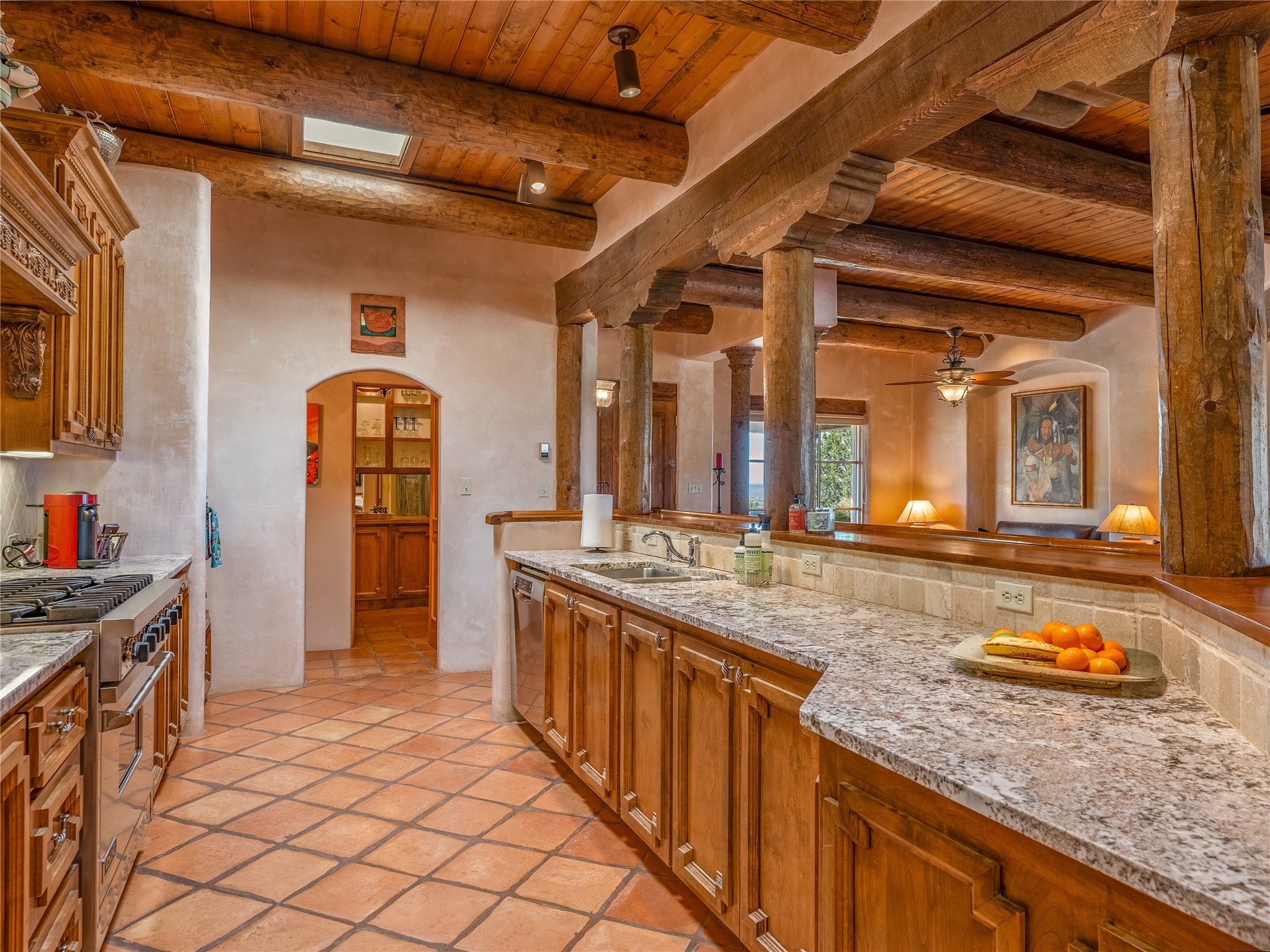 Come see this stunning Taos property before it's gone! Set on 3 acres in the Weimer neighborhood, the beautiful adobe-style home comes with excellent views of the Sangre de Cristo mountains. Inside, enjoy iconic Southwestern features such as saltillo tile floors, plaster walls, and large vigas throughout the entire home. Marvel at the unobstructed views of the mountains from the spacious living area with a vaulted ceiling, wood-burning fireplace, and access to the covered patio. The large kitchen offers beautiful wood cabinetry and tilework, a large pantry, and ample space for creating gourmet meals on the granite countertops. The primary bedroom has a kiva-style fireplace and the ensuite bathroom features a walk-in shower and large tub with luxury tiling and a massive walk-in closet. Two guest bedrooms with ensuite bathrooms offer plenty of room for the entire family. Additional features include a fourth bedroom that is currently setup as a billiards room and a laundry room with full size washer and dryer. An attached garage has room for two vehicles, and a separate outbuilding can store two more vehicles or be finished out as a studio or workshop. Enjoy the comforts of southwestern luxury with 1101 Hennings Street!