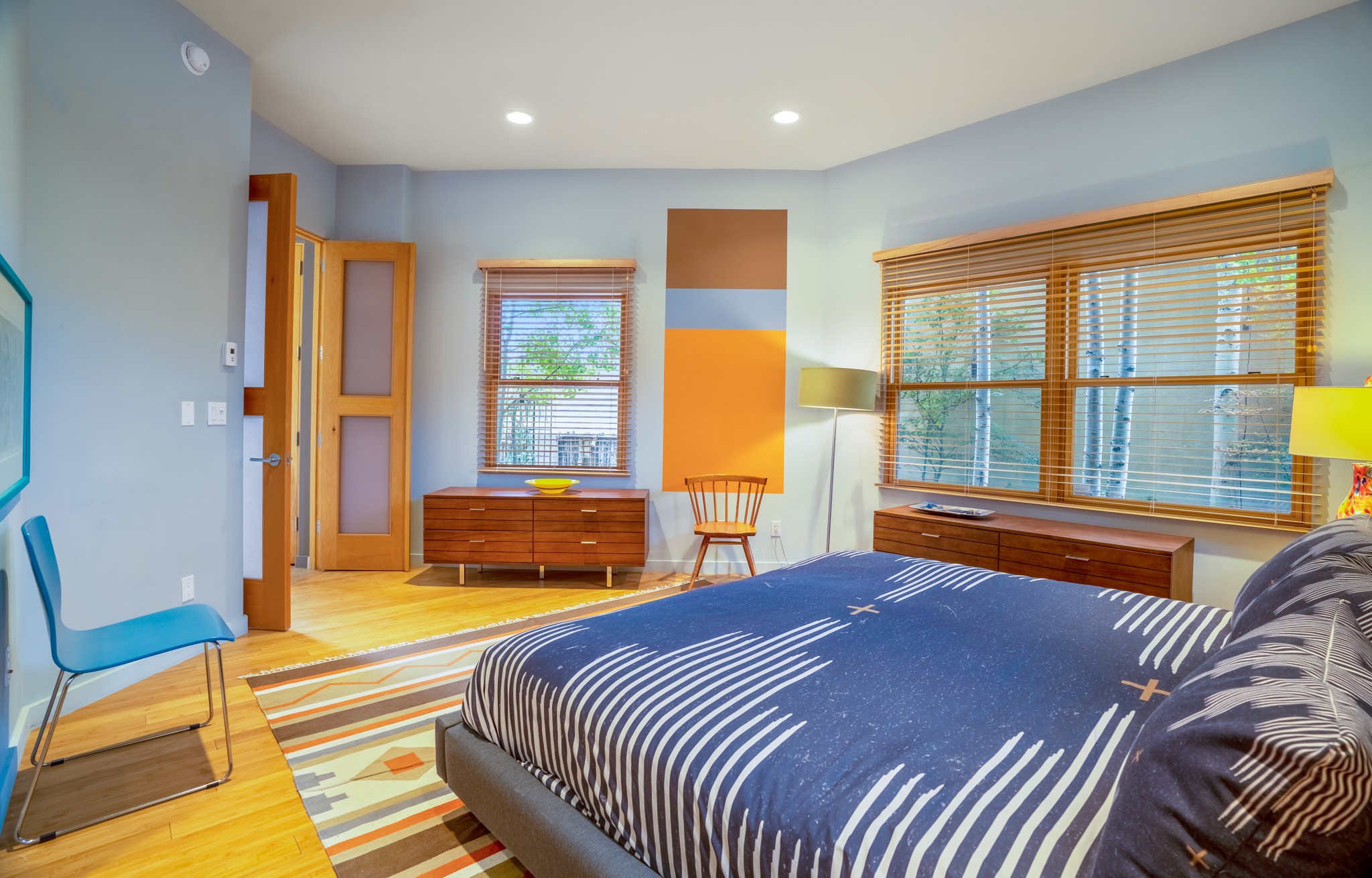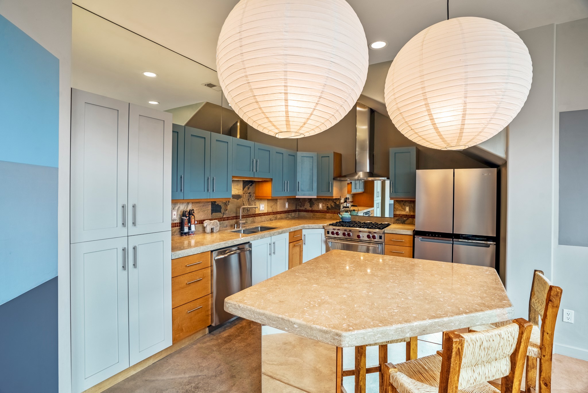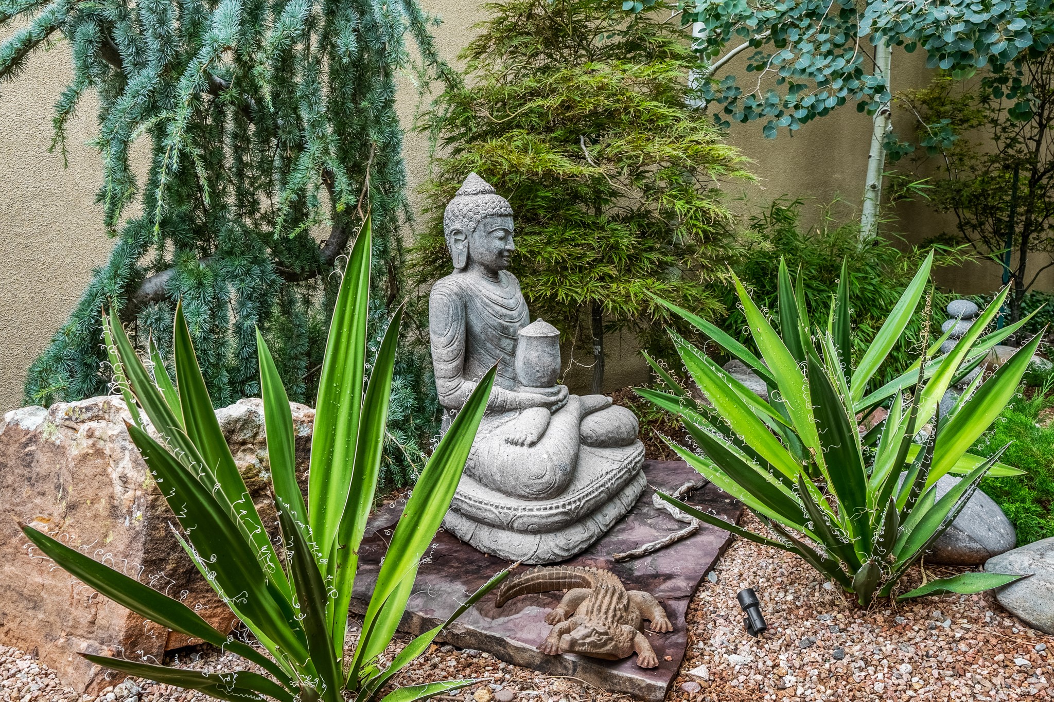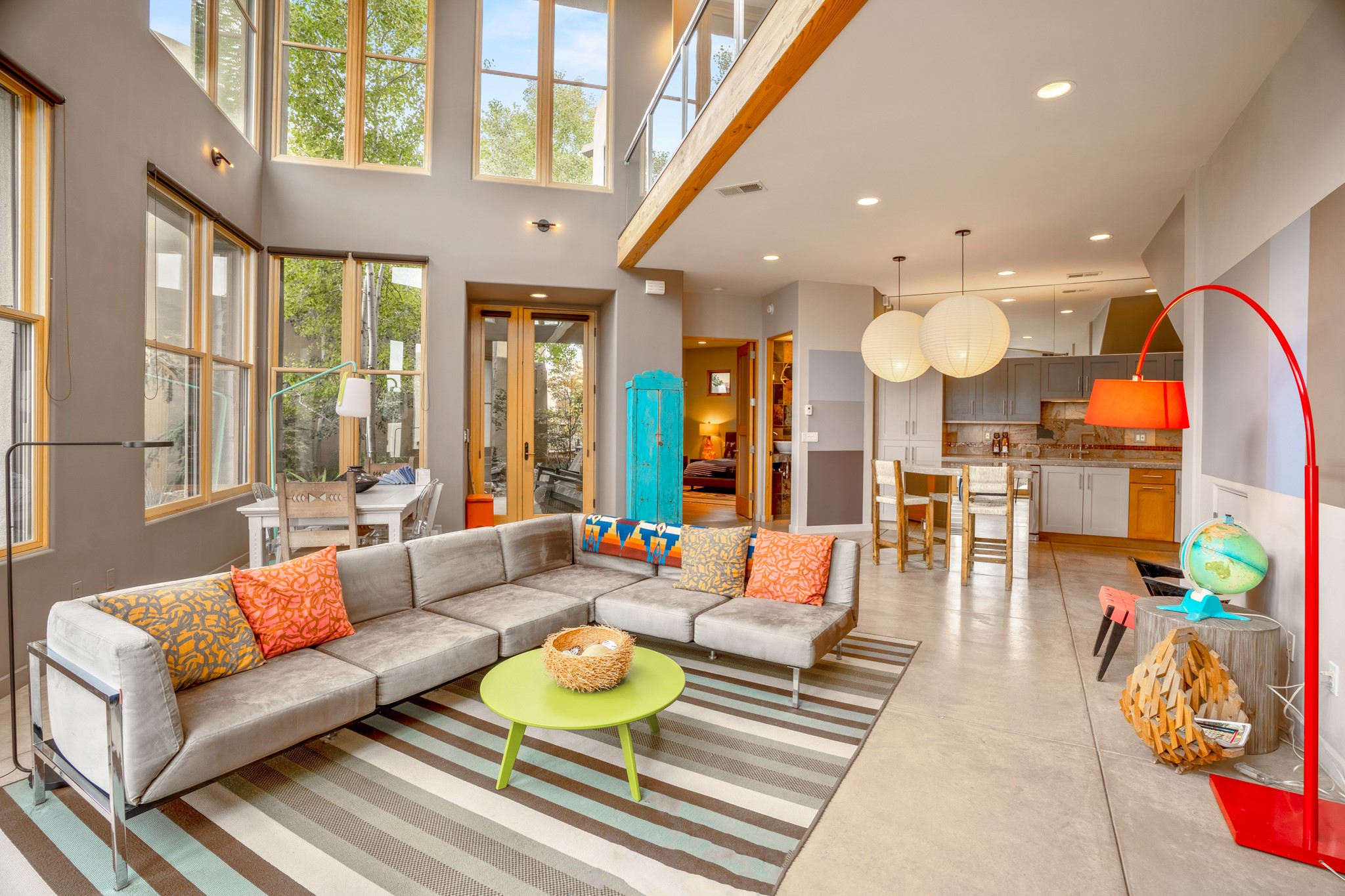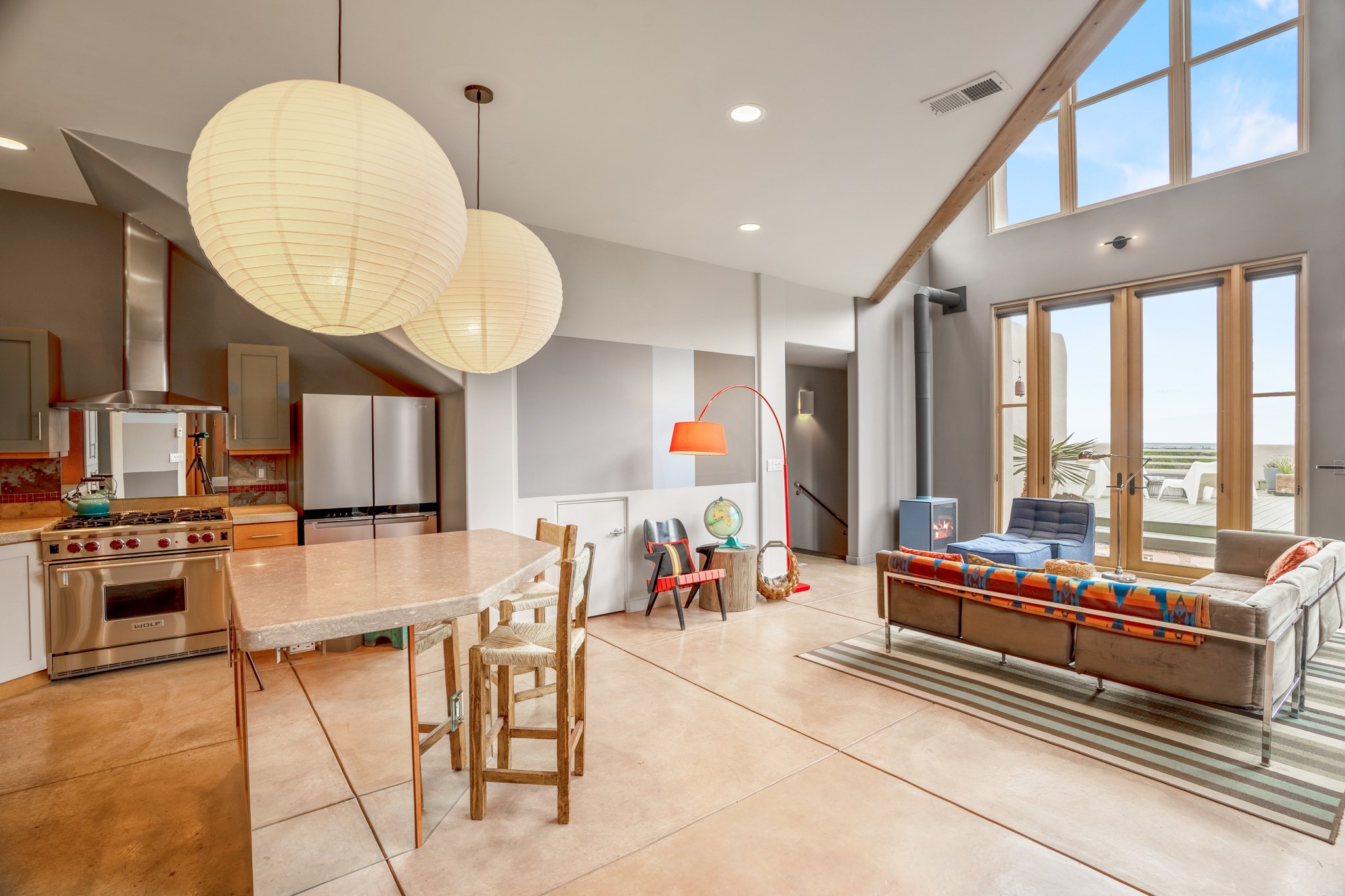 Looking for a earthy yet contemporary home? This is it. 2772 square foot home in Aldea has 3 bedrooms, 3.5 baths and a large deck with expansive and unobstructed desert and mountain views. It features radiant heat, forced air heat, and air conditioning. Navion on-demand water heater - installed in 2022. Domestic water pipes were replaced with top of the line WIRSBO piping. There is a rubber membrane over a torch down roof with a maintenance agreement currently in place.Enter the front gate into an enchanting Zen garden courtyard shaded by a dozen 20-foot-tall aspen trees. All on a drip irrigation system with strategically placed state-of-the-art landscape lighting.The great room has a soaring 20-foot ceiling and wall of windows facing over the desert landscape, a contemporary Scandinavian gas stove, and automated solar blinds.Watch spectacular sunsets from the 500-square-foot deck with a 180-degree view of the Jemez in the distance.The modern open-style kitchen has a large island, limestone countertops, and stainless appliances including a Wolf range.Two high-ceilinged primary suites have stone-tiled bathrooms with soaking tubs, double sinks with German designed fixtures, and walk-in closets. The primary bedroom suite is on the main floor for easy access to the common living areas. The upstairs guest suite features a balcony and den with spectacular views of the desert and mountains.A large room on the lower level has a full ensuite bath and its own entrance and can be used as an office, studio, or a third bedroom. The door from this room leads to 2 private parking spaces. This is a super cool property with industrial-chic concrete, eco-friendly bamboo, and stone tile flooring.The bathroom finishes are high-end contemporary cabinets with tile surrounds up to the ceilings.Aldea is a friendly New Urbanist community with 13 miles of walking trails, a community center, a coffee shop, on-site HOA Management, tennis, basketball, and Bocce Ball courts and nice parks scattered throughout the community.