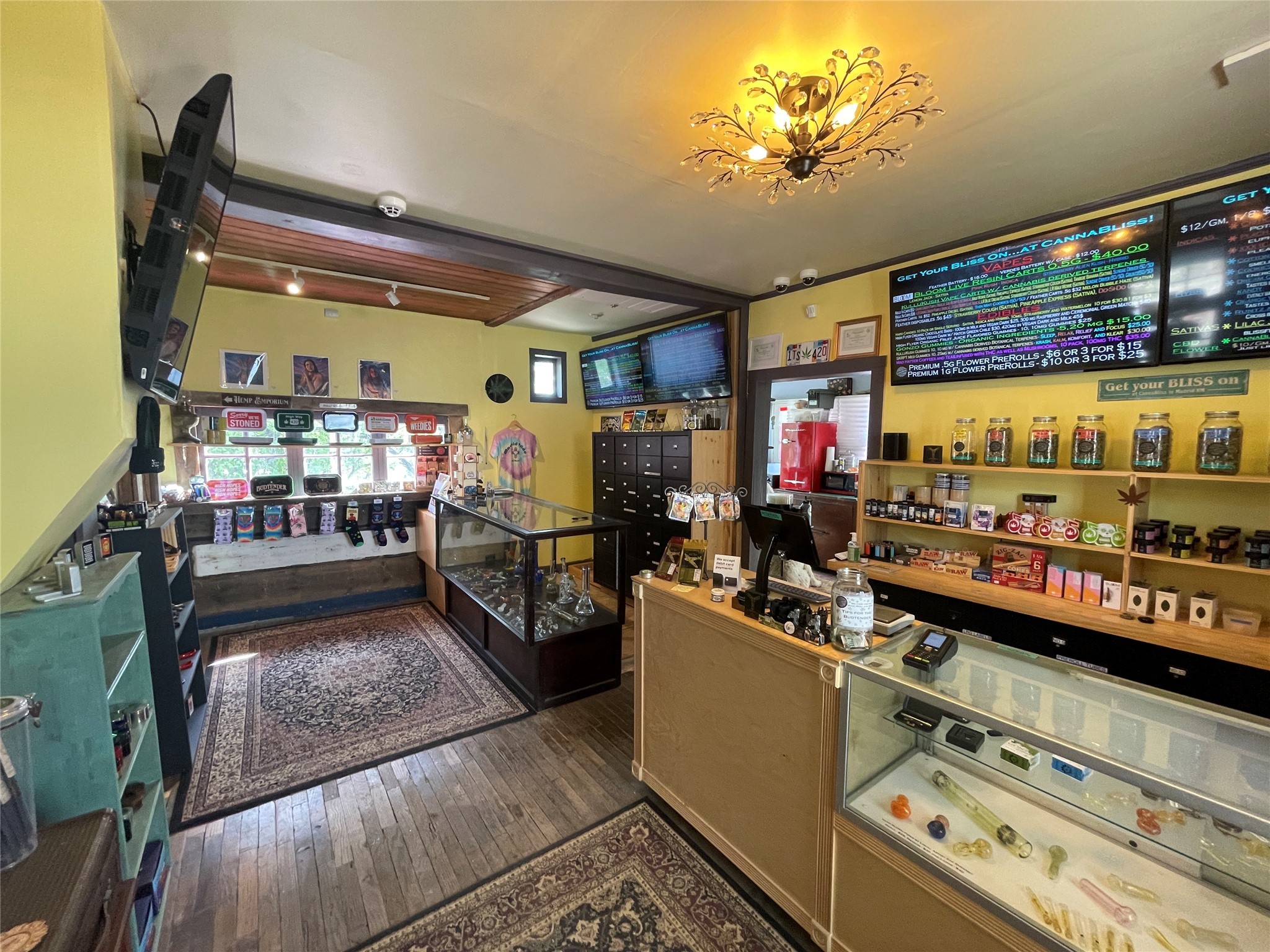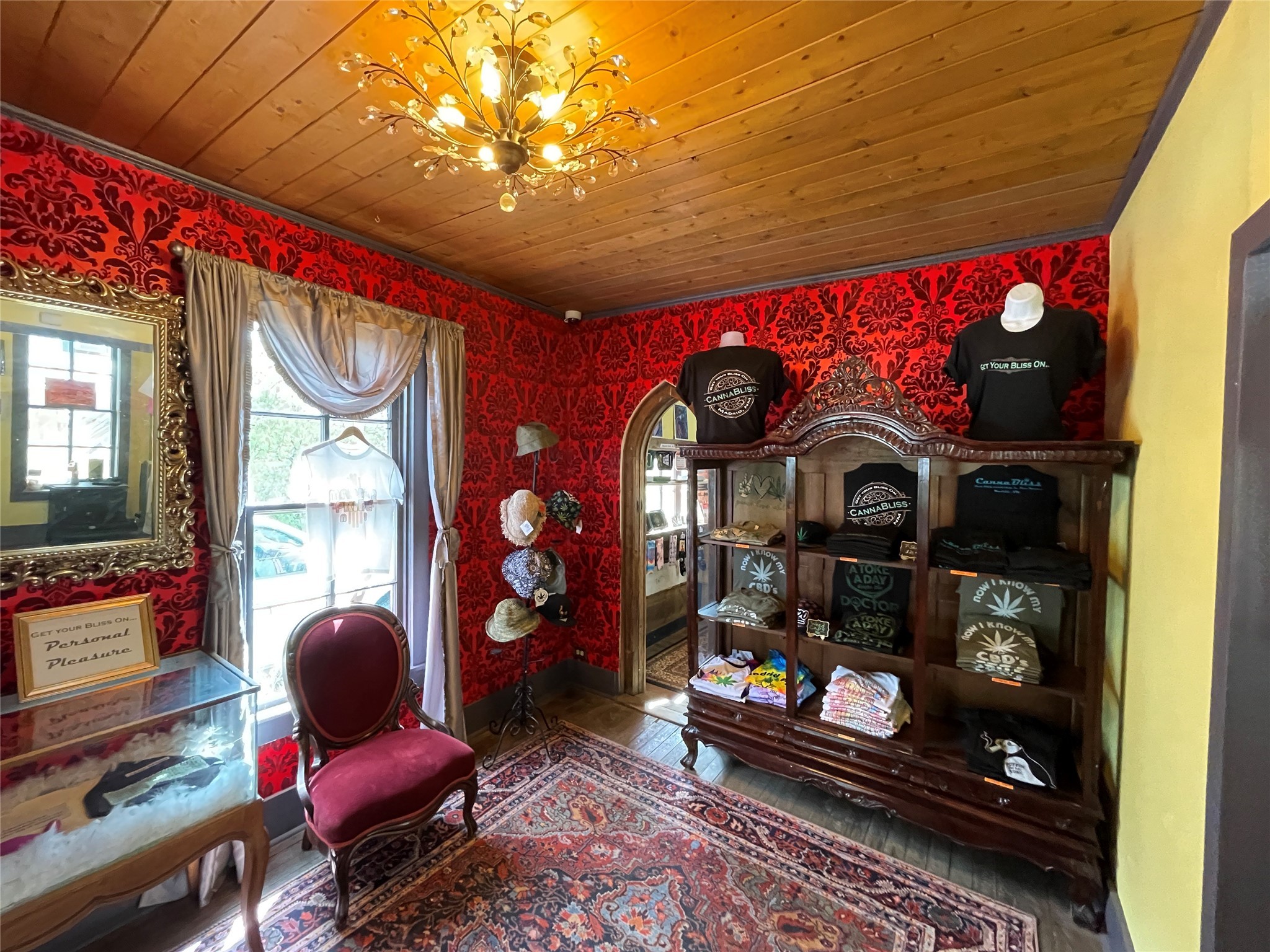 Highly visible, alluring, downtown Madrid shop. Located next door to the General Store.Currently used as a cannabis dispensary. In the past it was a Real Estate office, jewelry store and a residence.Small studio in the rear.