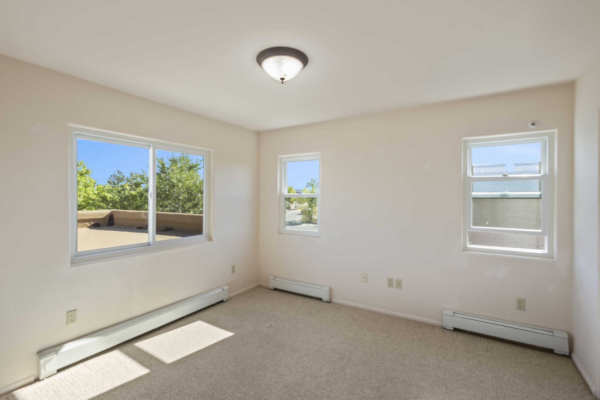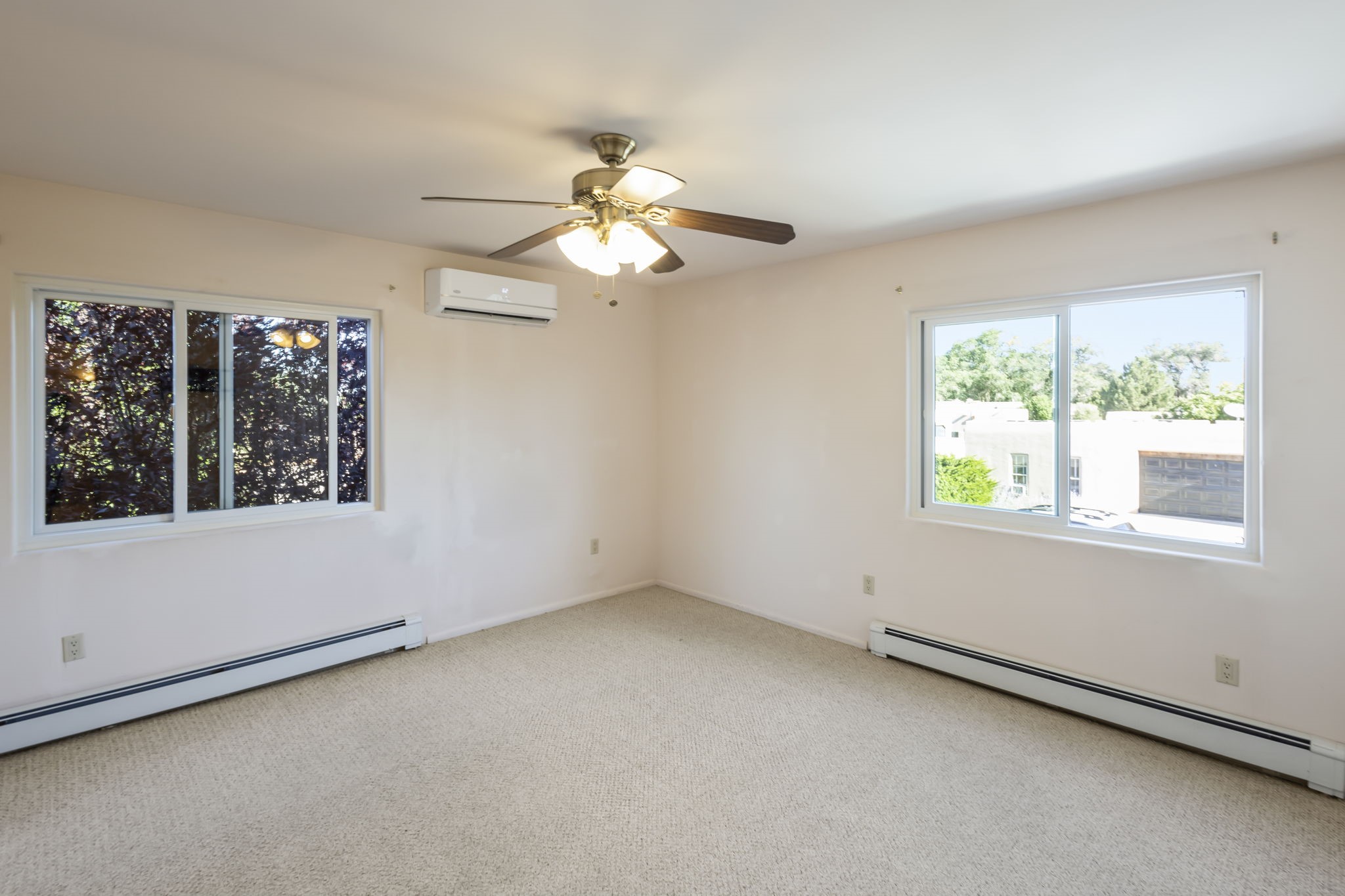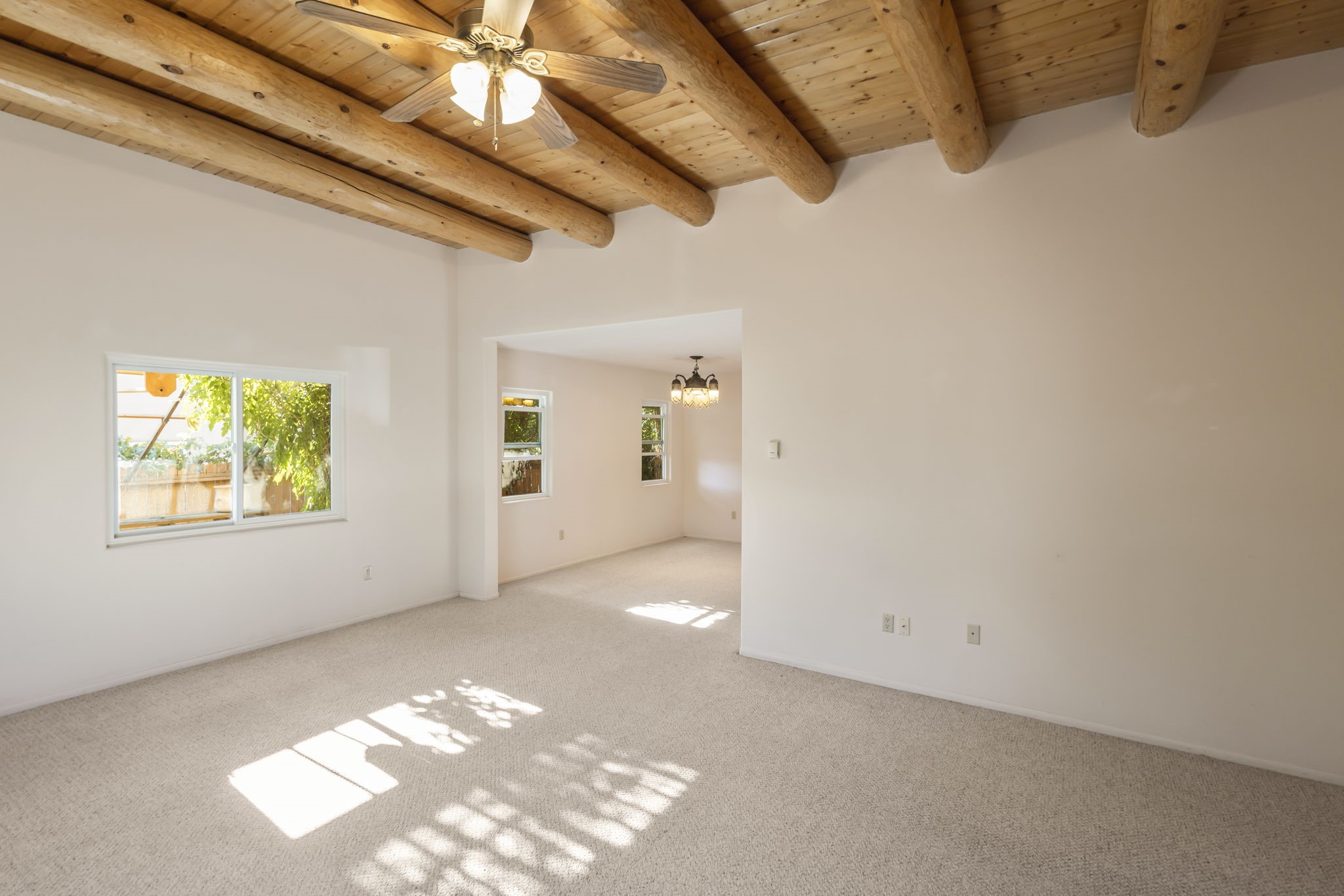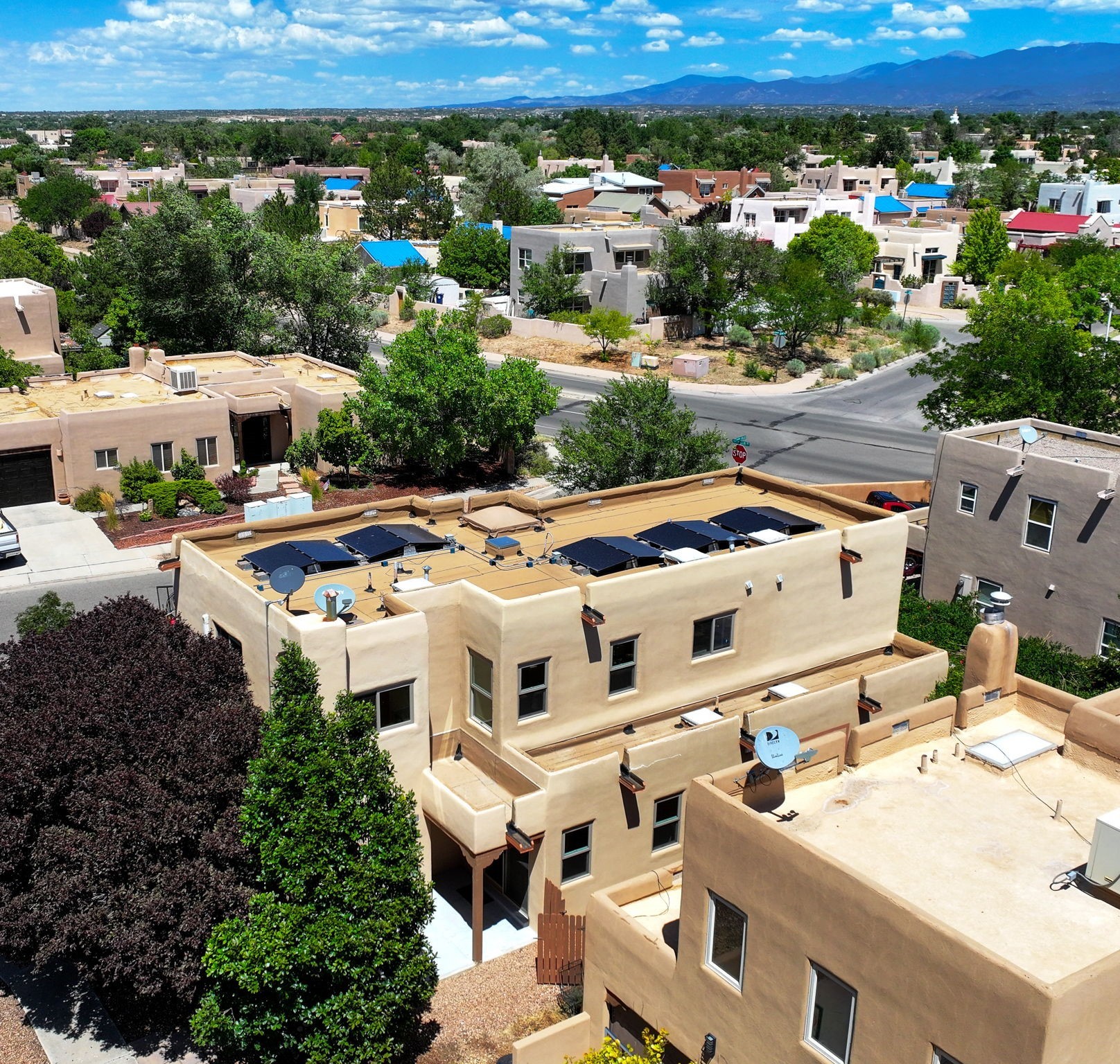You have been waiting for home prices to fall - HERE IS YOUR OPPORTUNITY! NOW OFFERED AT ONLY $245 PER SQUARE FOOT - This spacious home includes NEW windows throughout from Renewal by Anderson Windows installed in August 2023, a 10 panel roof-top solar system and a 240V high-speed electric car charging outlet in the 2-car garage. Additional features: 3 bedrooms and 3 full baths, 15-foot viga ceiling in the living area, security system, high-speed internet PLUS a home office/den with a private entrance - perfect for a home business! The roof has been recently inspected and comes with a transferable warranty. The outdoor spaces are a gardener's dream with mature apple, peach and decorative plum trees, grape and trumpet vines and a convenient composter. Radiant floor heating at the lower level and hot water baseboard heating at the upper level will bring absolute comfort during the cold season. Only 3 blocks from the Southside Public Library and the new Santa Fe Teen Center, convenient access to public transportation, easy access to Hwy 599 for Los Alamos commuters and a short drive to all Southside amenities.