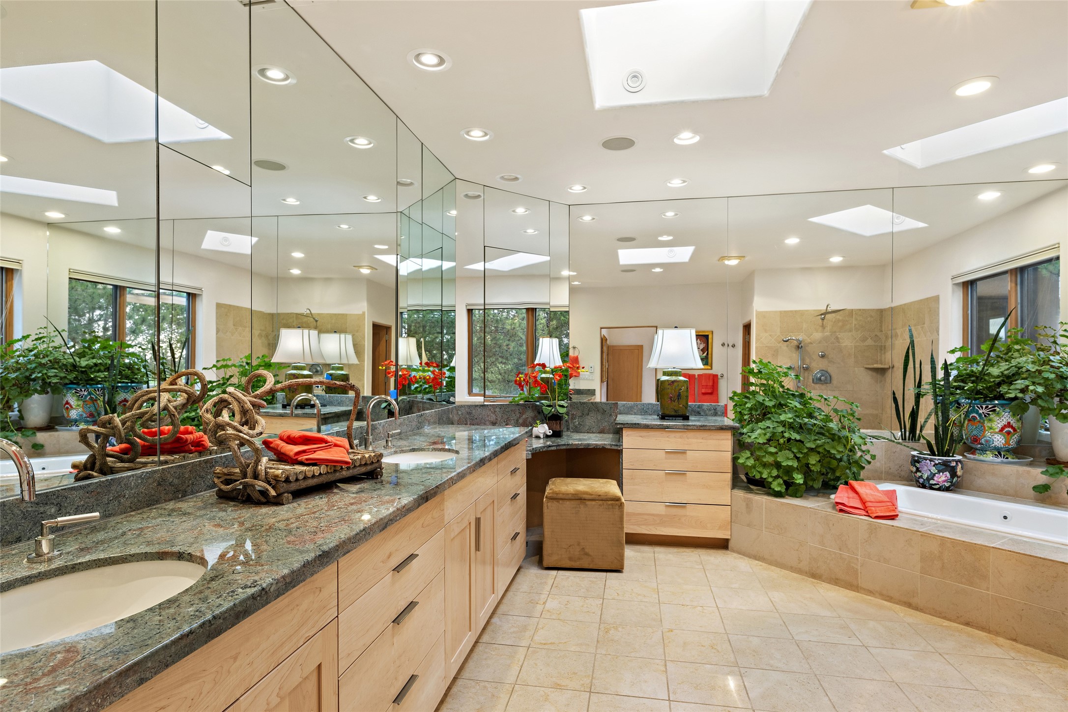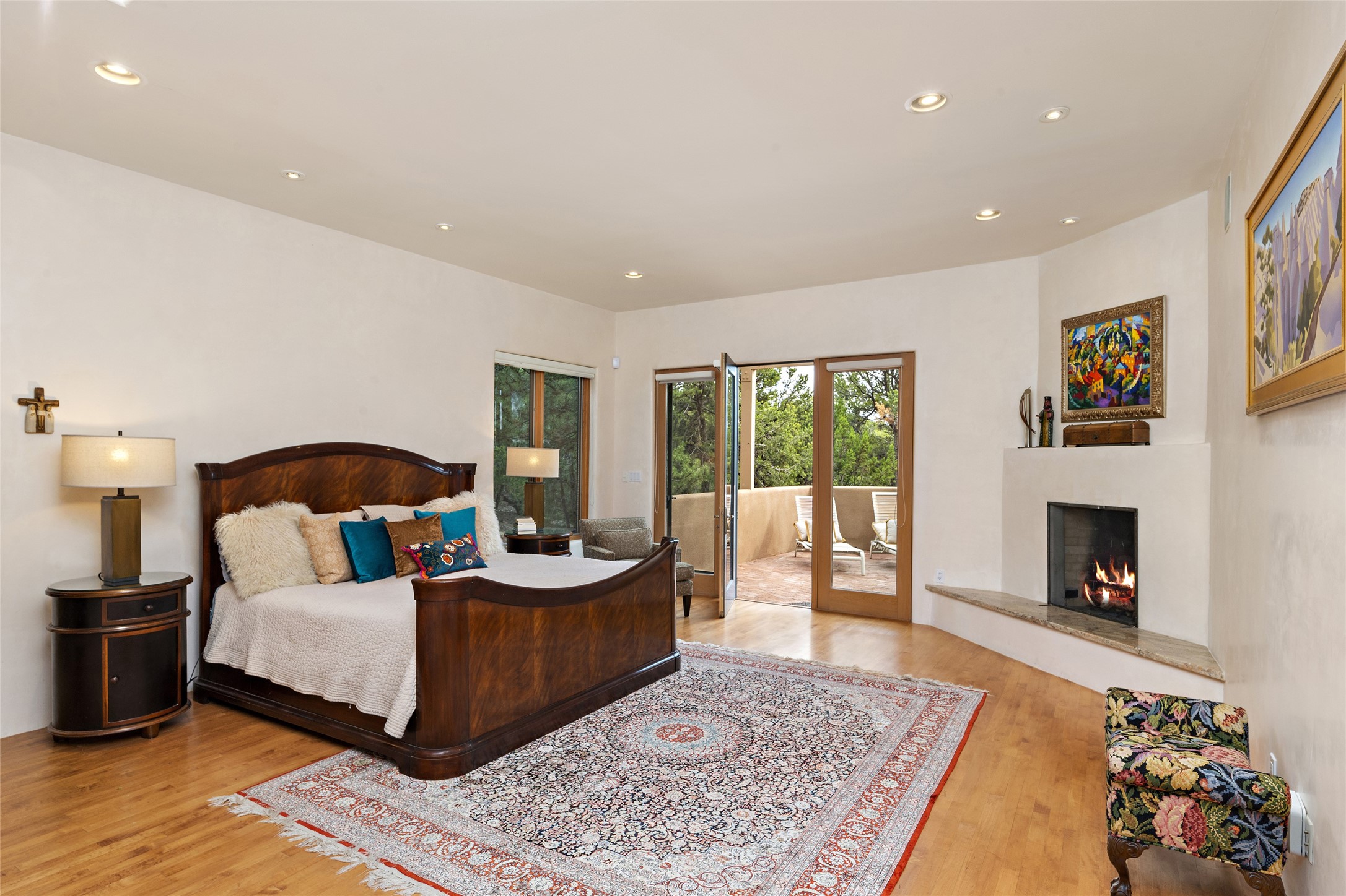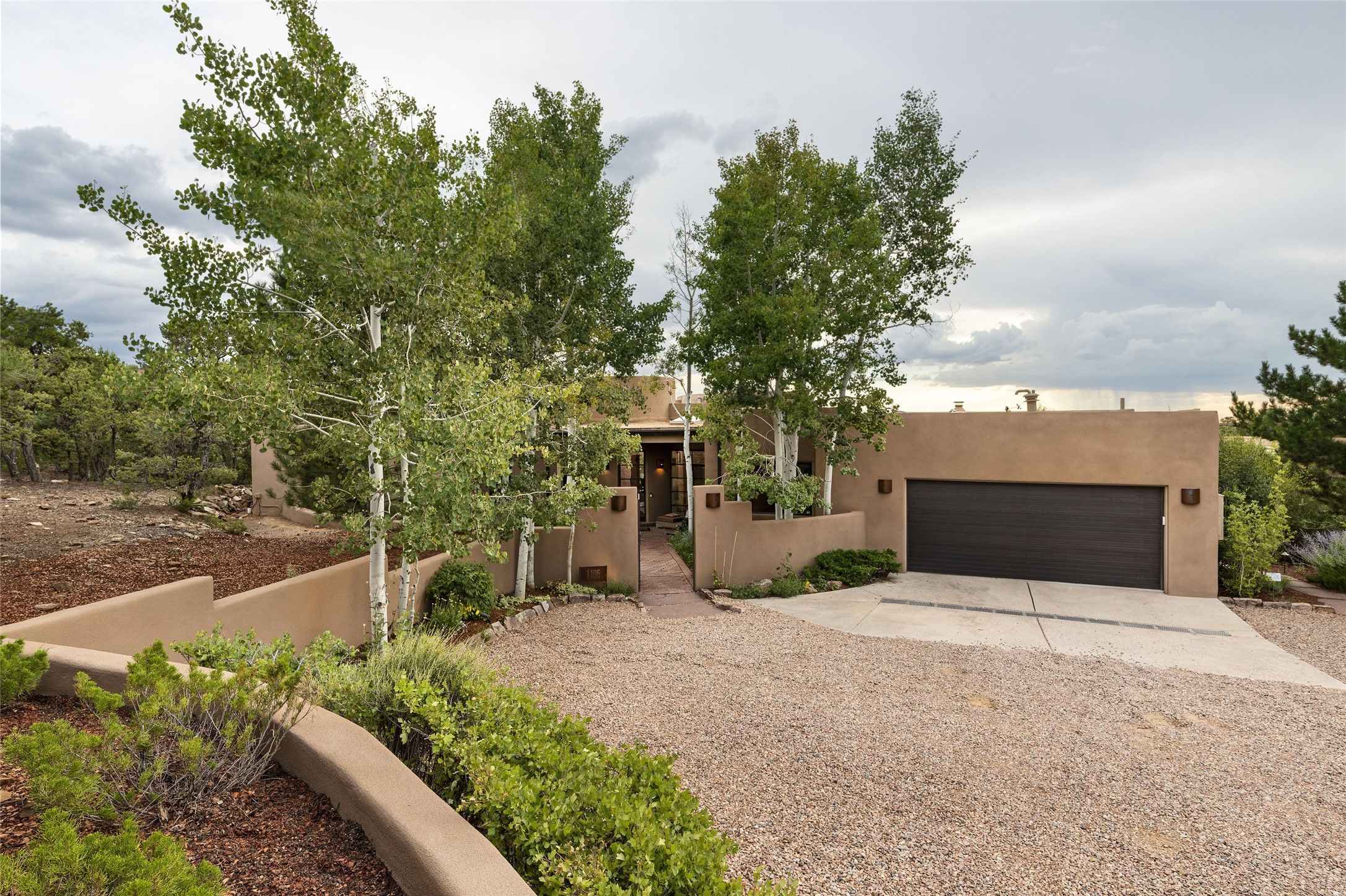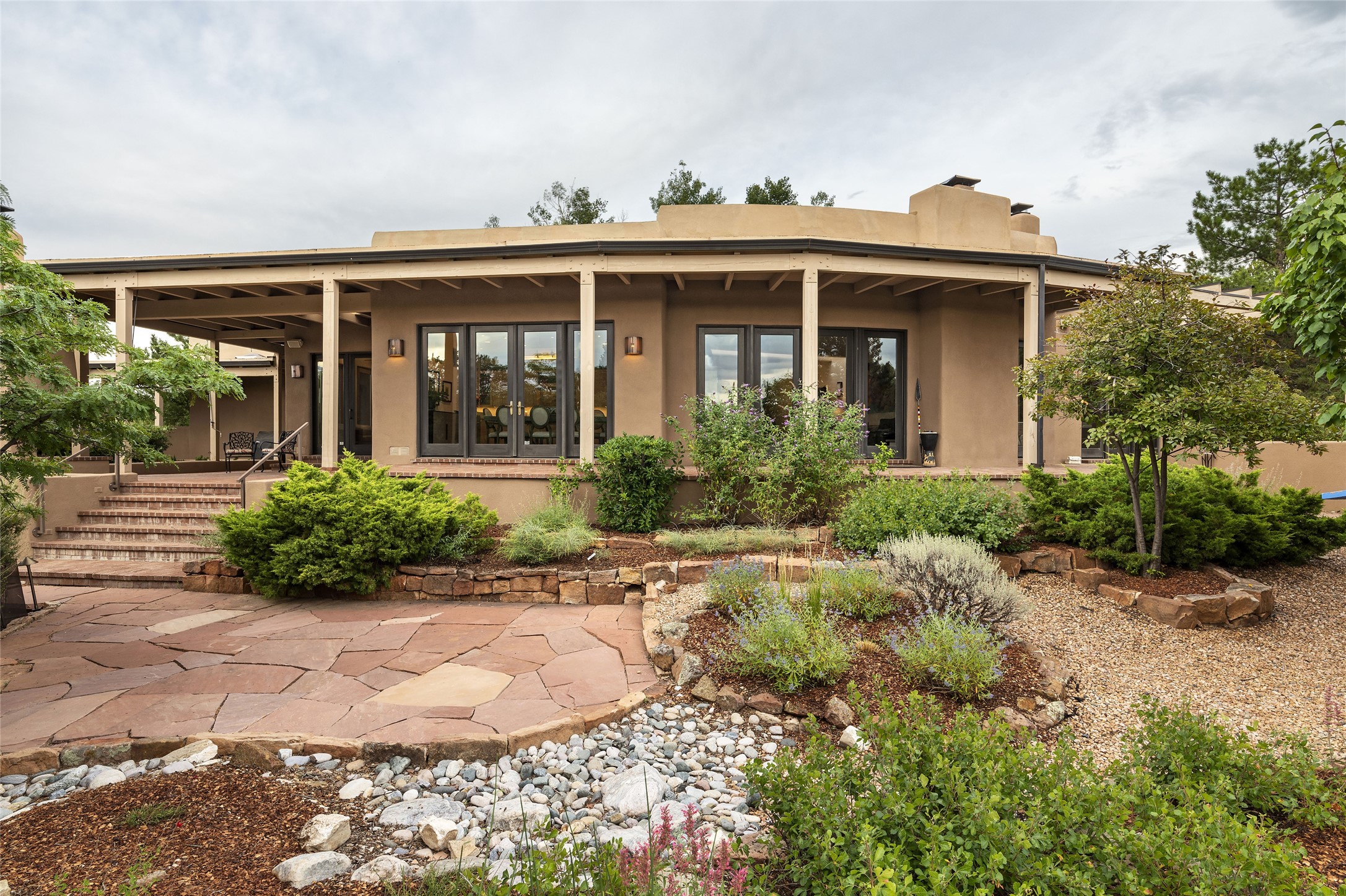 Views, Privacy & Elegance await you at this Single-Level Soft Contemporary home, with 5 Bedrooms, 4 Baths plus a spacious Guest House which has 2 of the Bedrooms & 1 Bath on 2-plus acres in a private, gated community in Sierra del Norte. The Living Room includes a wood-burning fireplace, tall ceilings and flows into the spacious Dining area with room for eight. The Gourmet Kitchen includes Wolf, SubZero & KitchenAid stainless appliances plus an abundance of counter space for meal preparation as well as dining & socializing with friends & family. The Master Bedroom Suite includes a wood-burning fireplace, enormous walk-in closet, access to a private outdoor area plus an equally spacious Bath with double sinks, oversized shower, jetted tub & compartmented water closet. Bedroom Two, adjacent to the Master, can be a Den, Office, TV or Work-Out Room. Bedroom Three has an en-suite bath. The Guest House has a Bed & Bath plus an Office area pre-plumbed for a Kitchenette. The Guest House also has a huge Basement for a wine cave, work-out area or overflow storage. The Back Portal, accessed from the Living, Dining & Kitchen areas, includes a wood-burning fireplace and transitions easily to the landscaped back yard area with a 3-season Greenhouse. This home is in a private, gated community in the foothills that offers sunset and night light views, easy walking access to the Dale Ball Trail System as well as in-town convenience without the noise & traffic.