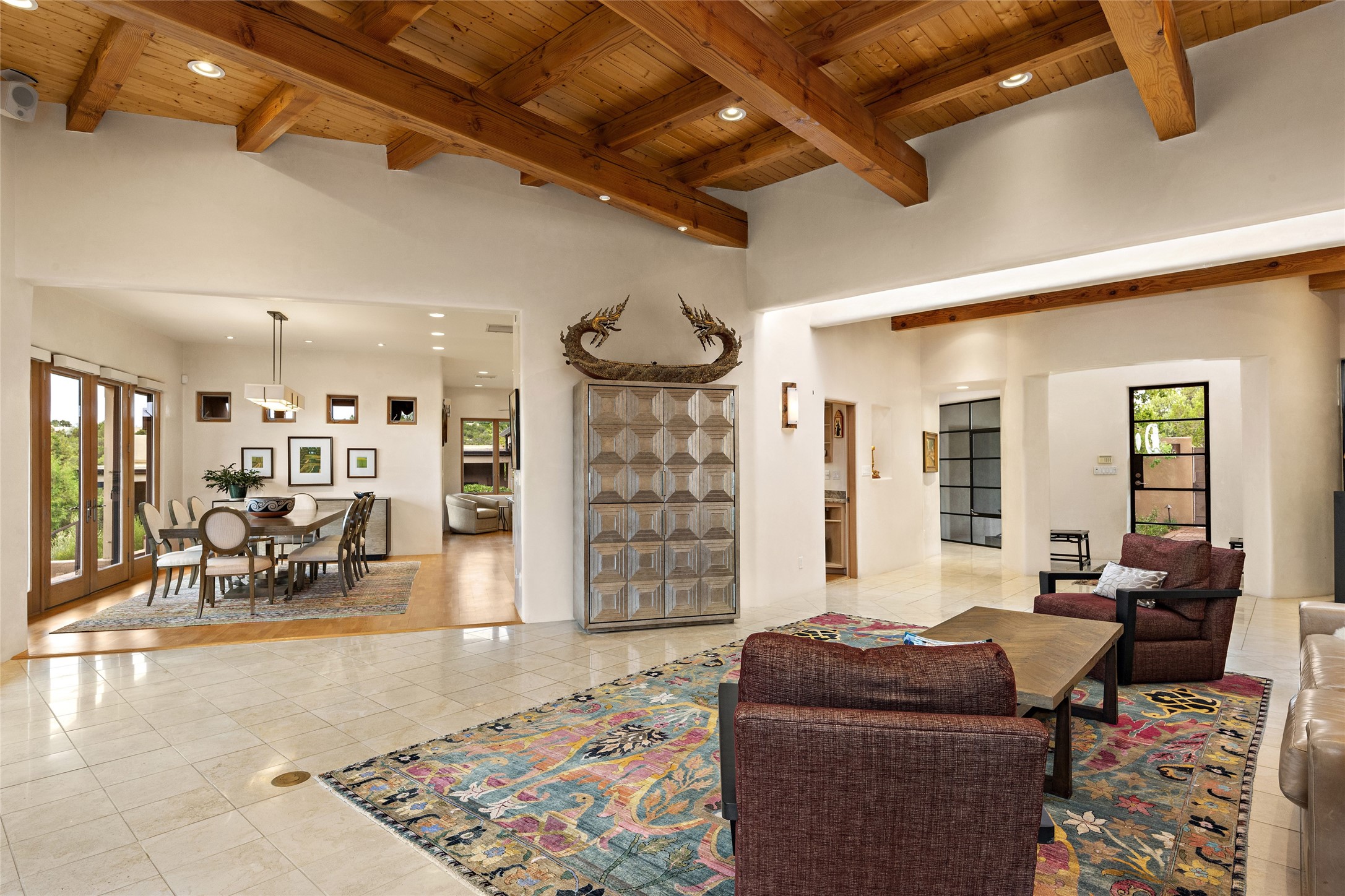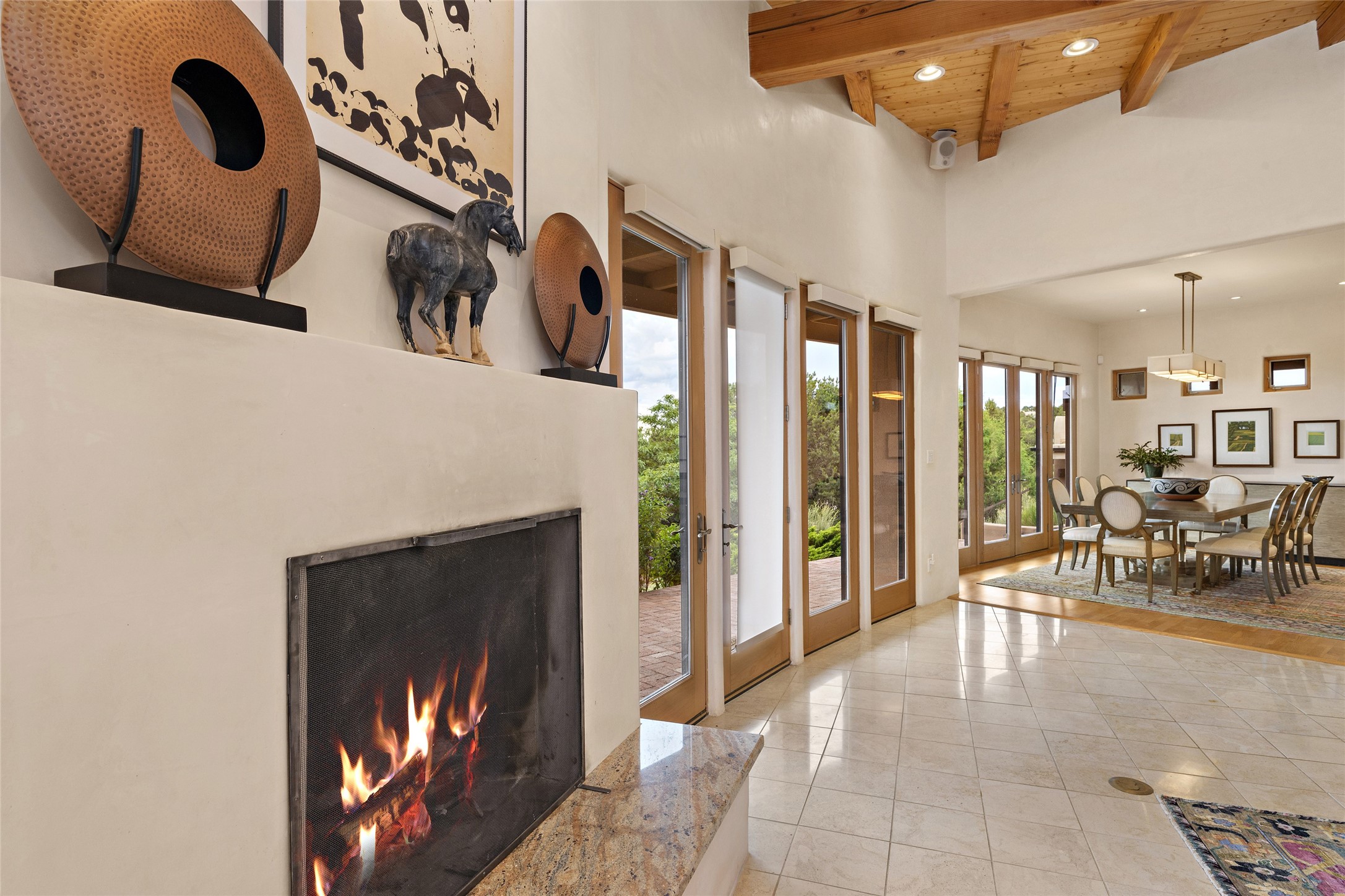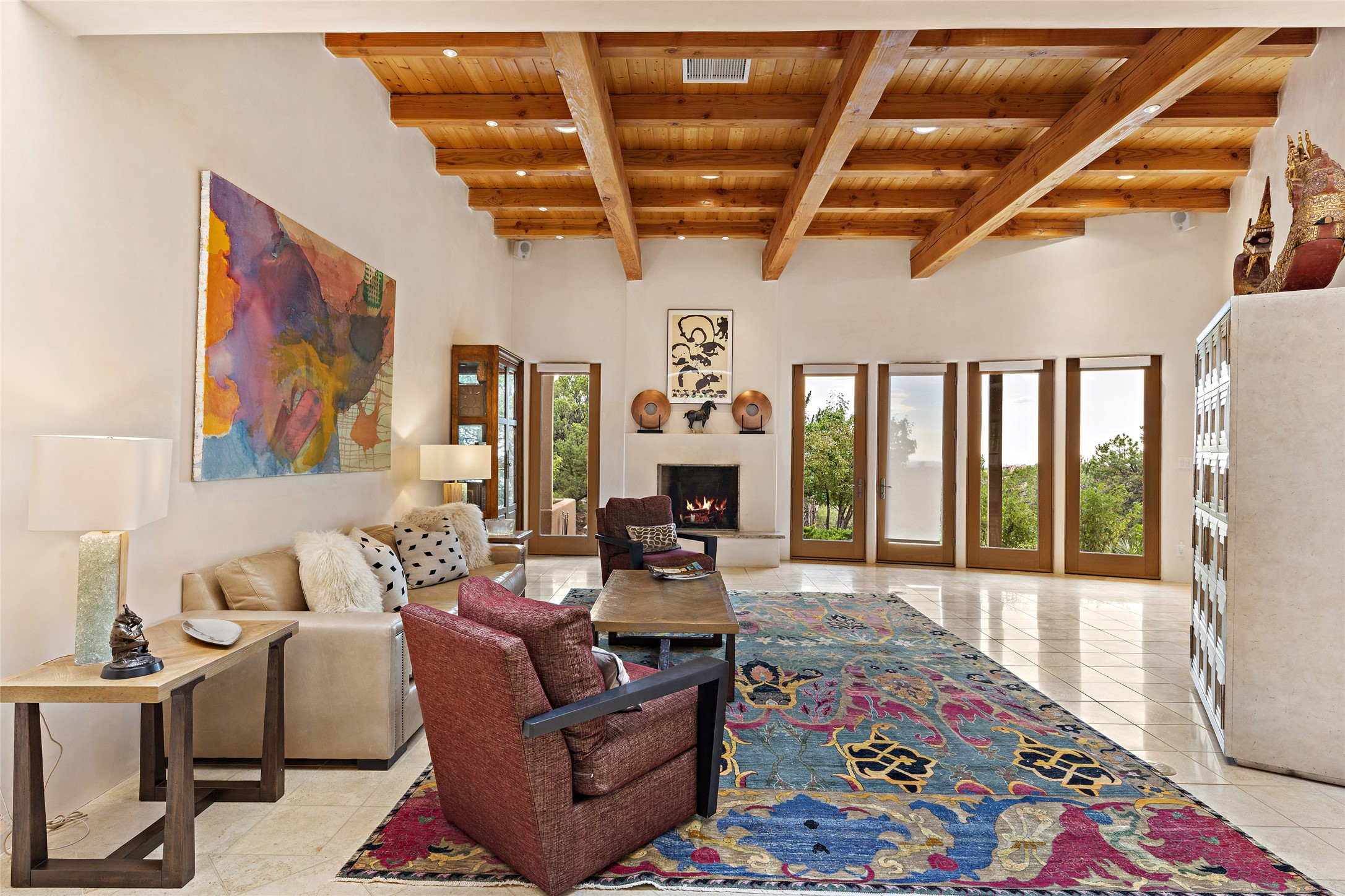 Views, Privacy & Elegance await you at this Single-Level Soft Contemporary home, with 5 Bedrooms, 4 Baths plus a spacious Guest House which has 2 of the Bedrooms & 1 Bath on 2-plus acres in a private, gated community in Sierra del Norte. The Living Room includes a wood-burning fireplace, tall ceilings and flows into the spacious Dining area with room for eight. The Gourmet Kitchen includes Wolf, SubZero & KitchenAid stainless appliances plus an abundance of counter space for meal preparation as well as dining & socializing with friends & family. The Master Bedroom Suite includes a wood-burning fireplace, enormous walk-in closet, access to a private outdoor area plus an equally spacious Bath with double sinks, oversized shower, jetted tub & compartmented water closet. Bedroom Two, adjacent to the Master, can be a Den, Office, TV or Work-Out Room. Bedroom Three has an en-suite bath. The Guest House has a Bed & Bath plus an Office area pre-plumbed for a Kitchenette. The Guest House also has a huge Basement for a wine cave, work-out area or overflow storage. The Back Portal, accessed from the Living, Dining & Kitchen areas, includes a wood-burning fireplace and transitions easily to the landscaped back yard area with a 3-season Greenhouse. This home is in a private, gated community in the foothills that offers sunset and night light views, easy walking access to the Dale Ball Trail System as well as in-town convenience without the noise & traffic.