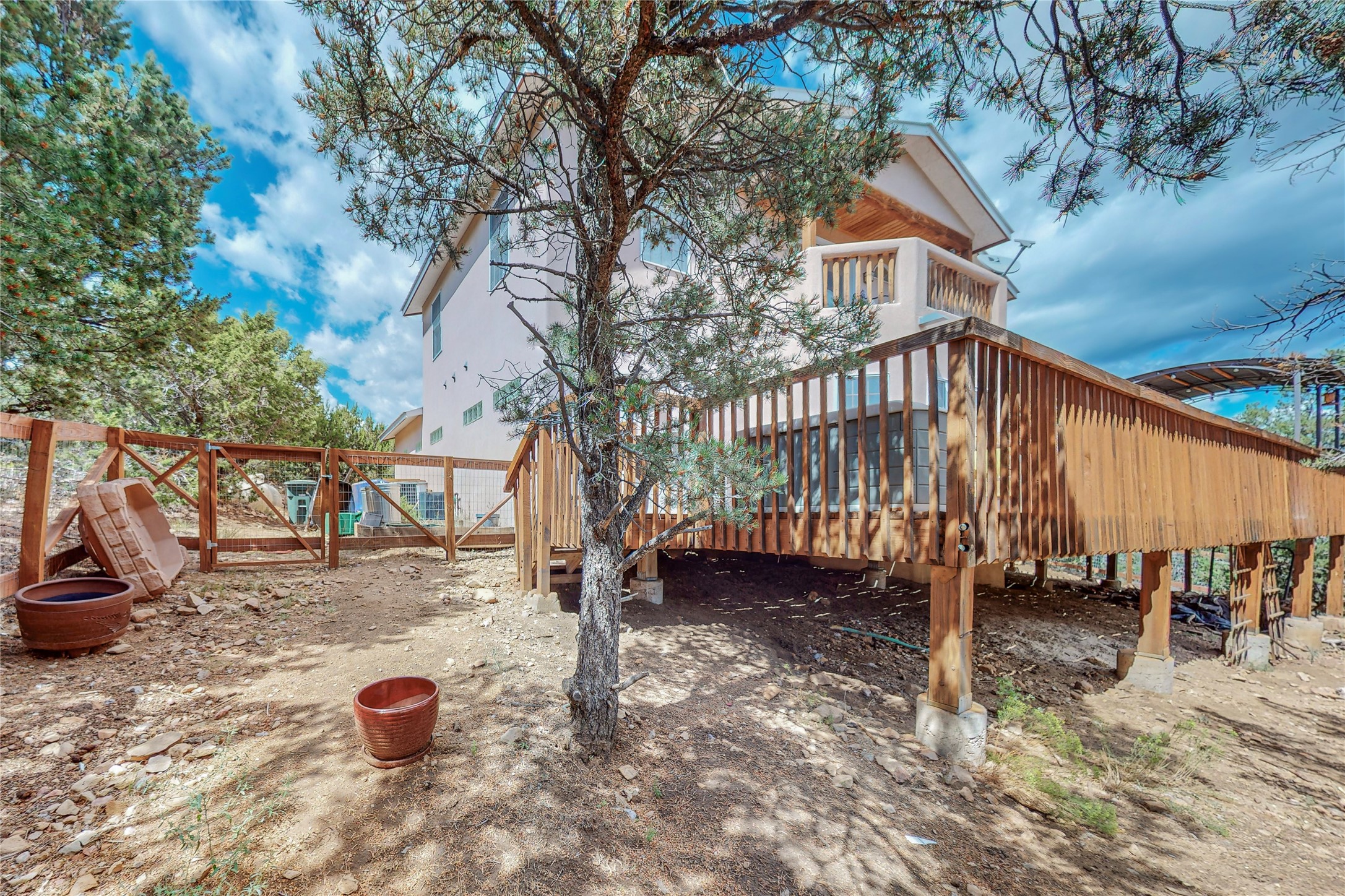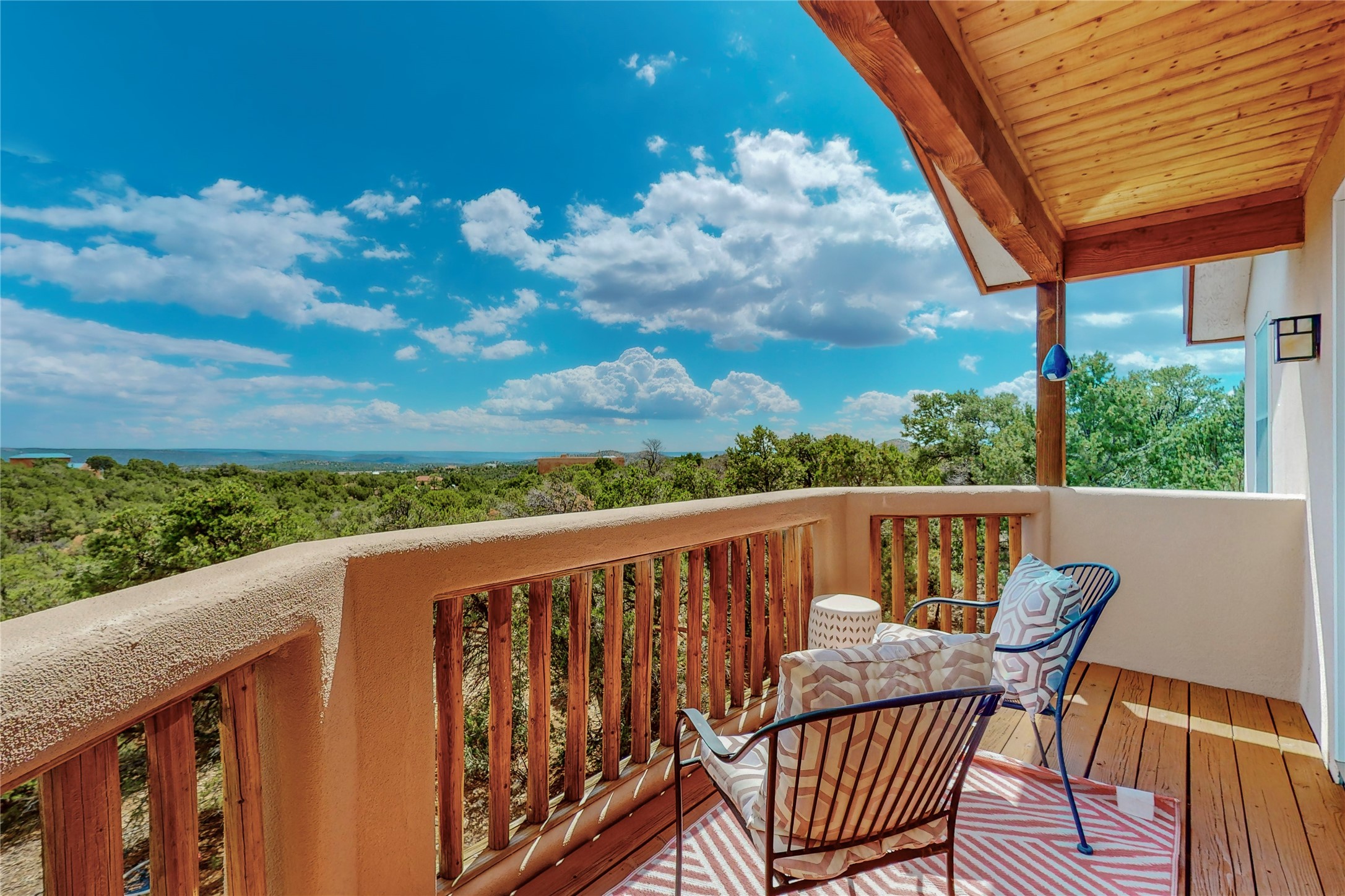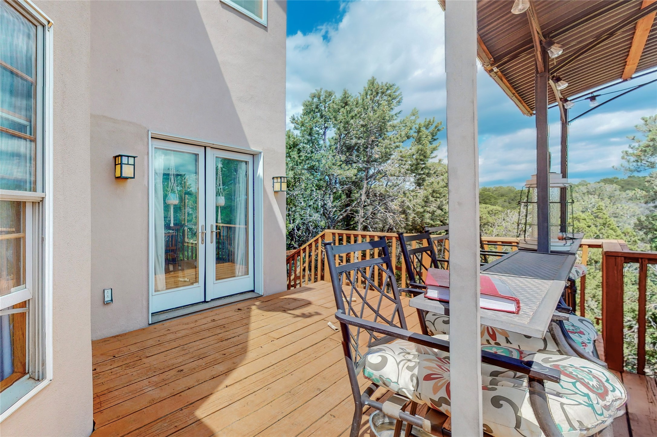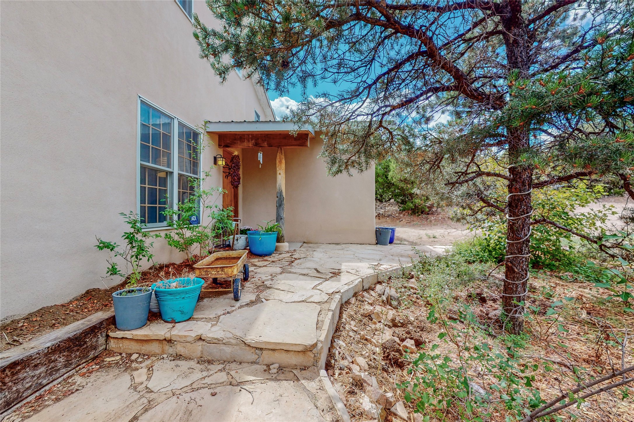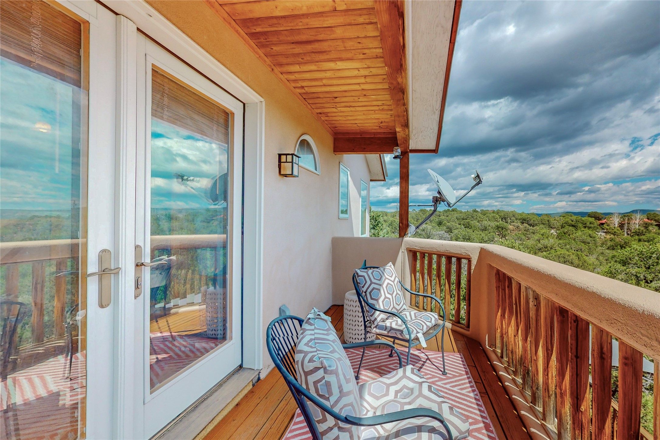 One owner home offered for sale. Located on 5 wooded acres 88 Apache Ridge is sited back from the main access road and has much to offer Buyers. The 2 story house contains 3 bedrooms, 2 full and bath, oversize direct entry garage and a bonus room. The lower level has open concept living/dining room leading to a cooks kitchen. The bath and bonus room which has 2 entries - one to the backyard and one to the garage would be great as either a studio or workshop. The upper level is reached from a wooden stairway to a loft area with oak flooring, shelves for a library, and French doors leaking to a viewing deck. The owners suite has a kiva fireplace, separate shower, jetted tub and walk-in closet. 2 additional bedrooms and a full bath complete this floor. The property includes a private well, expansive rear deck, designated garden space, and storage shed. Additional features include vigas and beams, cove ceiling inliving room, pitched Fabral metal roof, cedar lined closets, refrigerated air conditioning new (spring 2023), Navien heating system, and 2nd kiva fireplace in the living room. Owner's on Apache Ridge pay $200 per year for road maintenance. For folks seeking a beautiful home 20 minutes from Santa Fe 88 Apache Ridge could be the place for you.