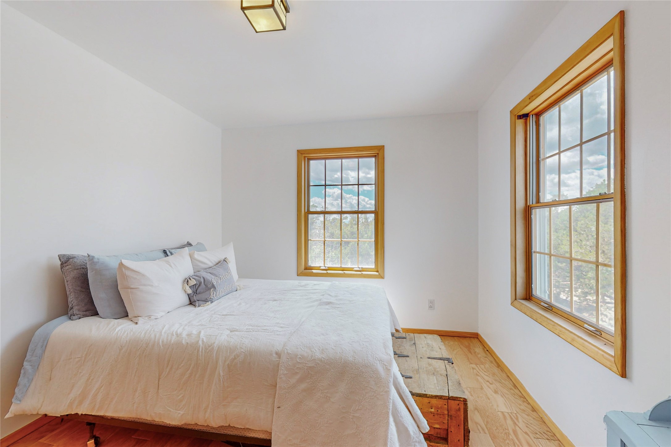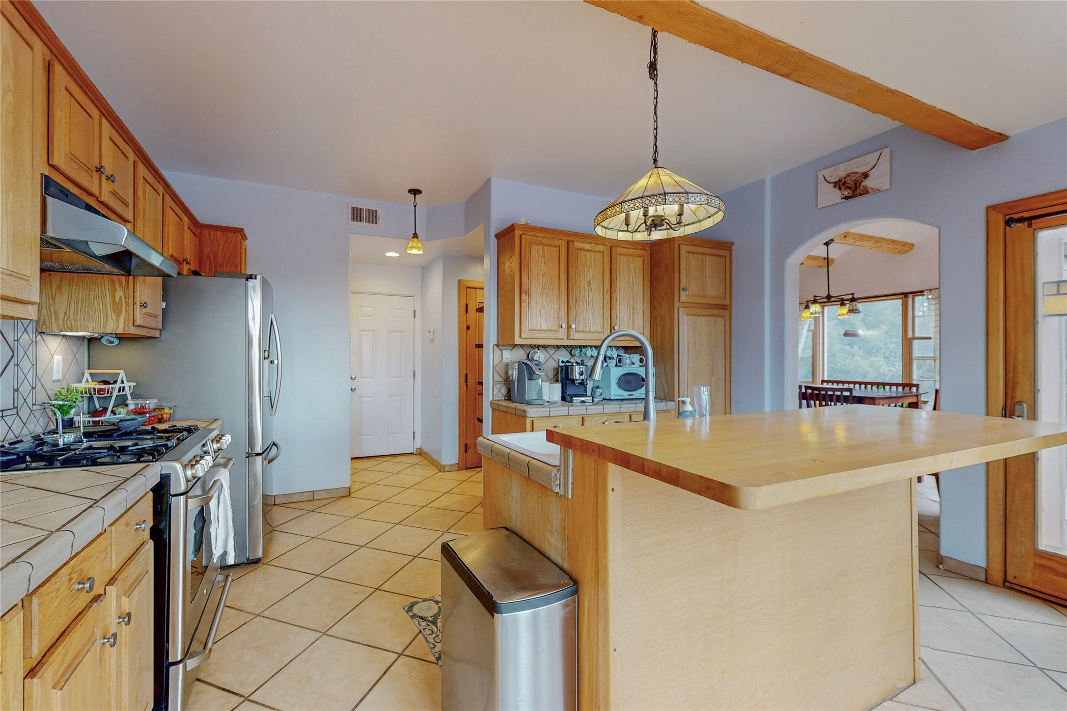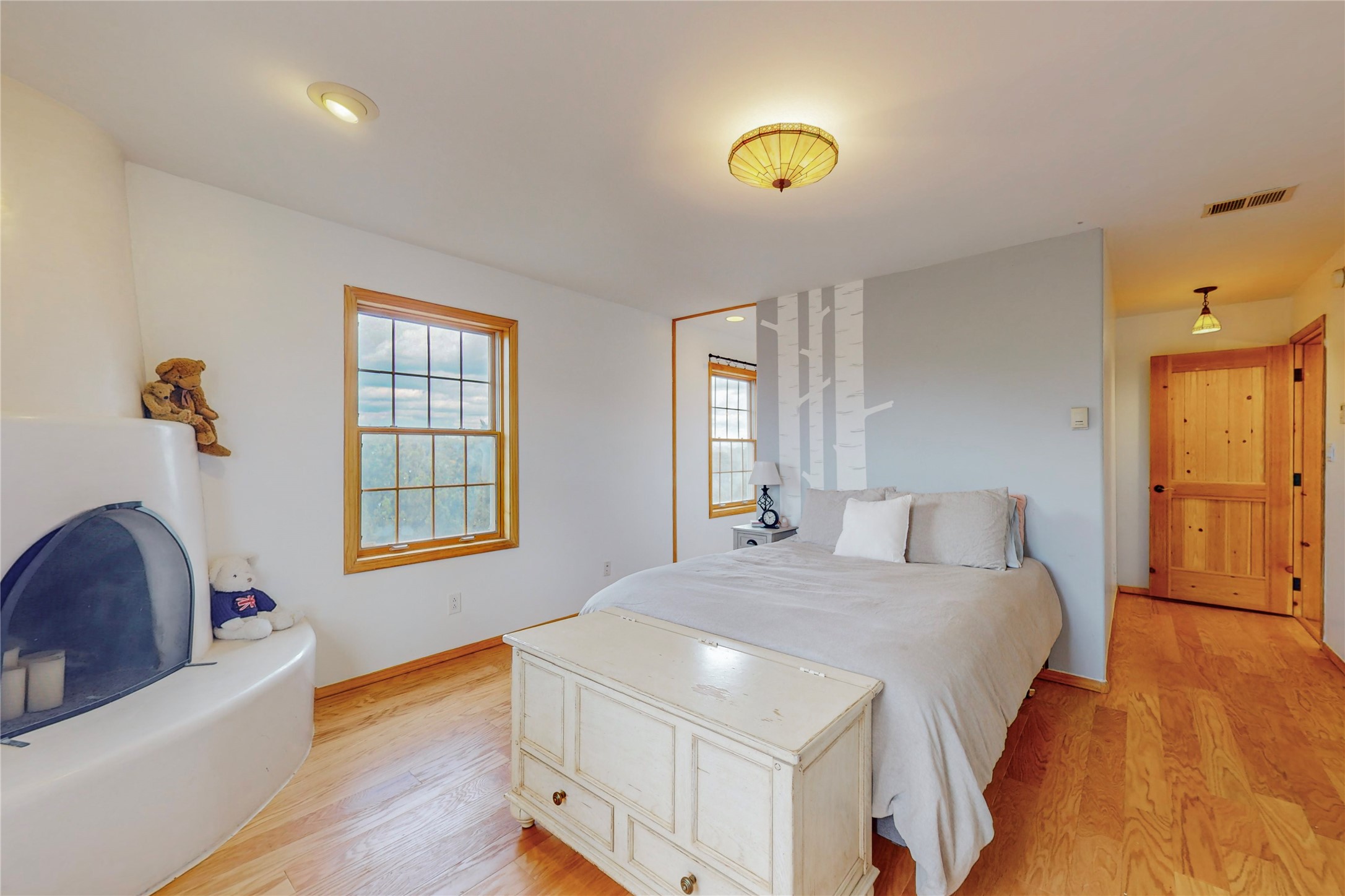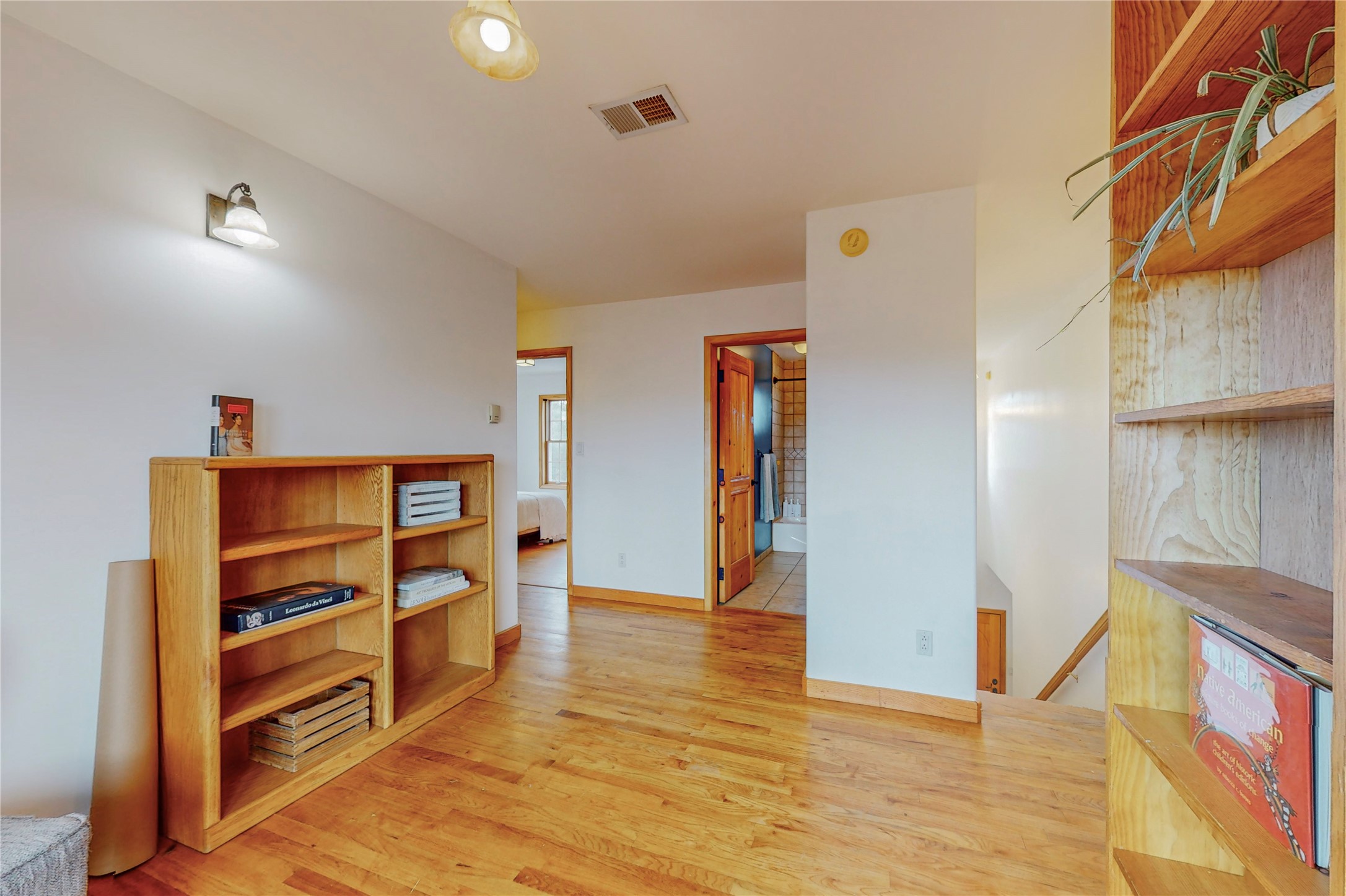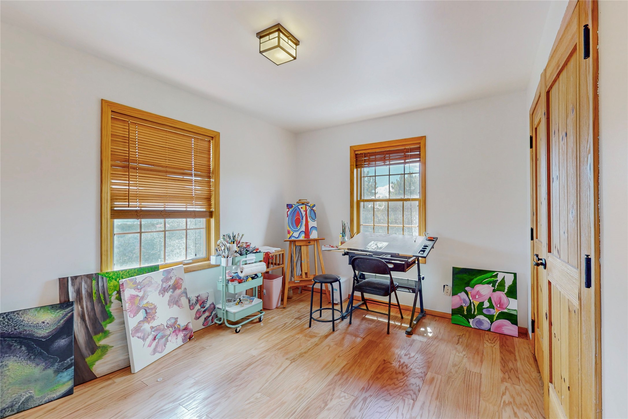 One owner home offered for sale. Located on 5 wooded acres 88 Apache Ridge is sited back from the main access road and has much to offer Buyers. The 2 story house contains 3 bedrooms, 2 full and bath, oversize direct entry garage and a bonus room. The lower level has open concept living/dining room leading to a cooks kitchen. The bath and bonus room which has 2 entries - one to the backyard and one to the garage would be great as either a studio or workshop. The upper level is reached from a wooden stairway to a loft area with oak flooring, shelves for a library, and French doors leaking to a viewing deck. The owners suite has a kiva fireplace, separate shower, jetted tub and walk-in closet. 2 additional bedrooms and a full bath complete this floor. The property includes a private well, expansive rear deck, designated garden space, and storage shed. Additional features include vigas and beams, cove ceiling inliving room, pitched Fabral metal roof, cedar lined closets, refrigerated air conditioning new (spring 2023), Navien heating system, and 2nd kiva fireplace in the living room. Owner's on Apache Ridge pay $200 per year for road maintenance. For folks seeking a beautiful home 20 minutes from Santa Fe 88 Apache Ridge could be the place for you.