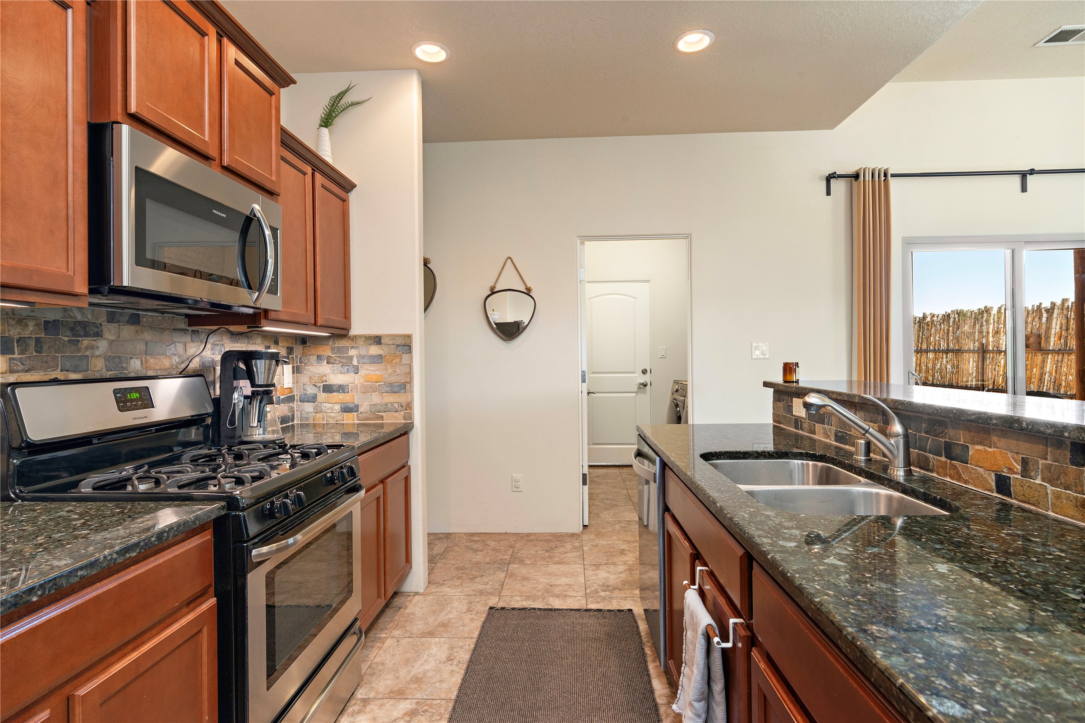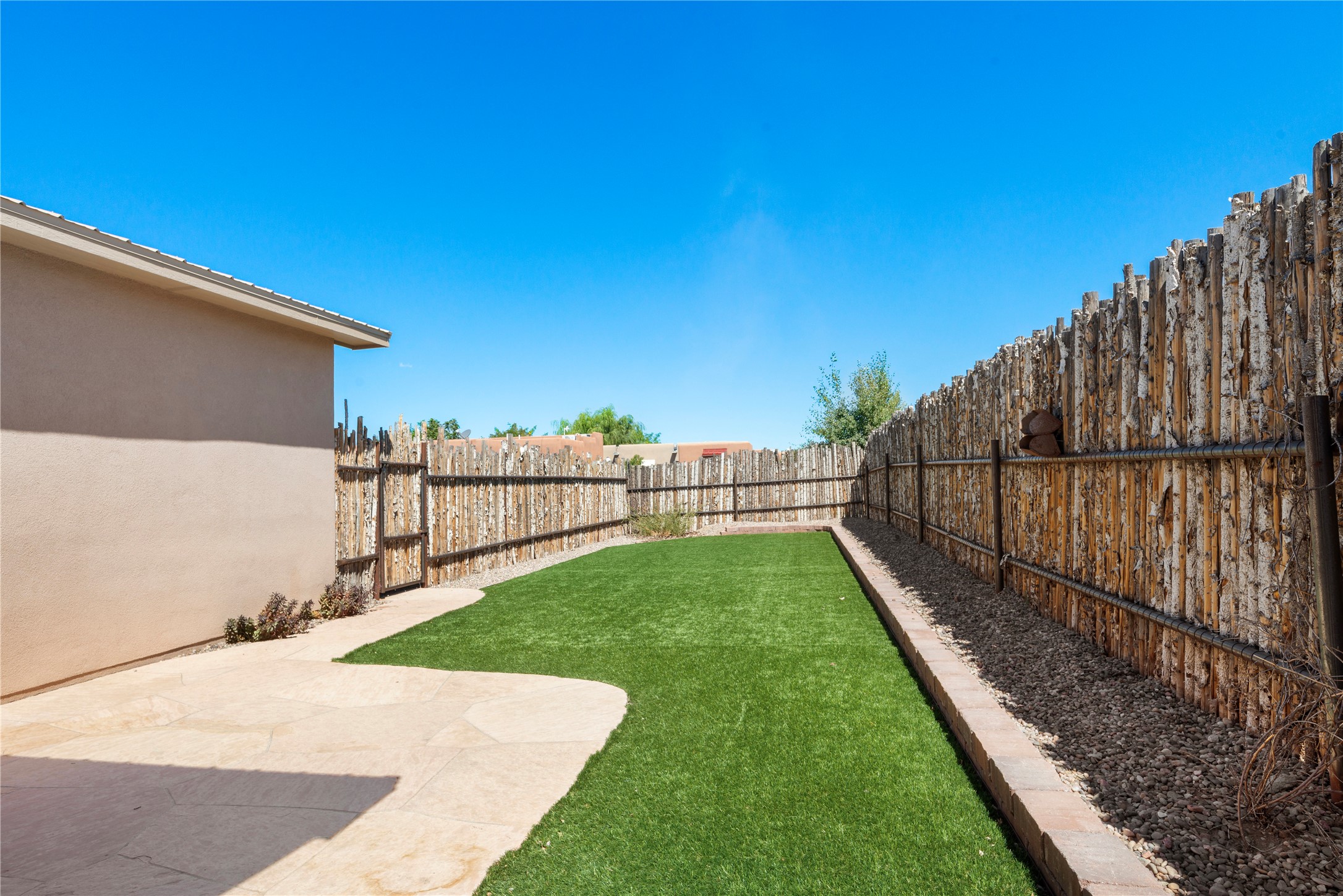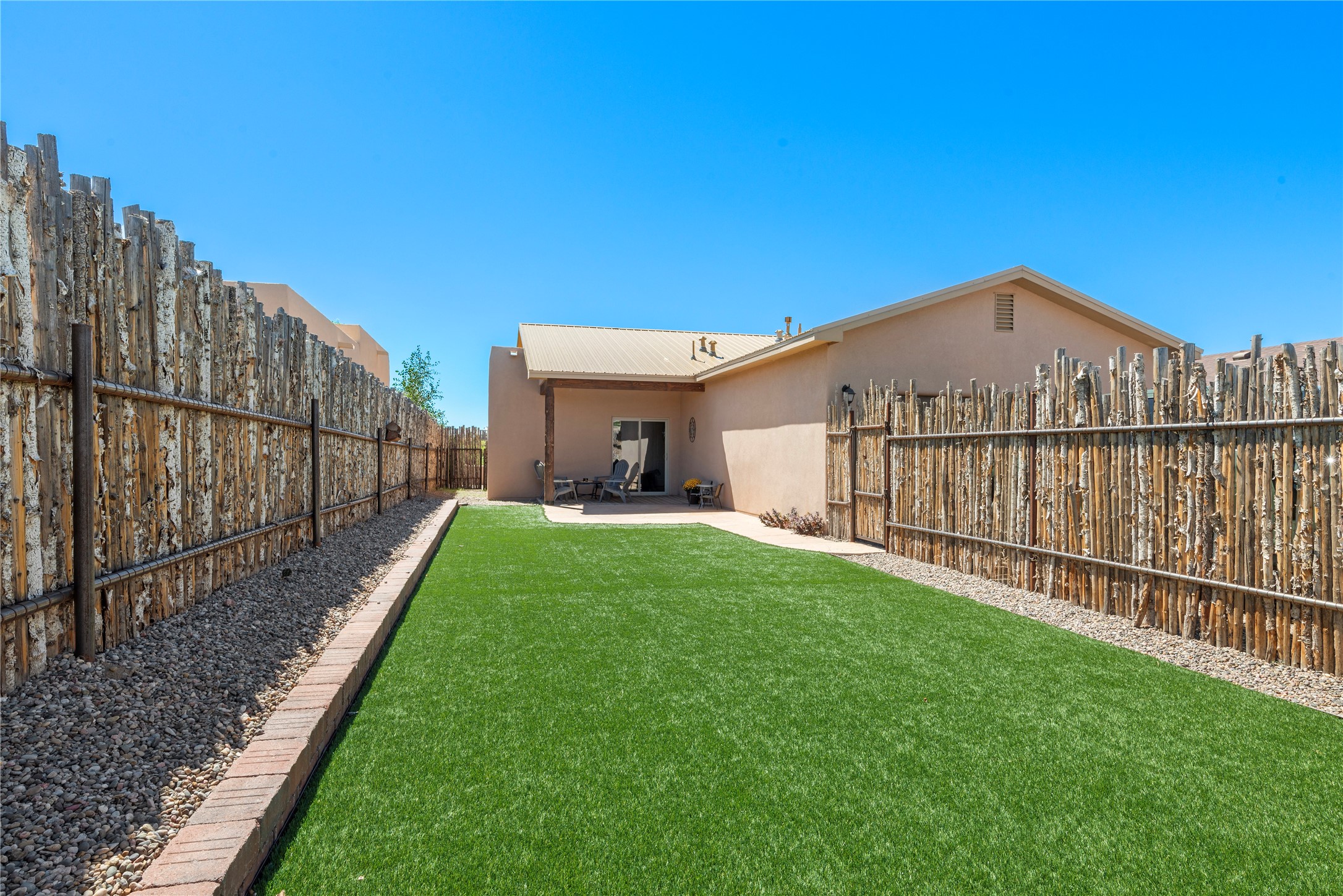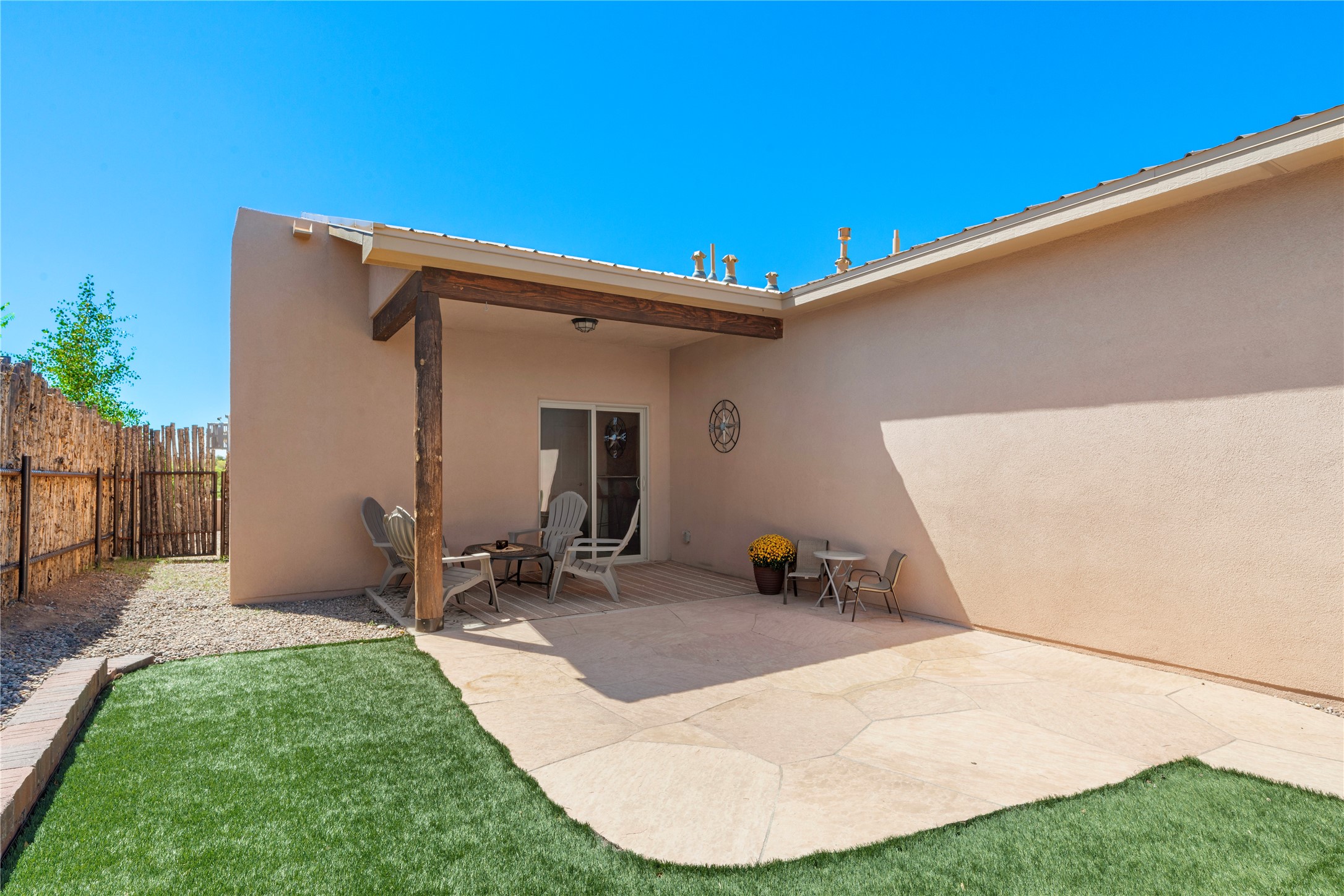 This wonderful 3 bedroom, 2 bath home in Oshara Village was built in 2018. Open living and dining area, with a lovely kitchen with granite countertops and stainless steel appliances. The master bedroom is nicely separated from the other two bedrooms. Two full bathrooms with tile and granite countertops. The backyard has a flagstone patio with portal, landscaped yard with turf, and latilla fencing creating a private space to relax and unwind in. Alley entrance leads to two car attached garage. Located centrally in Santa Fe, close to shopping, restaurants, schools, including the Santa Fe Community College, and the Genoveva Chavez Center. Make this your place to call home in Santa Fe!