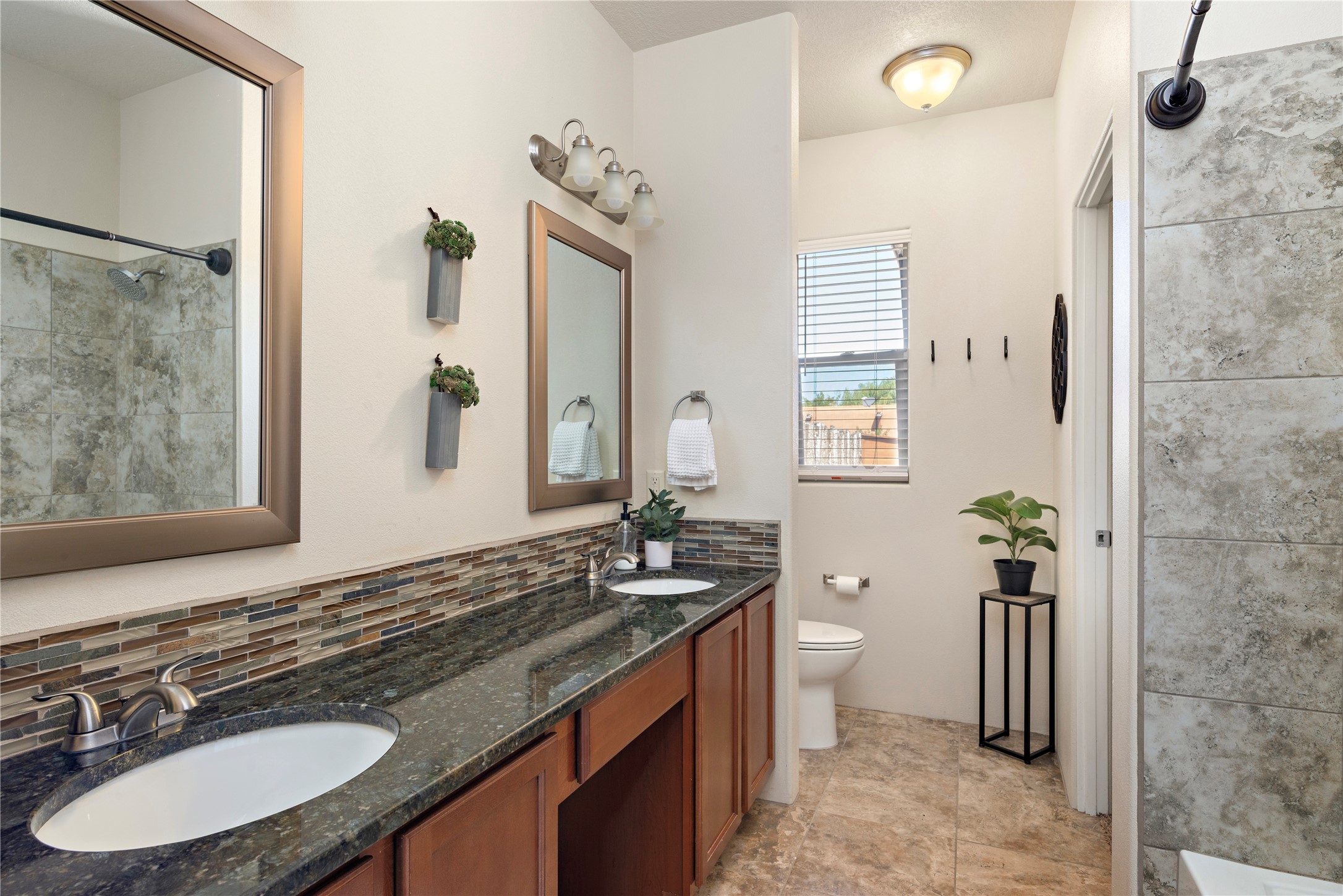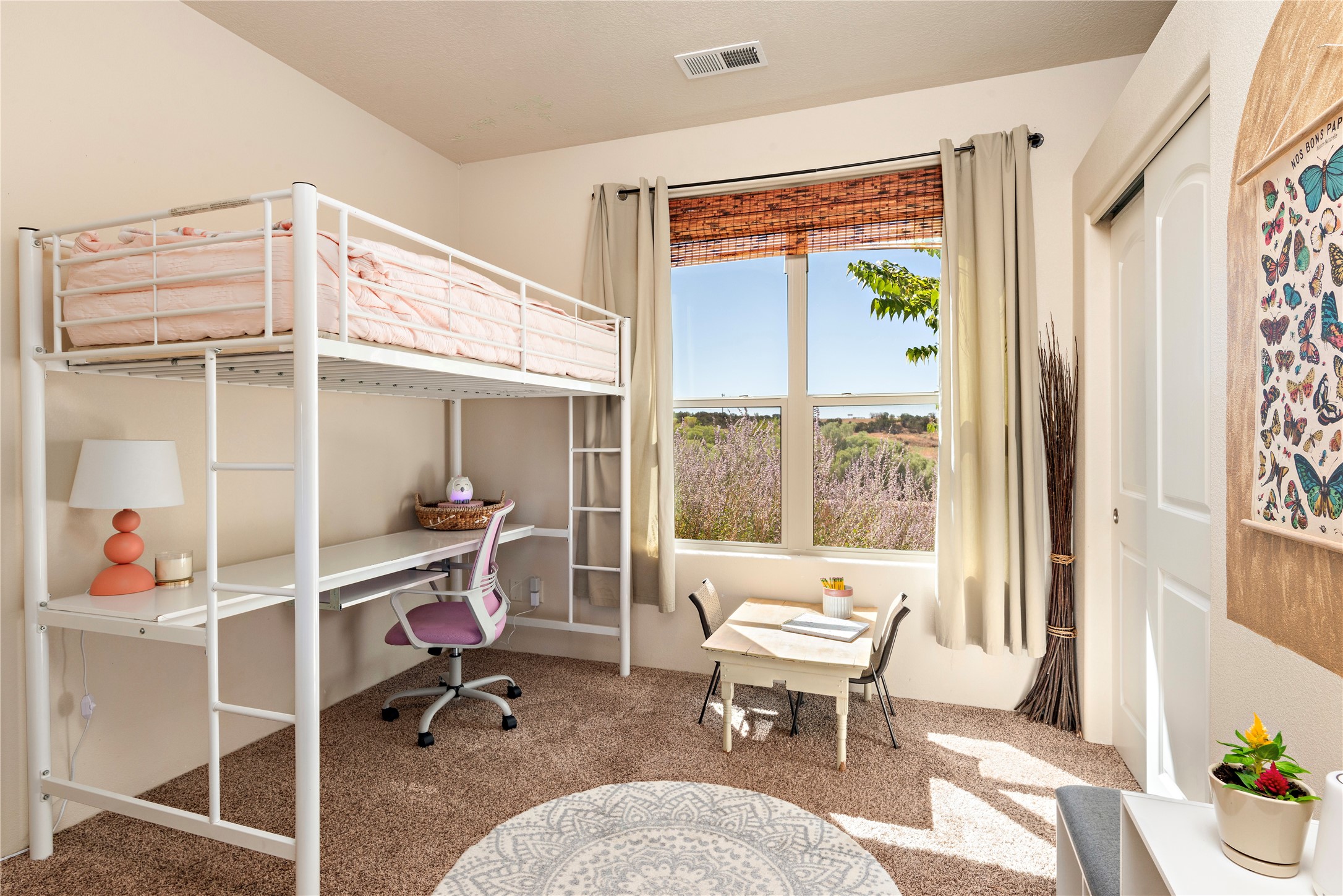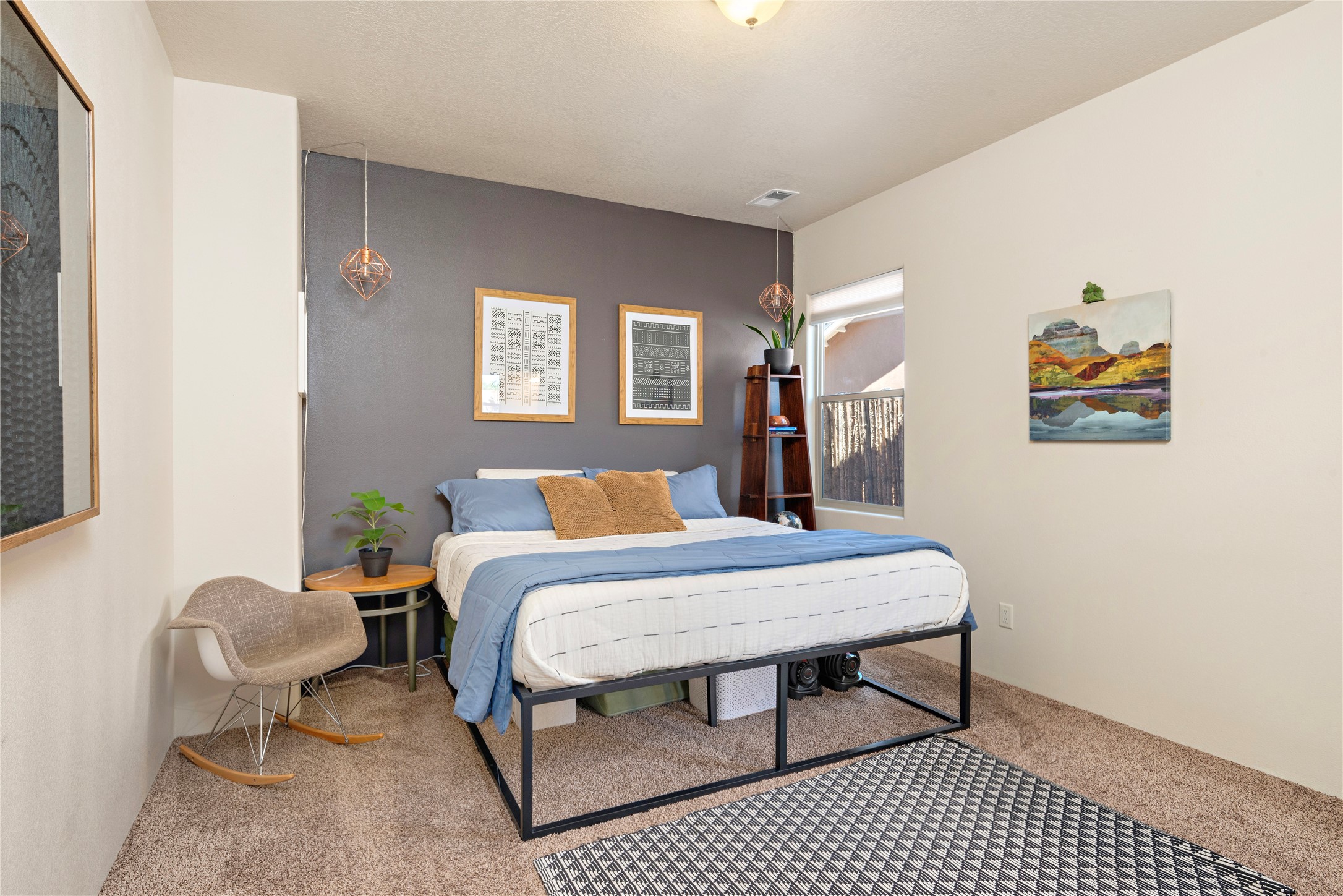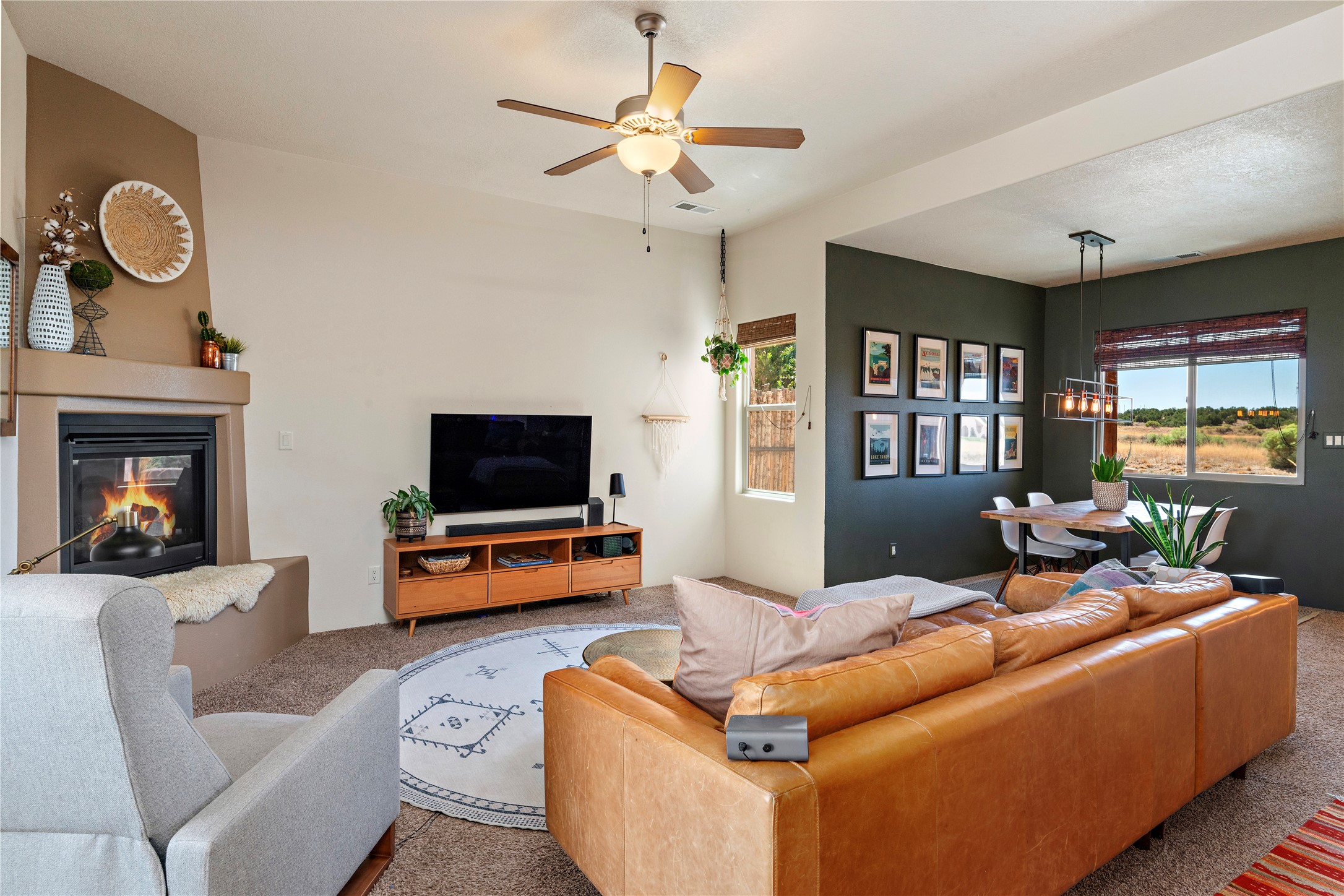 This wonderful 3 bedroom, 2 bath home in Oshara Village was built in 2018. Open living and dining area, with a lovely kitchen with granite countertops and stainless steel appliances. The master bedroom is nicely separated from the other two bedrooms. Two full bathrooms with tile and granite countertops. The backyard has a flagstone patio with portal, landscaped yard with turf, and latilla fencing creating a private space to relax and unwind in. Alley entrance leads to two car attached garage. Located centrally in Santa Fe, close to shopping, restaurants, schools, including the Santa Fe Community College, and the Genoveva Chavez Center. Make this your place to call home in Santa Fe!