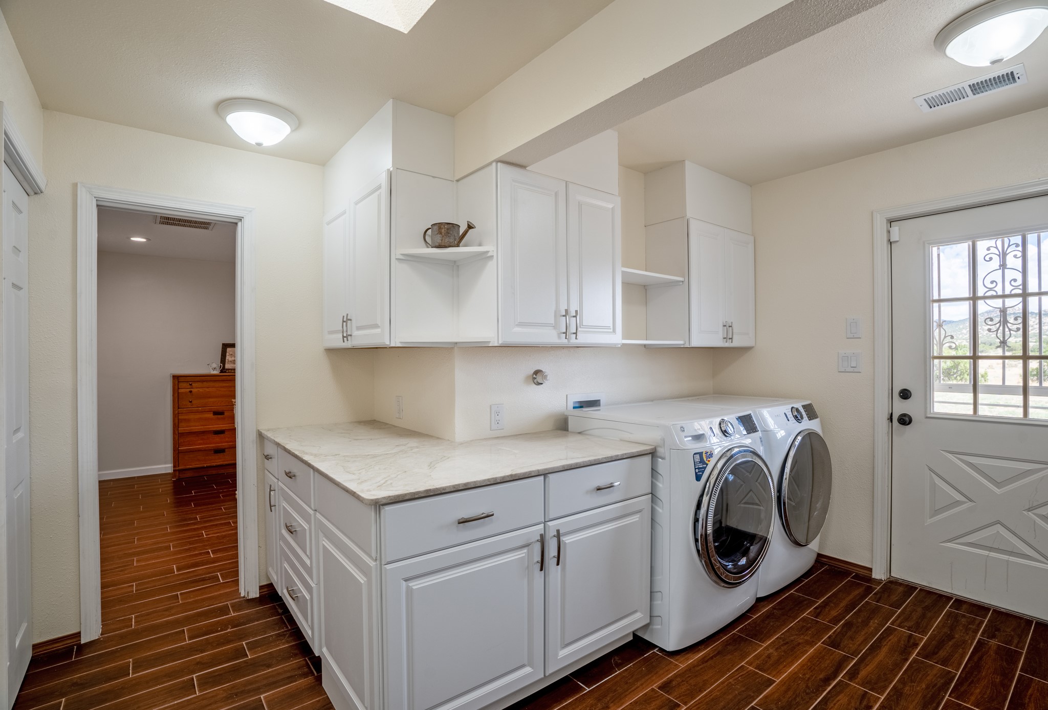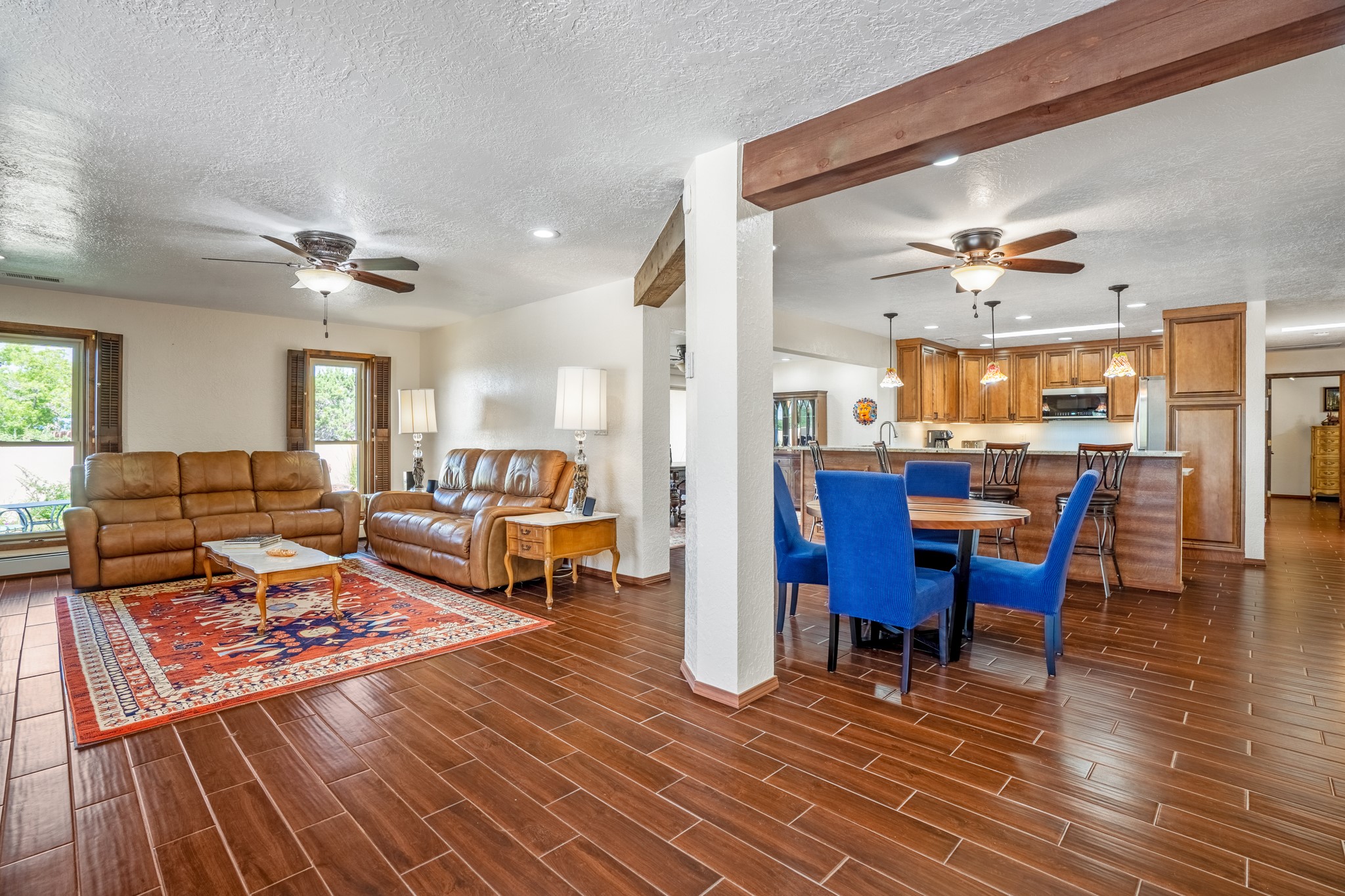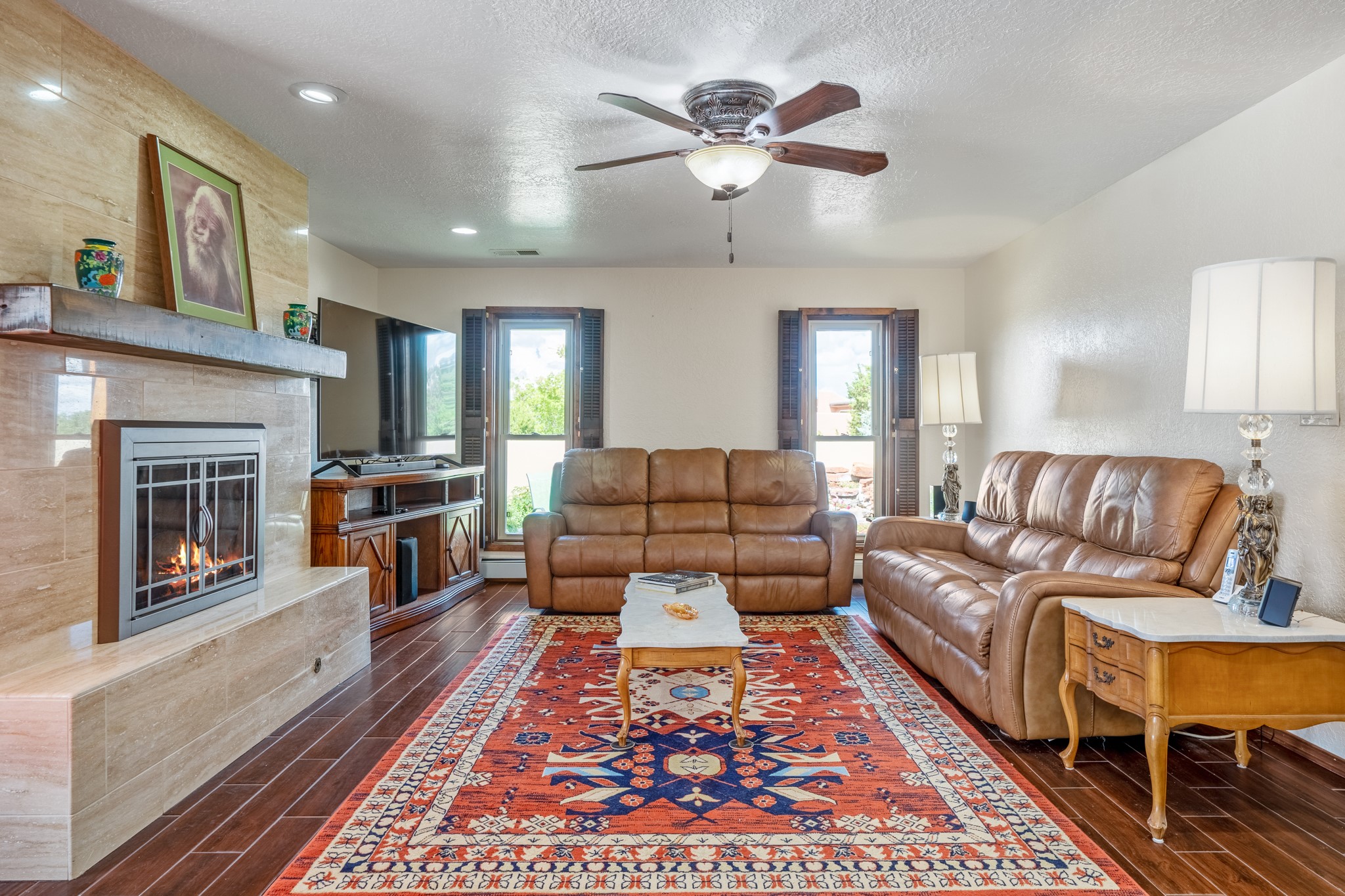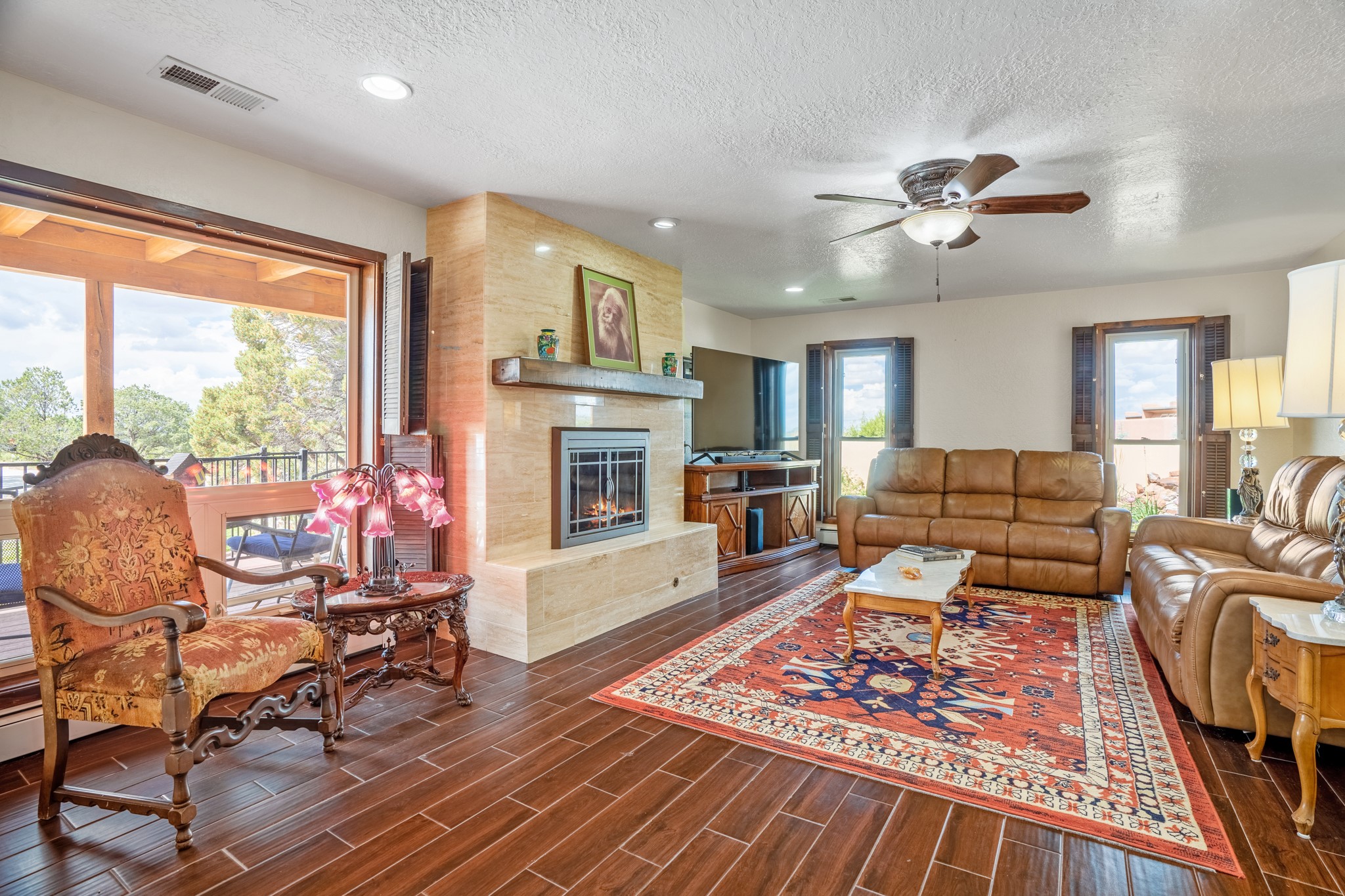 This diverse floor plan is perfect if you like to entertain, have a large family or work at home. Active solar system is approx. 3 years old! The kitchen was remodeled about 5 years ago and features stone counters, a large pantry and newer appliances. The primary bedroom was extended and now has a fireplace, room for a sitting area and you be amazed at the size of the primary closet. The primary bathroom was also totally remodeled, and you will feel like you are at a luxury spa! Two living/ public areas including the living room at the front of the home and the den to the side of the kitchen. The den space would also make a wonderful formal dining area. A lot of thought was put into the remodel of the kitchen, primary bedroom, utility room which has marvelous storage. No lack of storage here. Do you cherish your privacy while working at home? You will absolutely love the "hidden" office feature. Fabulous circular driveway with an island of mature trees in the middle. No need to worry about the maintenance of your driveway! Three car garage with a separate storage area! Intimate garden and yard space off the kitchen. The current den has a portal and fenced yard space with views of the foothills to the east. Whole house water softener and 2 separate whole house air conditioning units.
